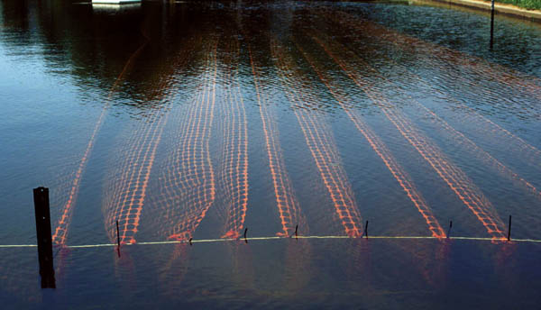 图62 使用水车式增氧机可以保持高溶解氧含量,从而提高放养水平