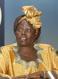 Wangari Maathai, lauréate du Prix Nobel de la paix 2004, est Ministre adjointe de l’environnement et des ressources naturelles du Kenya, et porte-parole pour les écosystèmes forestiers du bassin du Congo.