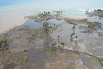 Graves inondations côtières en Indonésie à la suite du tsunami en décembre 2004 |