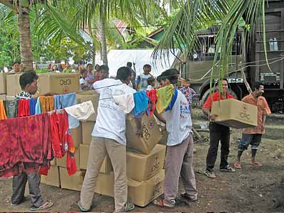 Immédiatement après le tsunami, les premiers secours d’urgence se sont concentrés sur l’alimentation, la santé, le logement, l’eau et l’assainissement (Banda Aceh, Indonésie) |