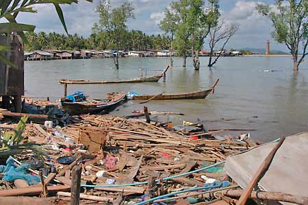 Arbres déracinés par le tsunami en Thaïlande: la perte de végétation côtière réduit la protection contre les dangers causés par le vent, les vagues et les raz de marée |