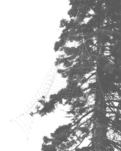 Collecting cones for seed trials from an example of a California redwood growing in England.