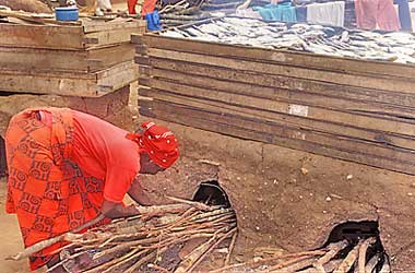 El uso de la dendroenergía está estrechamente relacionado con el desarrollo rural sostenible (en la foto, un horno alimentado con leña utilizado para el ahumado del pescado, Ghana) |