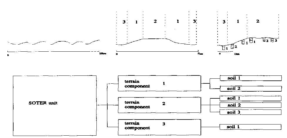 FIGURE 2. Schematic representation of a SOTER unit, with terrain, terrain components and soils