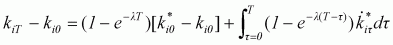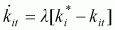 Assume that each economy has a balanced growth path in which every variable grows at a constant rate, and this steady-state value of physical capital is equal to ki*, where subscript i represents the country concerned. At any point of time t, the deviation of actual k from the steady-state value will generate the following convergence growth: