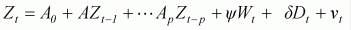 Zt-p = an (m by 1) vector of the ith lagged value of Z for i =1,2,...., p;