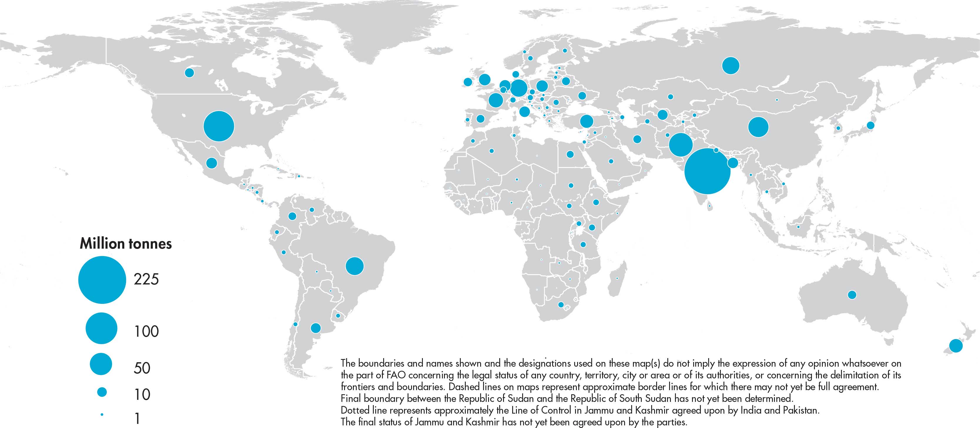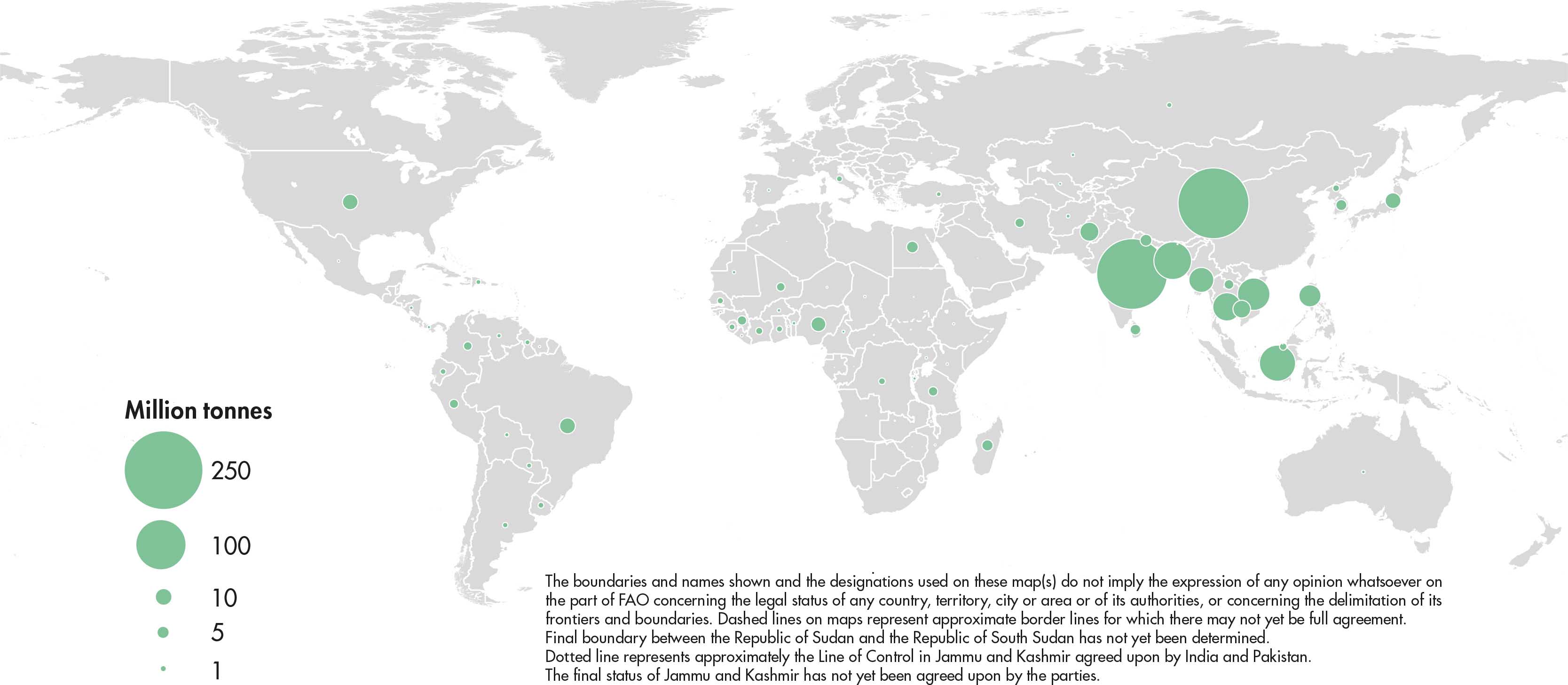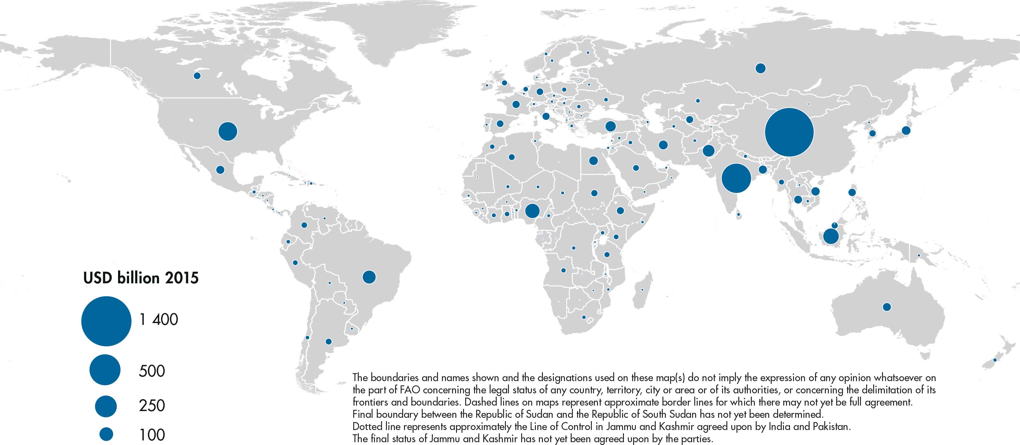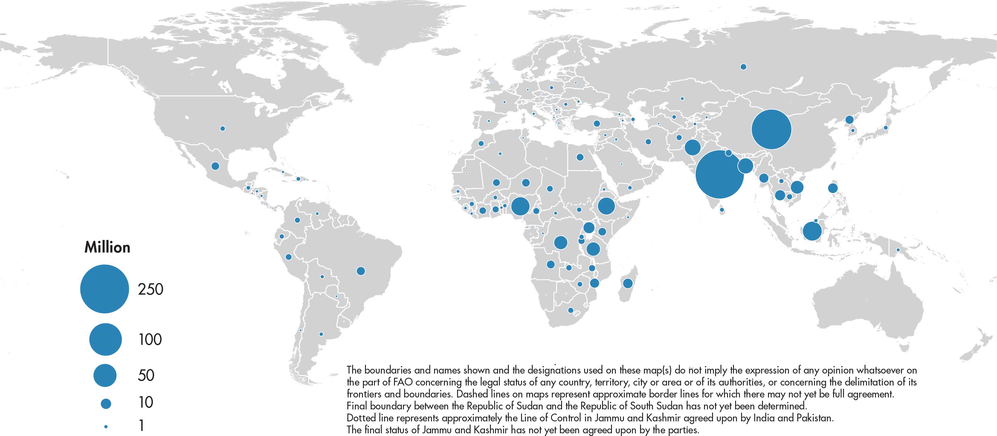 The designations employed and the presentation of material in this information product do not imply the expression of any opinion whatsoever on the part of the Food and Agriculture Organization of the United Nations (FAO) concerning the legal or development status of any country, territory, city or area or of its authorities, or concerning the delimitation of its frontiers or boundaries. Dashed lines on maps represent approximate border lines for which there may not yet be full agreement. The mention of specific companies or products of manufacturers, whether or not these have been patented, does not imply that these have been endorsed or recommended by FAO in preference to others of a similar nature that are not mentioned.