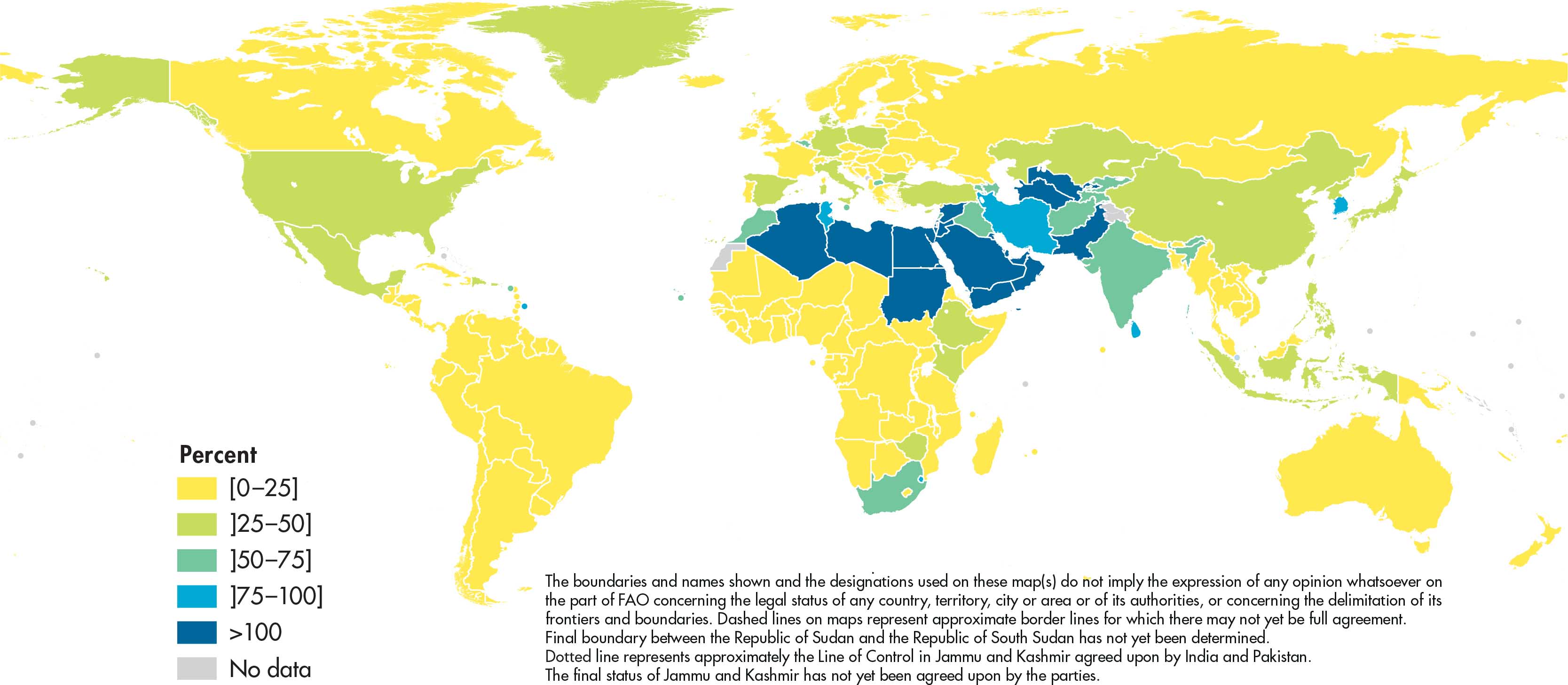 Water stress is the ratio between total freshwater withdrawn by all major sectors and total renewable freshwater resources, after taking into account environmental water requirements.