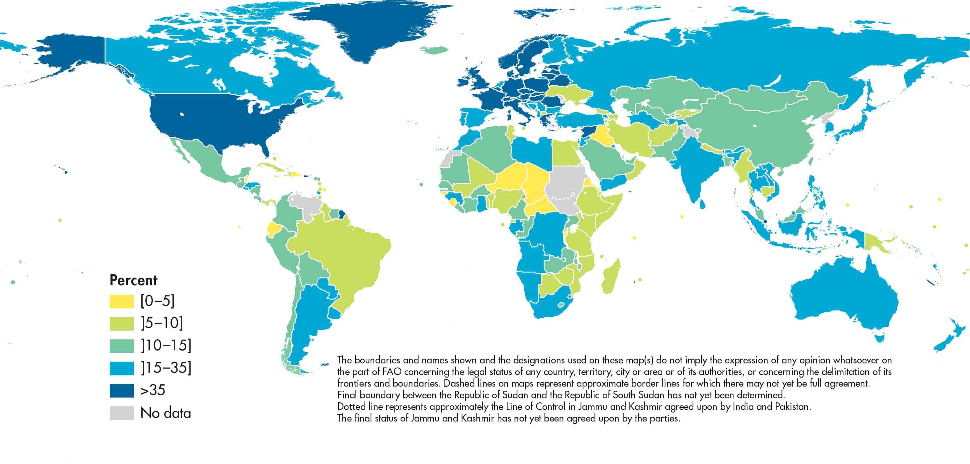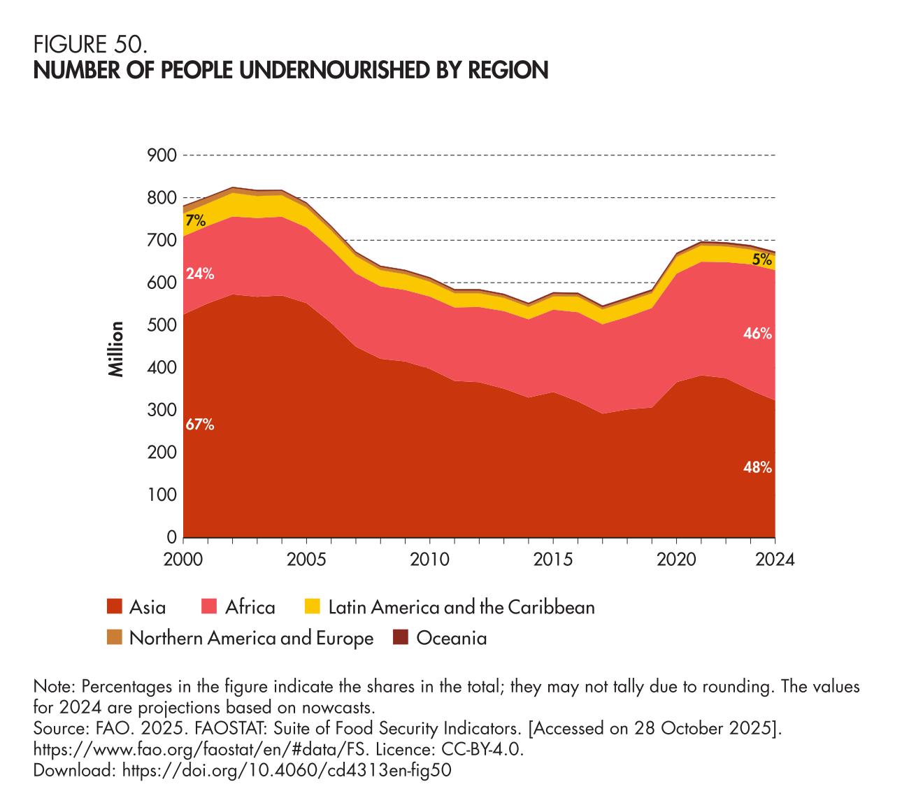 19 FAO. 2025. FAOSTAT: Suite of Food Security Indicators. [Accessed on 28 October 2025]. https://www.fao.org/faostat/en/#data/FS. Licence: CC-BY-4.0.