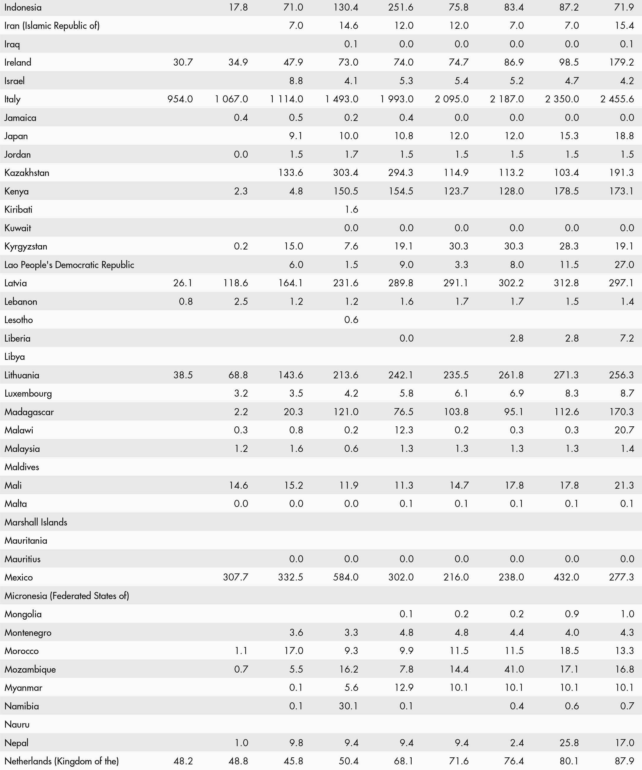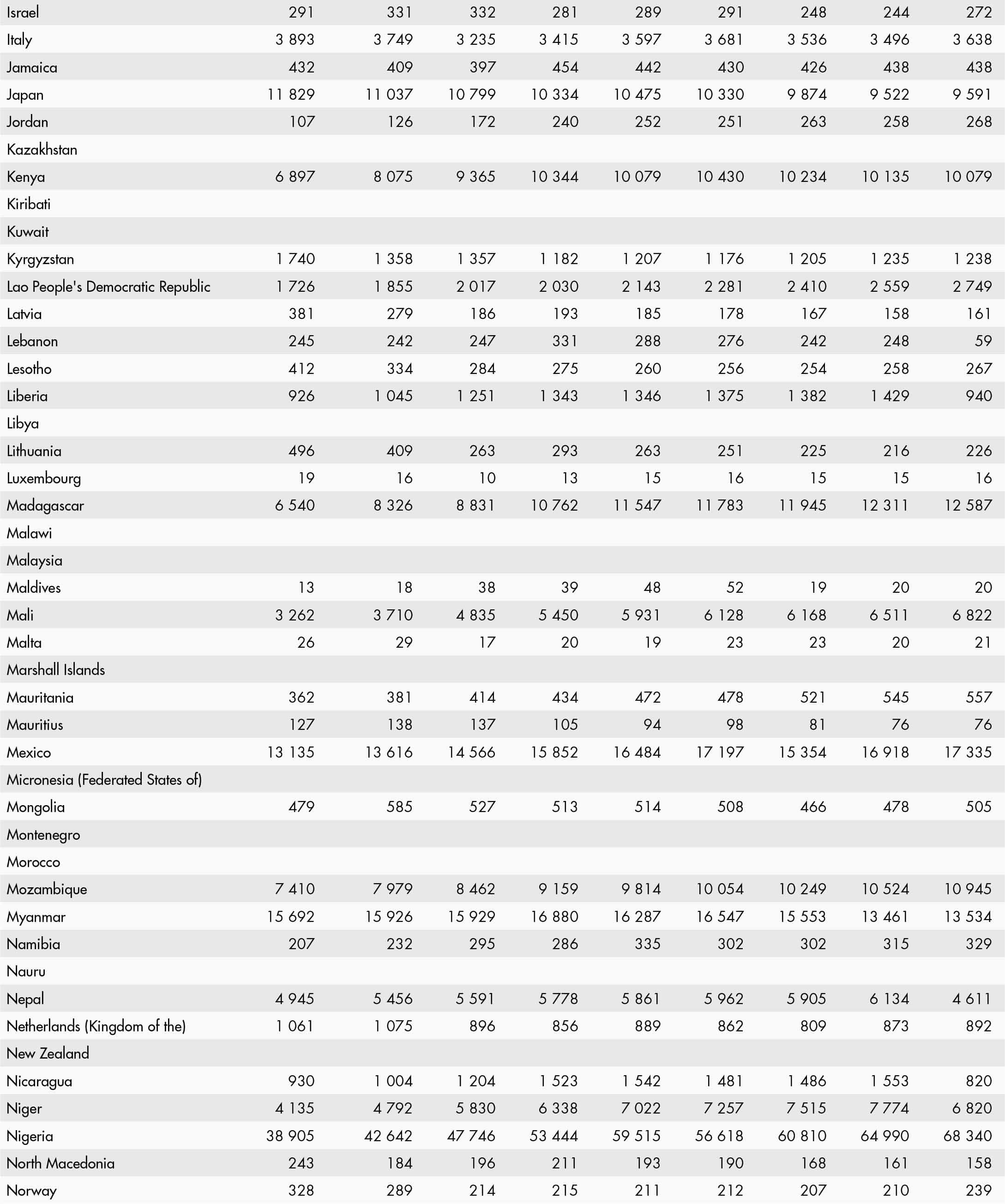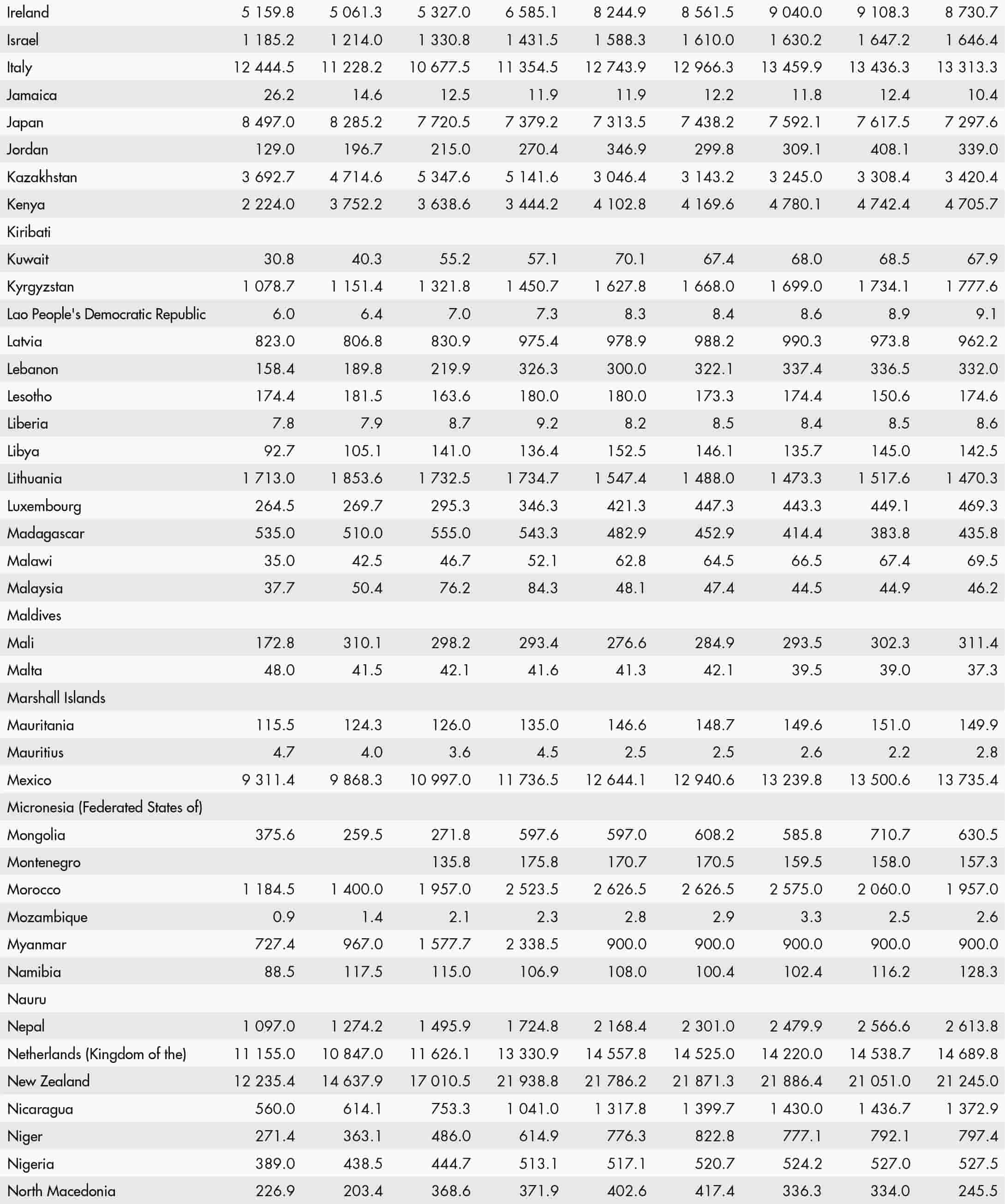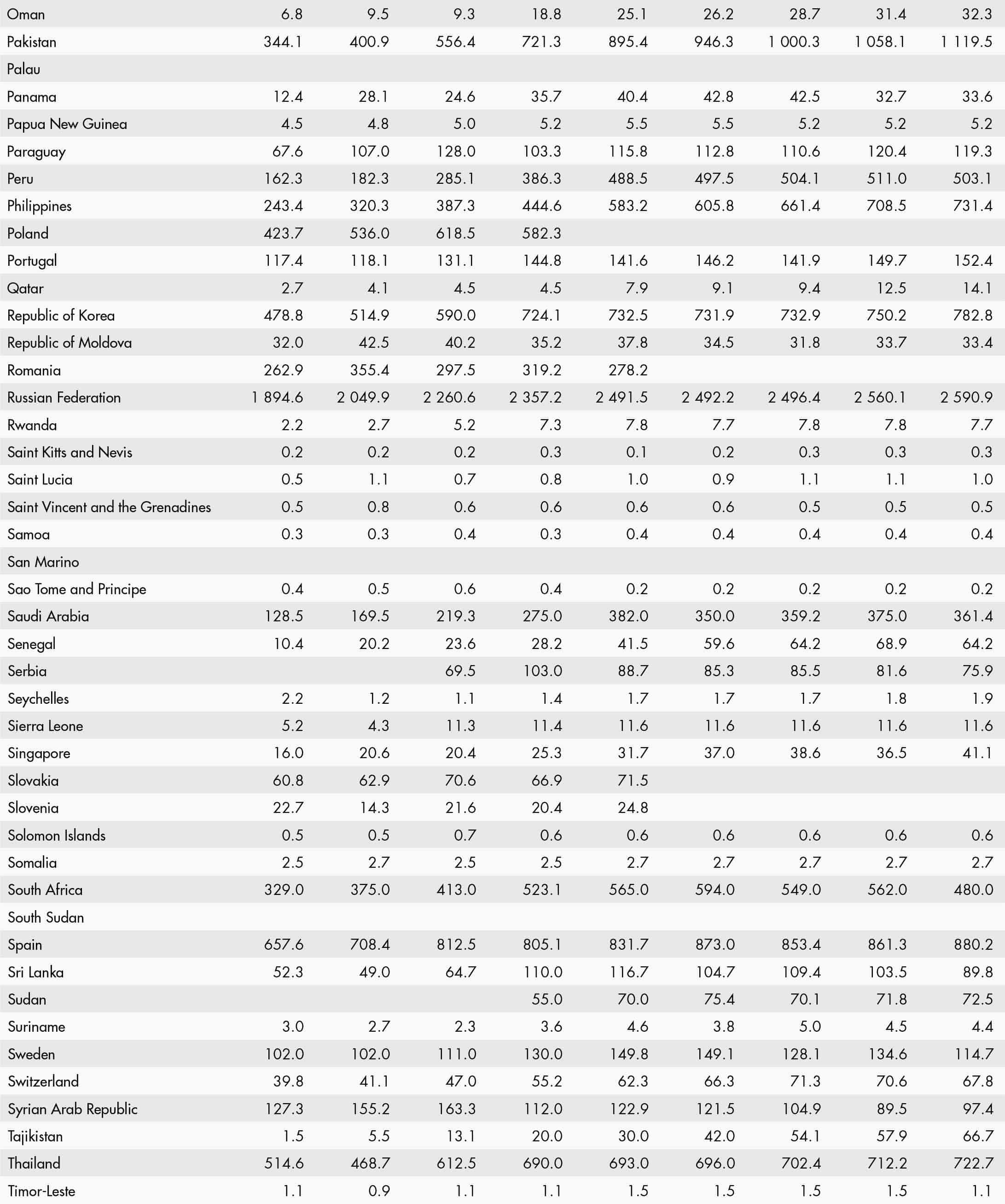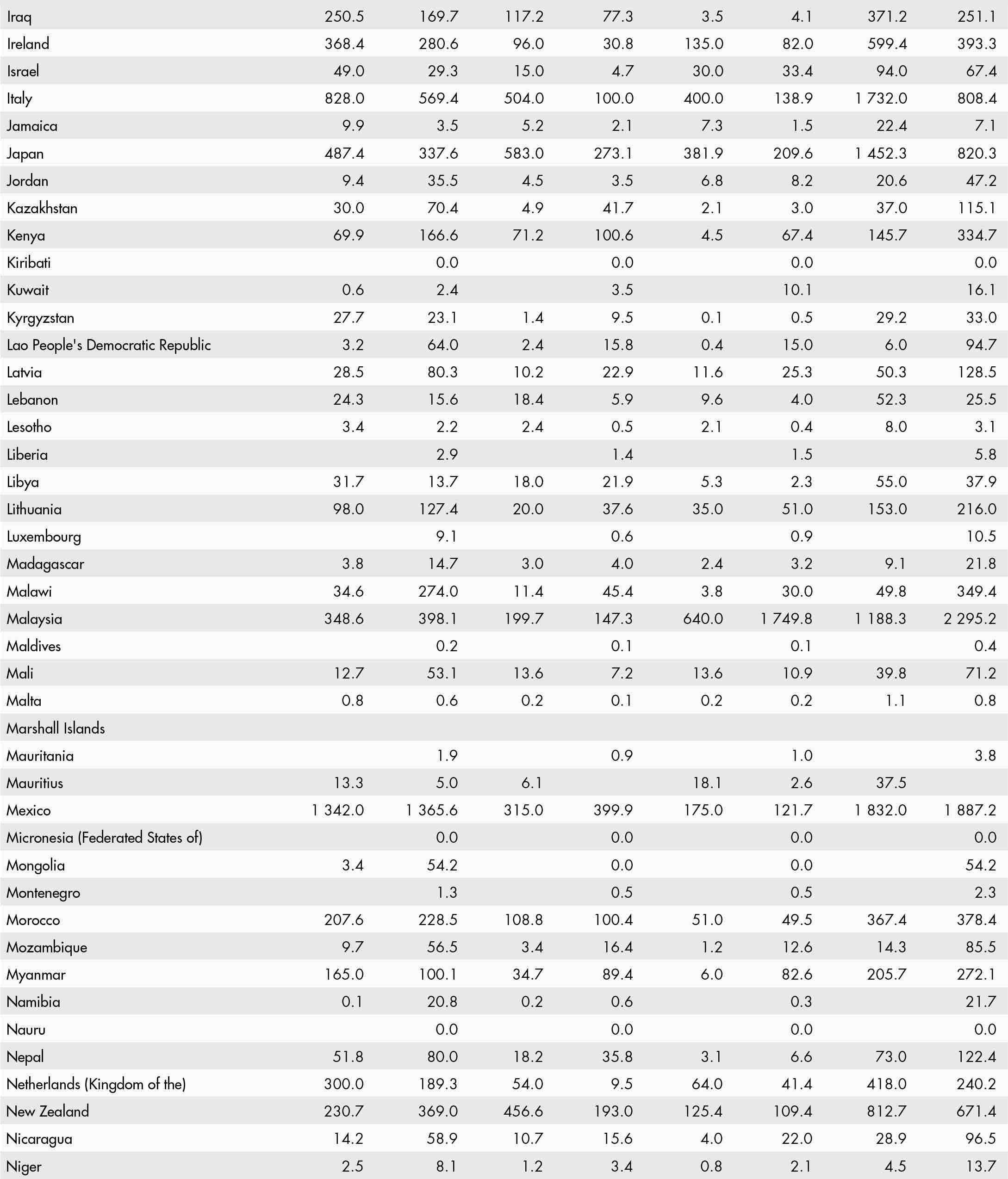 • a blank means that data are not available or that aggregates cannot be calculated because of missing data for the years shown;