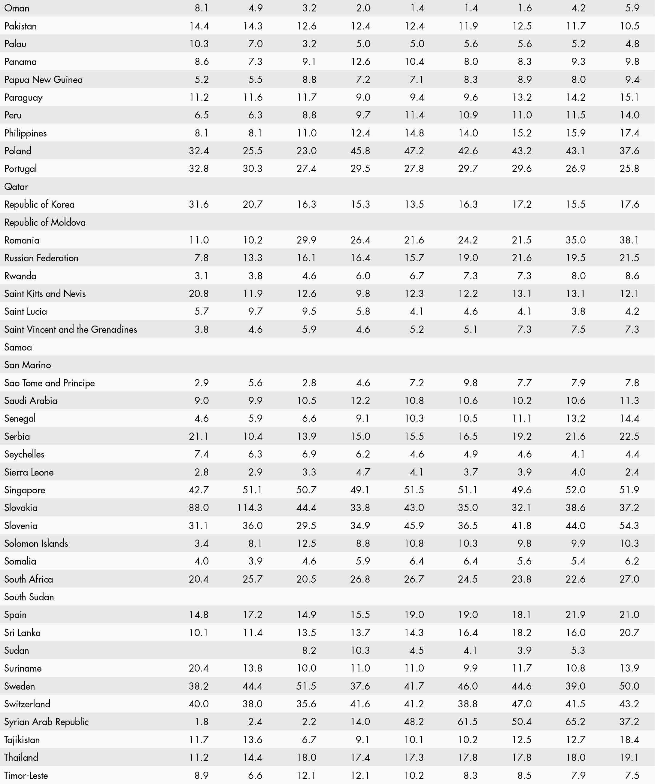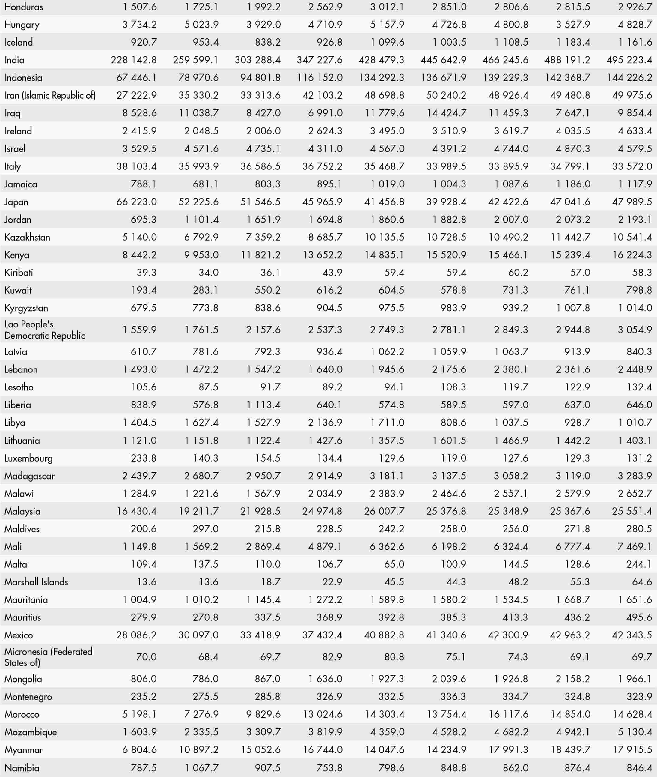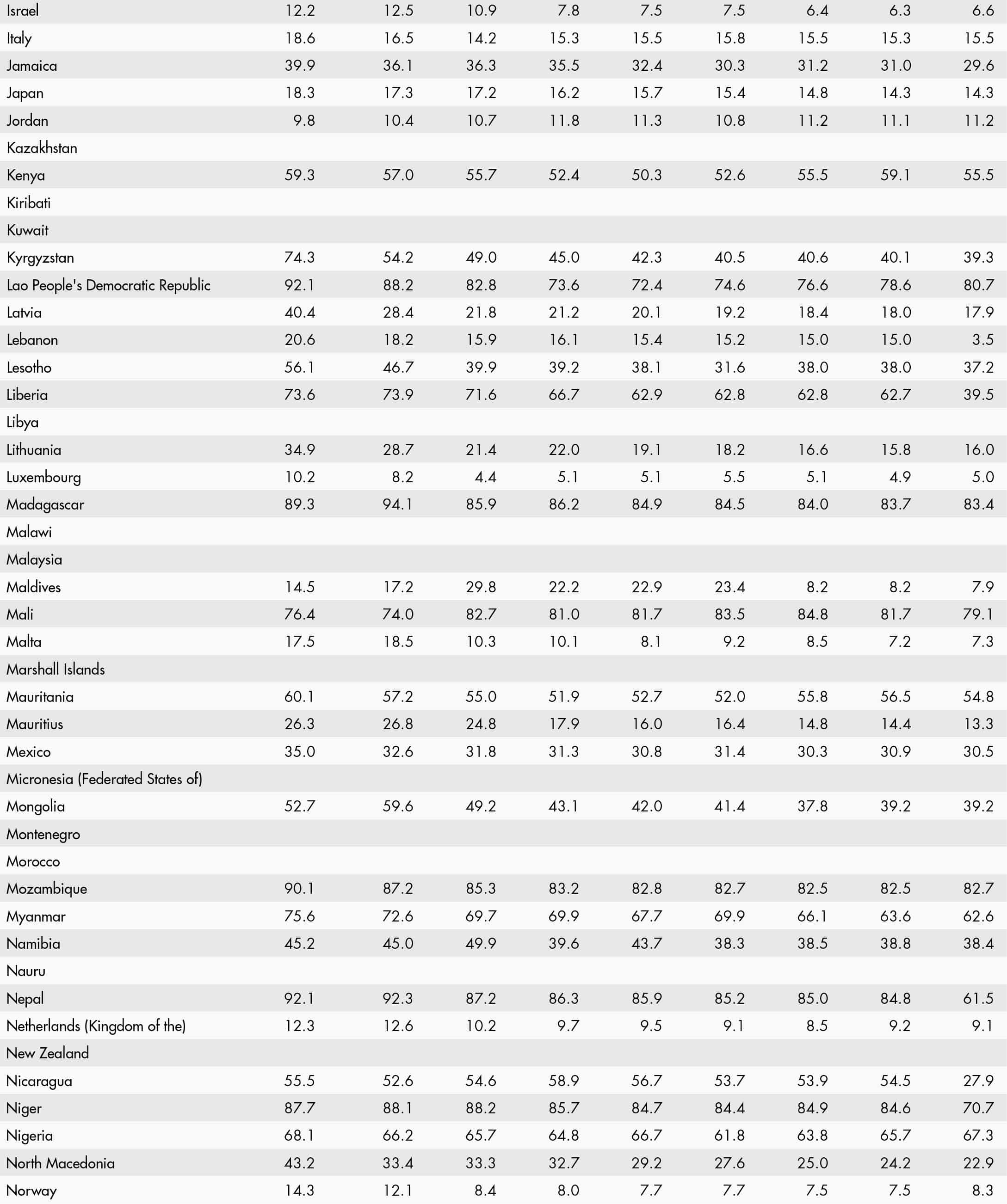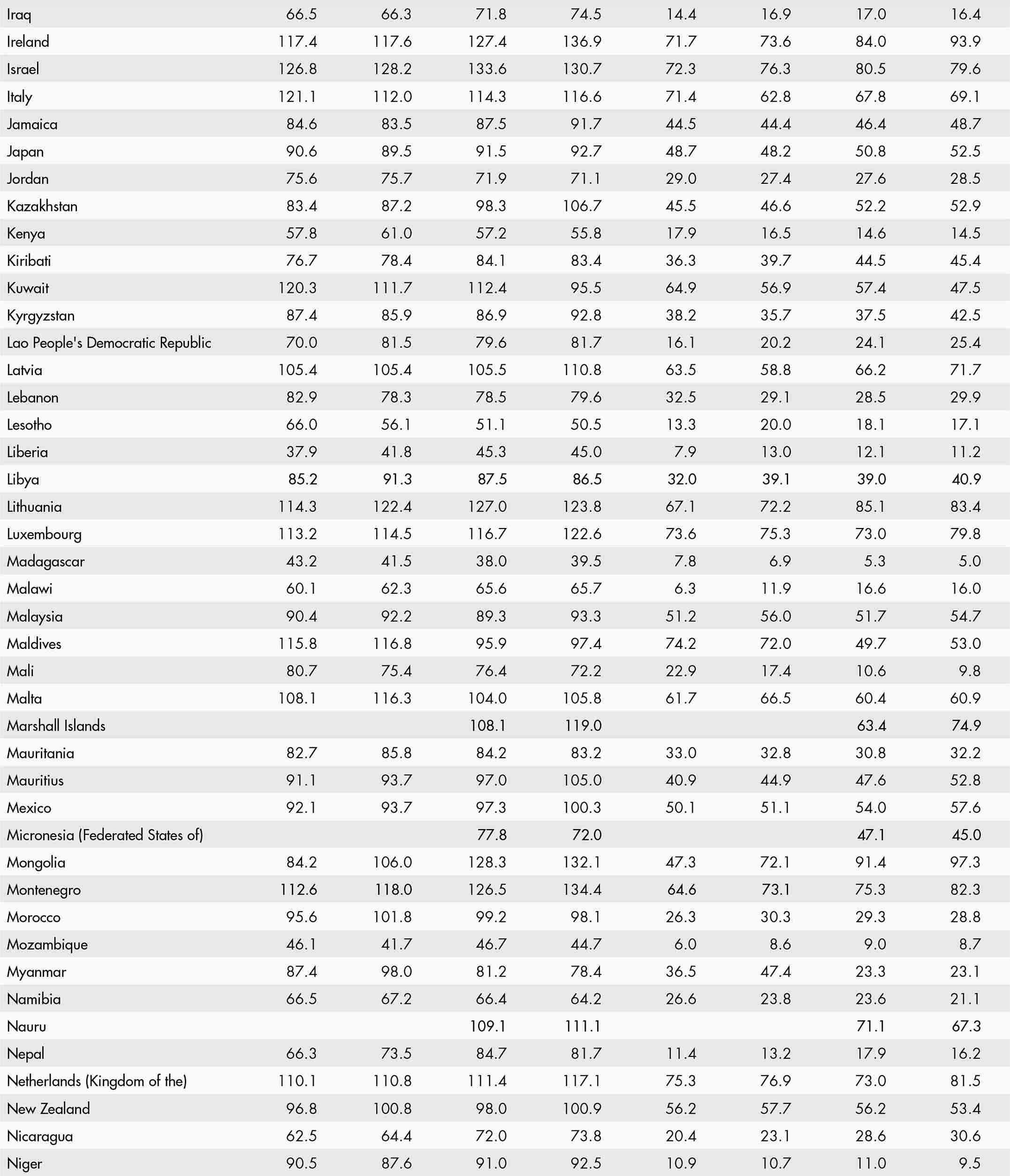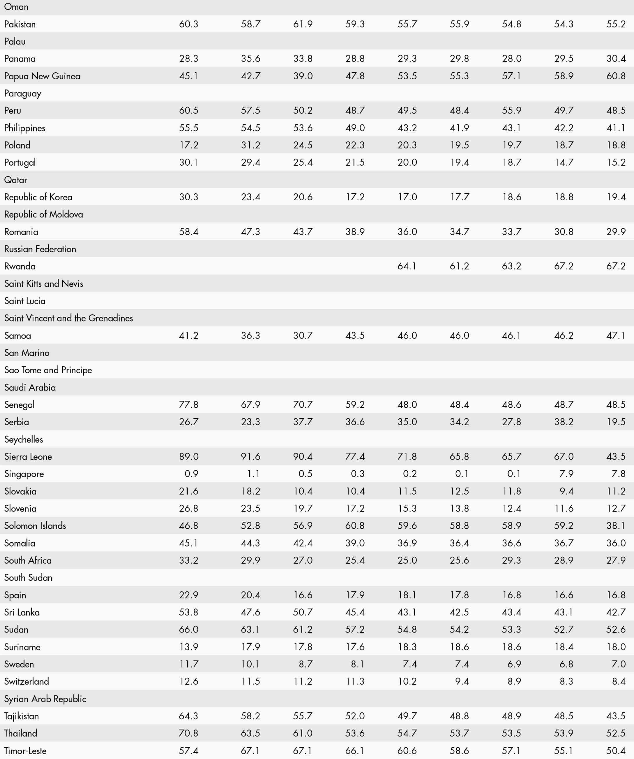 • a blank means that data are not available or that aggregates cannot be calculated because of missing data for the years shown;