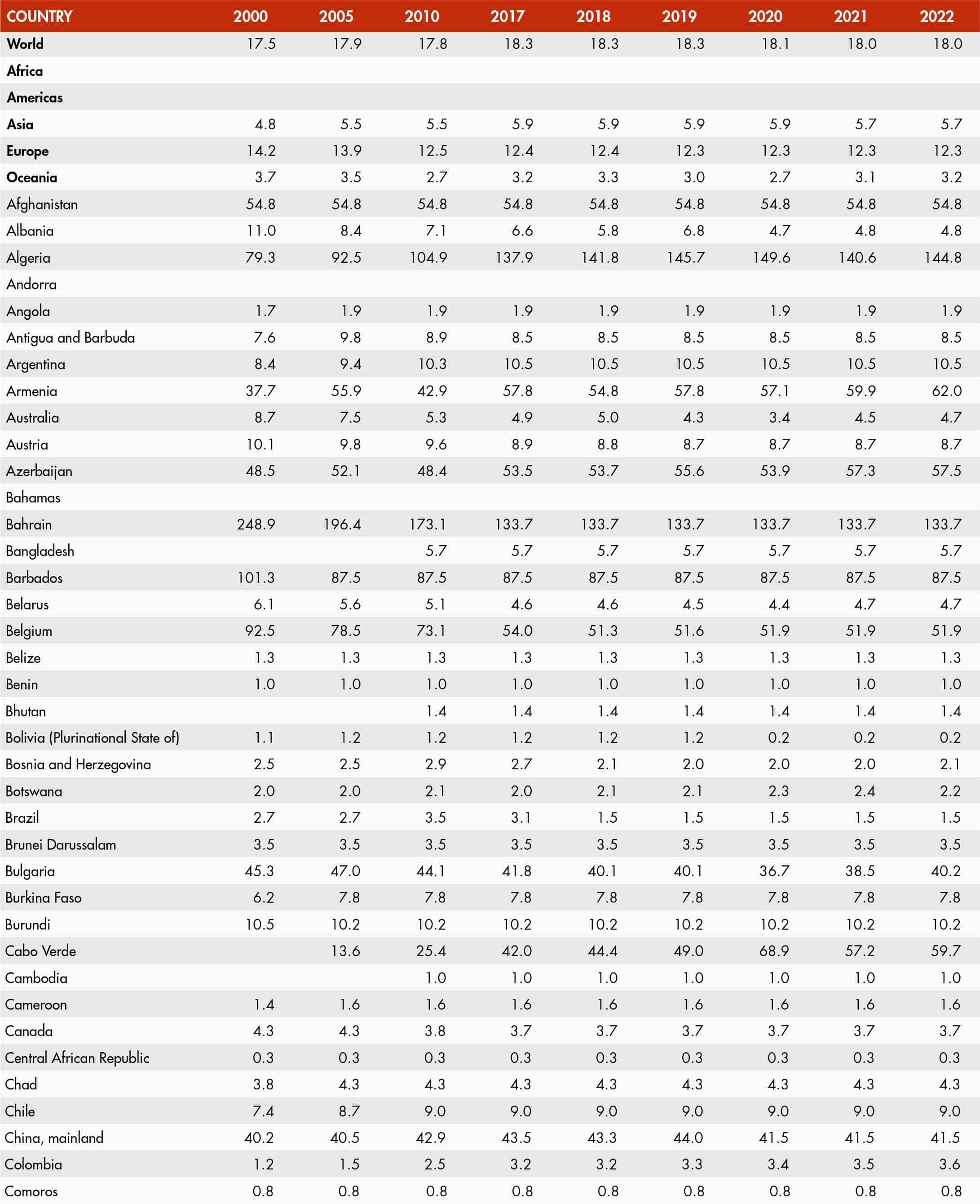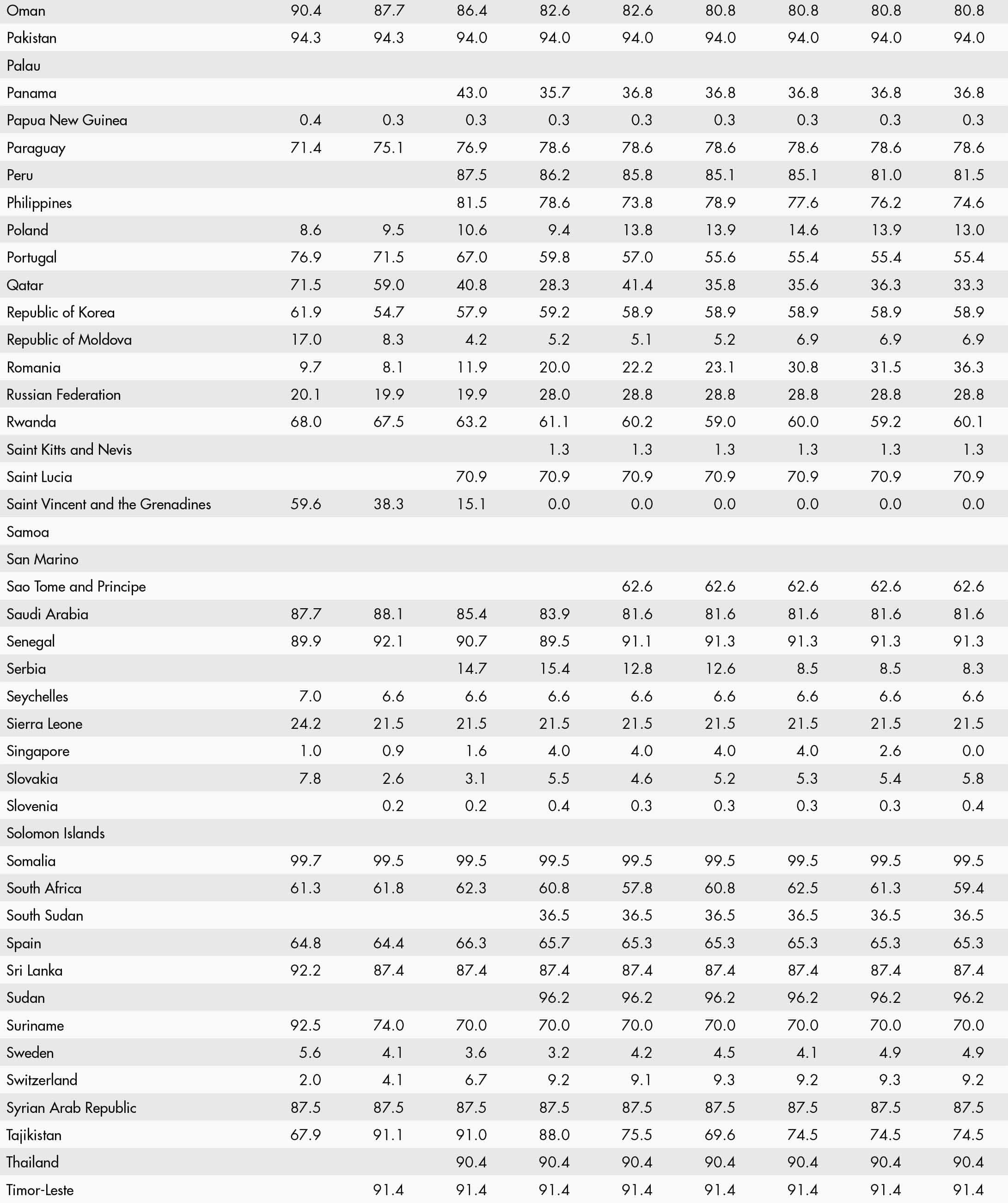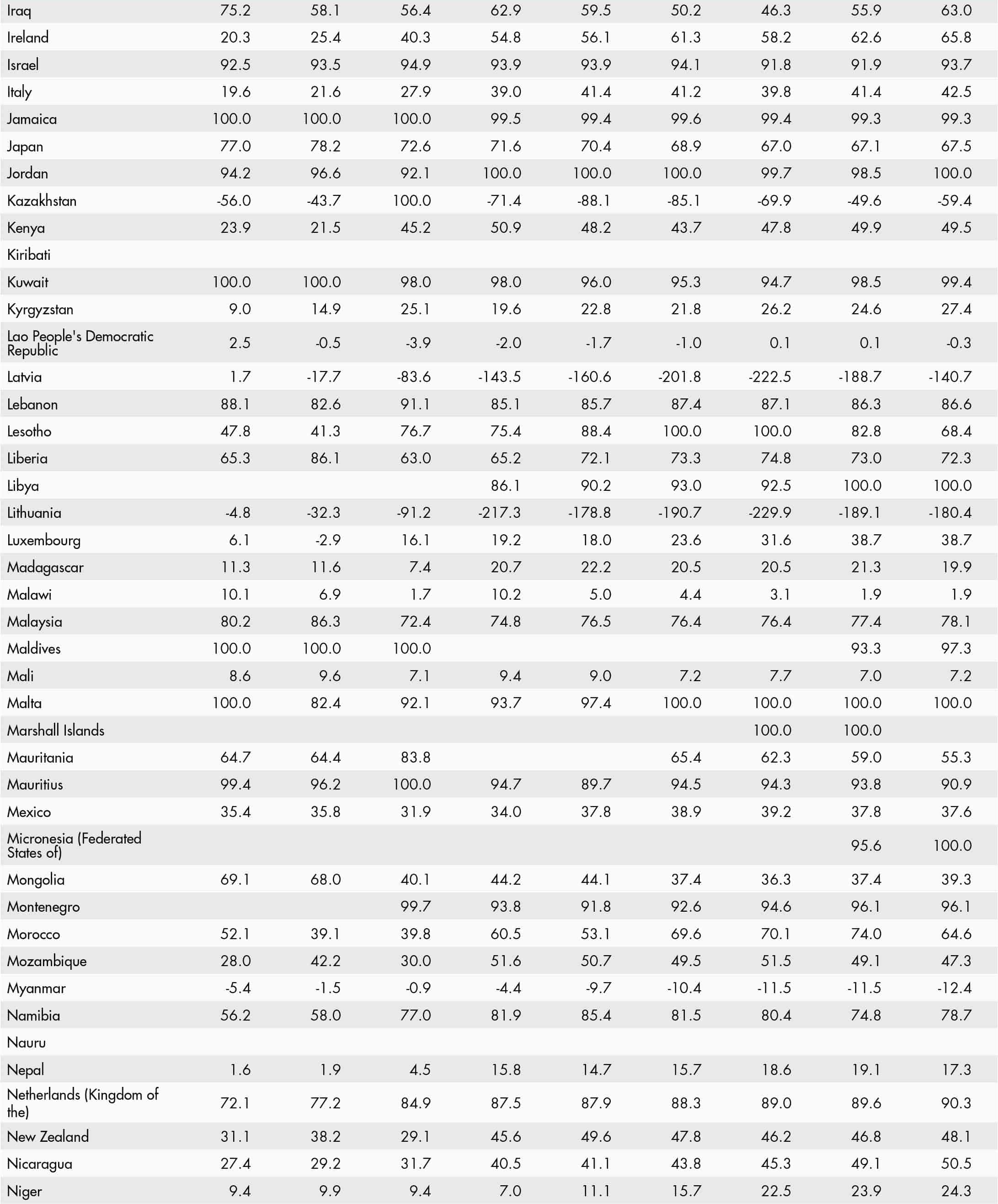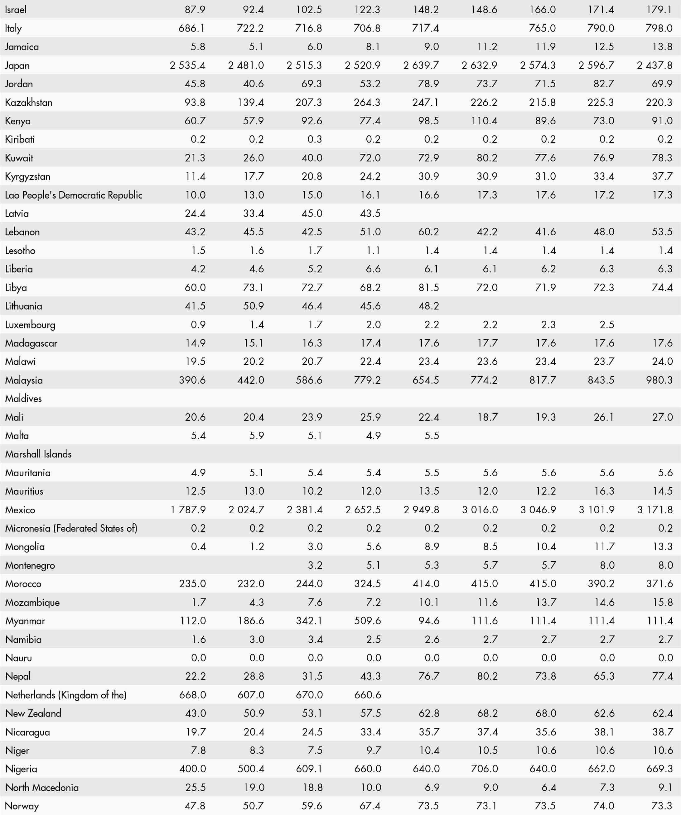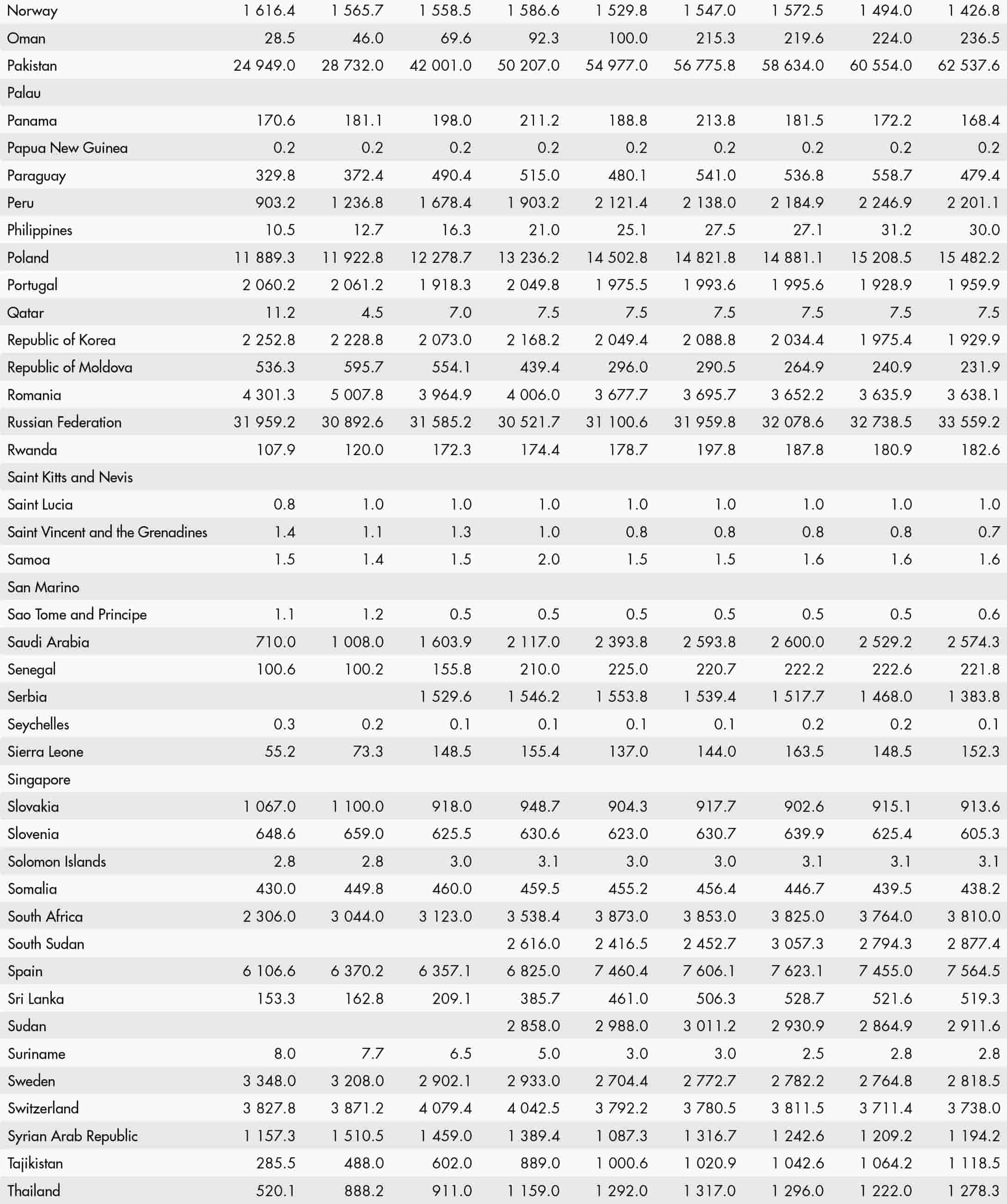 • a blank means that data are not available or that aggregates cannot be calculated because of missing data for the years shown;