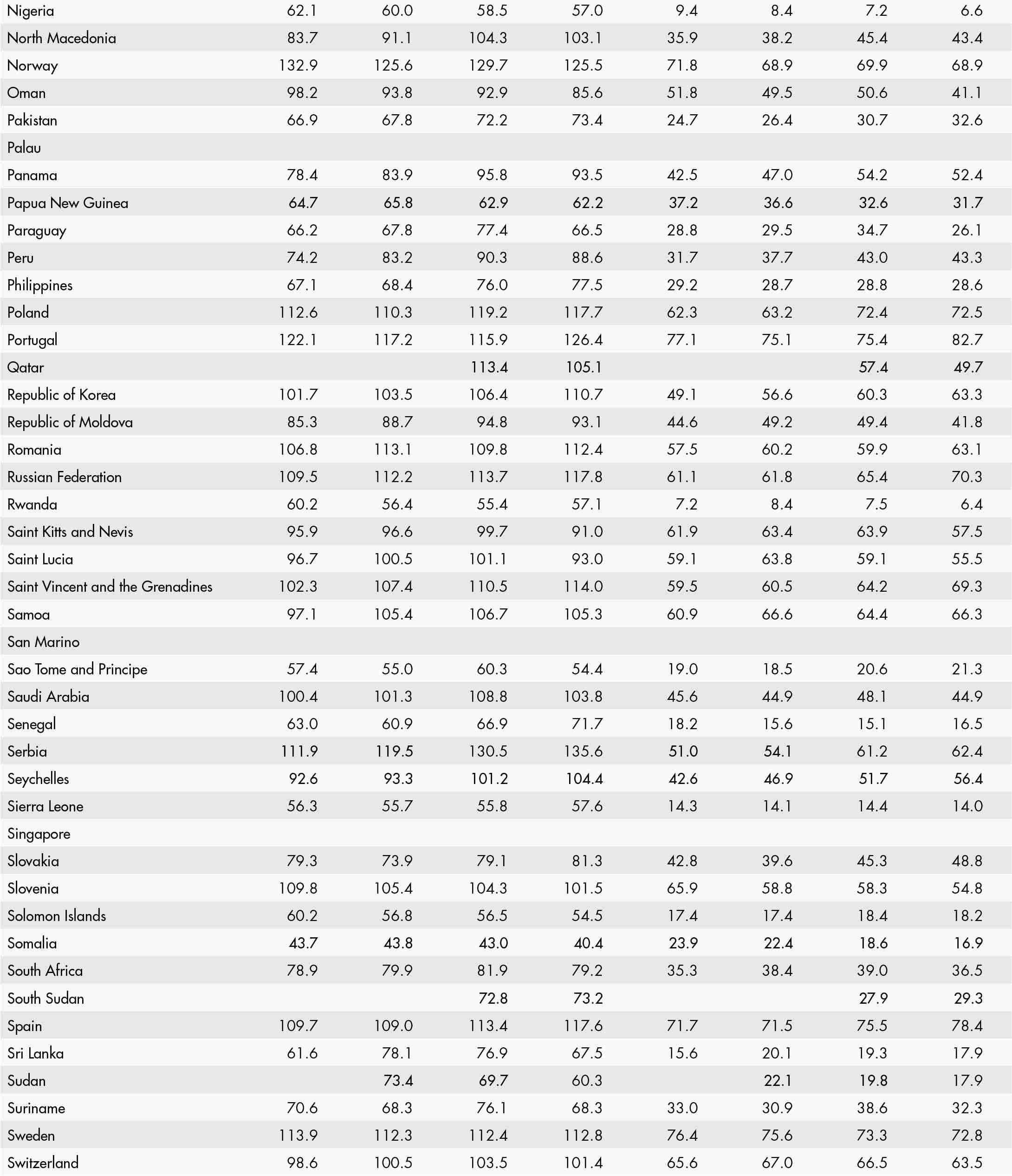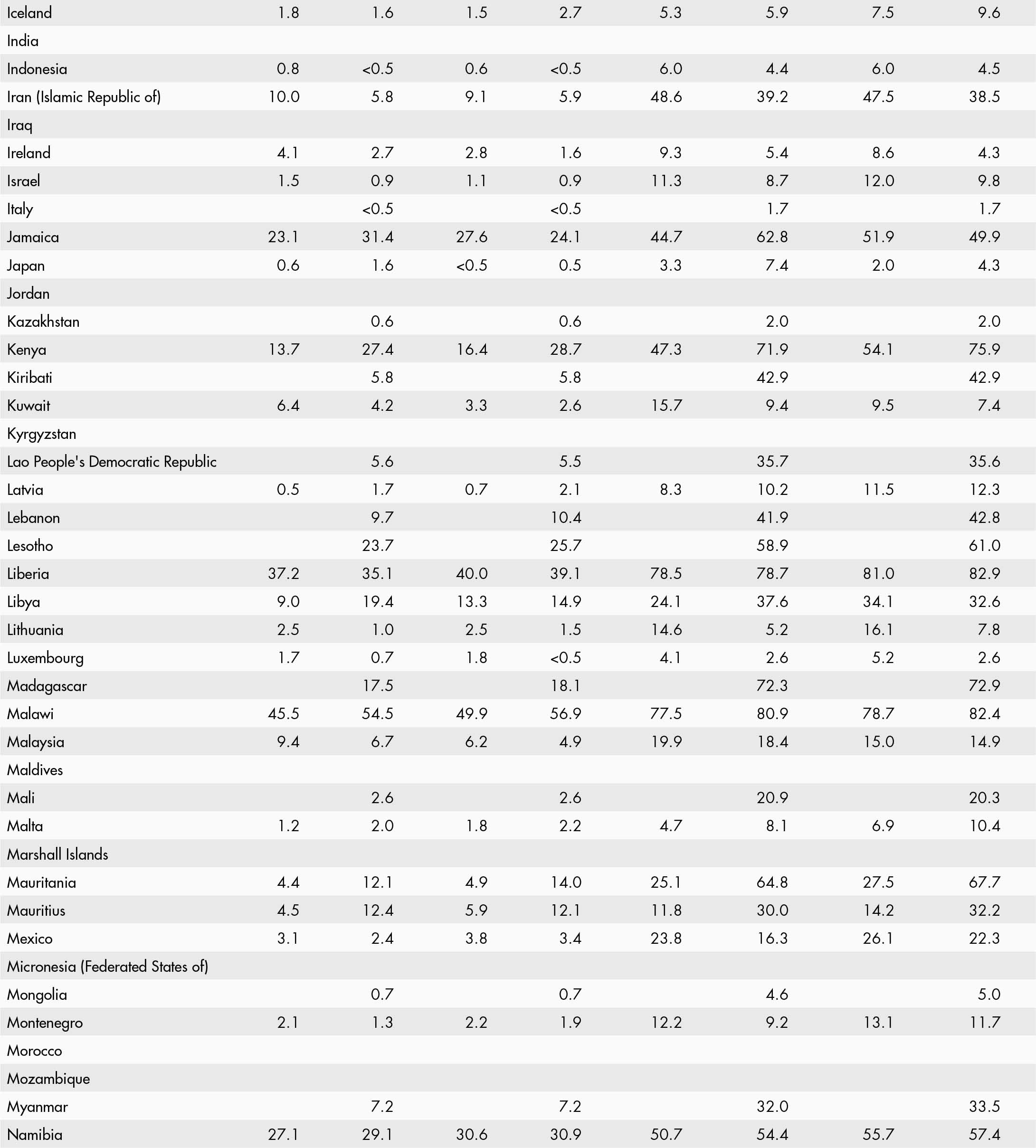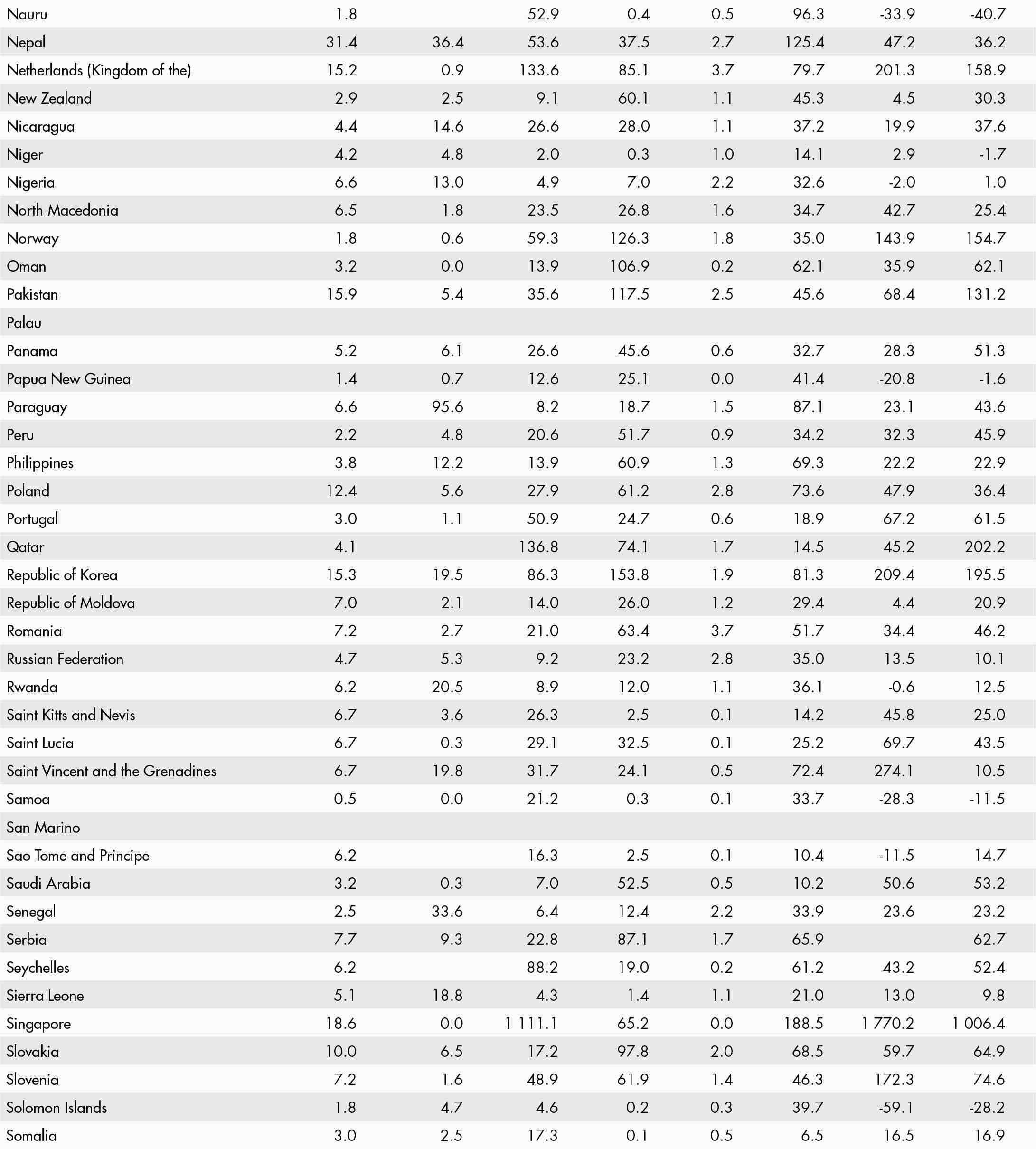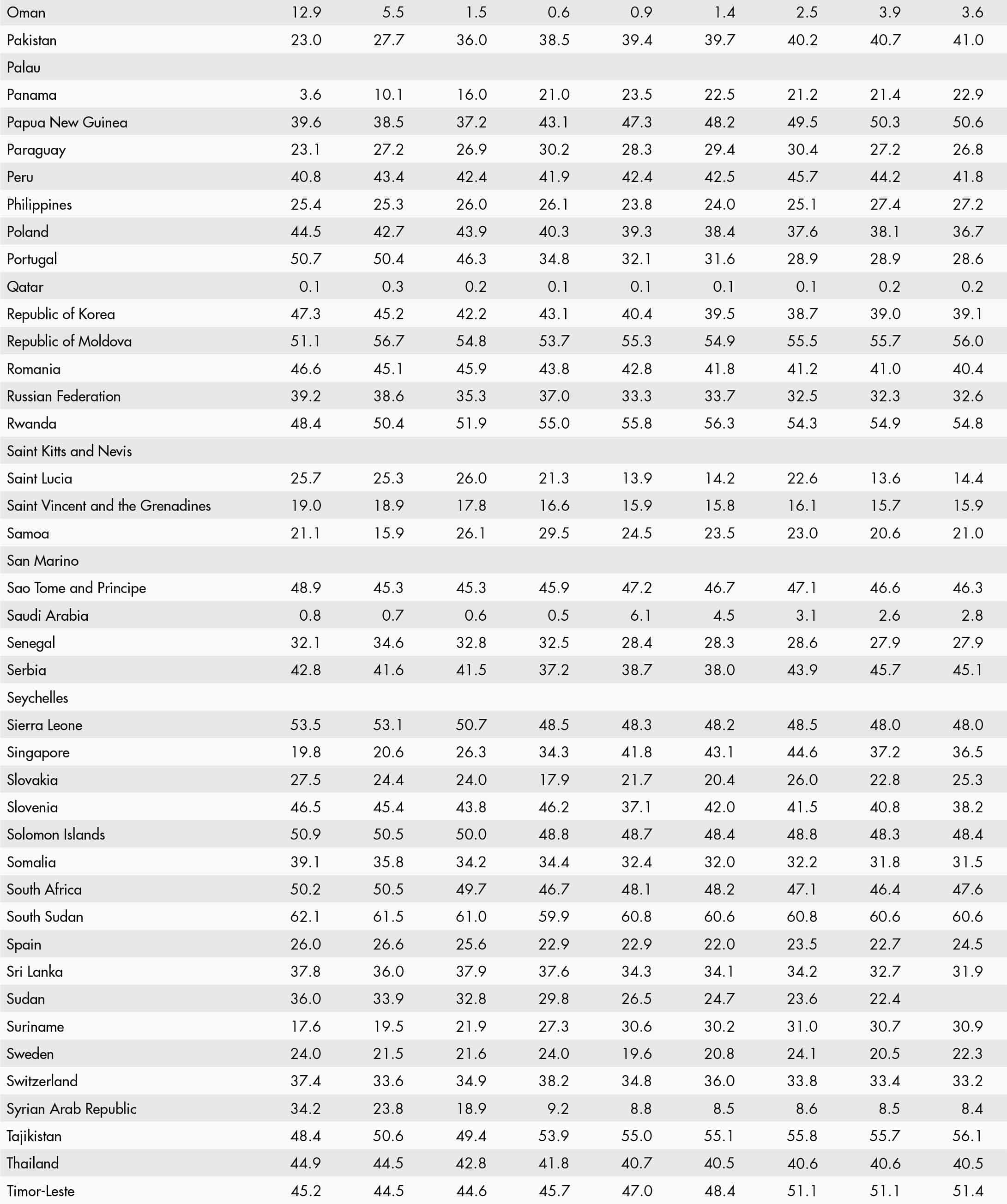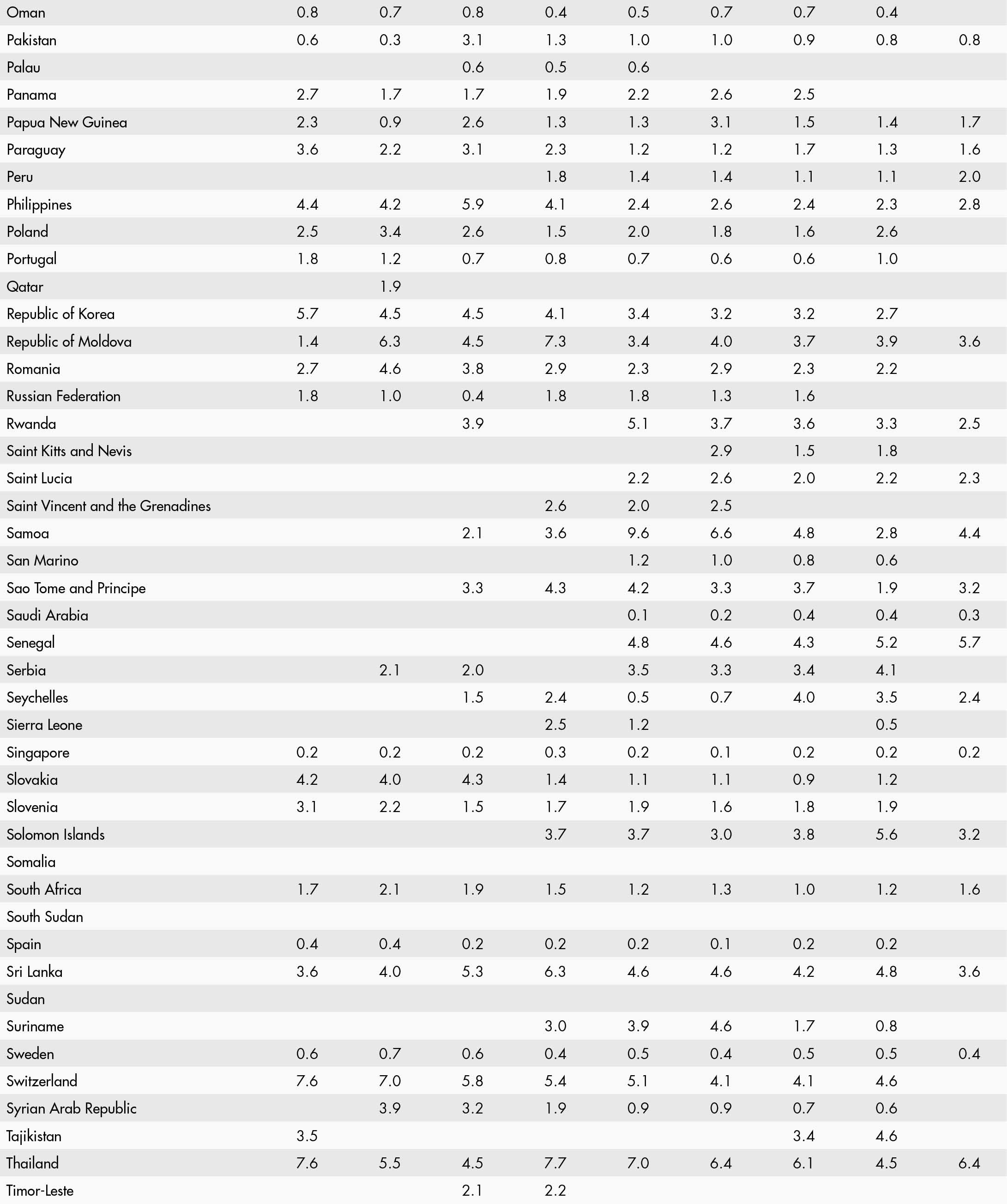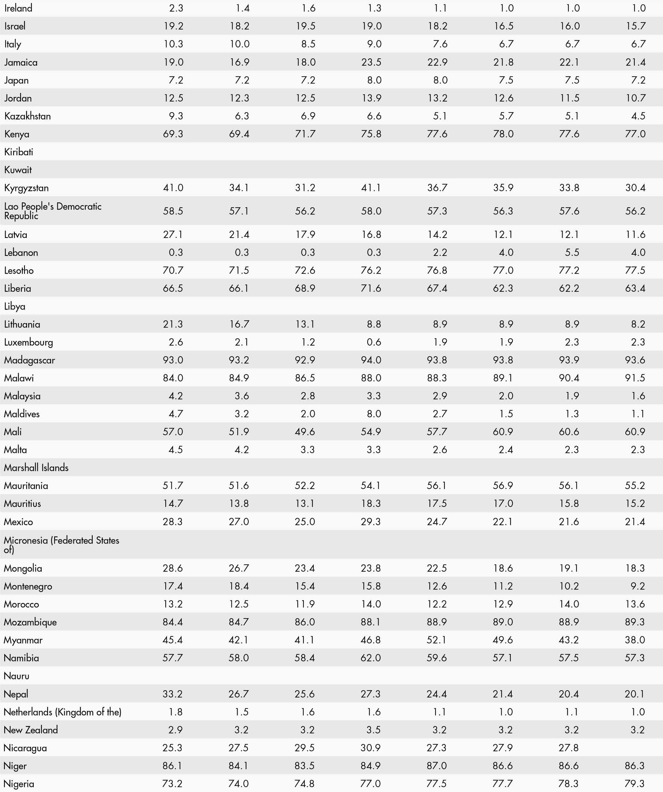 • a blank means that data are not available or that aggregates cannot be calculated because of missing data for the years shown;