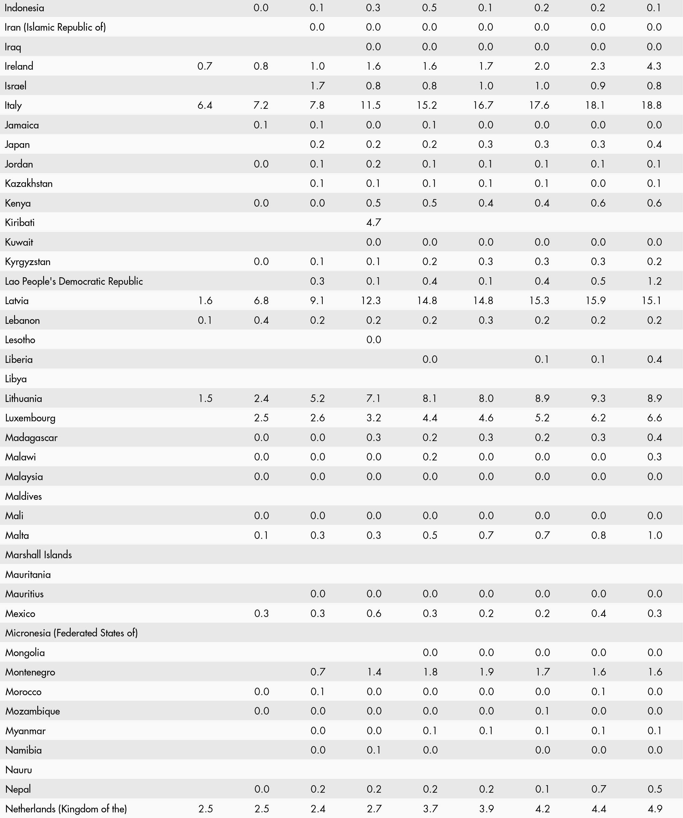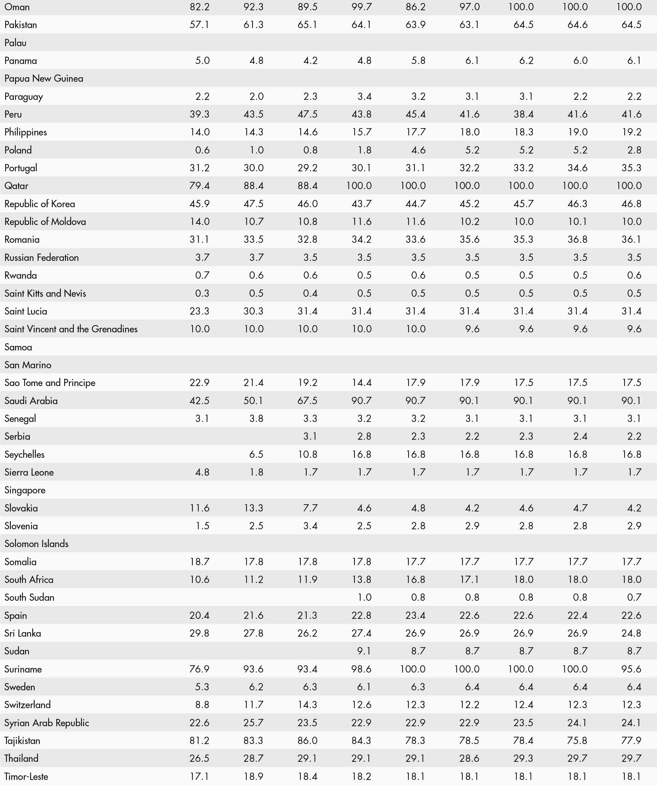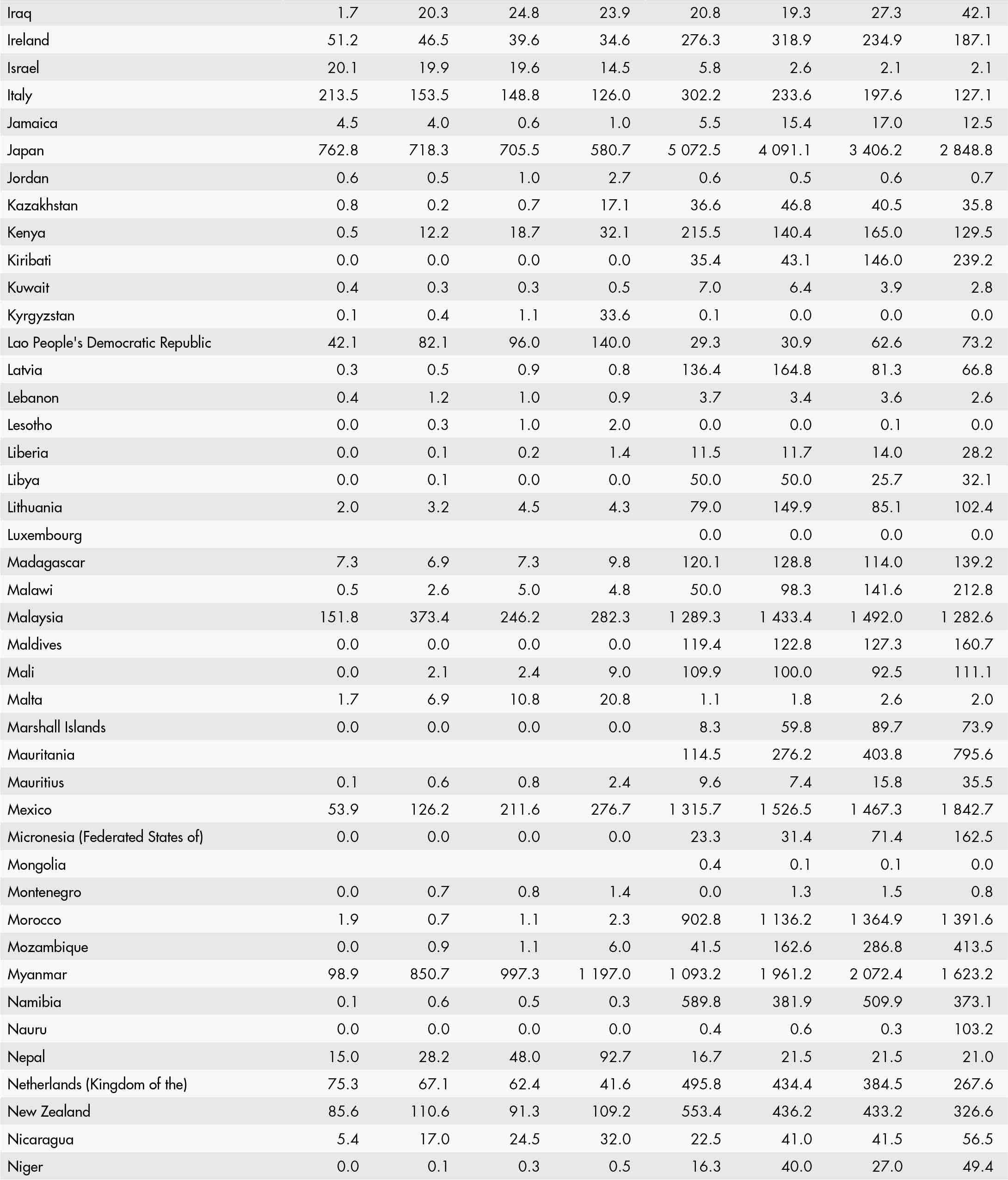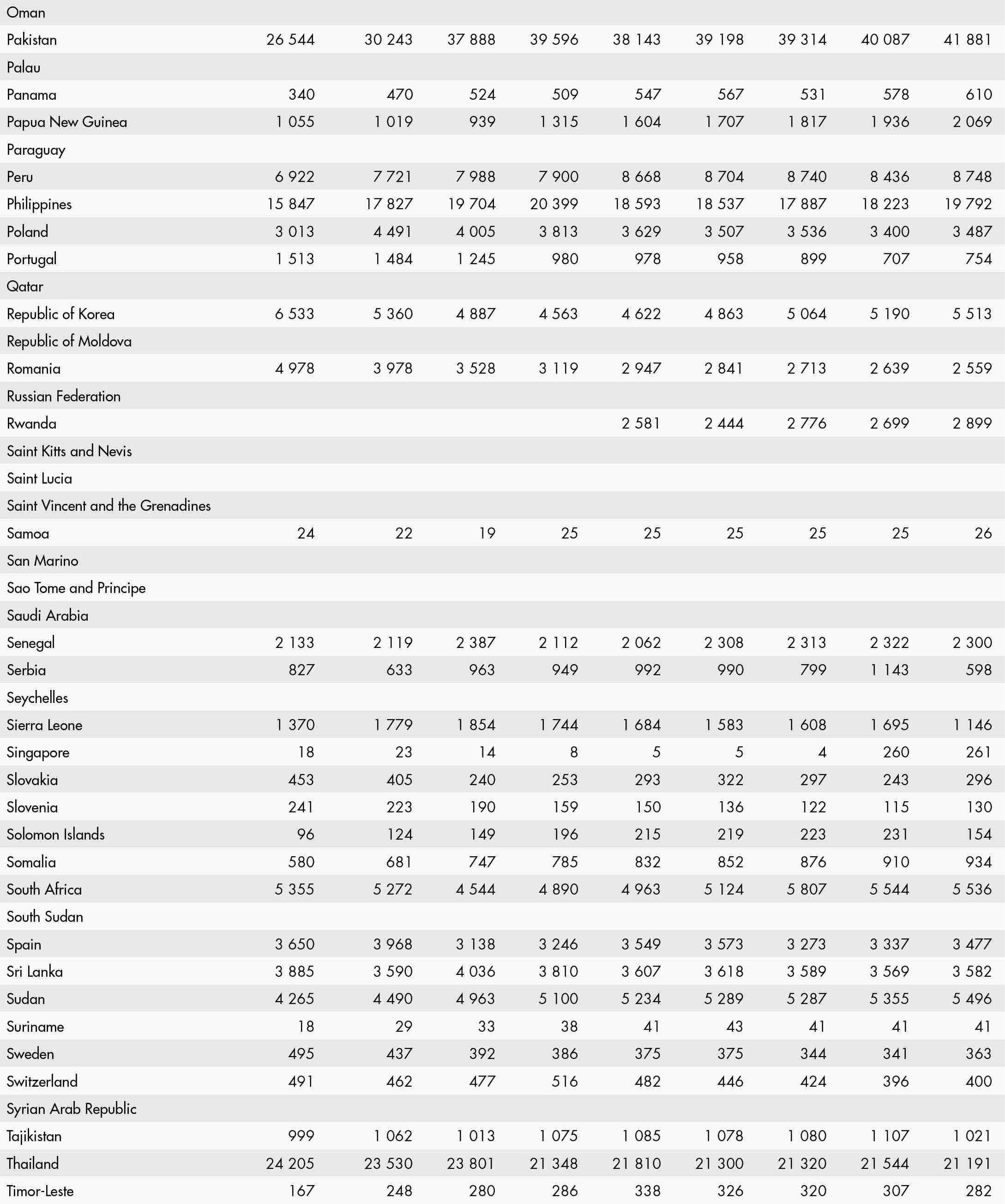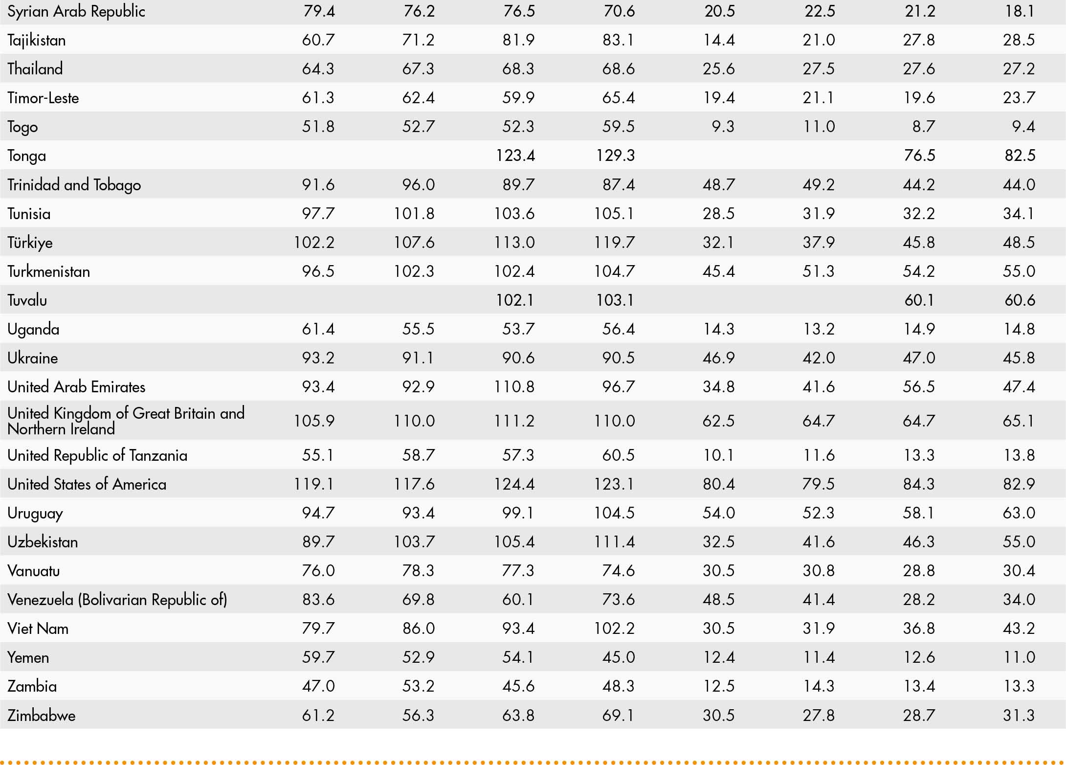 • a blank means that data are not available or that aggregates cannot be calculated because of missing data for the years shown;