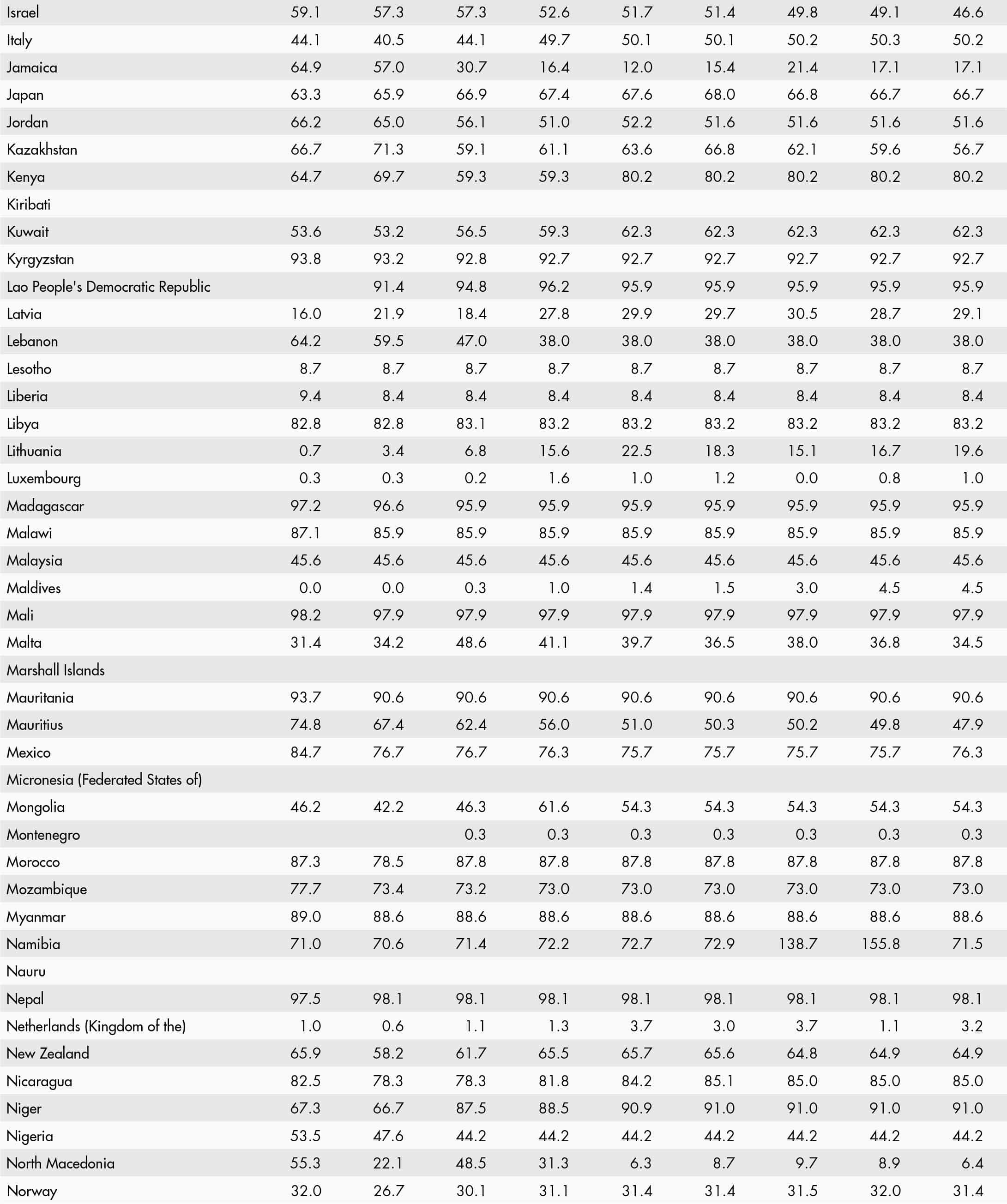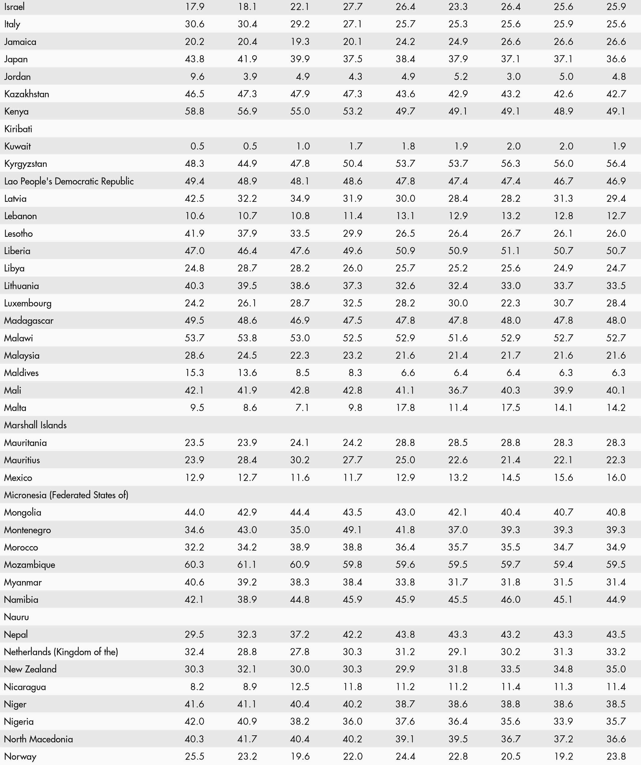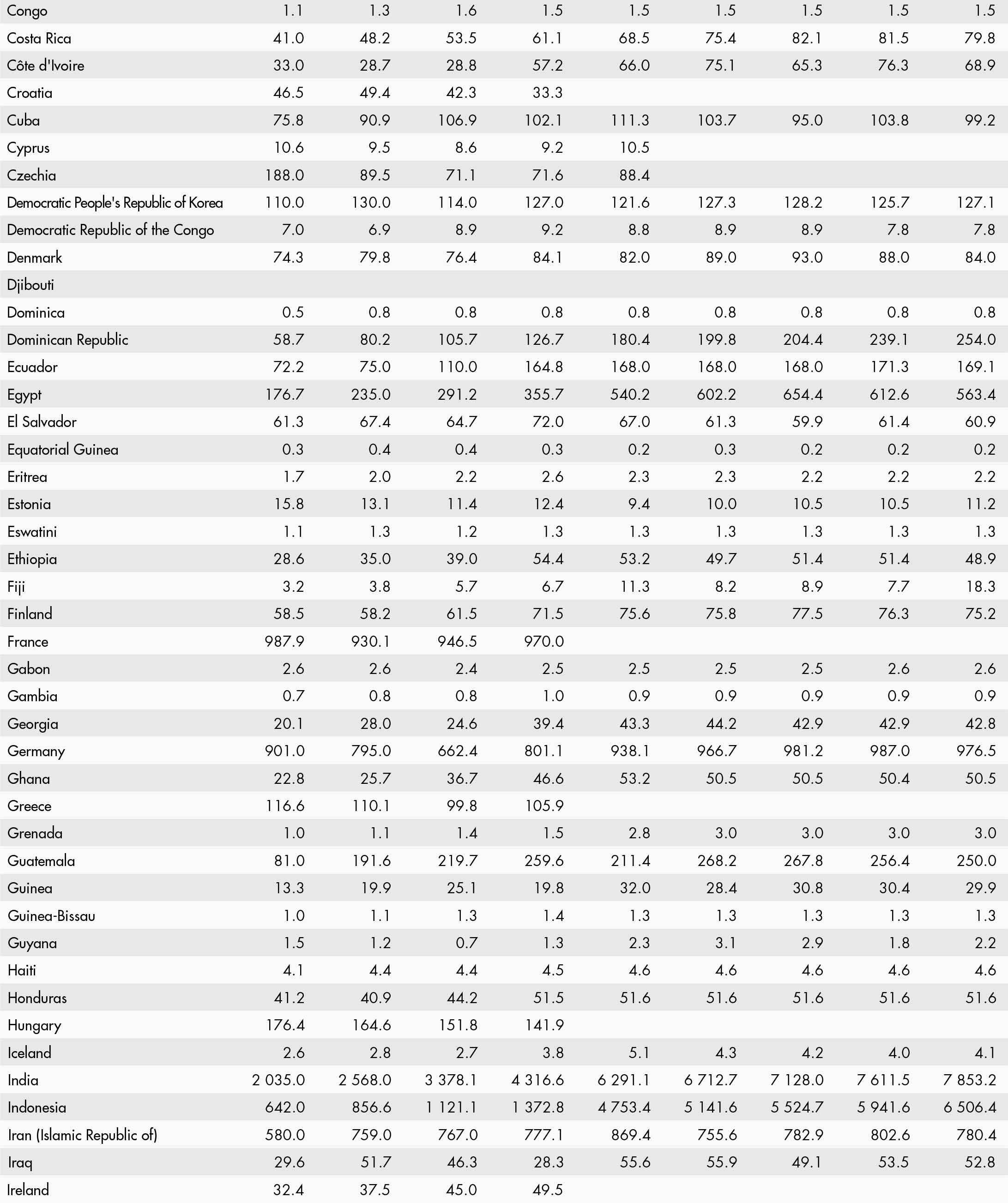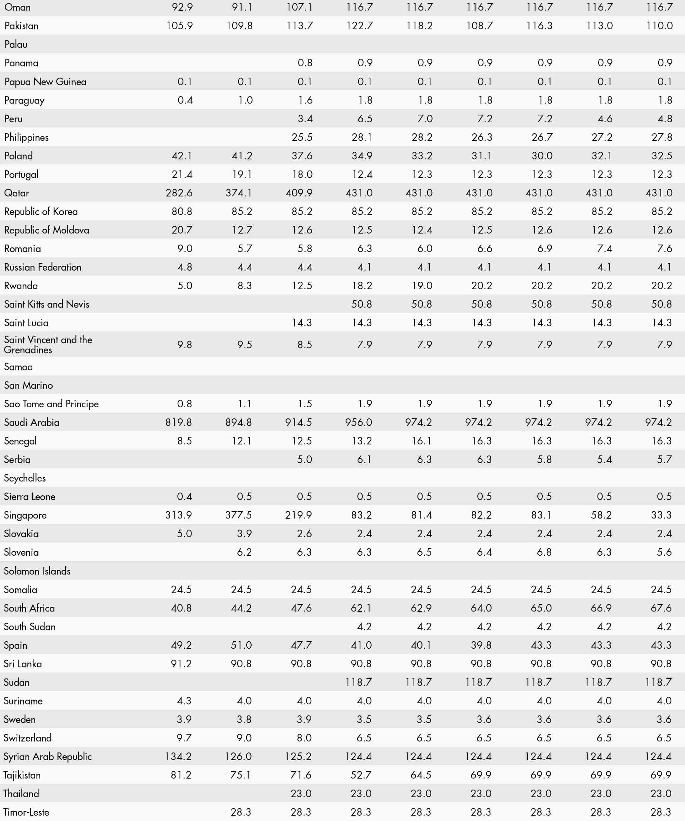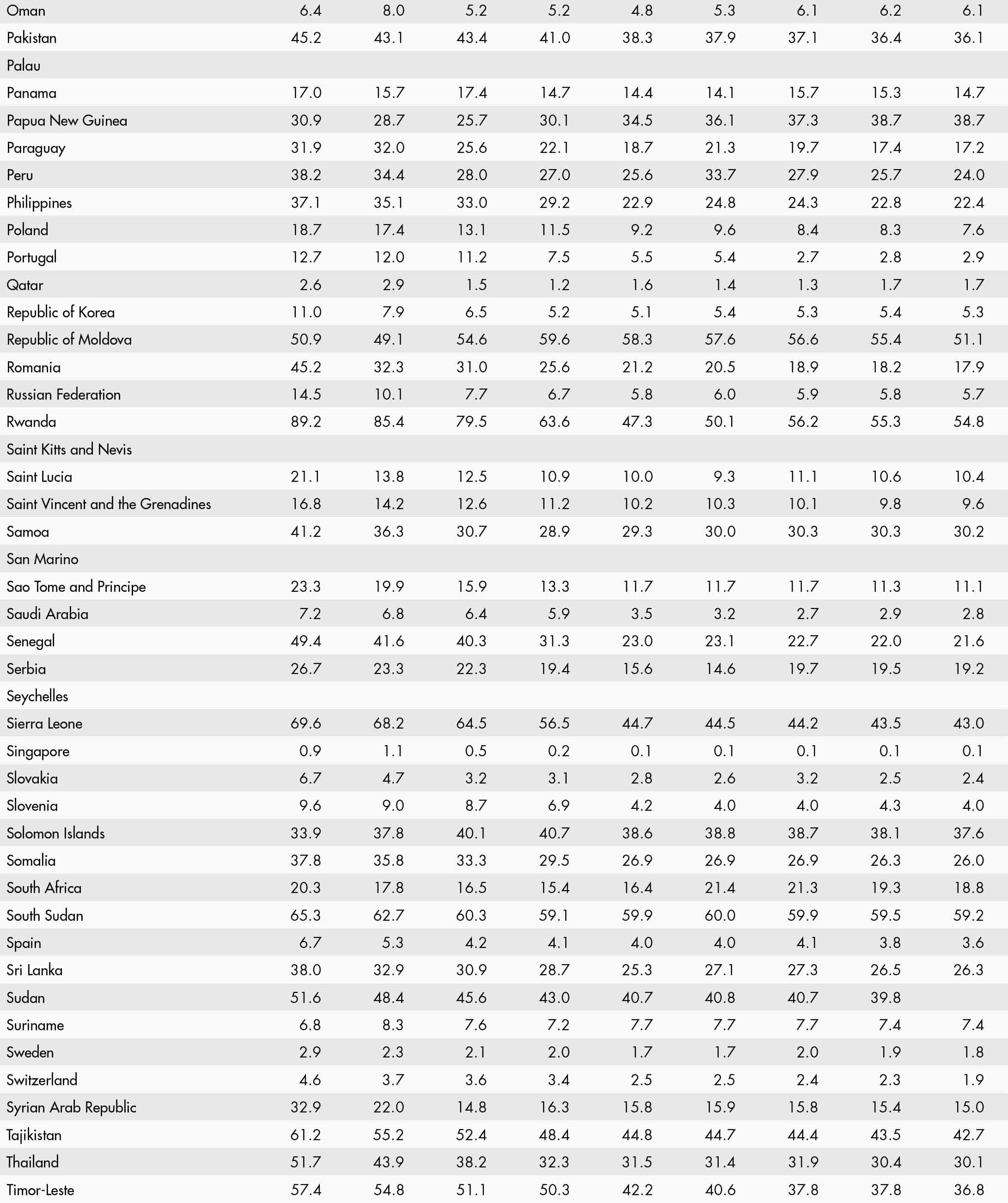 • a blank means that data are not available or that aggregates cannot be calculated because of missing data for the years shown;