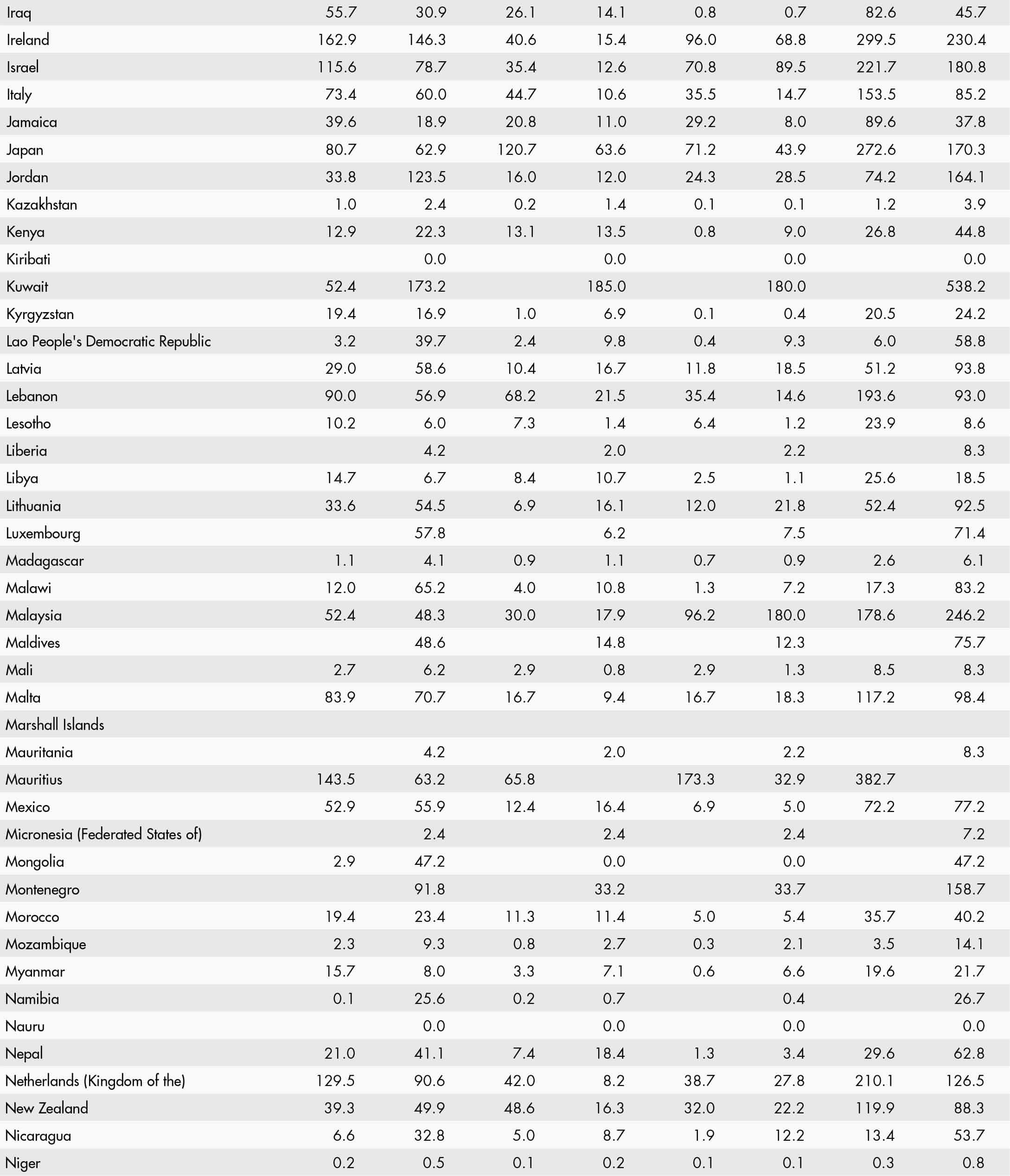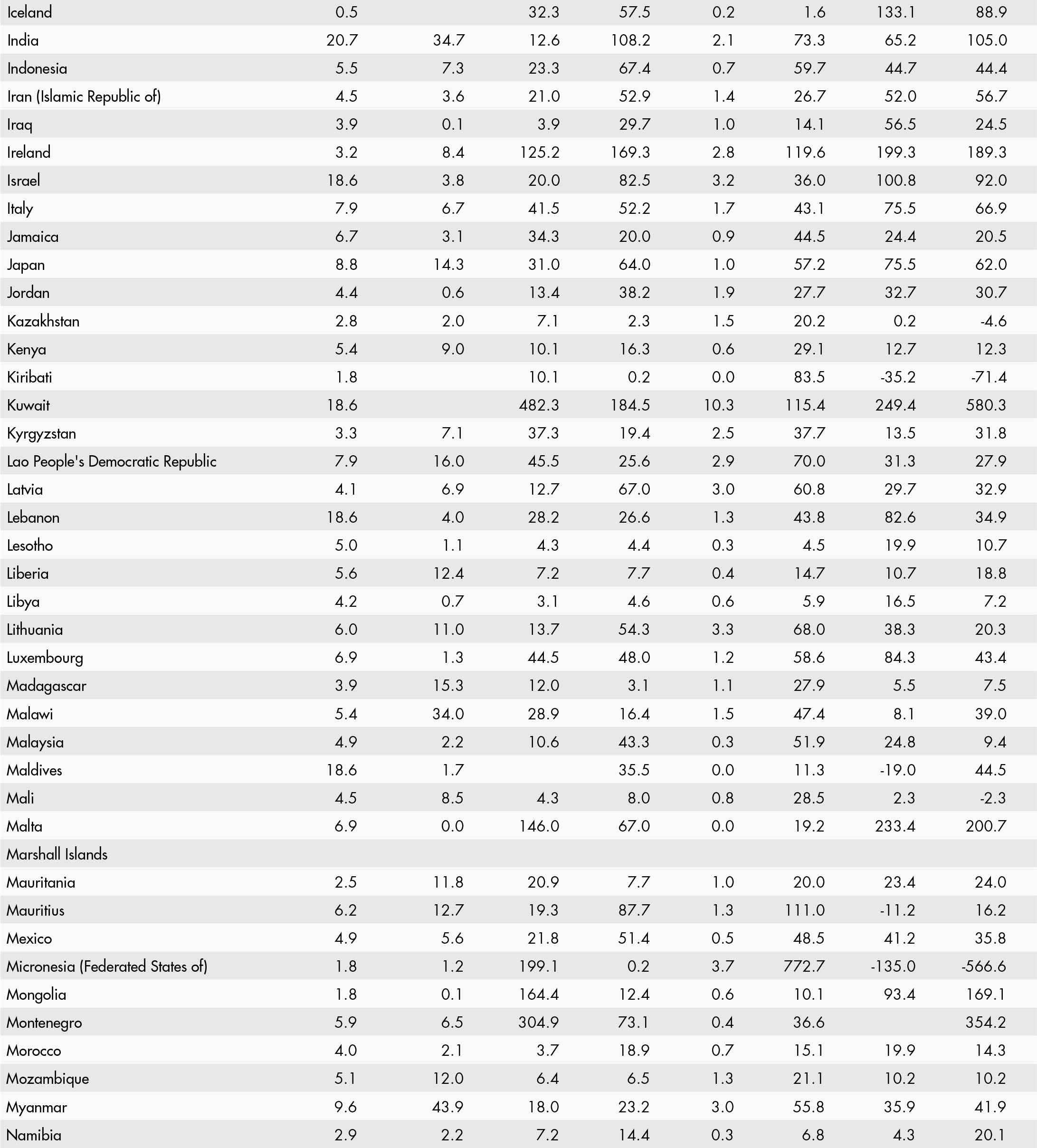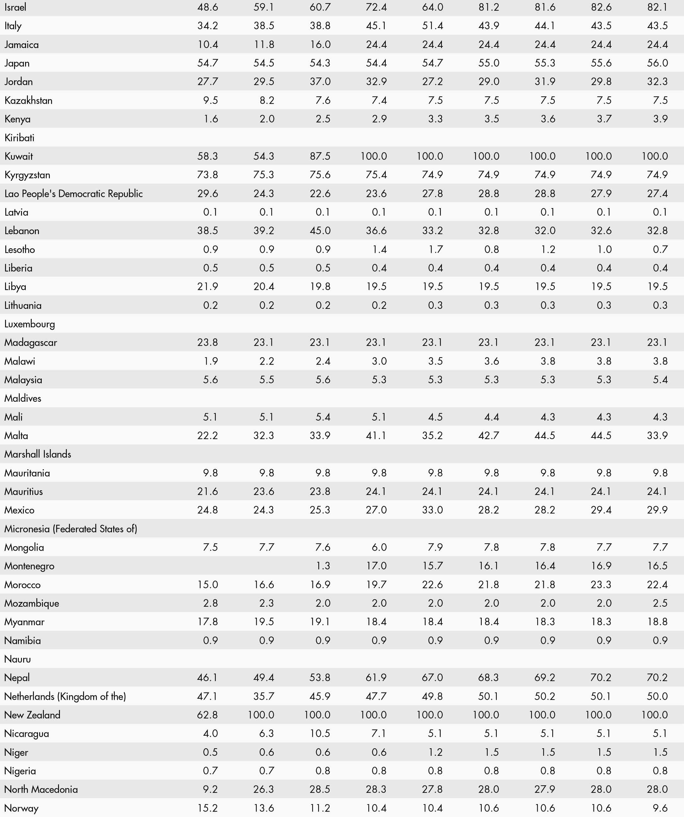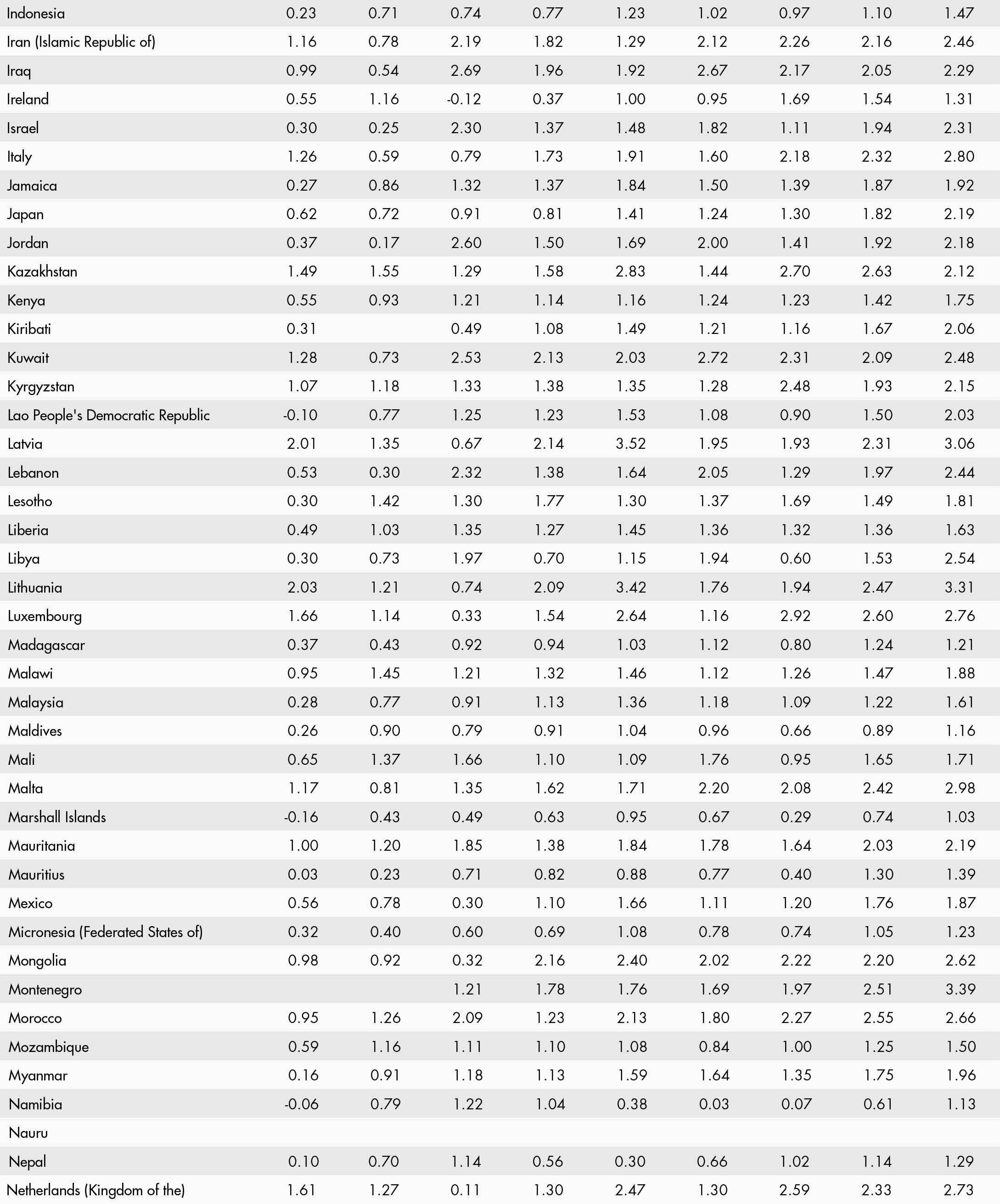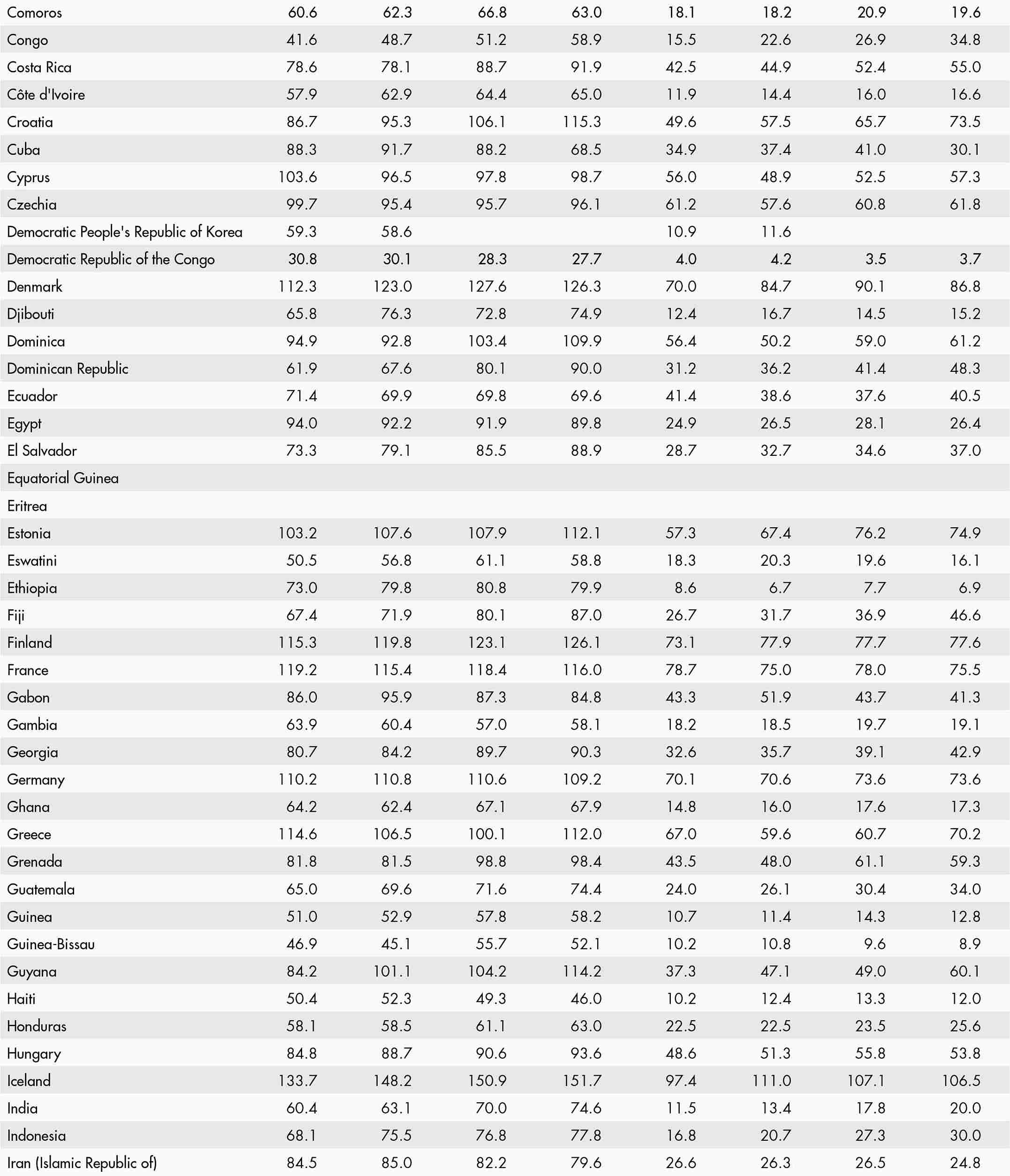 • a blank means that data are not available or that aggregates cannot be calculated because of missing data for the years shown;