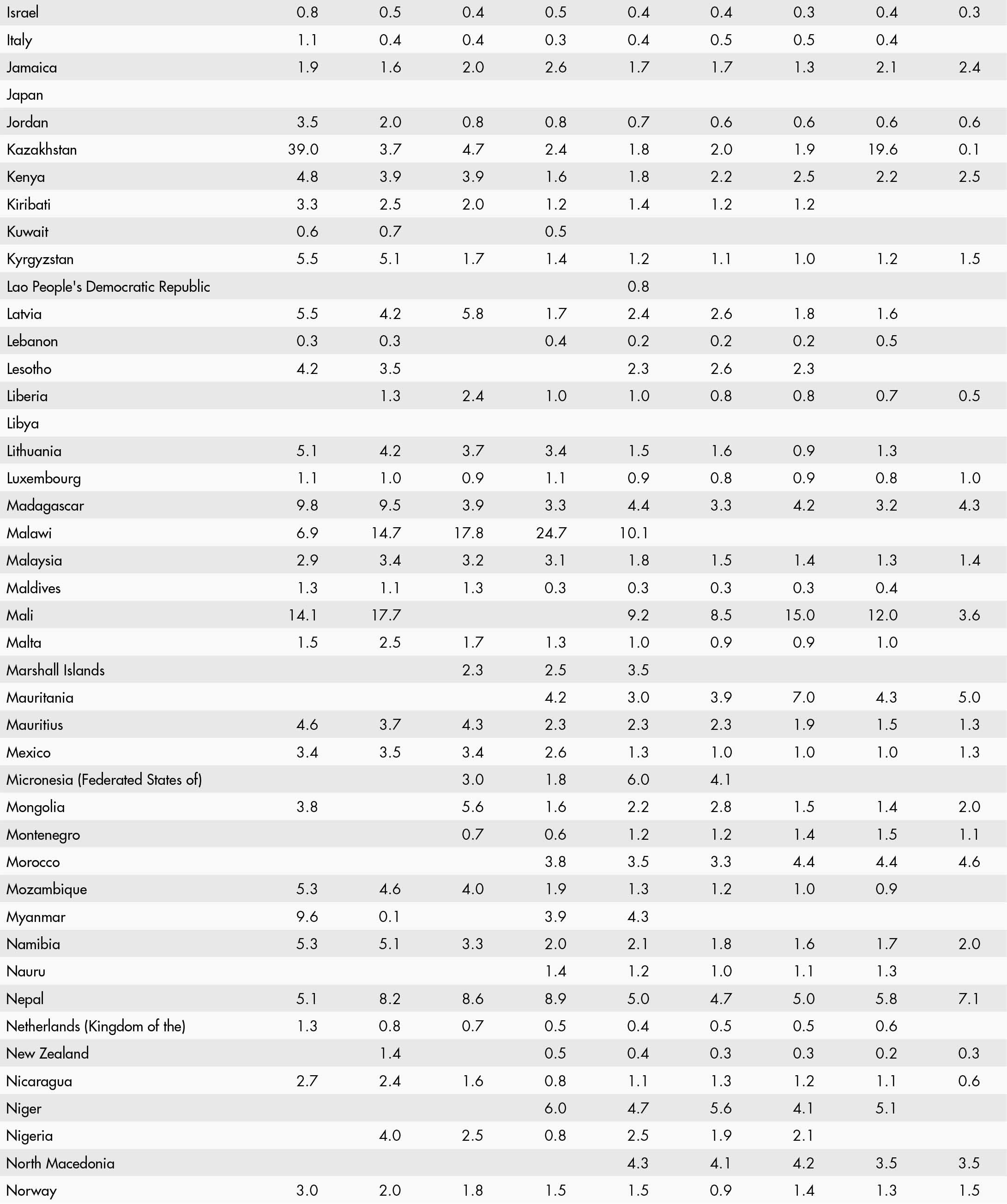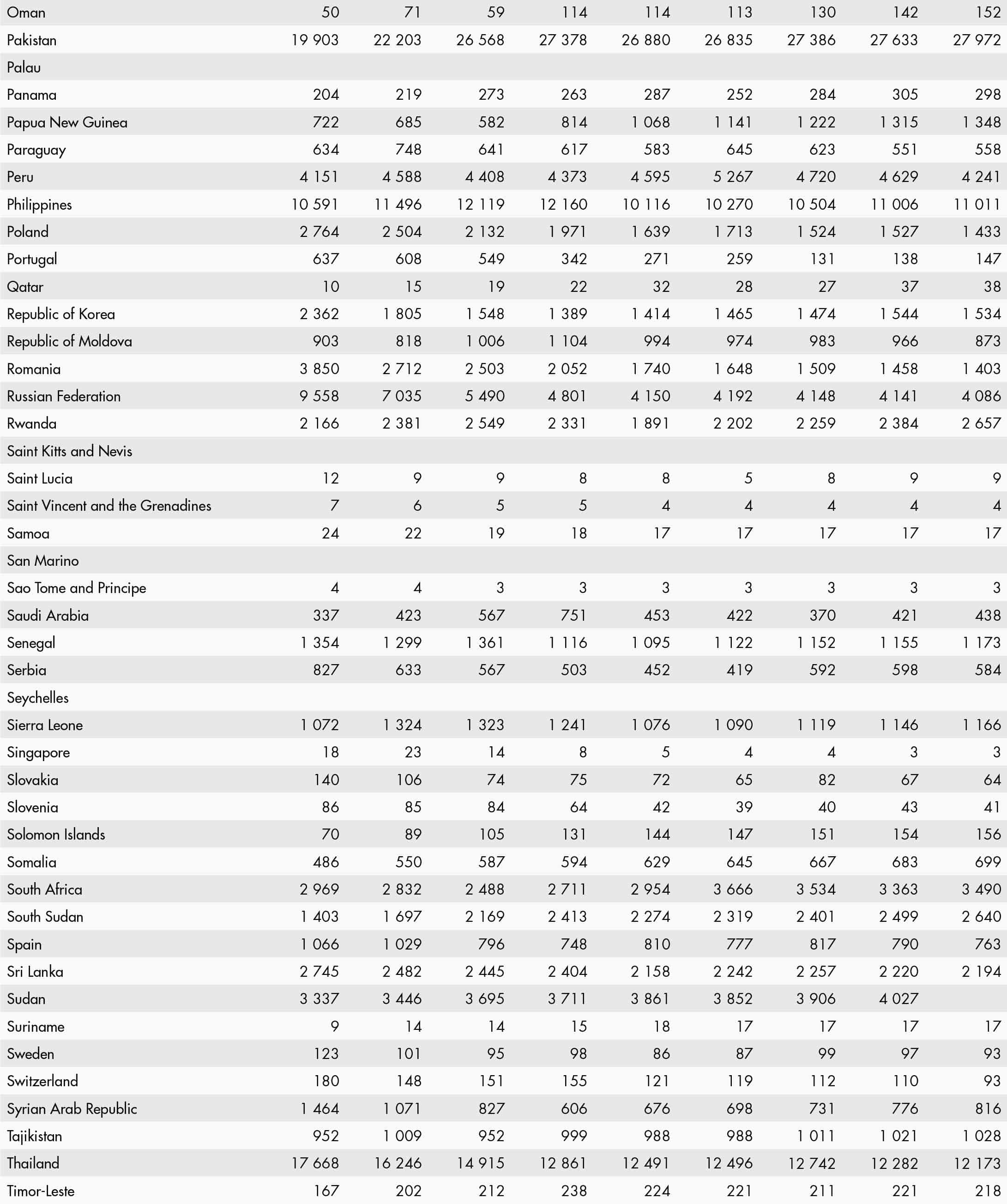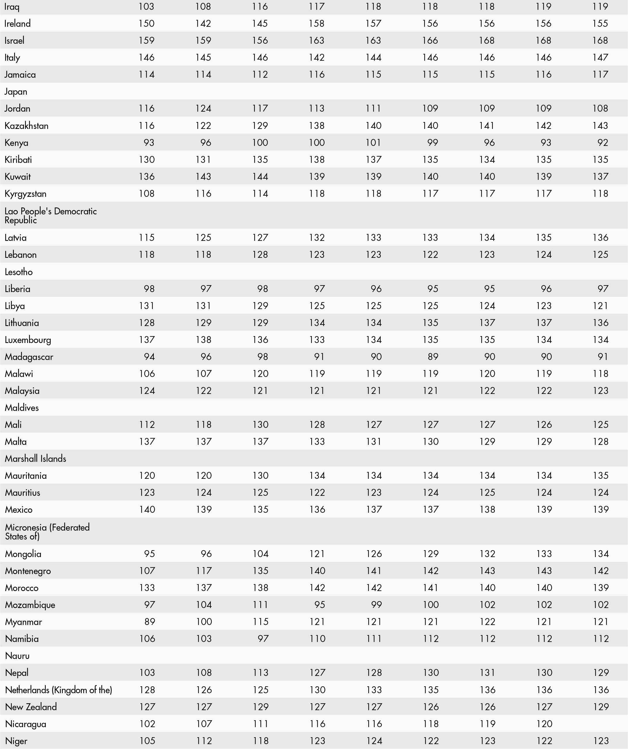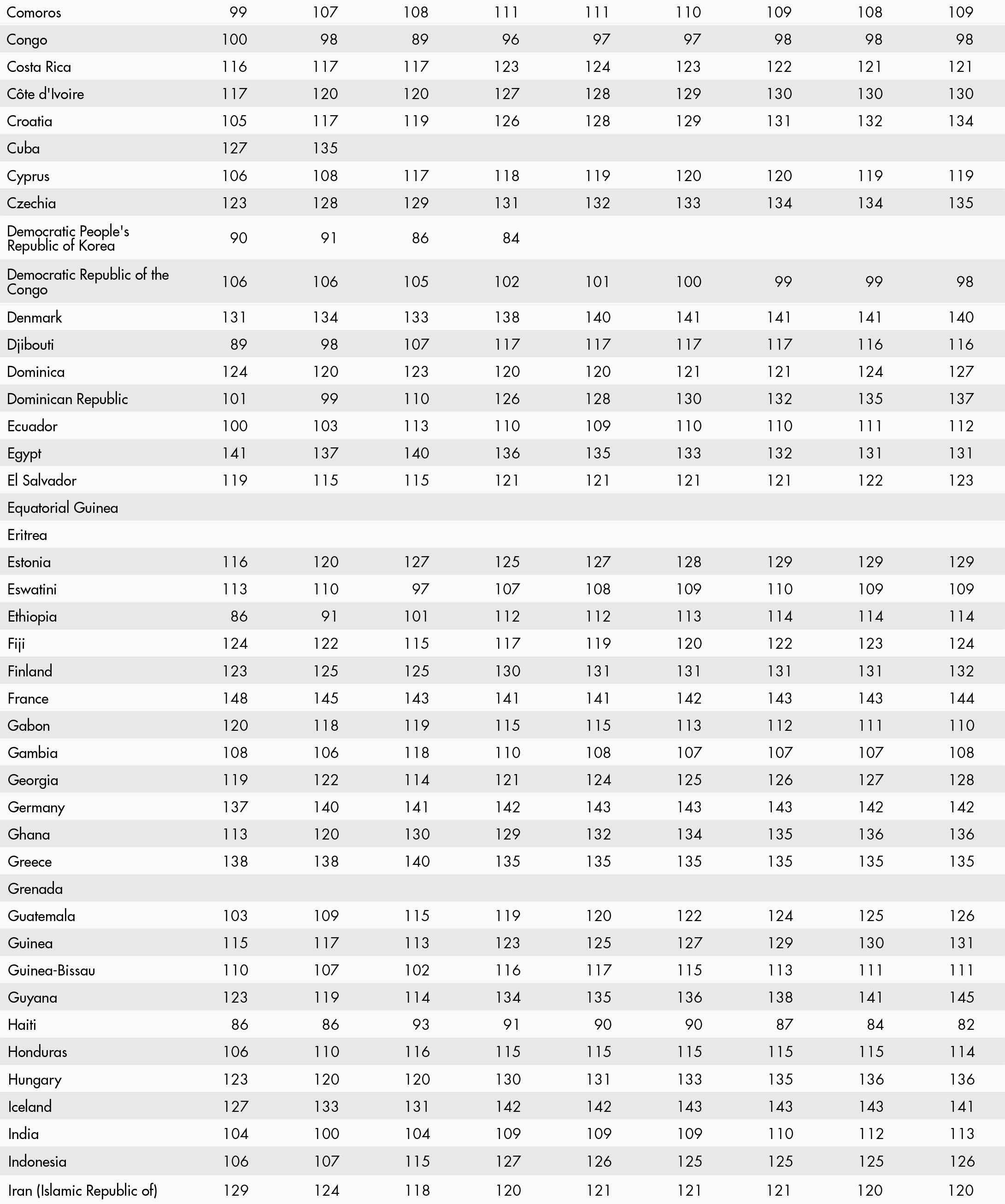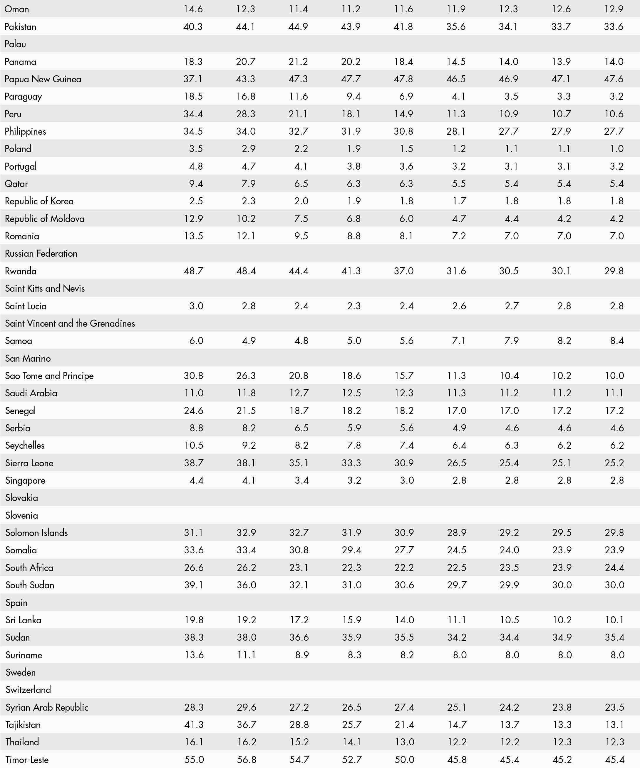 • a blank means that data are not available or that aggregates cannot be calculated because of missing data for the years shown;