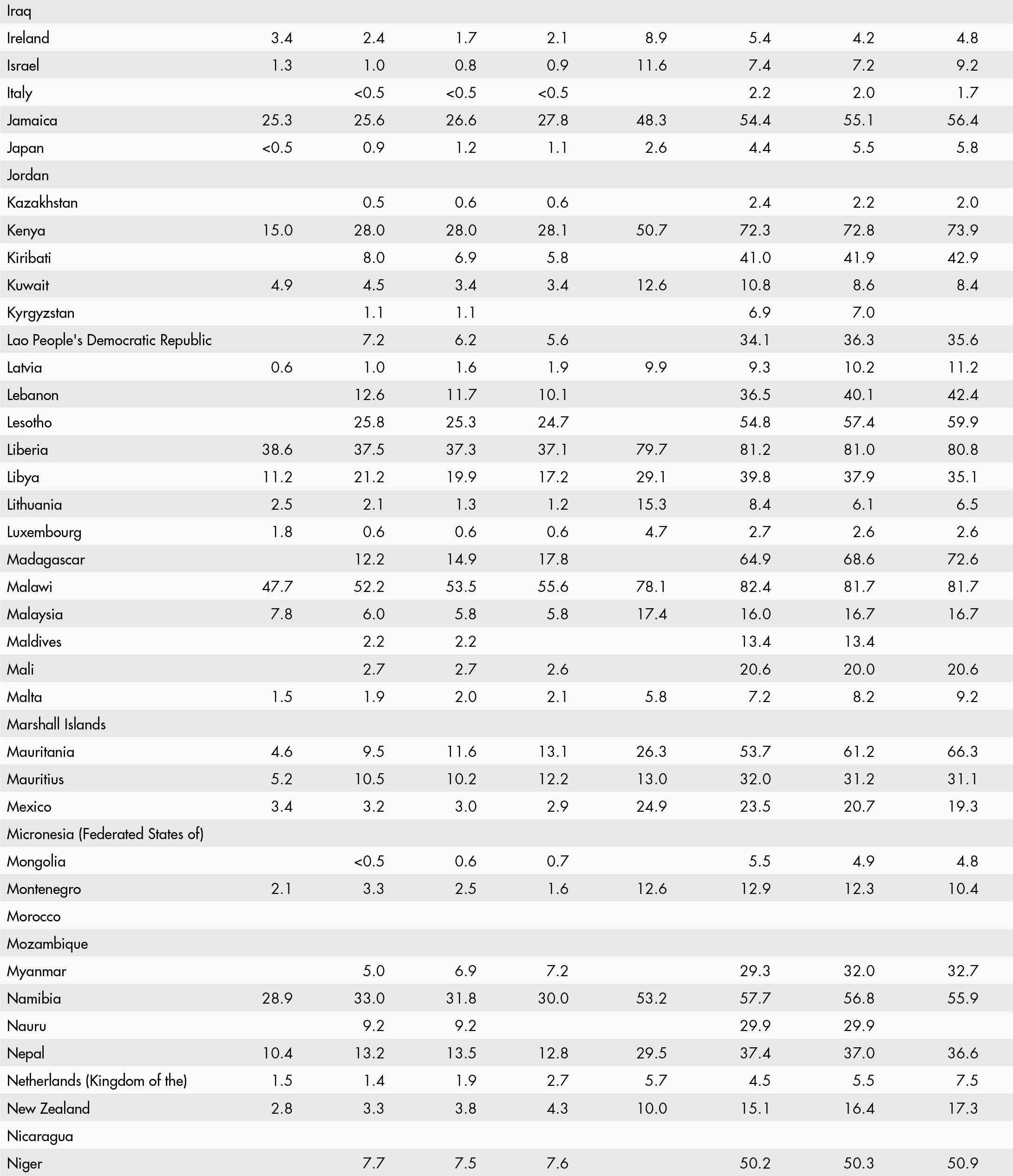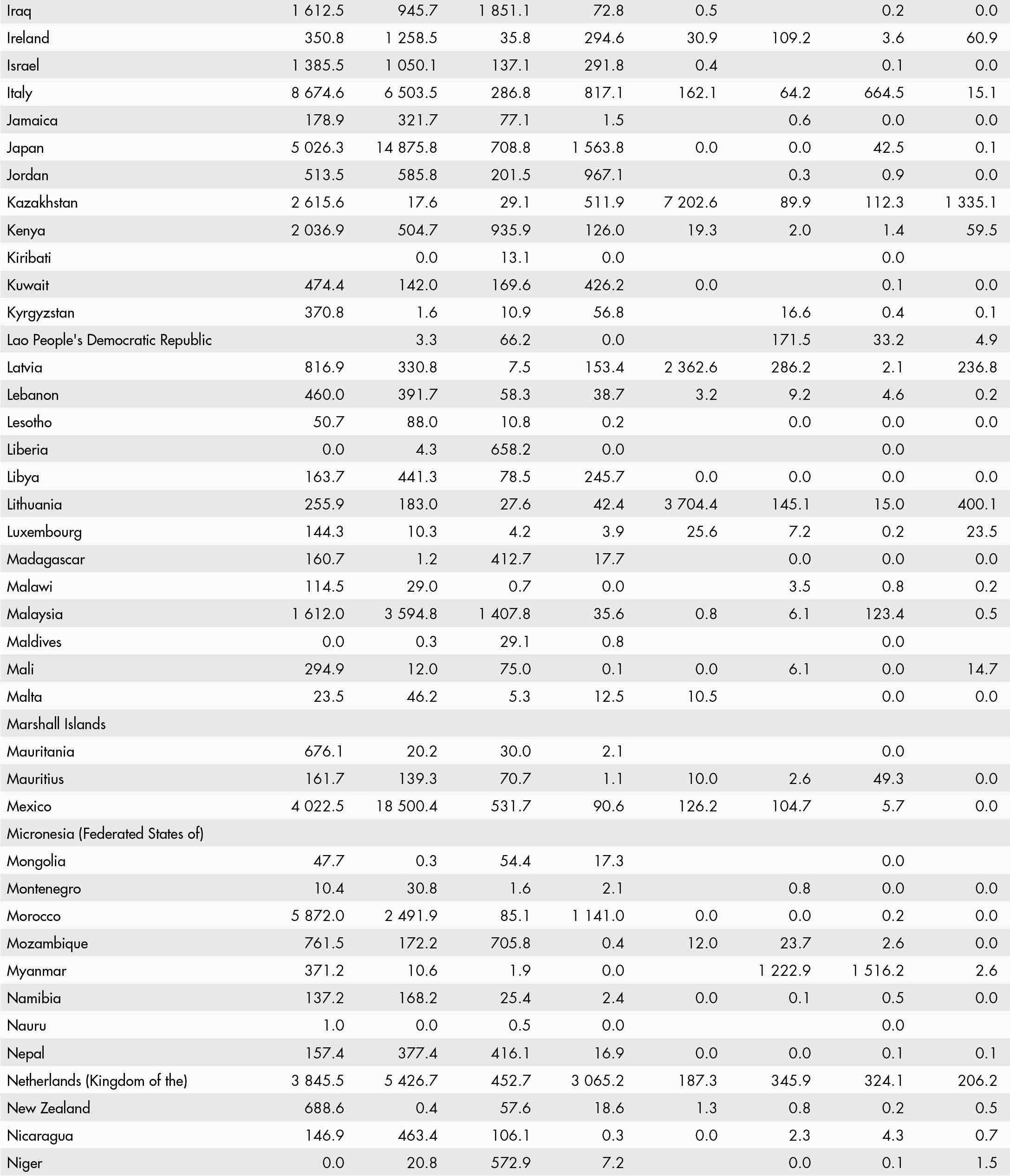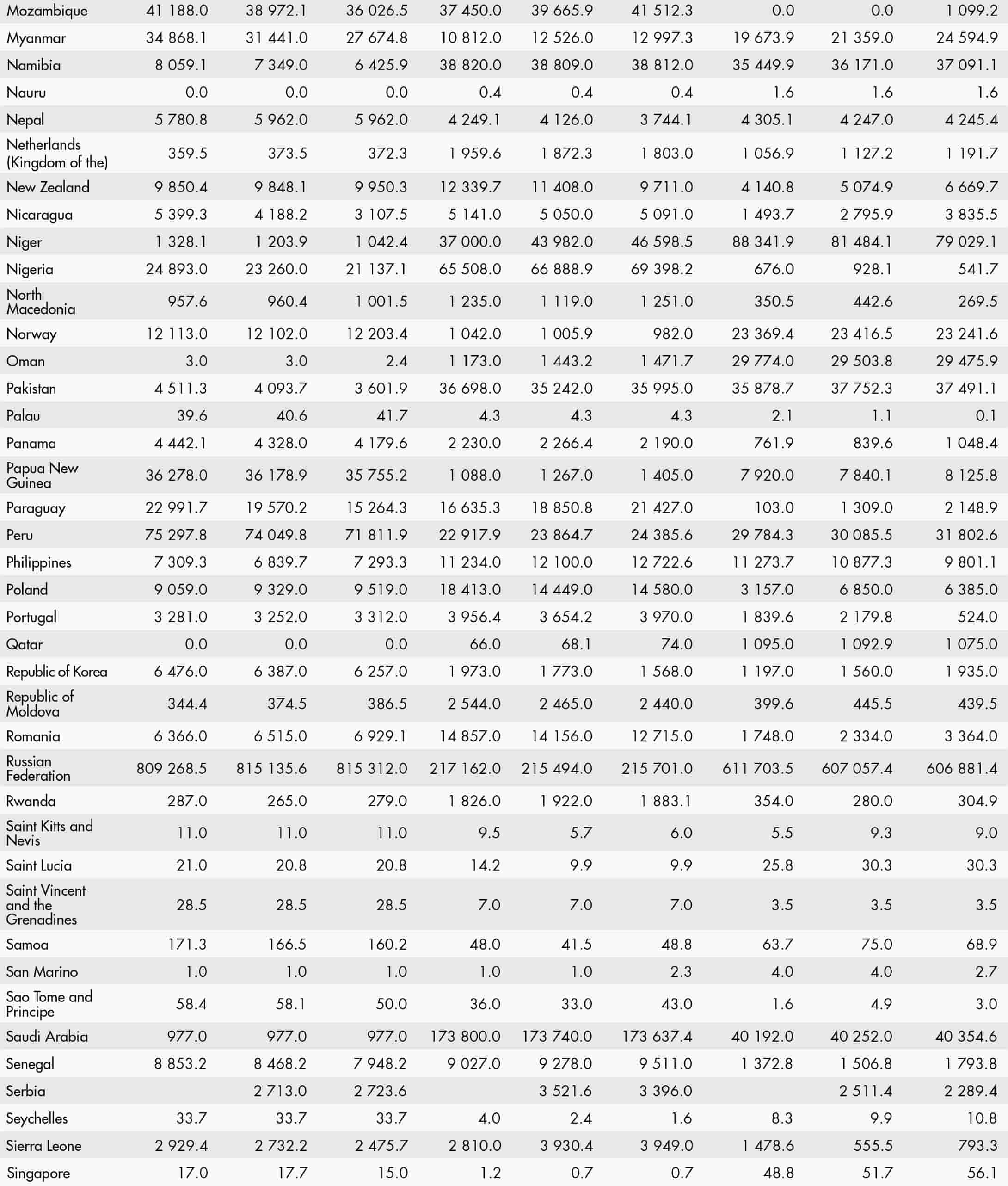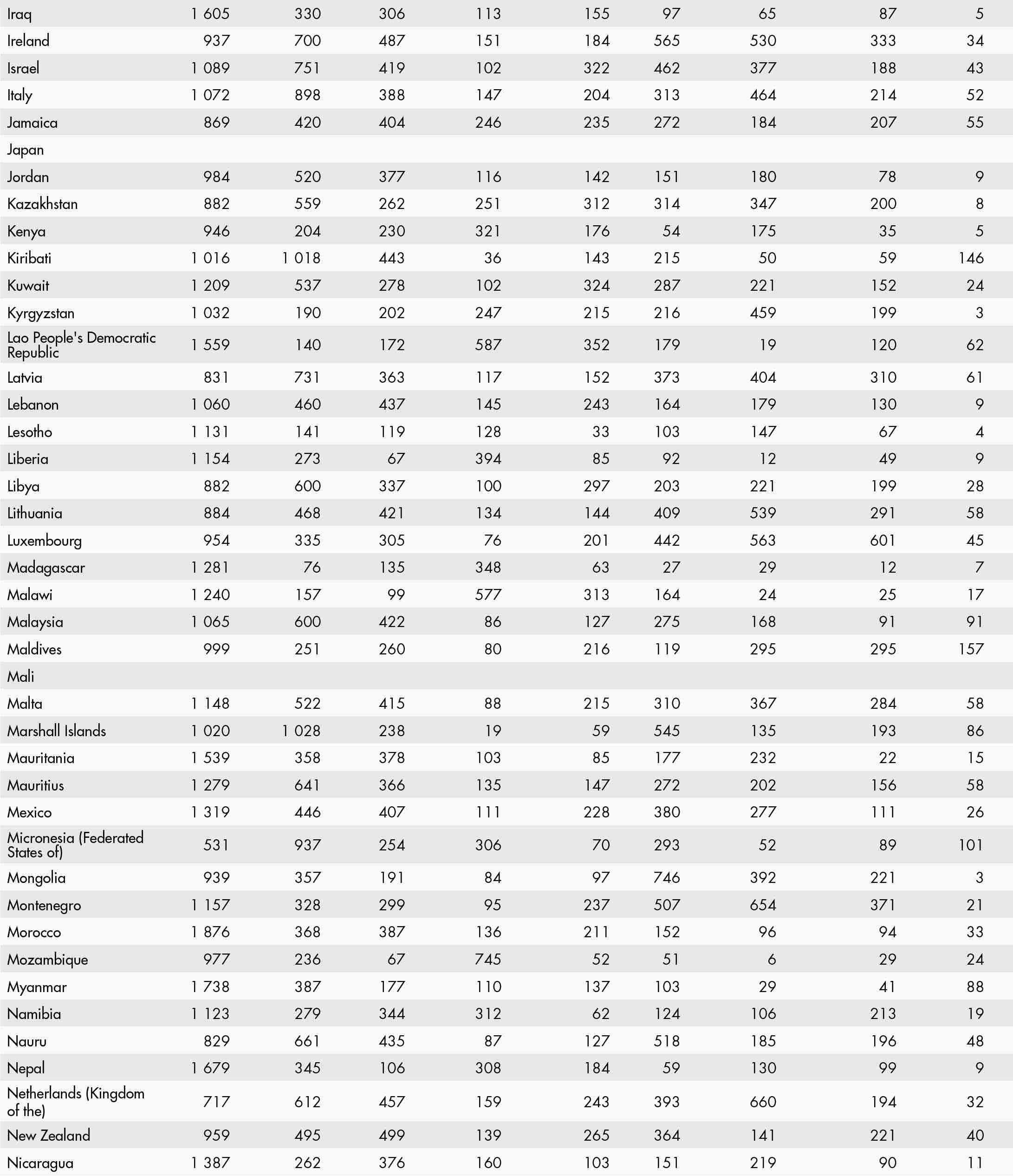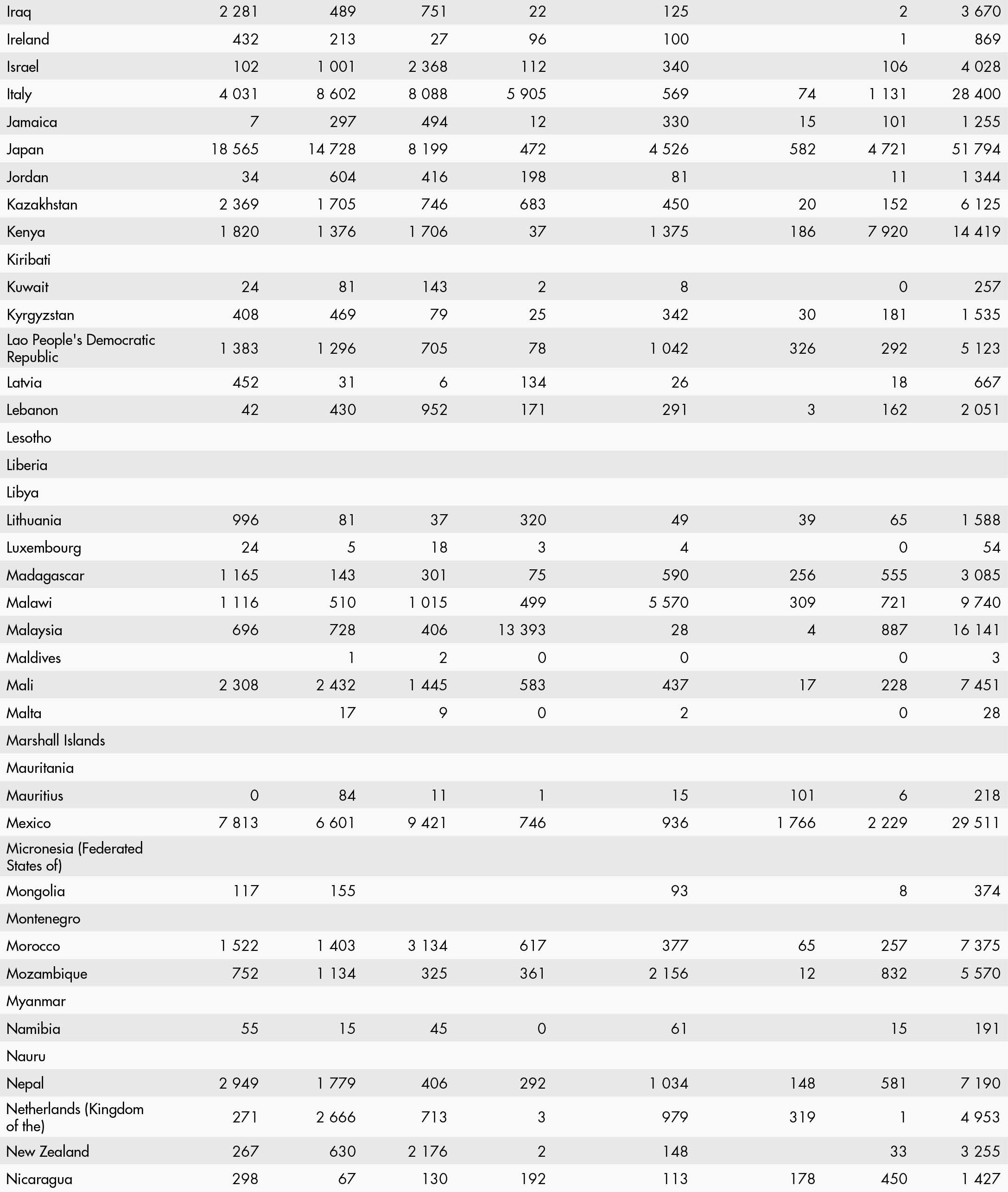 • a blank means that data are not available or that aggregates cannot be calculated because of missing data for the years shown;