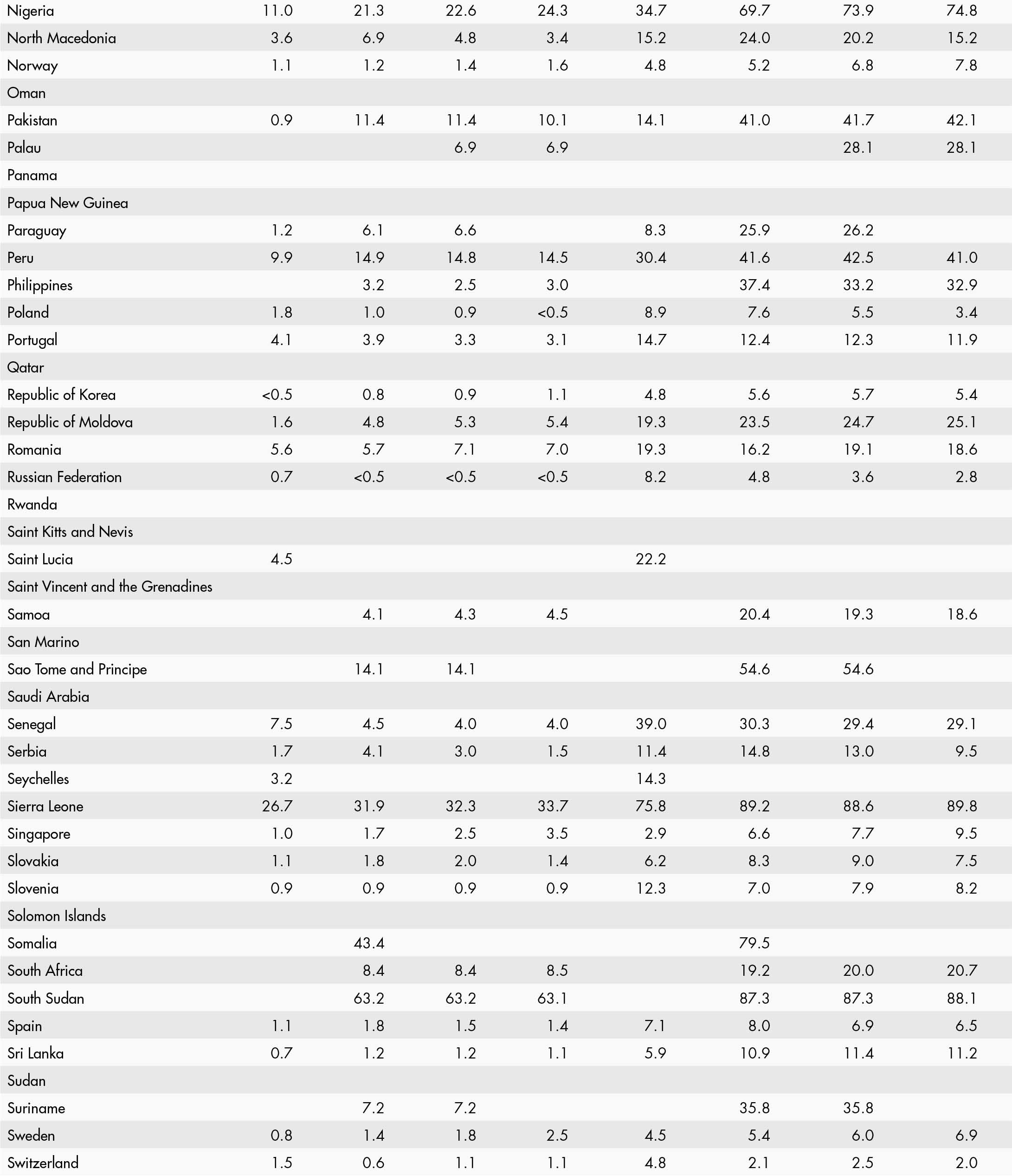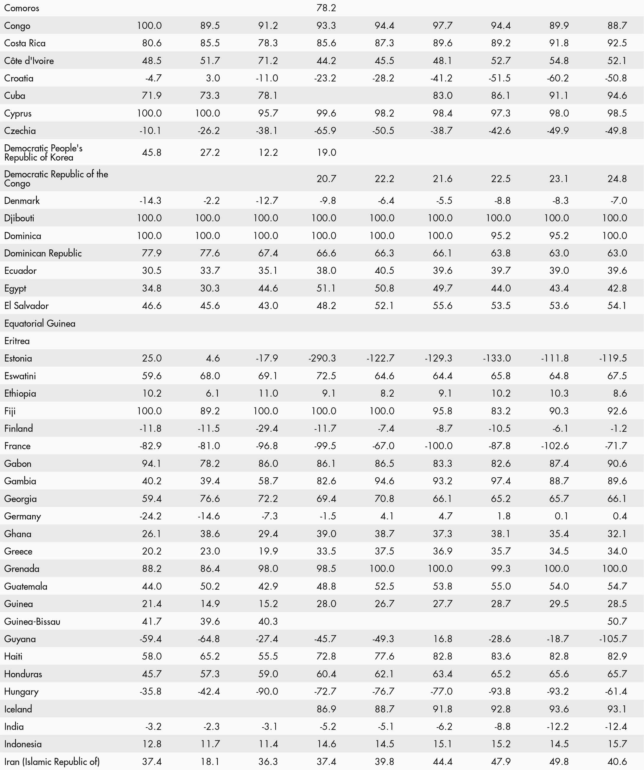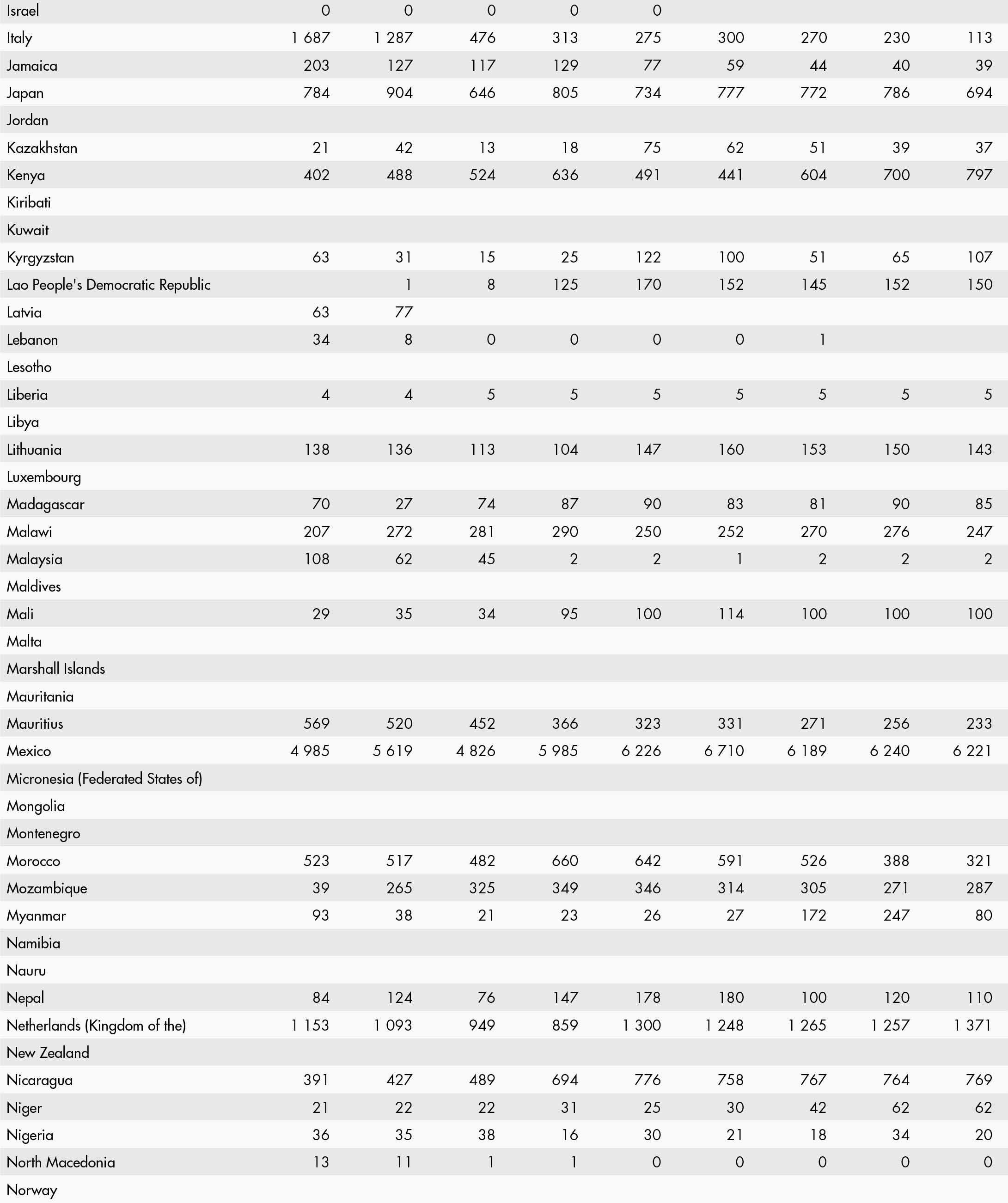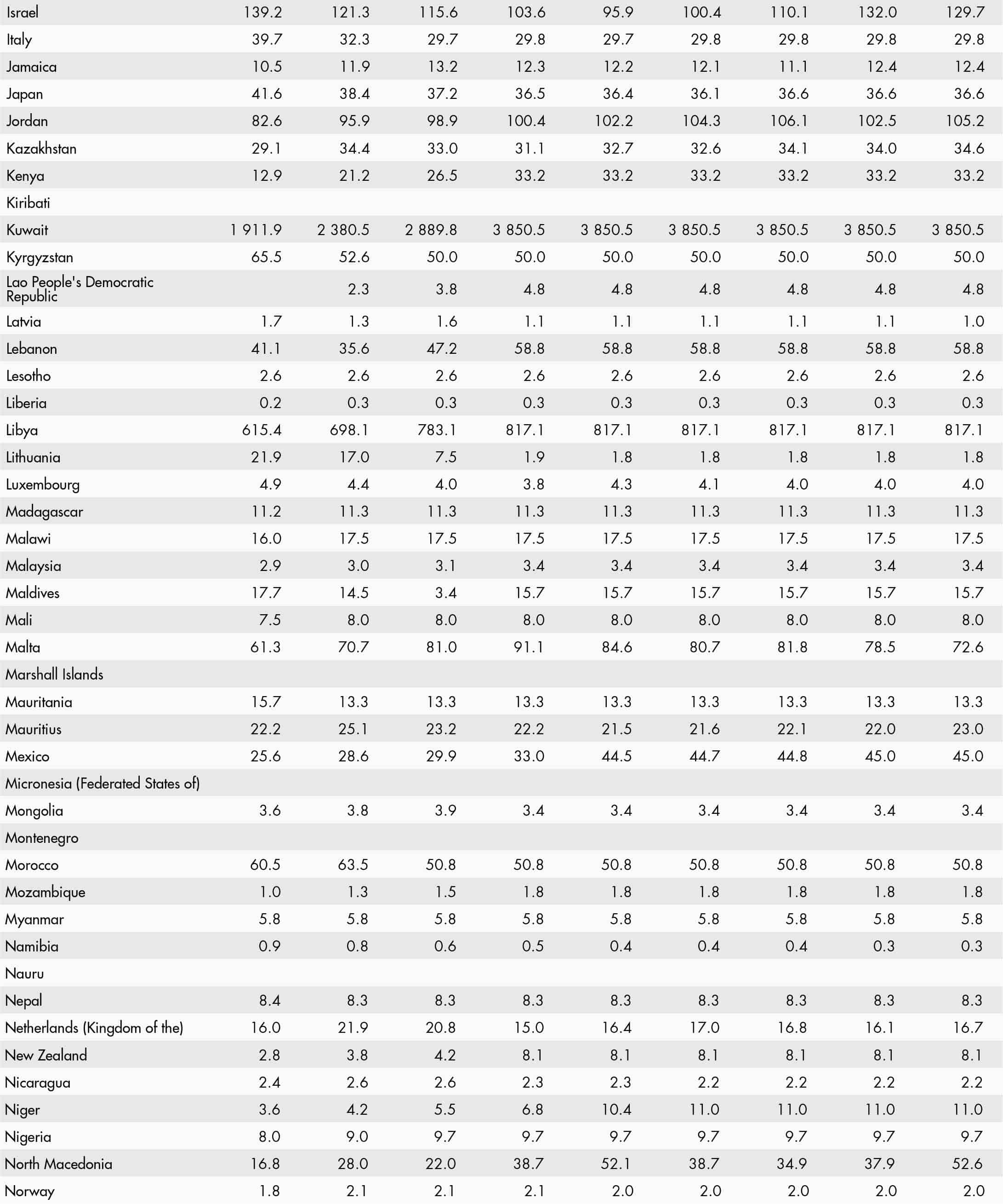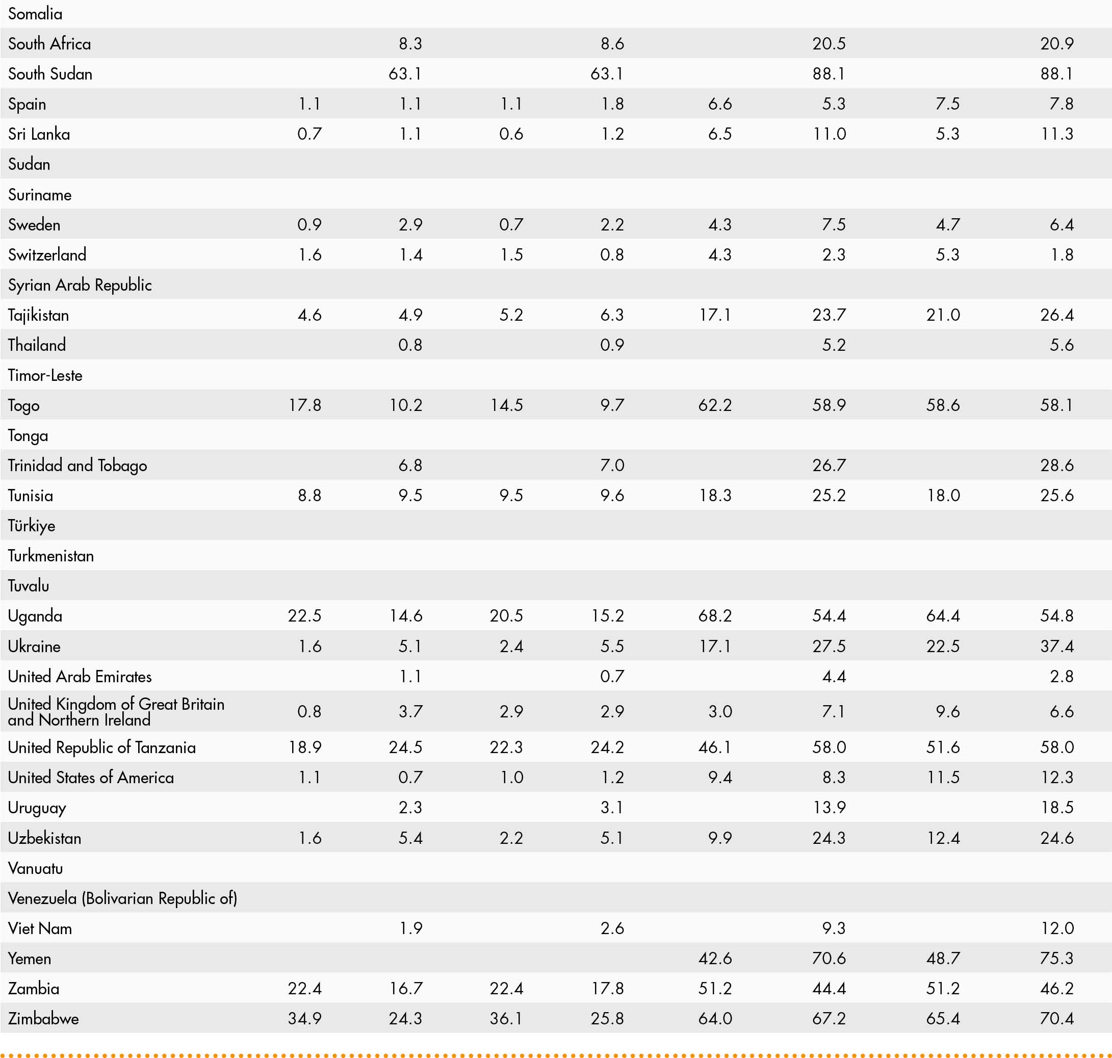 • a blank means that data are not available or that aggregates cannot be calculated because of missing data for the years shown;