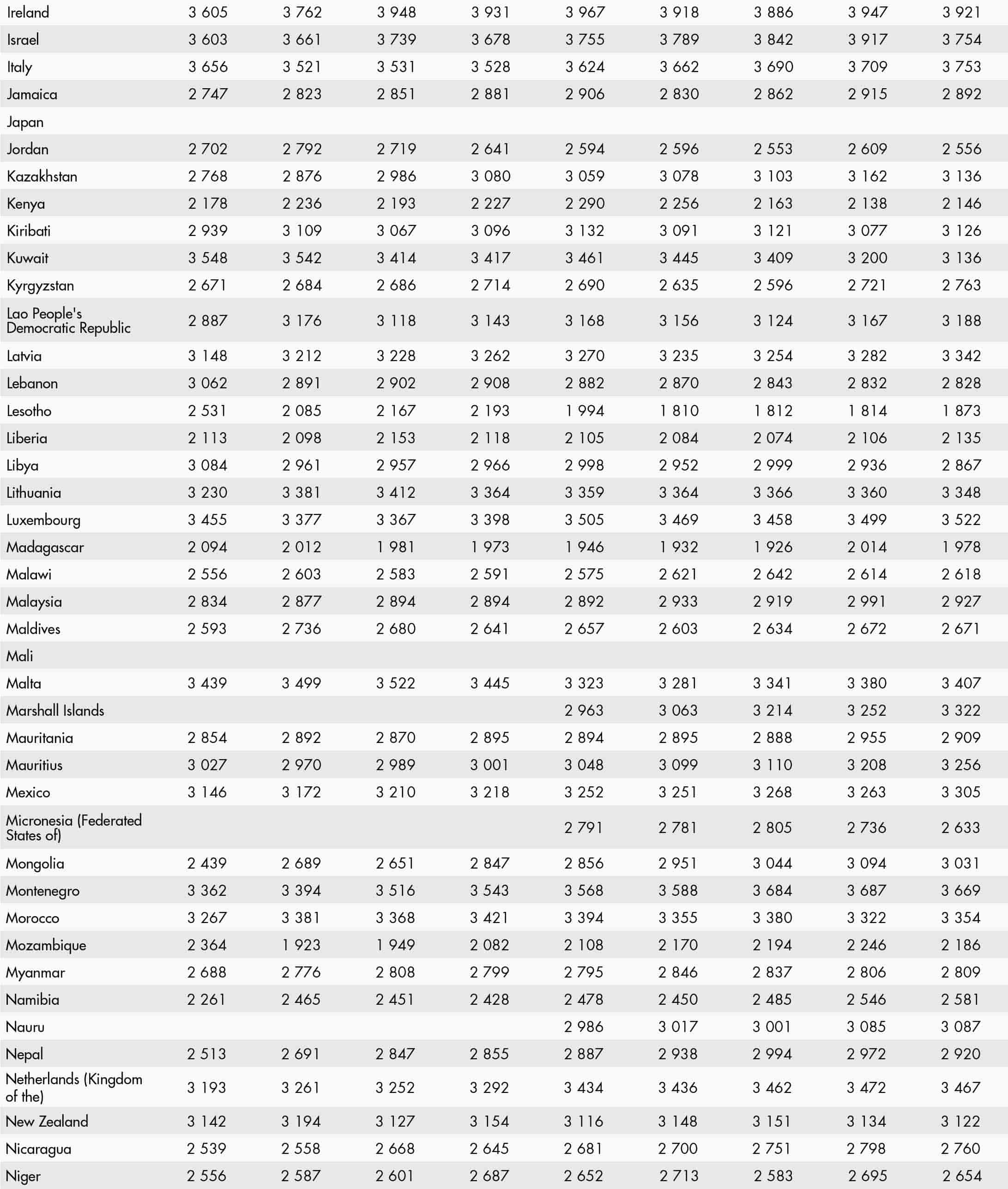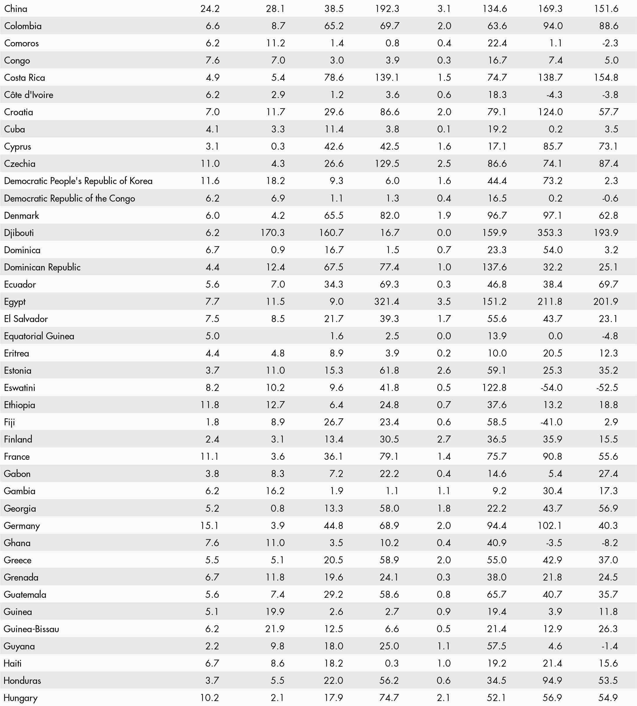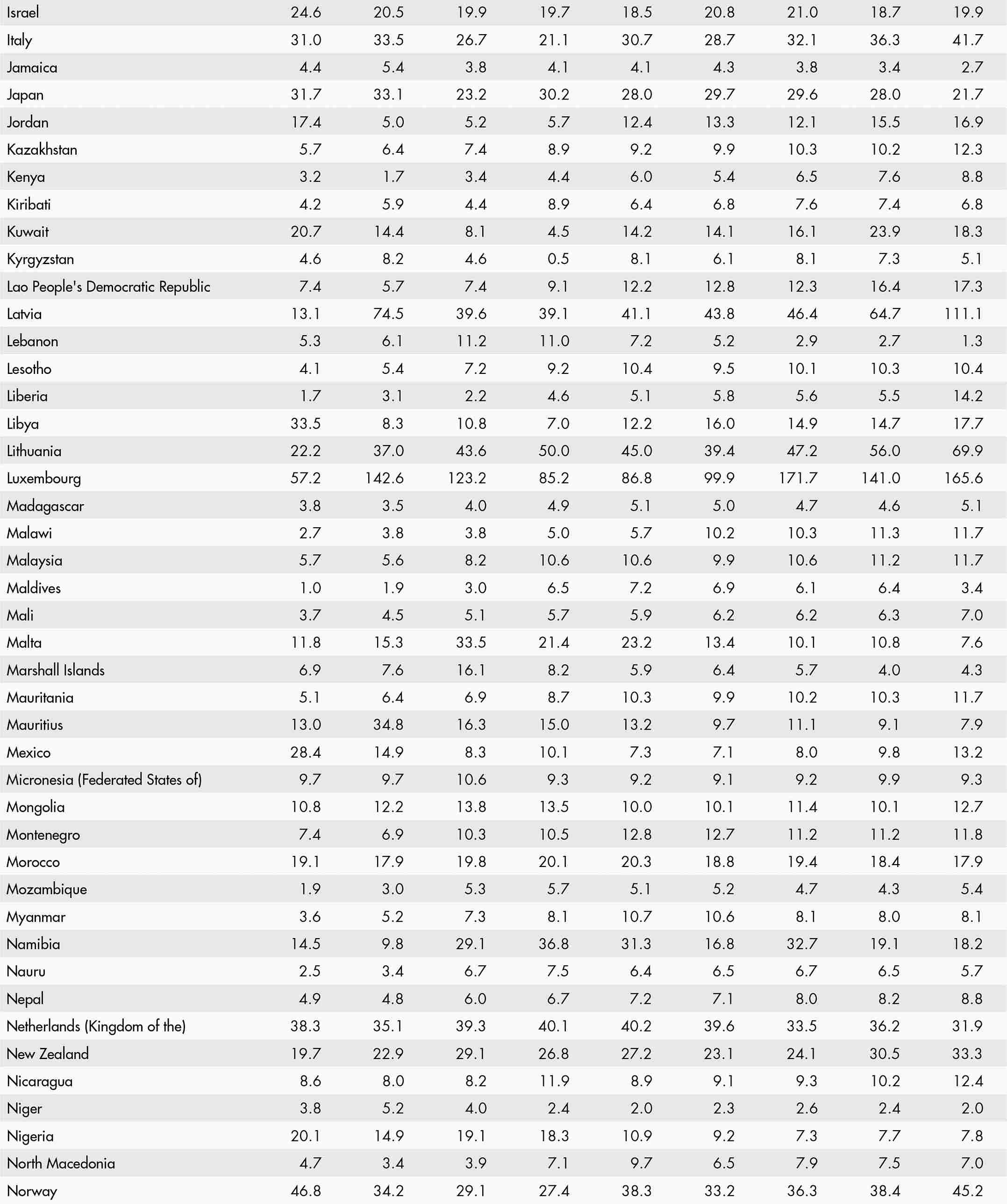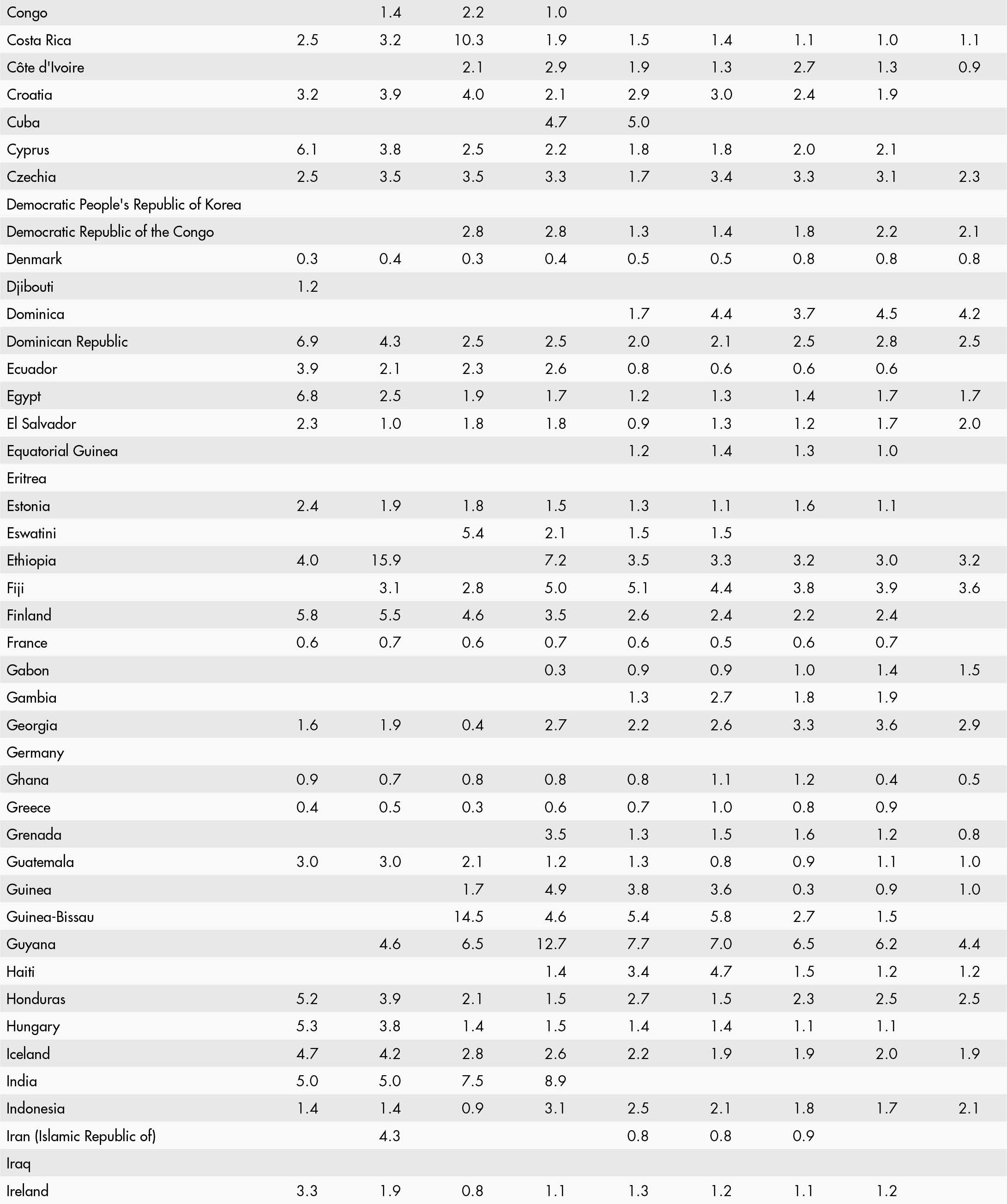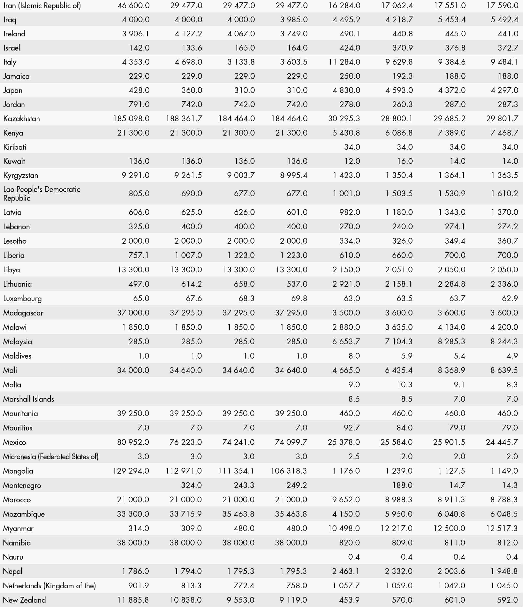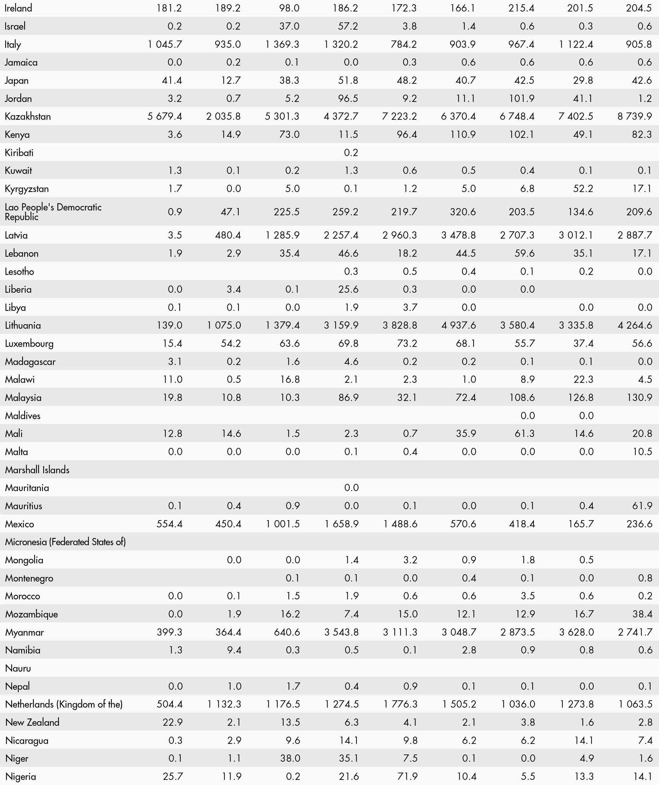 • a blank means that data are not available or that aggregates cannot be calculated because of missing data for the years shown;