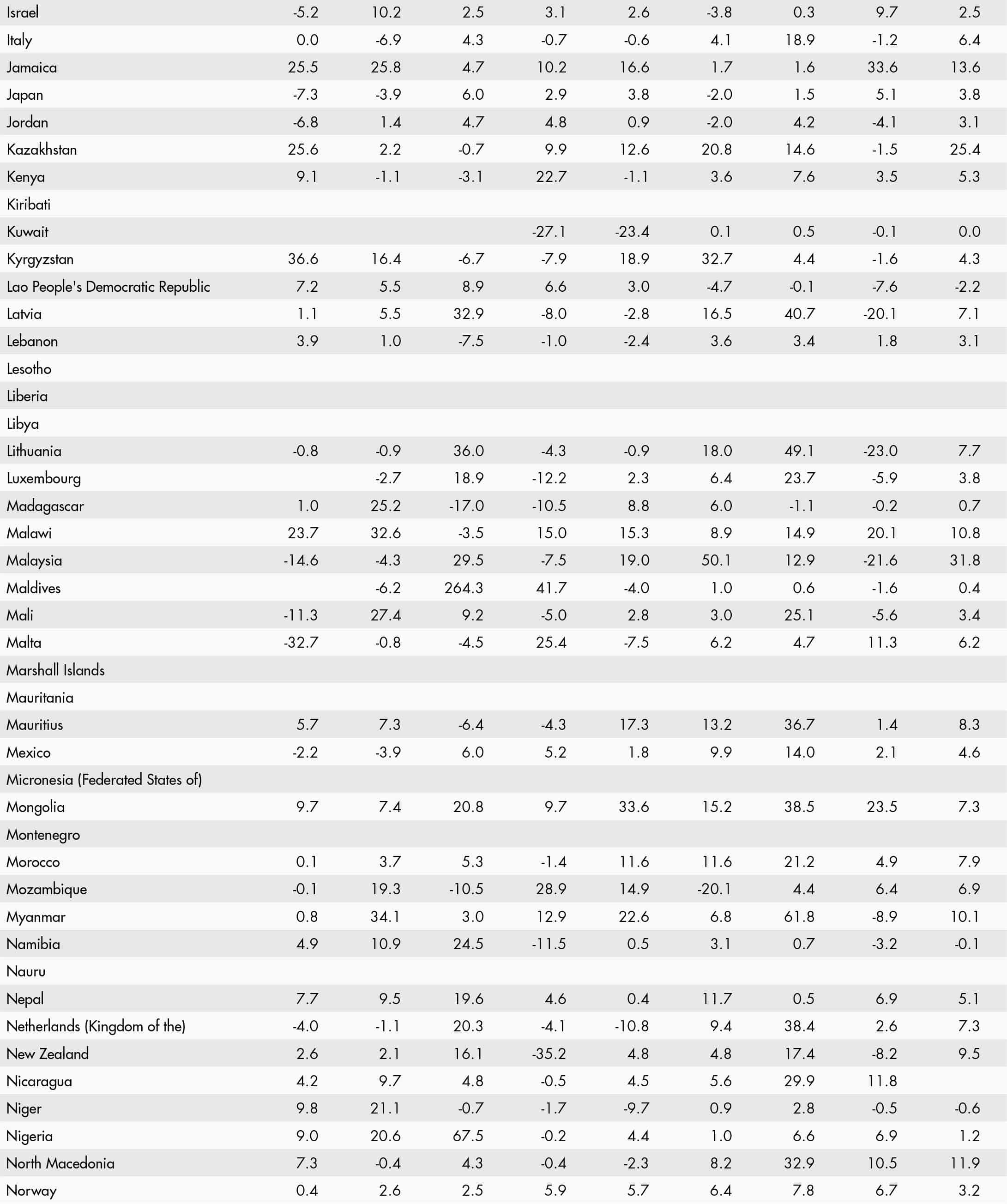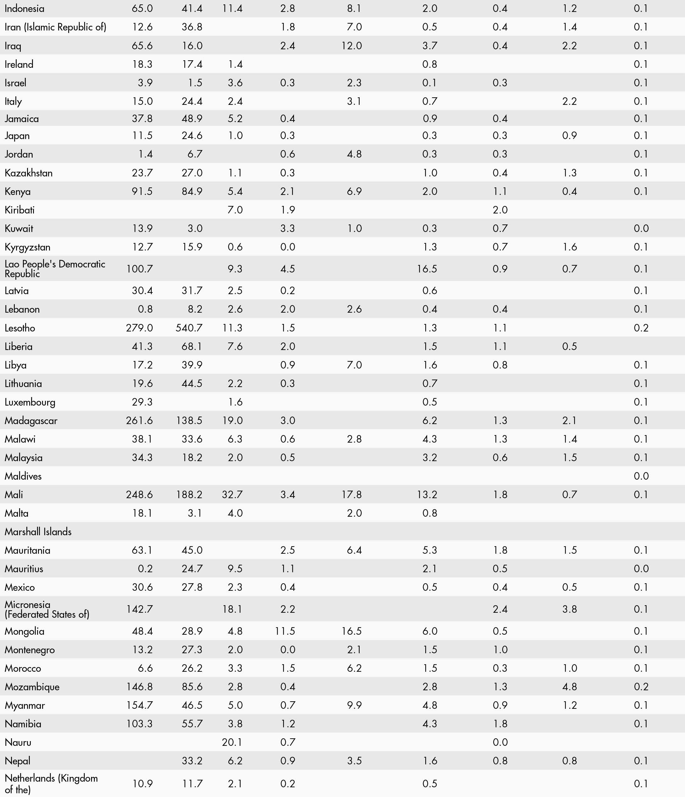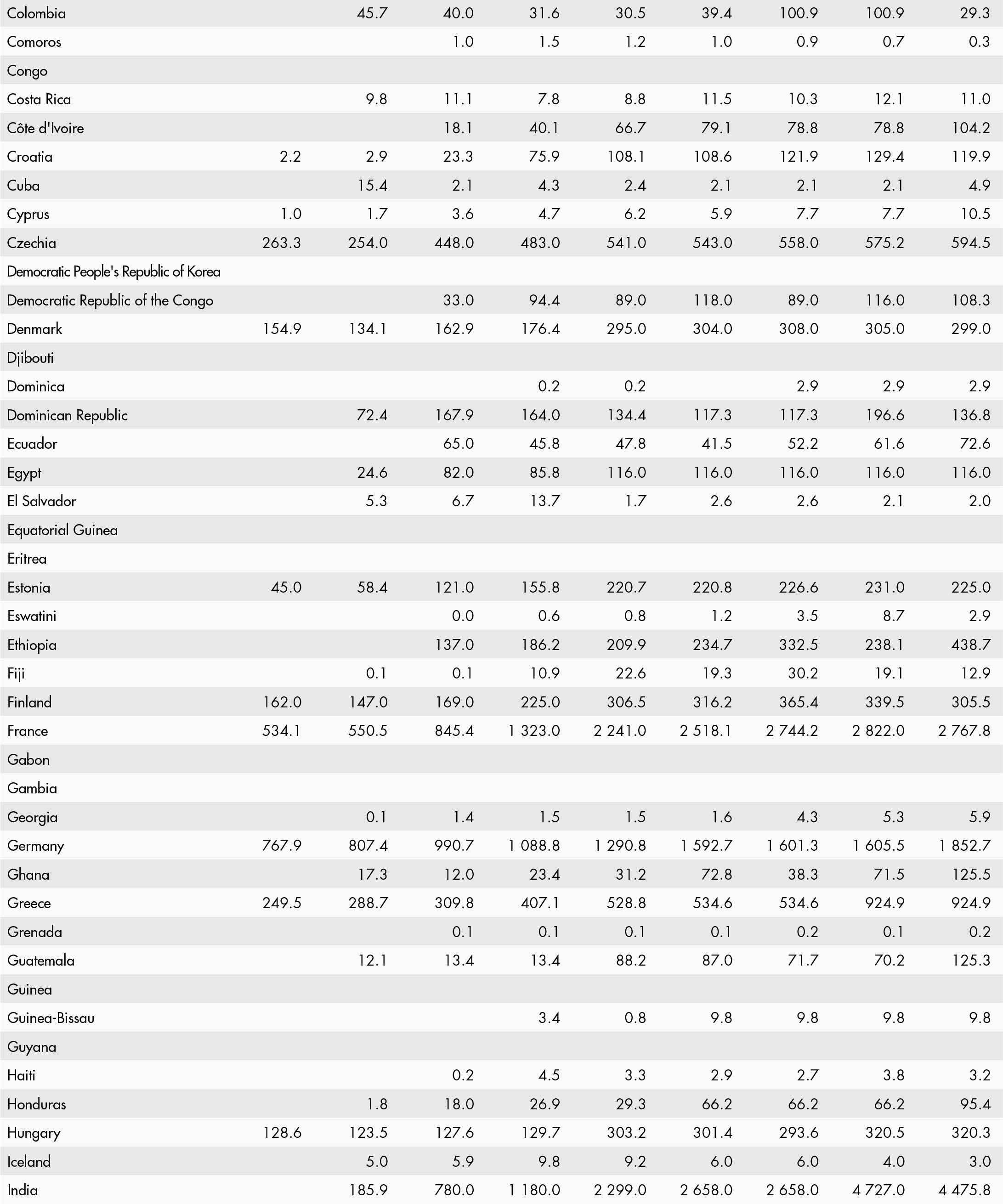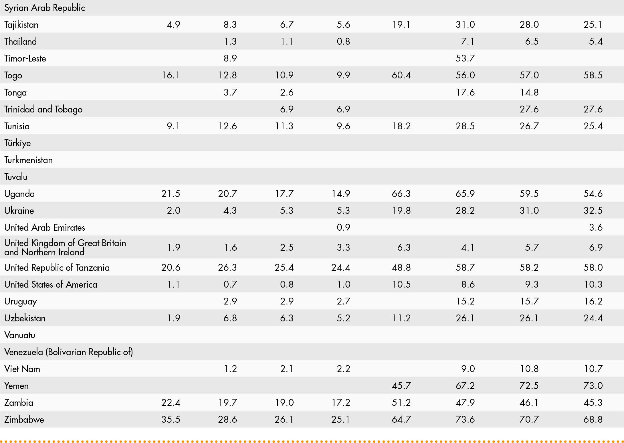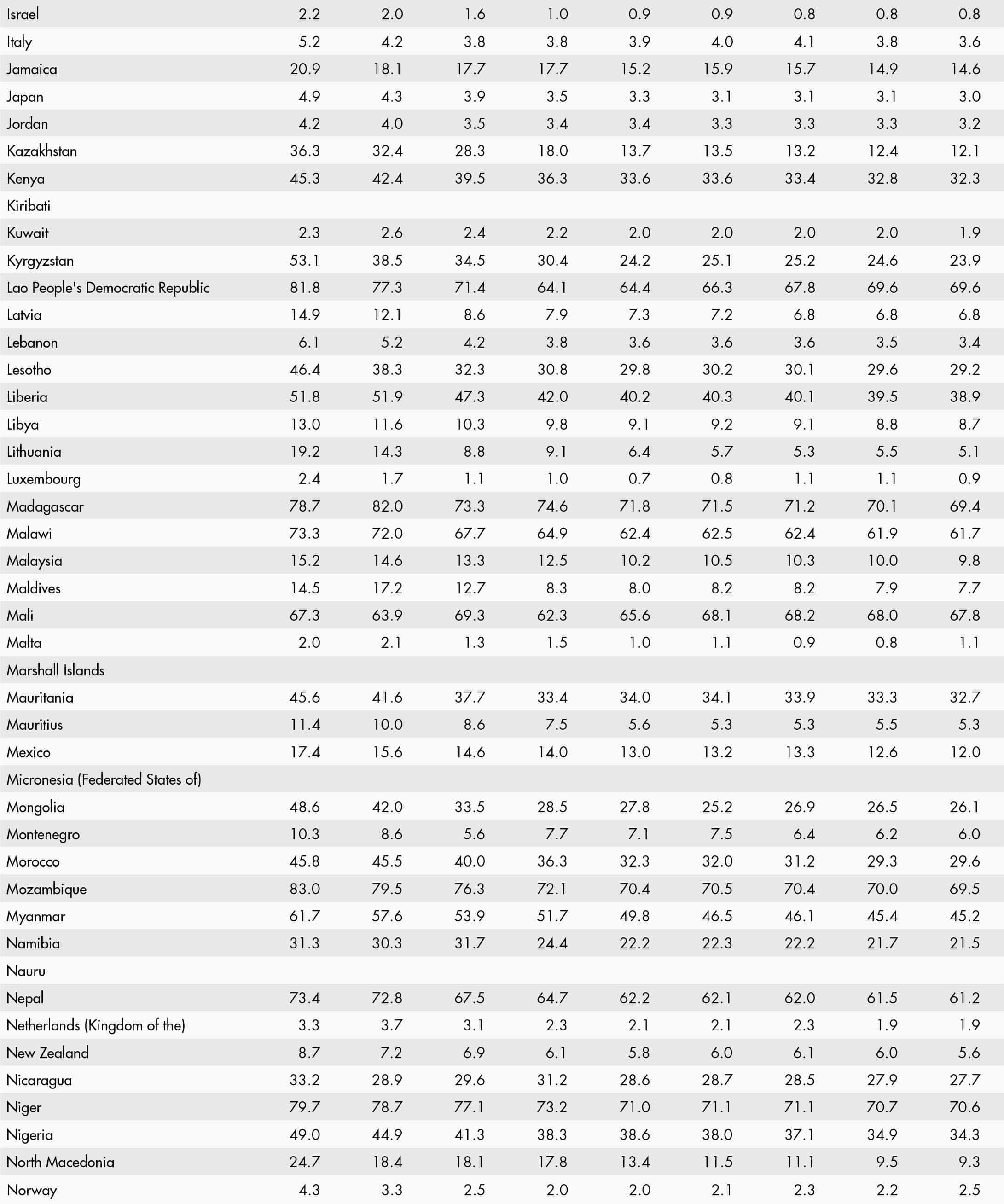 • a blank means that data are not available or that aggregates cannot be calculated because of missing data for the years shown;