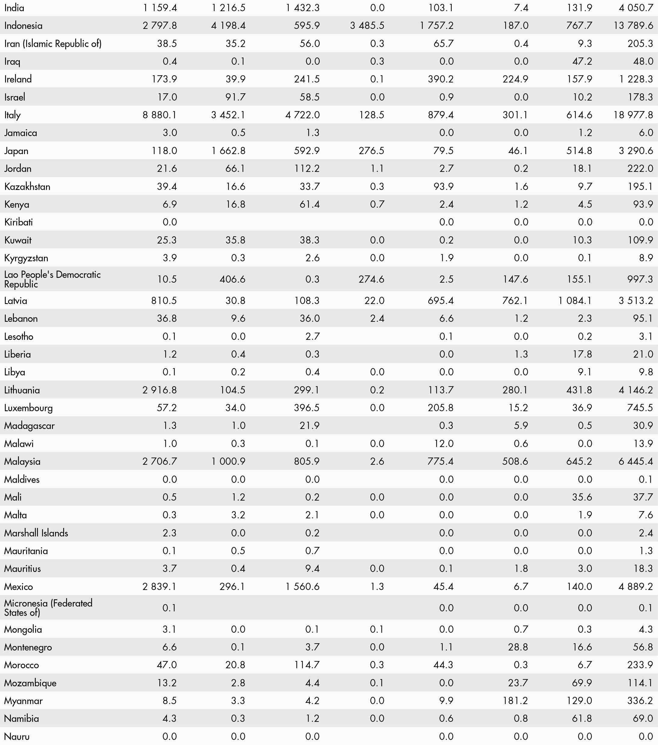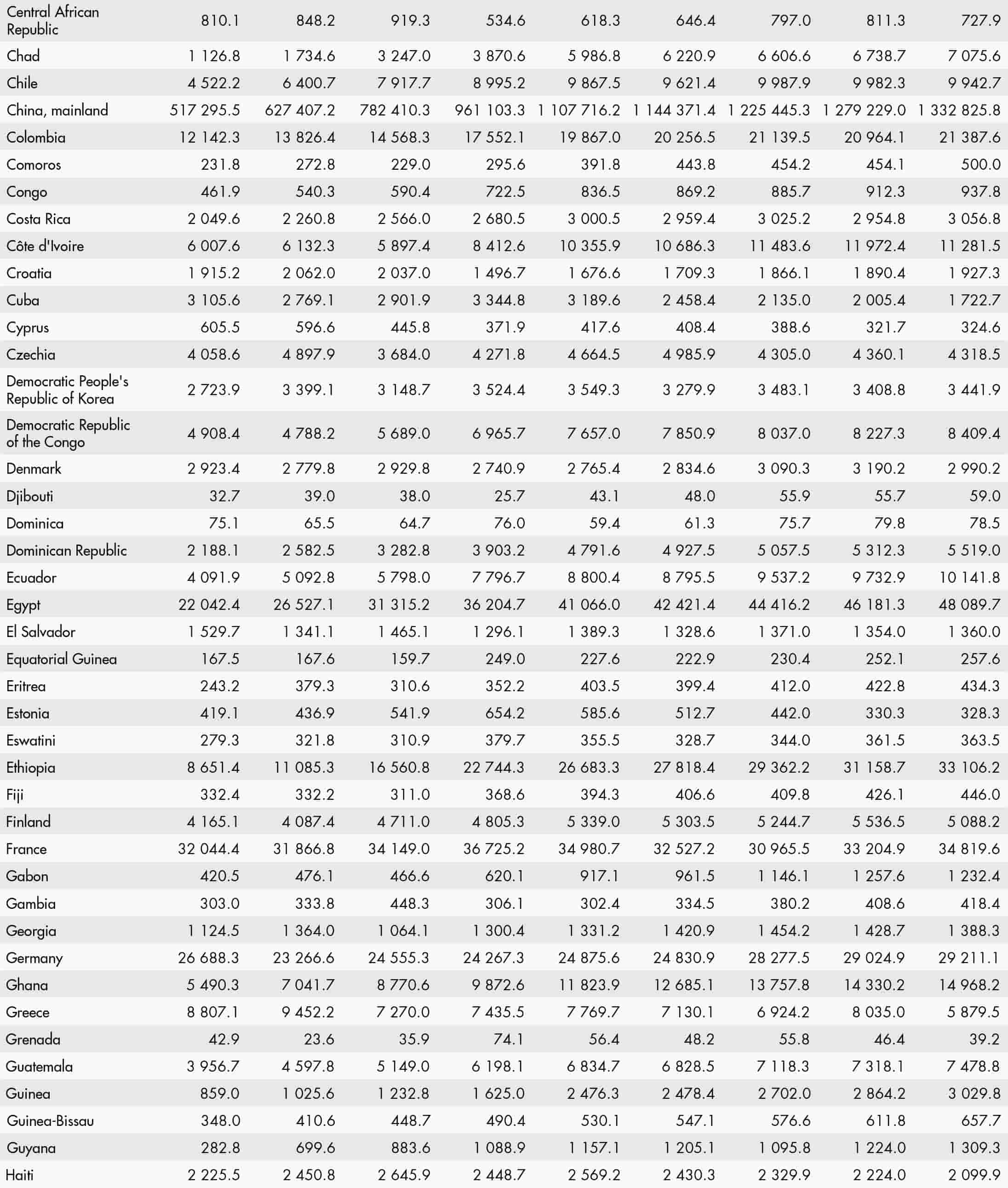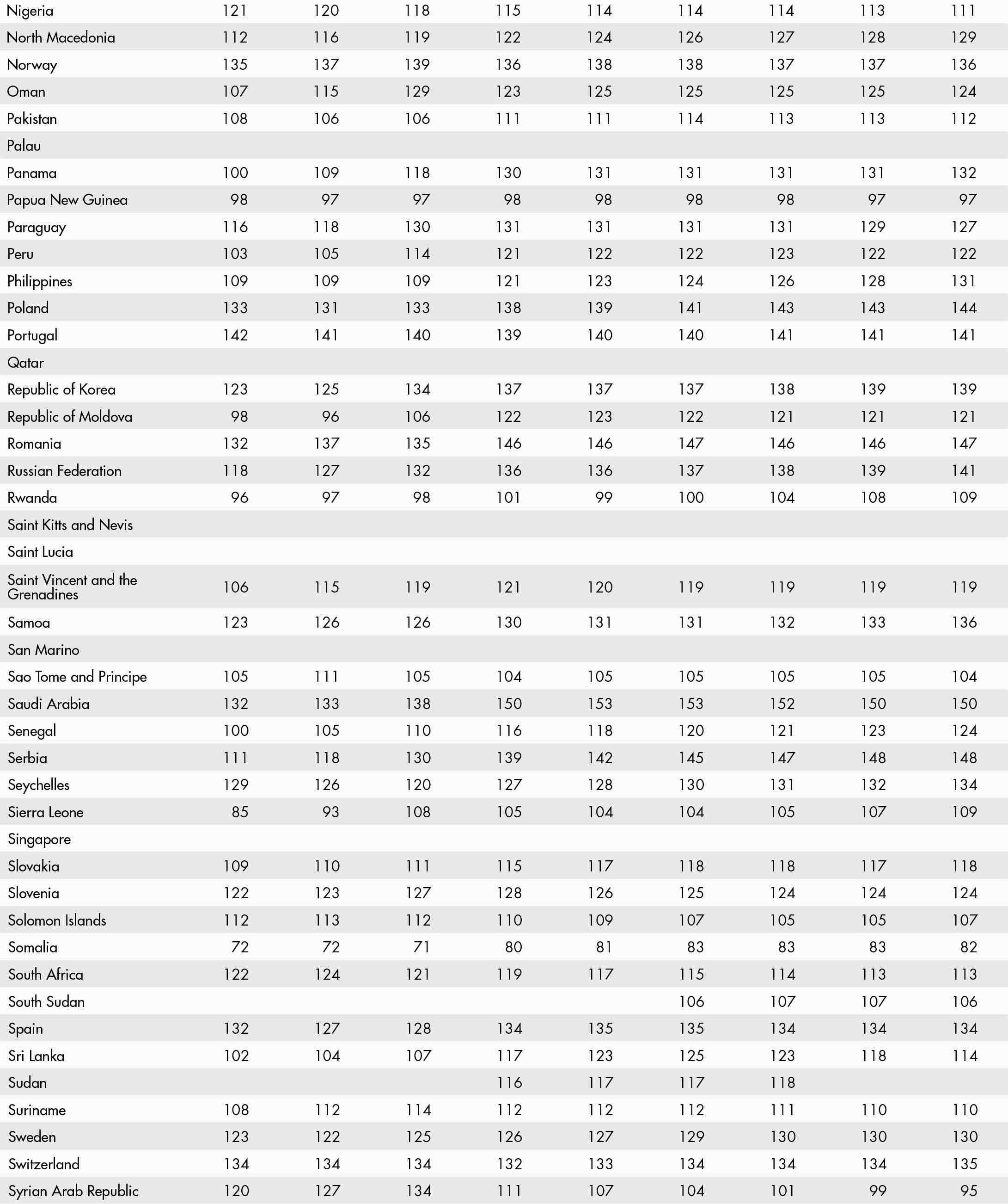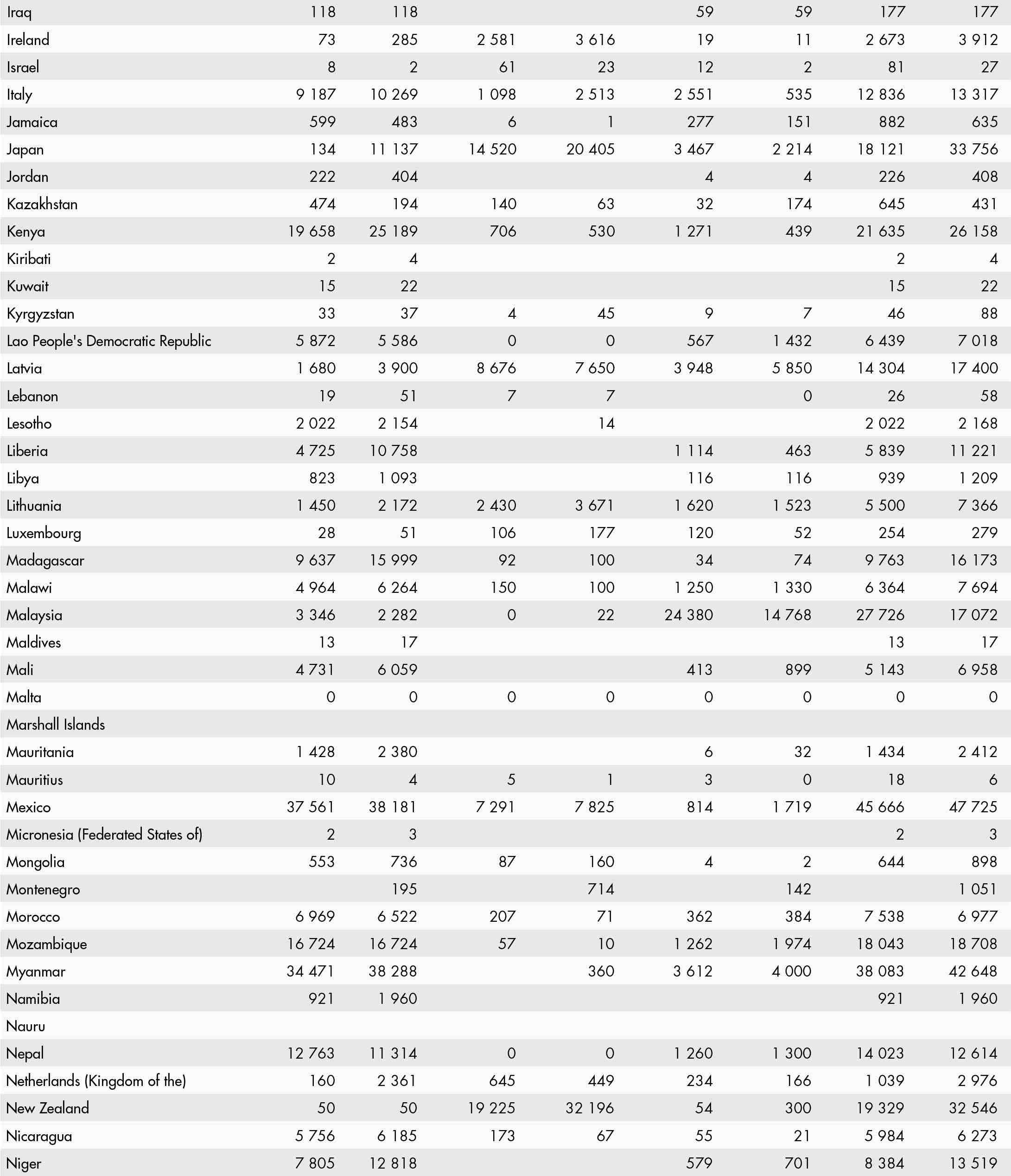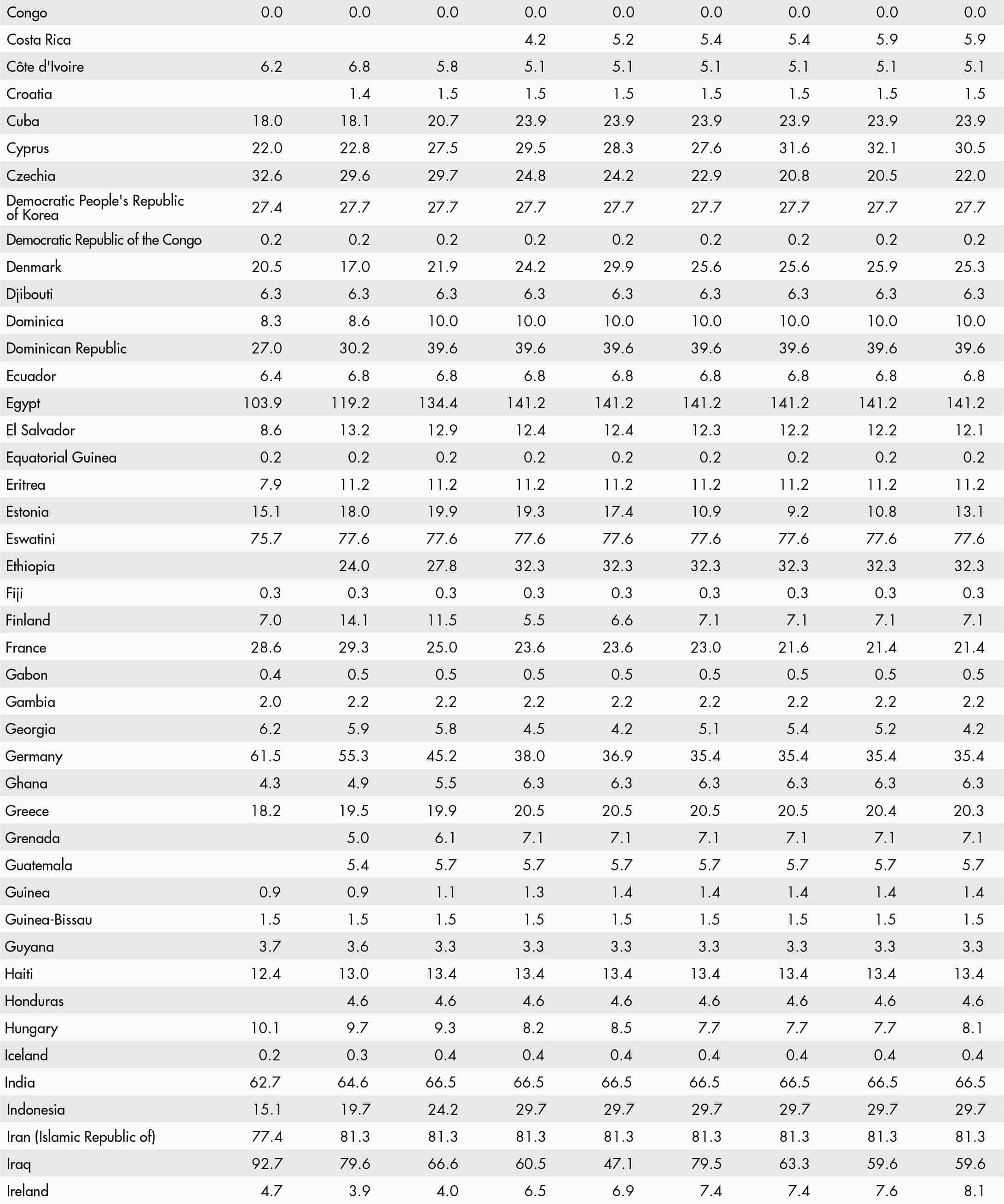 • a blank means that data are not available or that aggregates cannot be calculated because of missing data for the years shown;