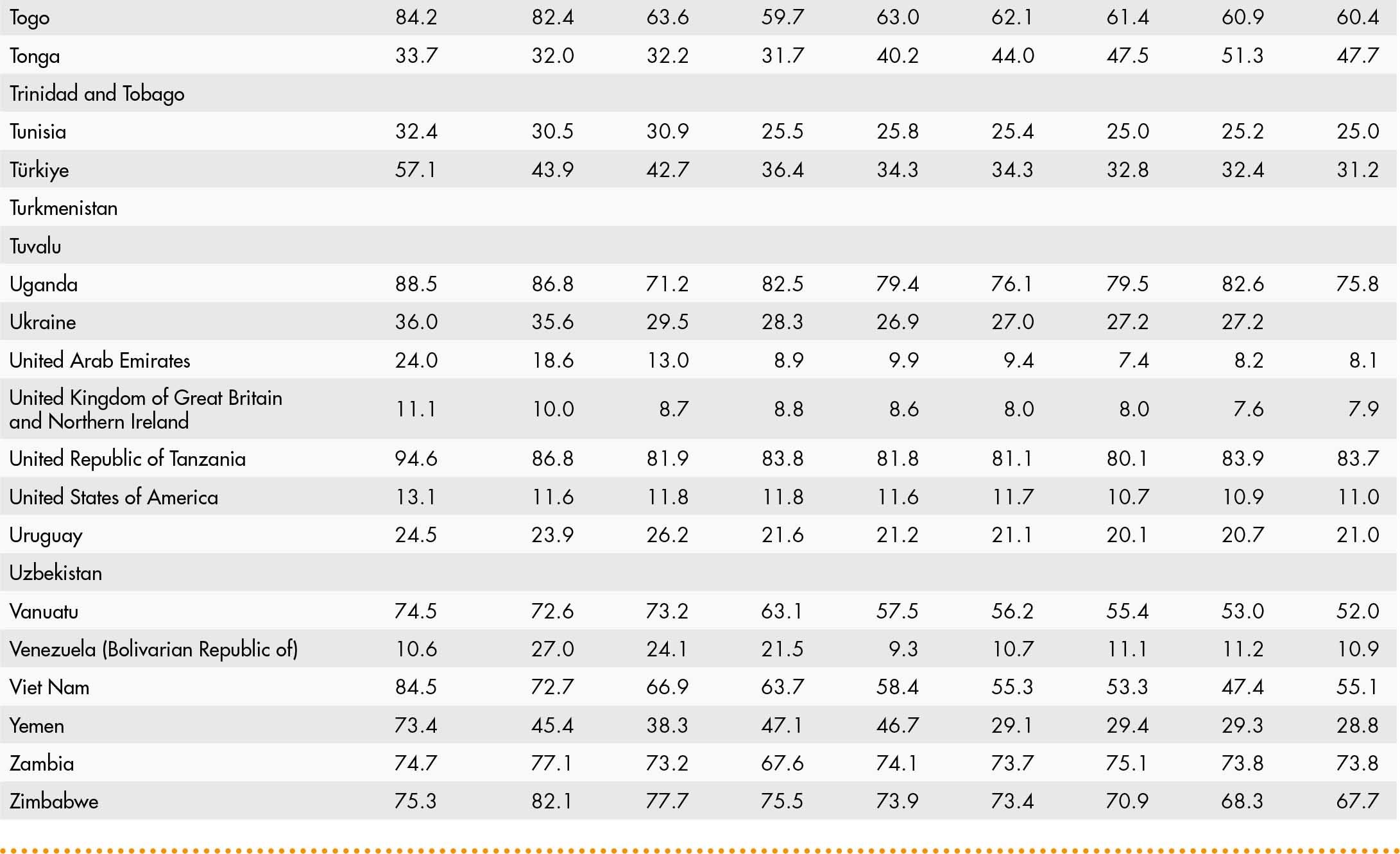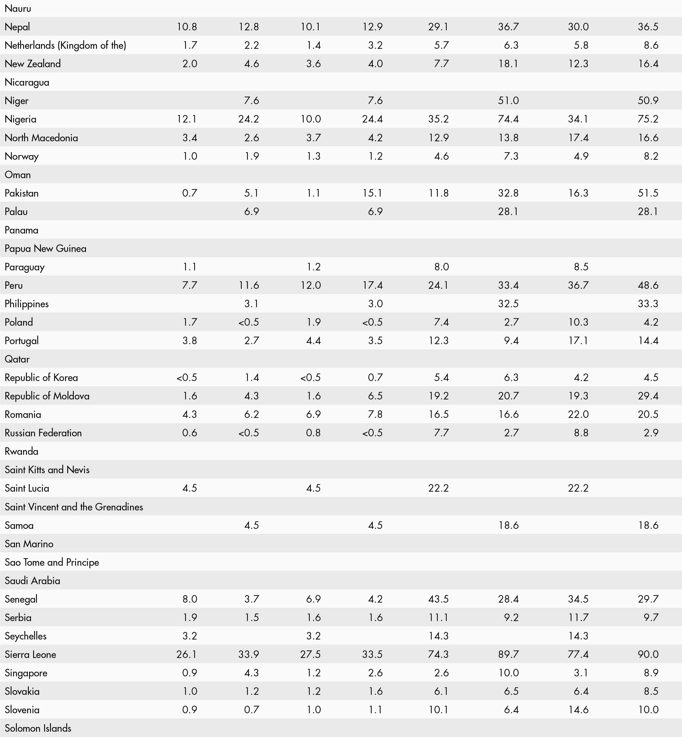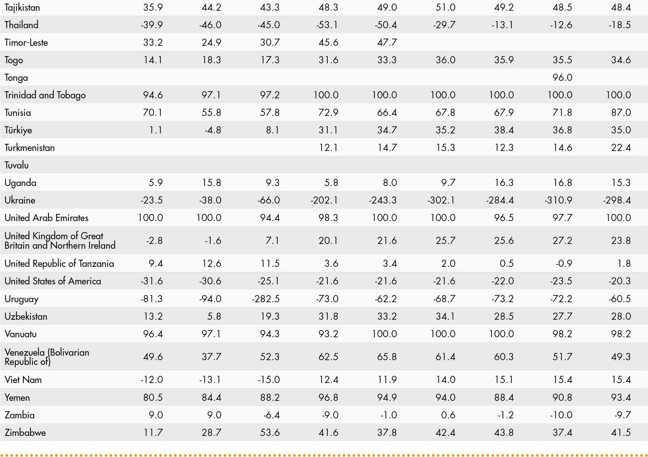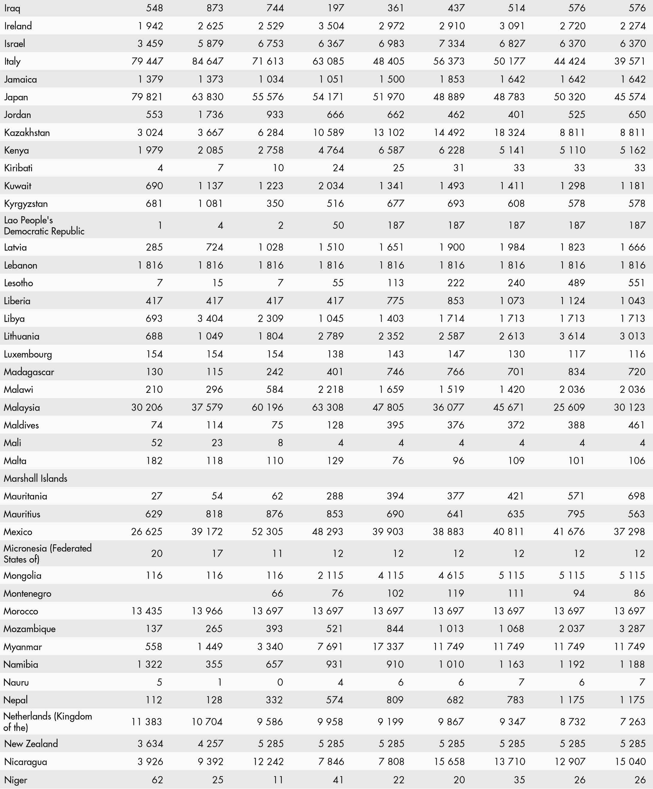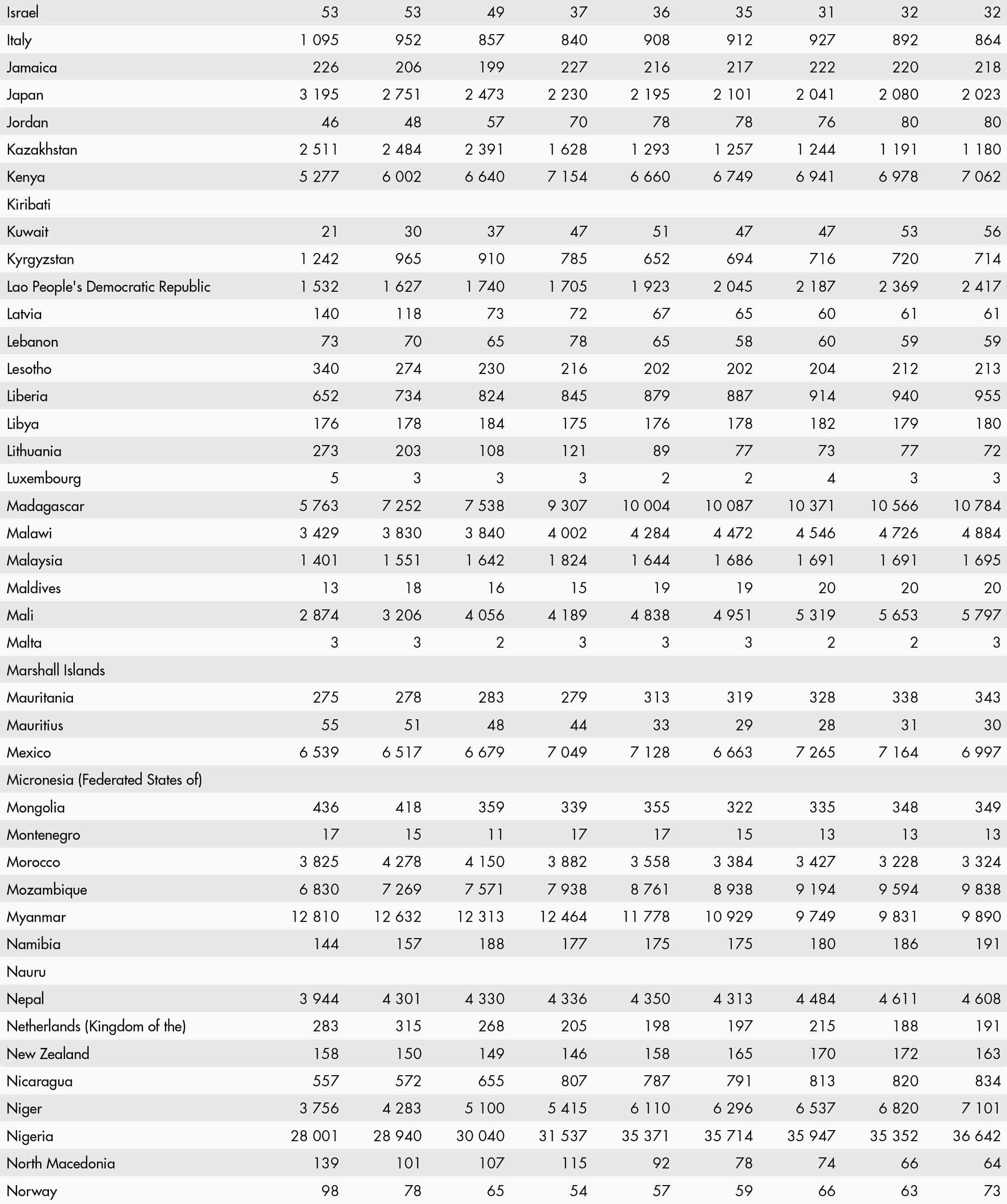 • a blank means that data are not available or that aggregates cannot be calculated because of missing data for the years shown;