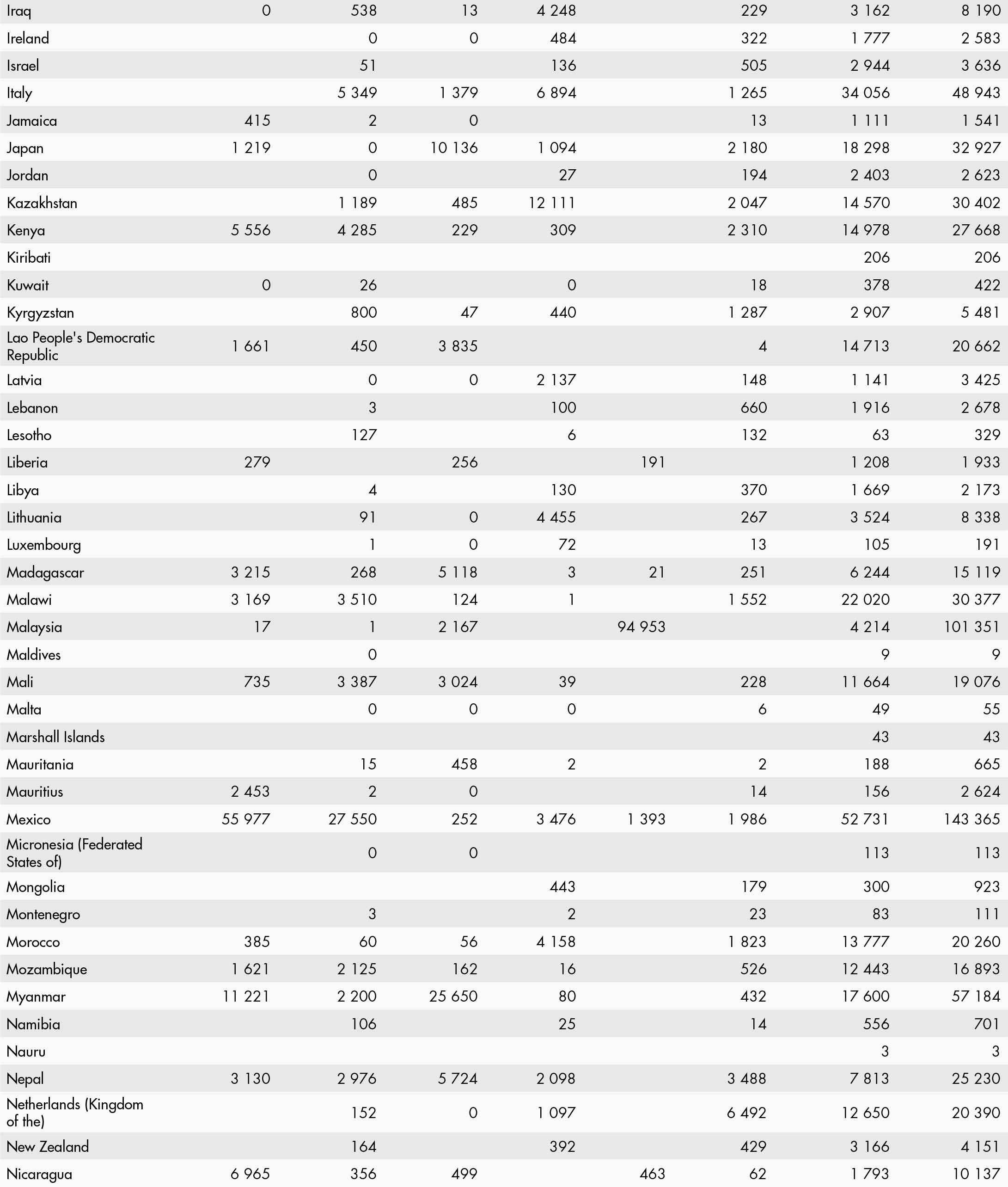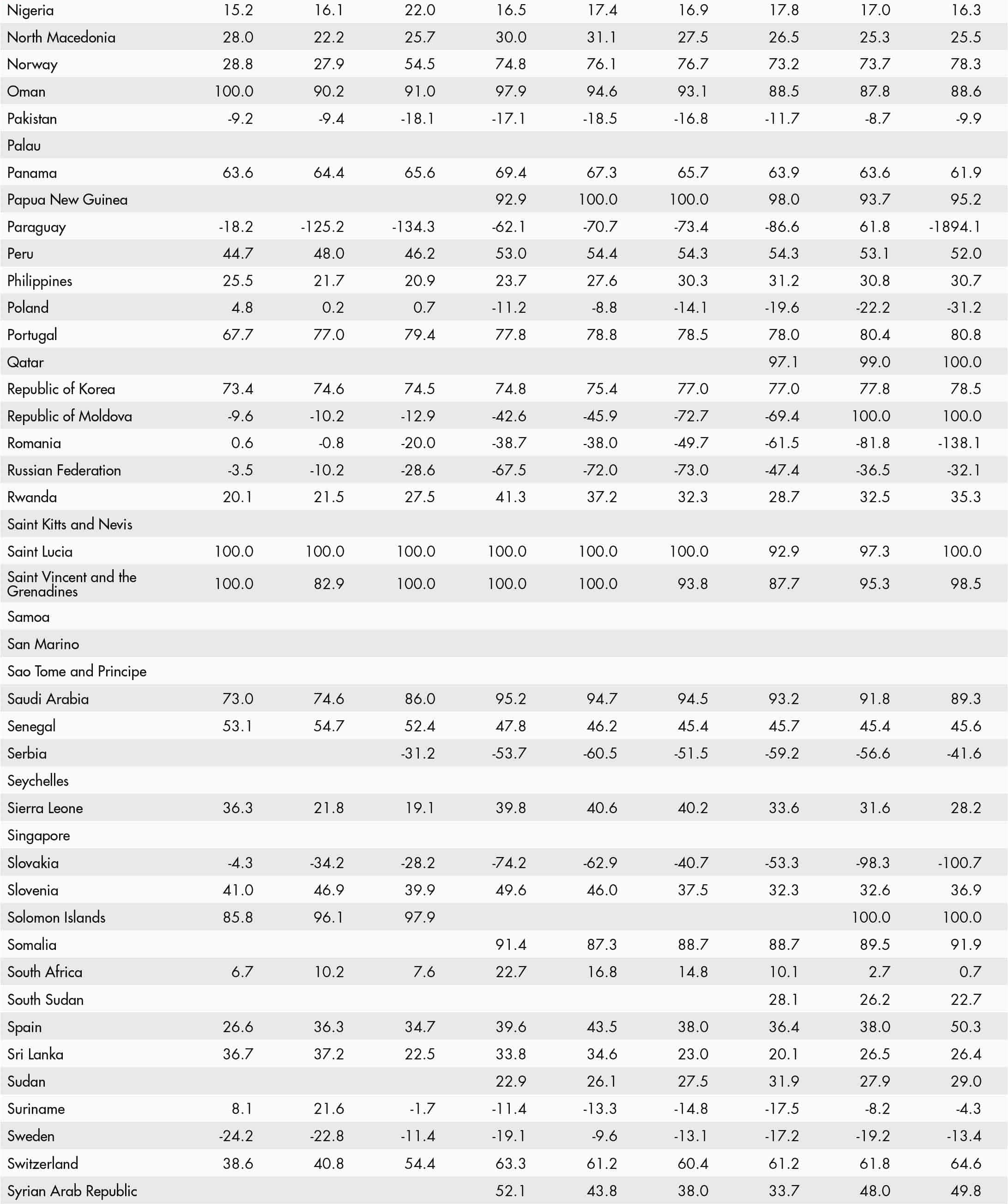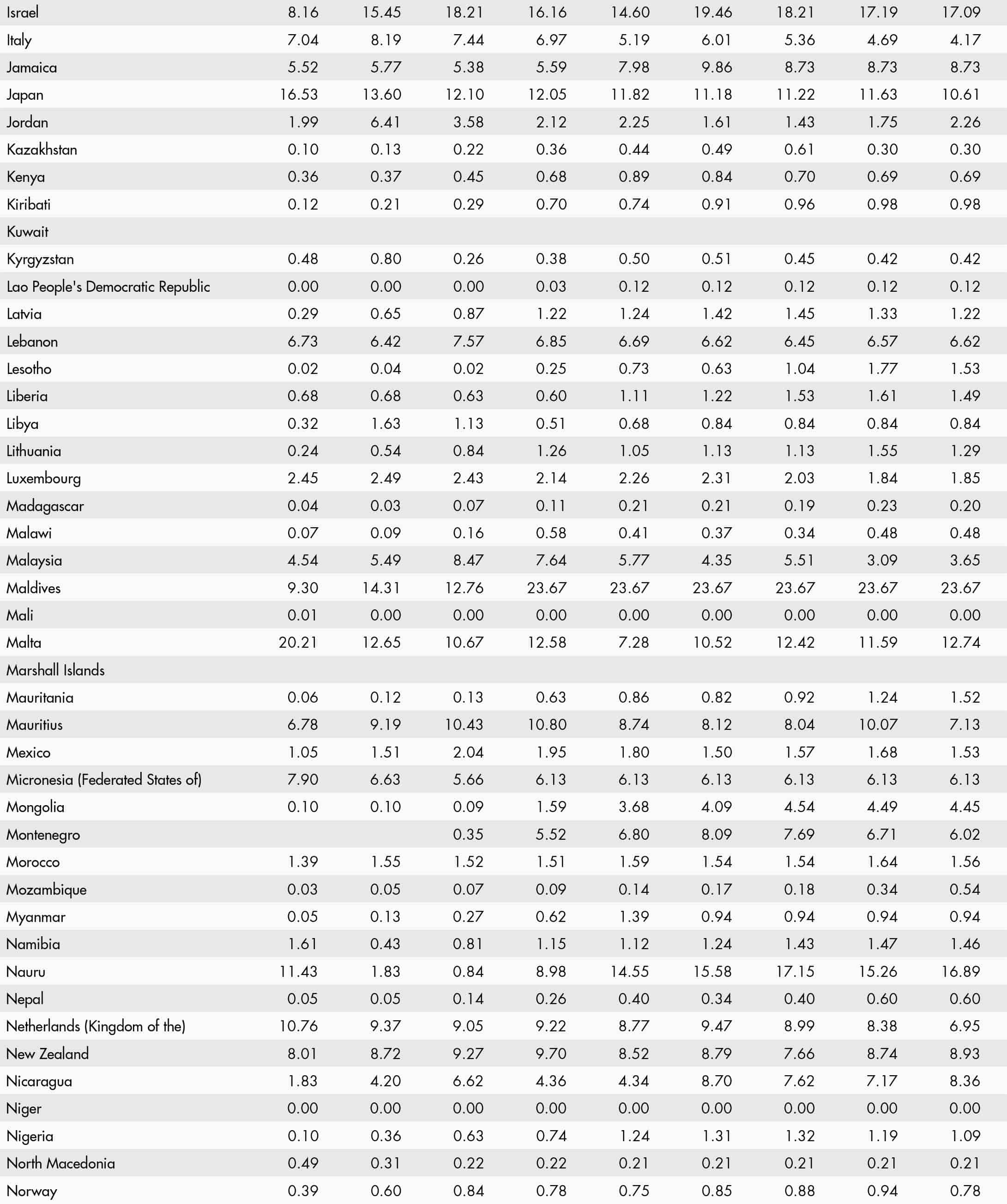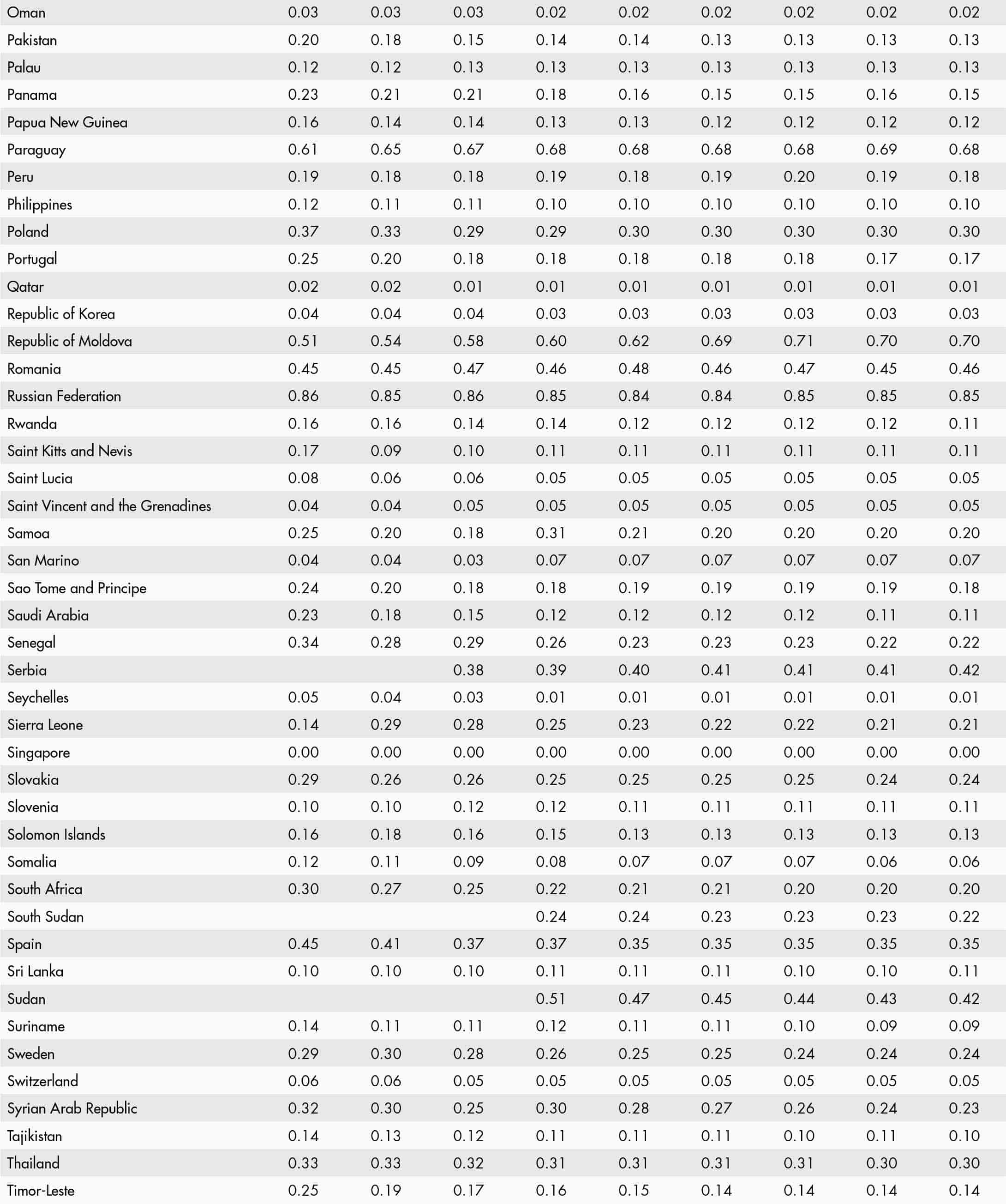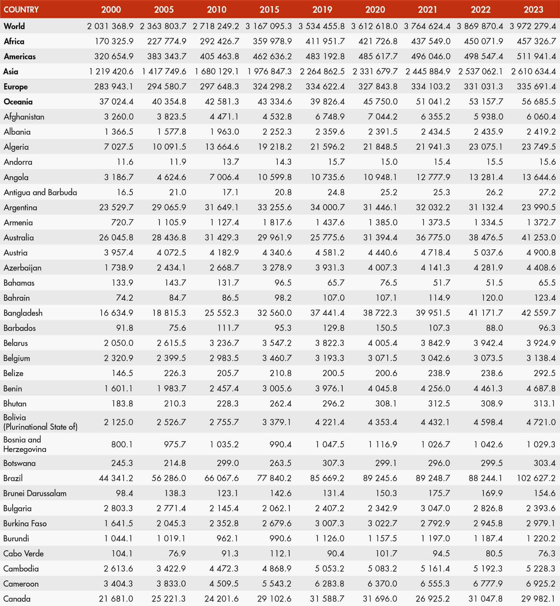 • a blank means that data are not available or that aggregates cannot be calculated because of missing data for the years shown;