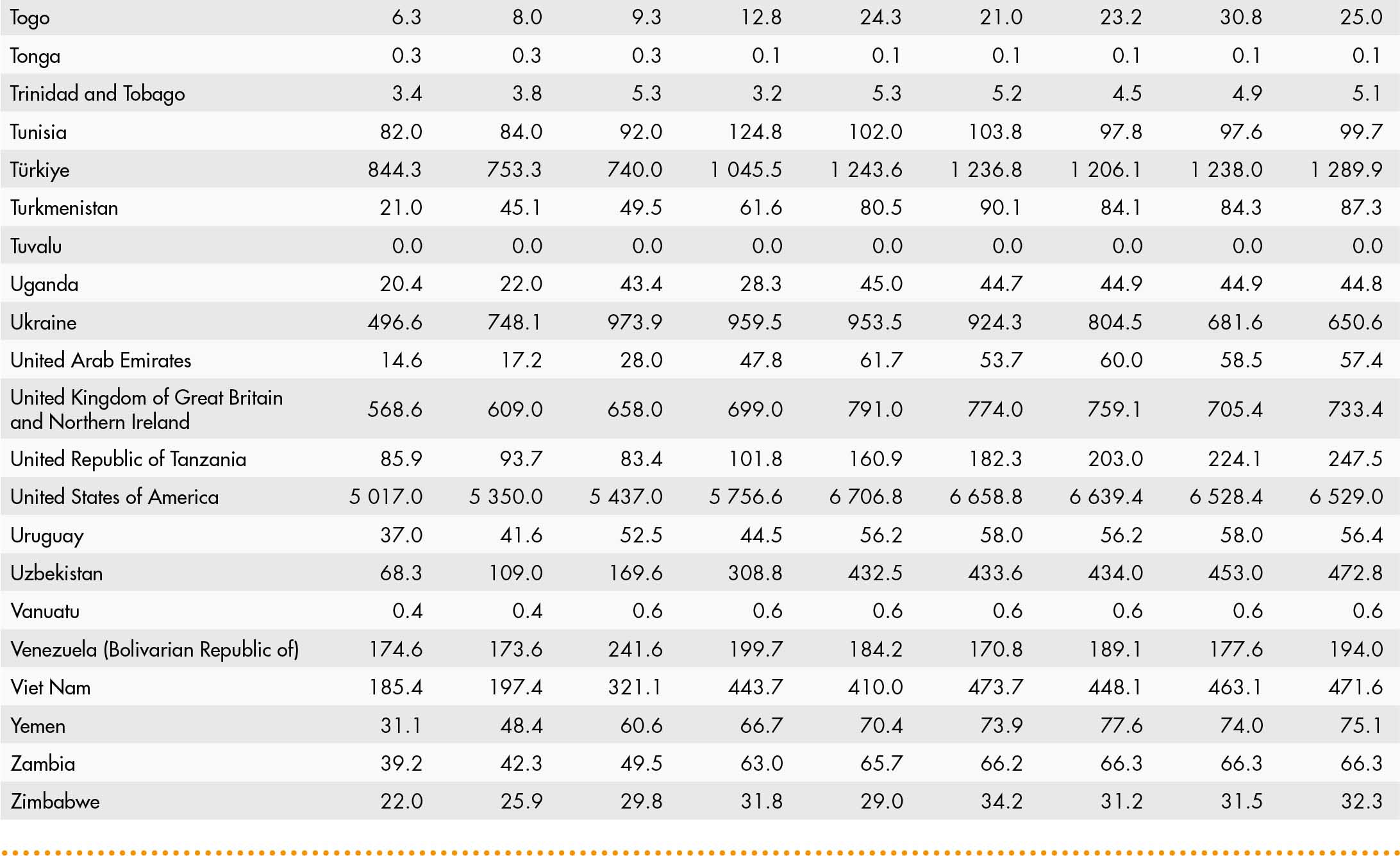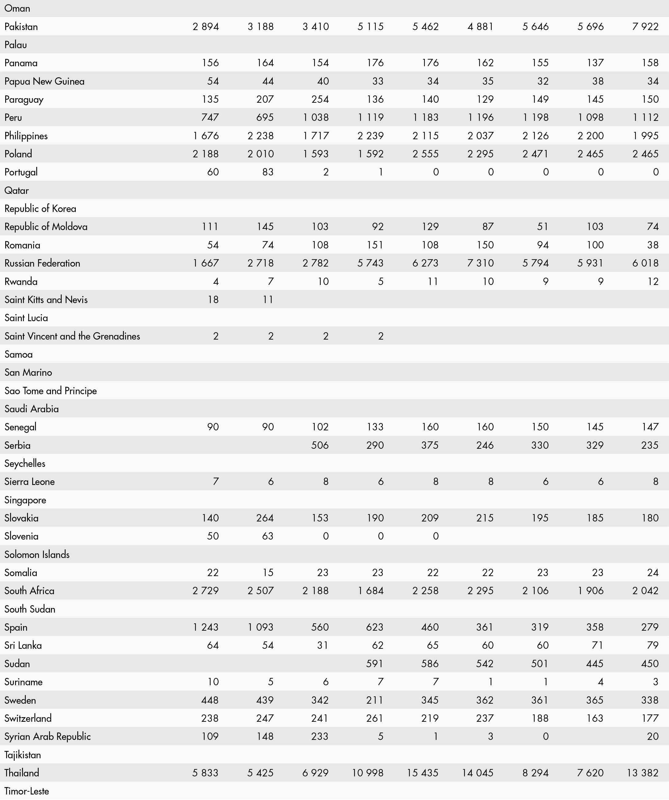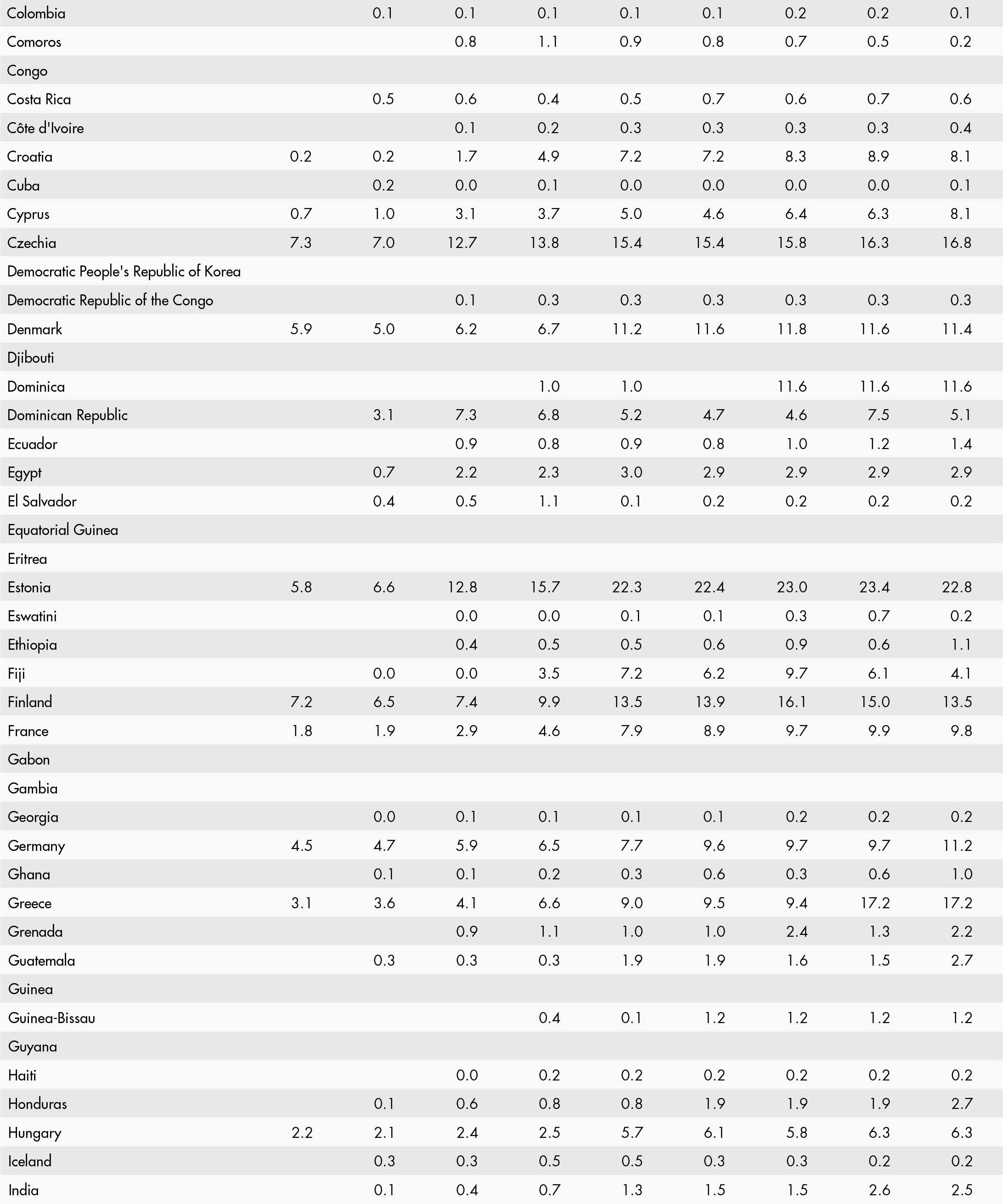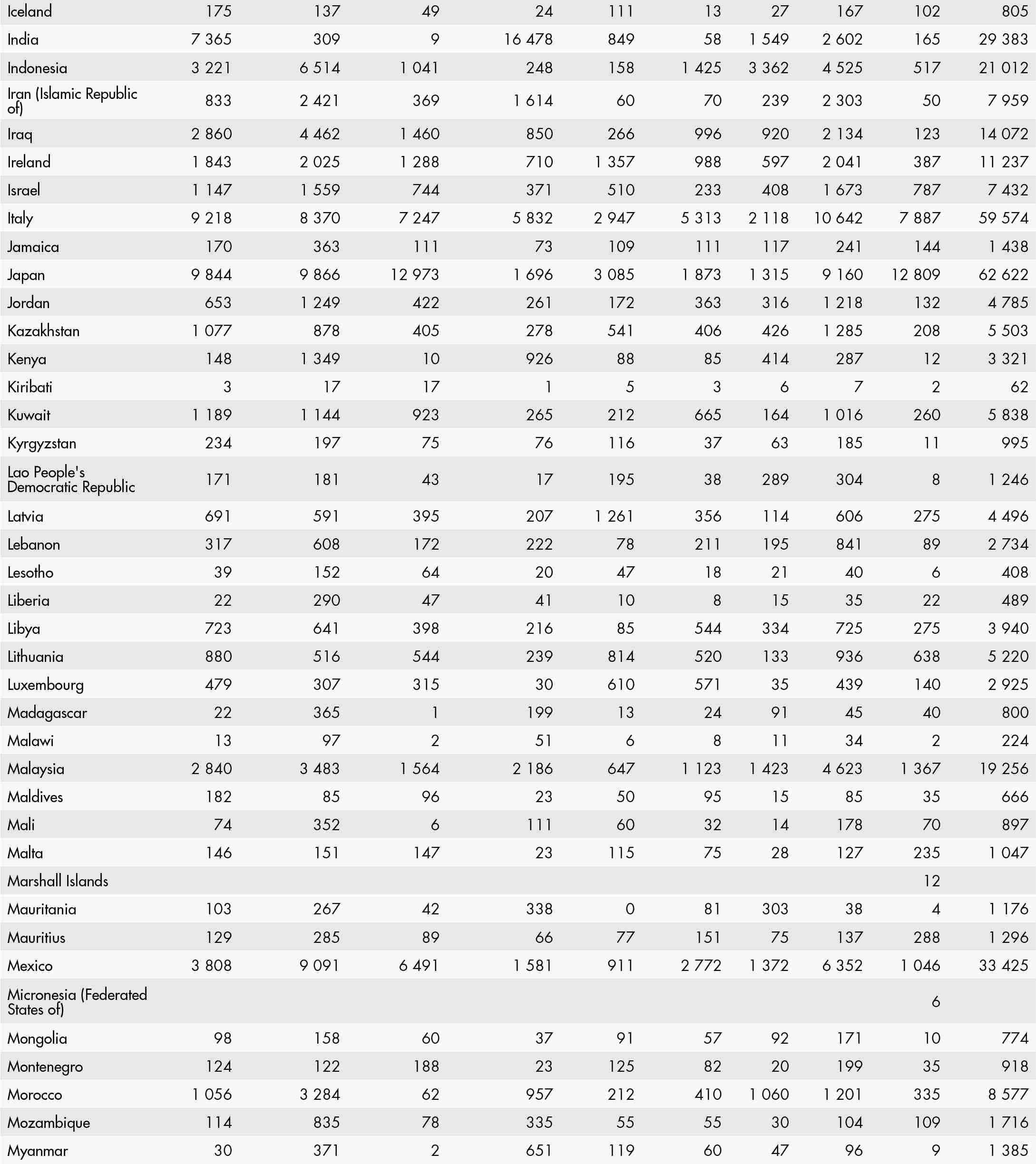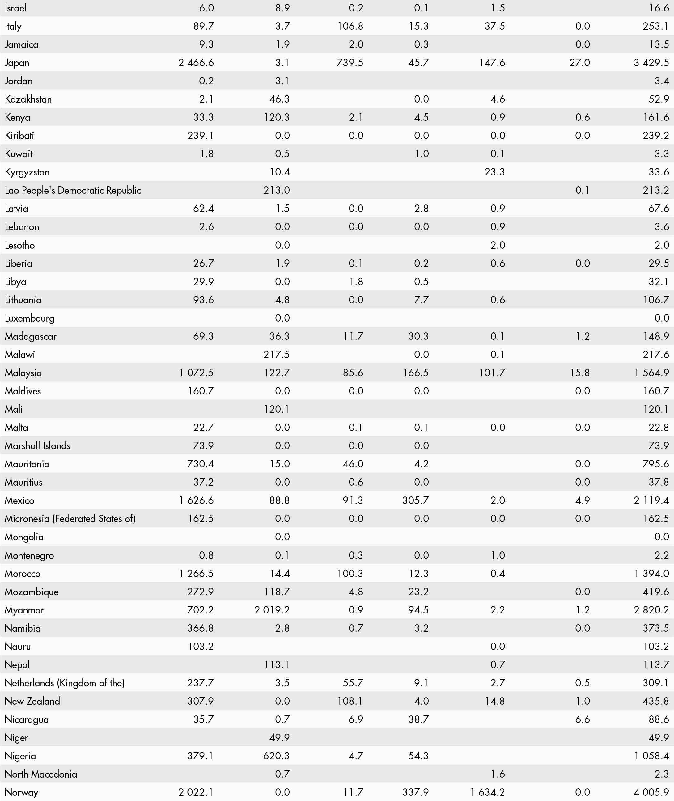 • a blank means that data are not available or that aggregates cannot be calculated because of missing data for the years shown;