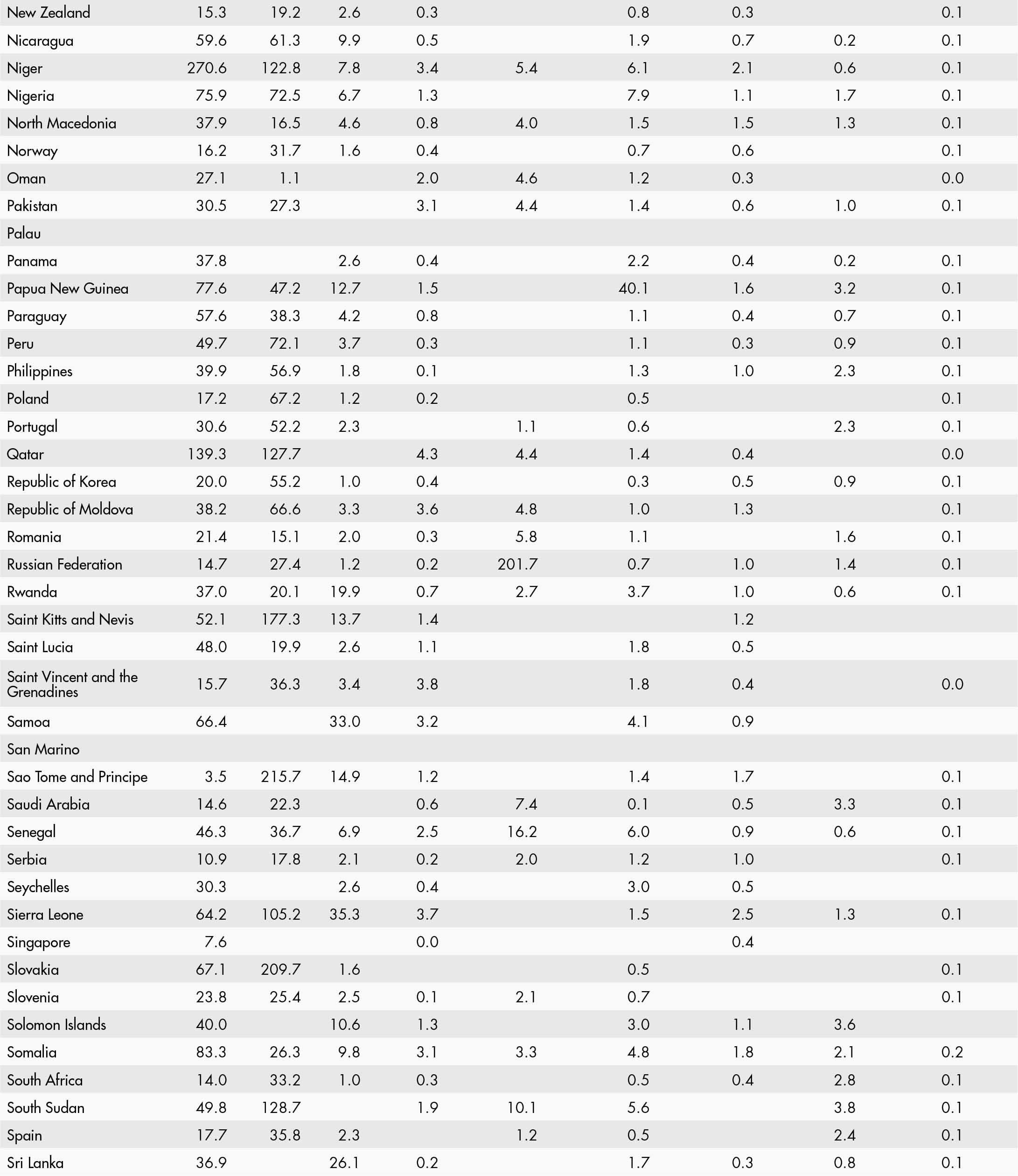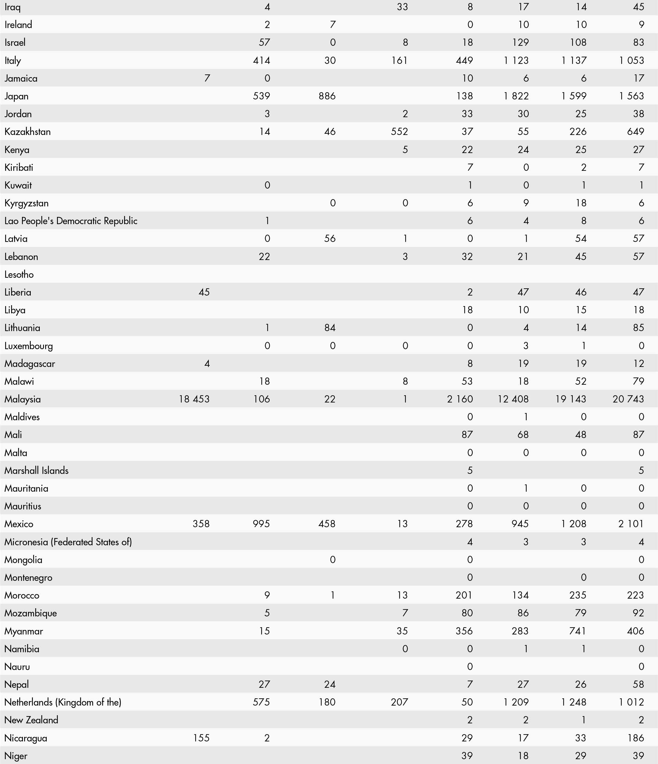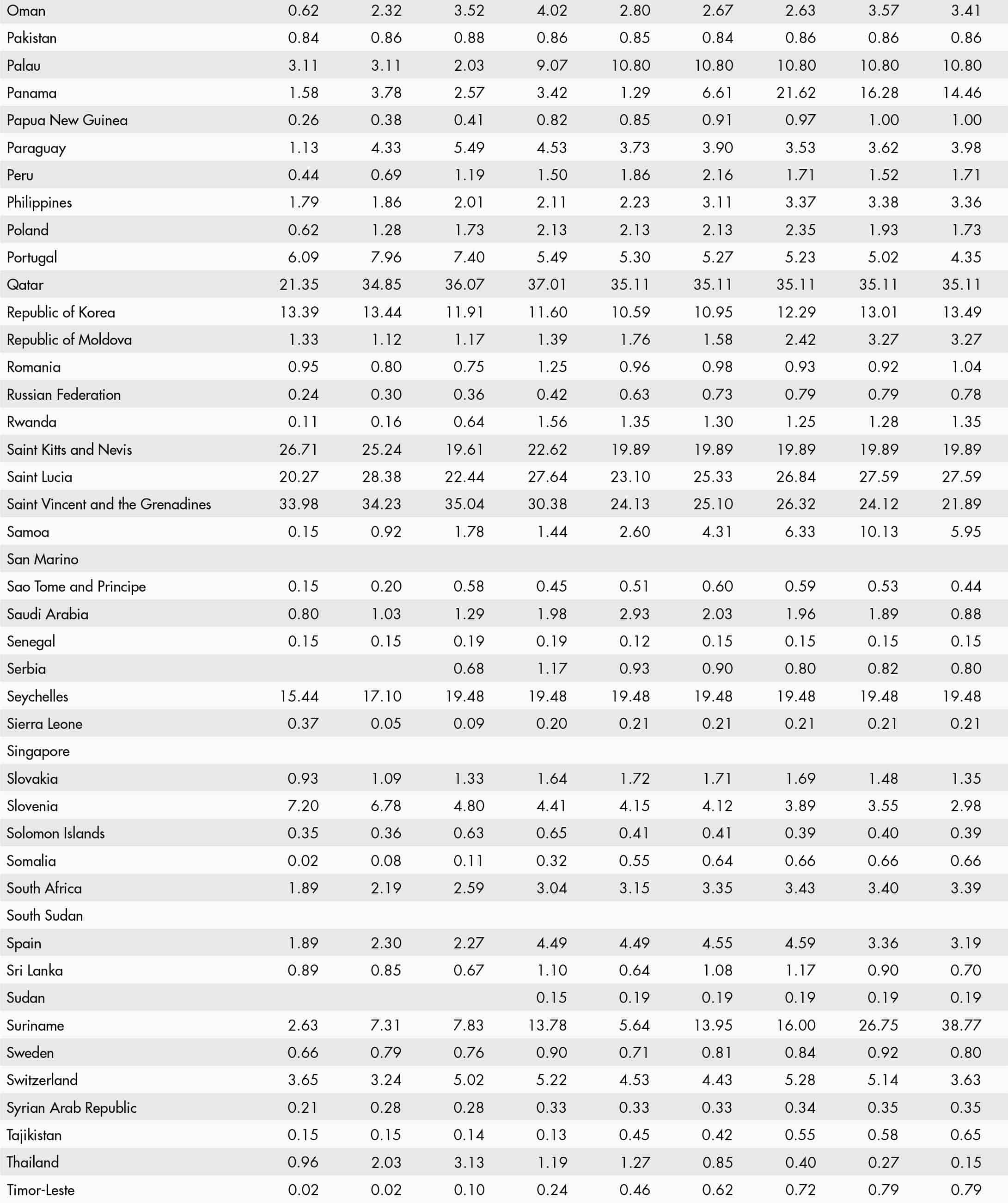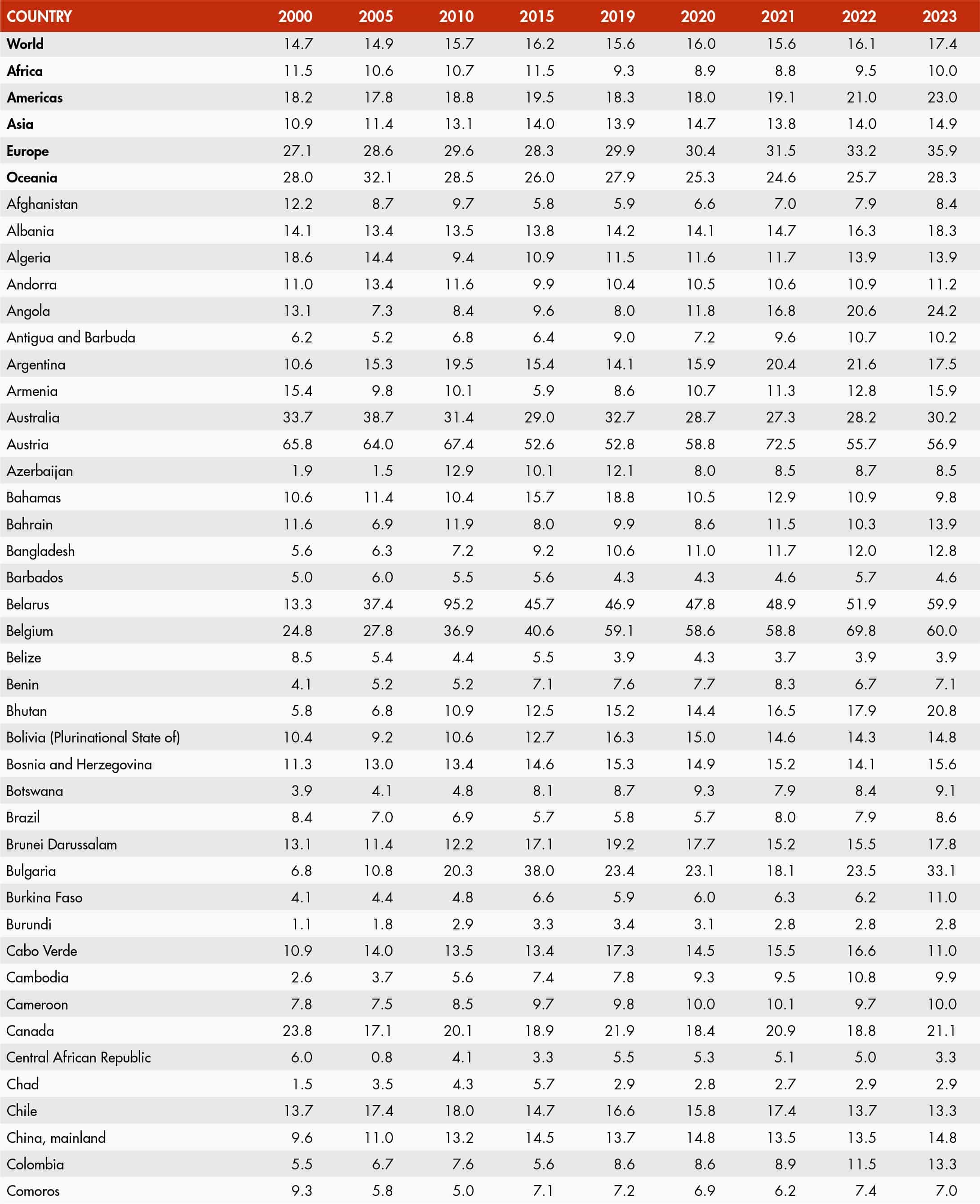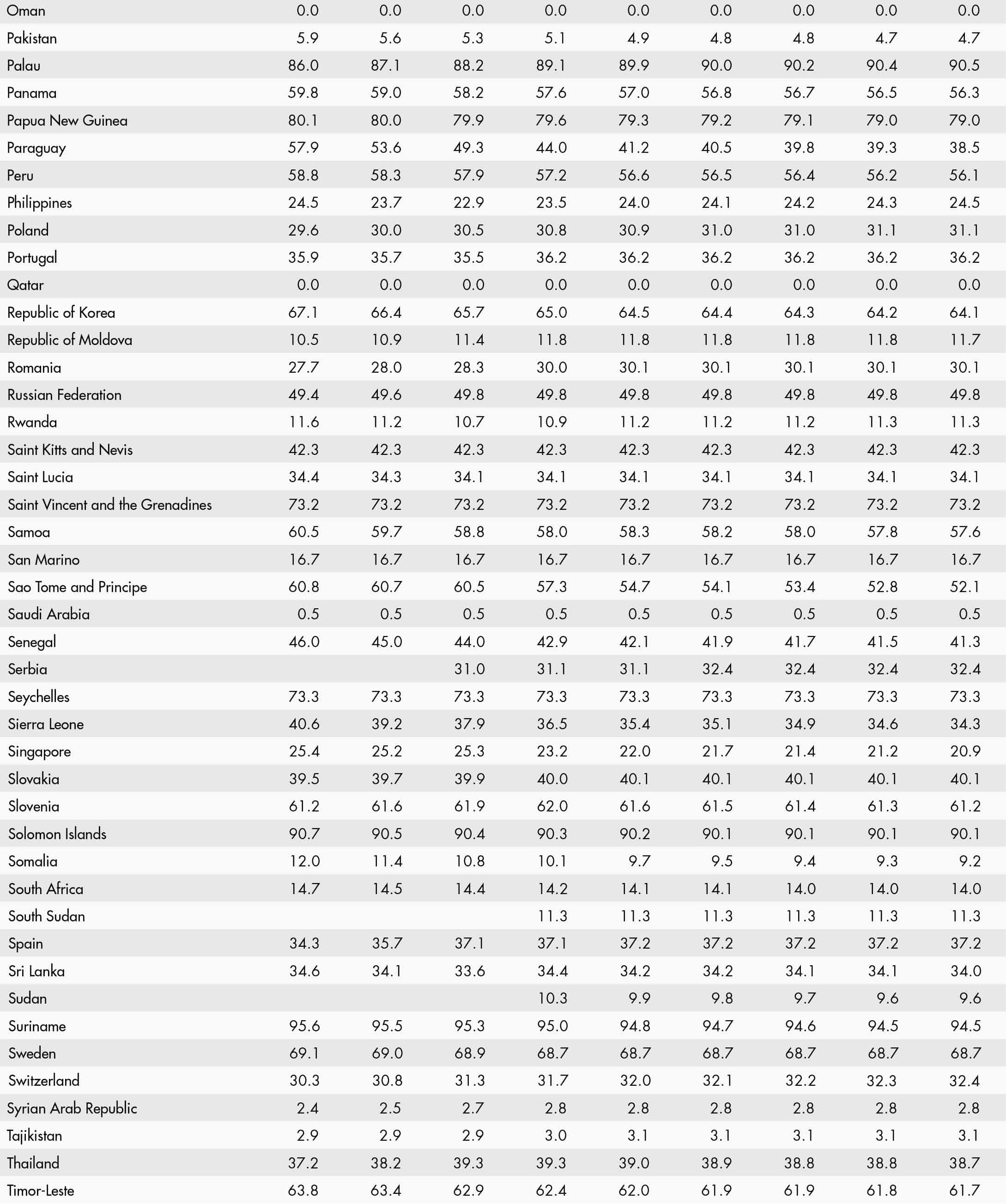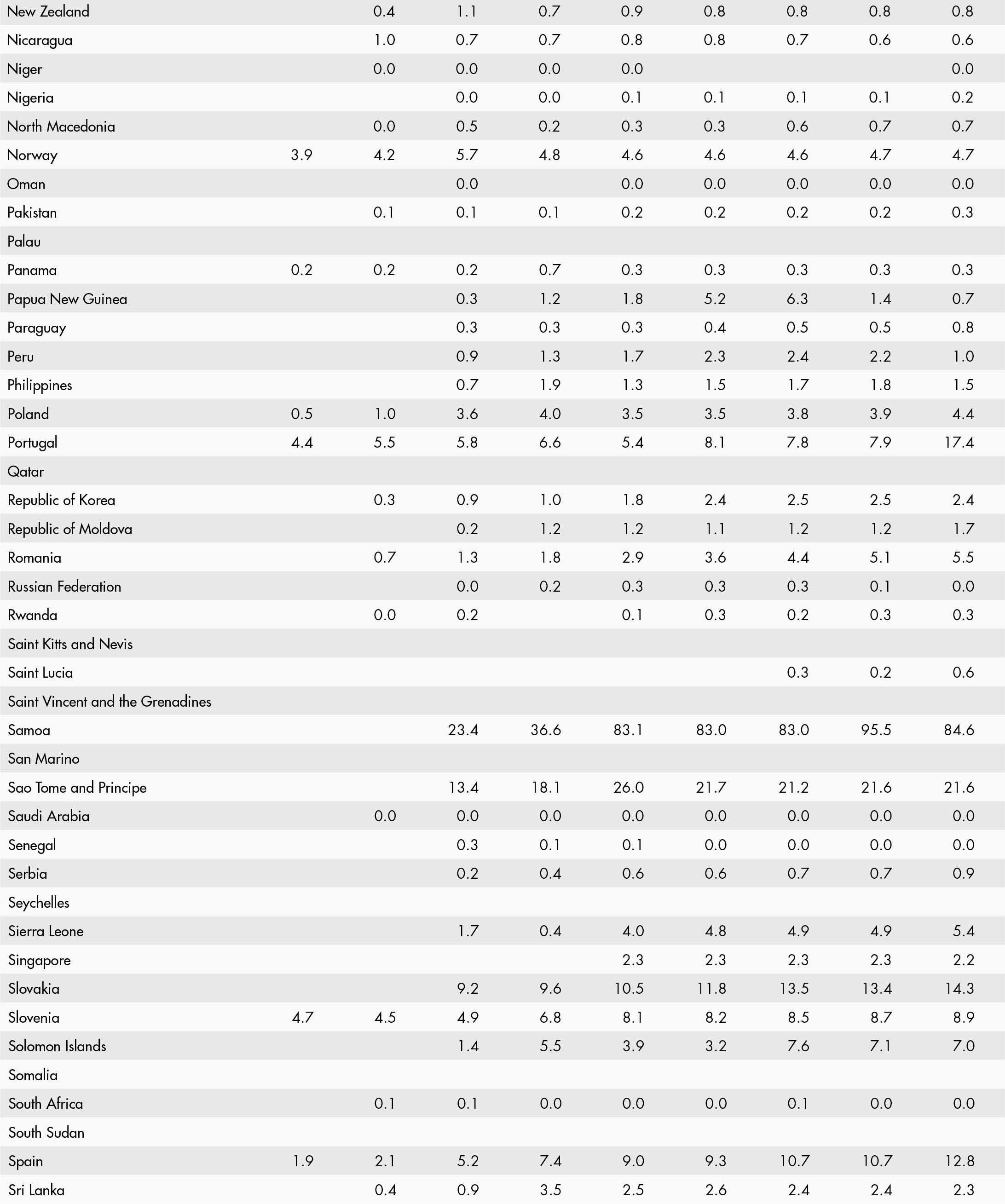 • a blank means that data are not available or that aggregates cannot be calculated because of missing data for the years shown;