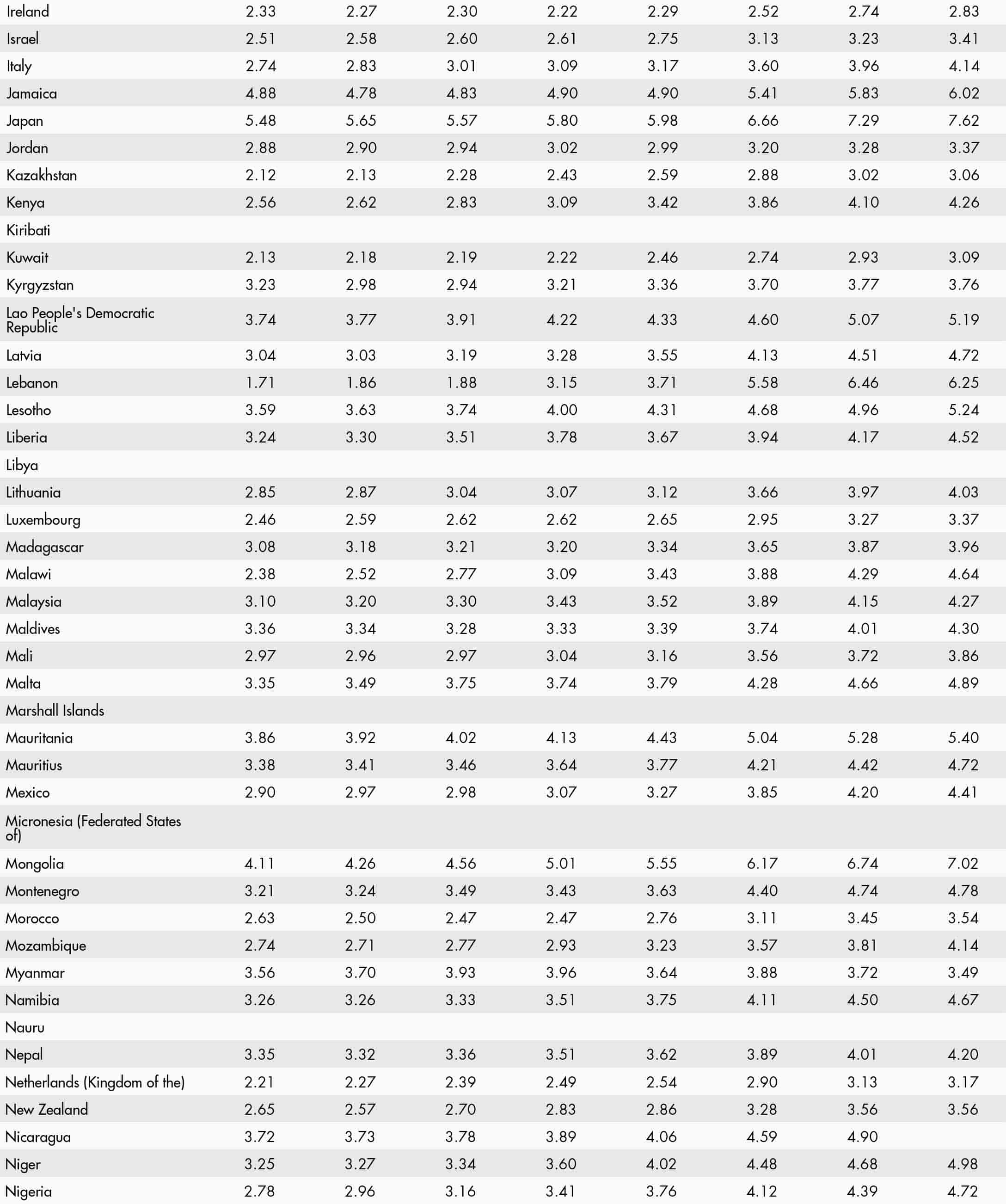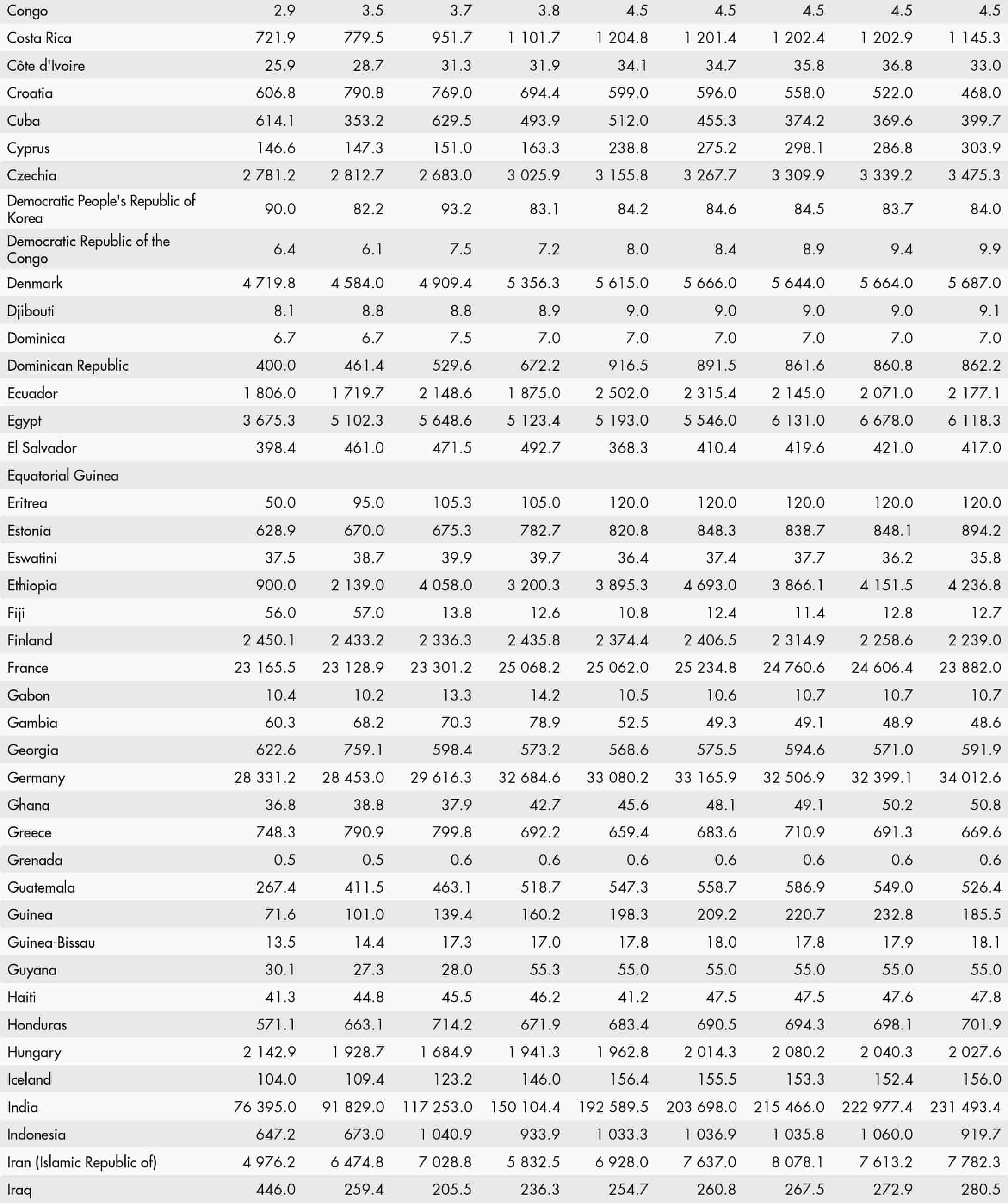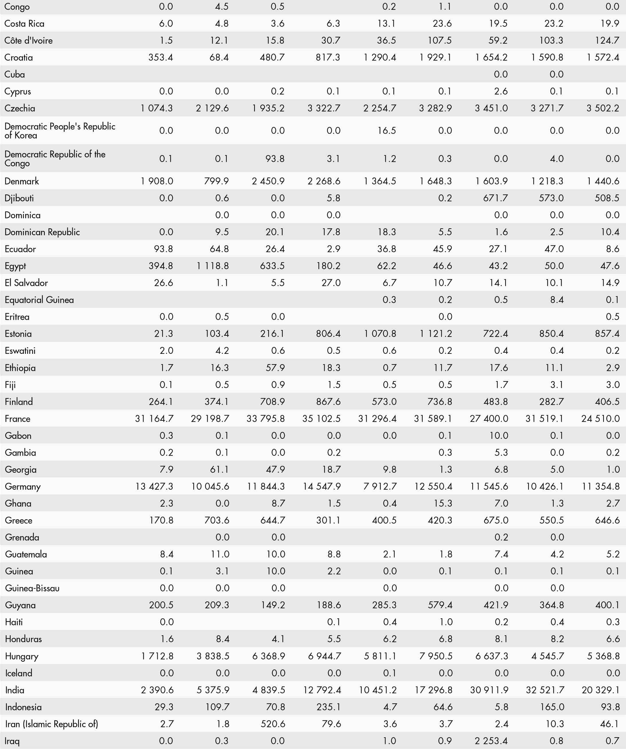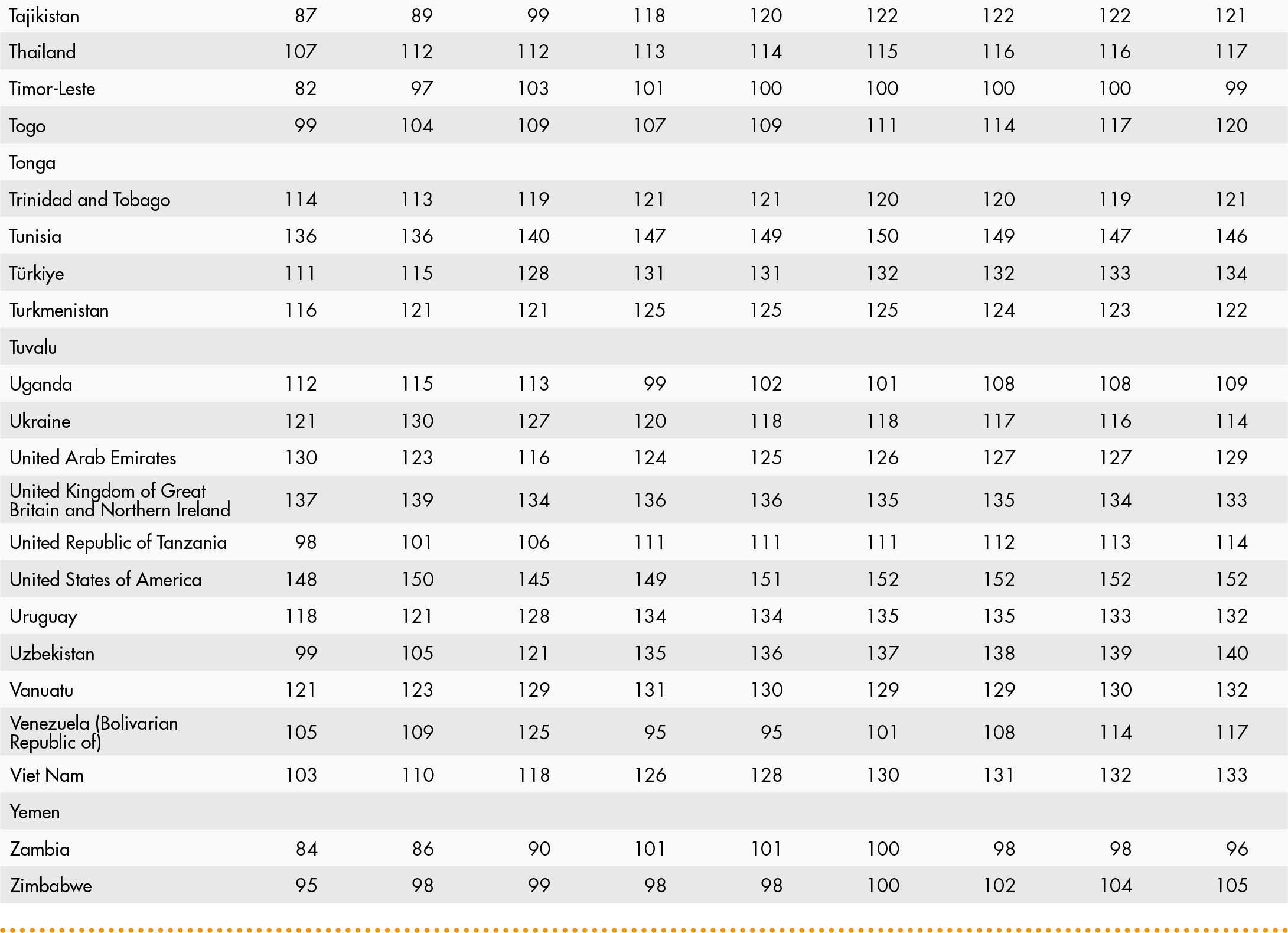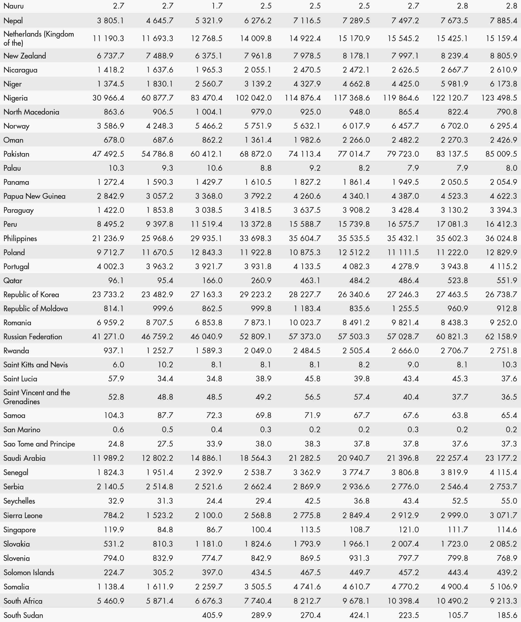 • a blank means that data are not available or that aggregates cannot be calculated because of missing data for the years shown;