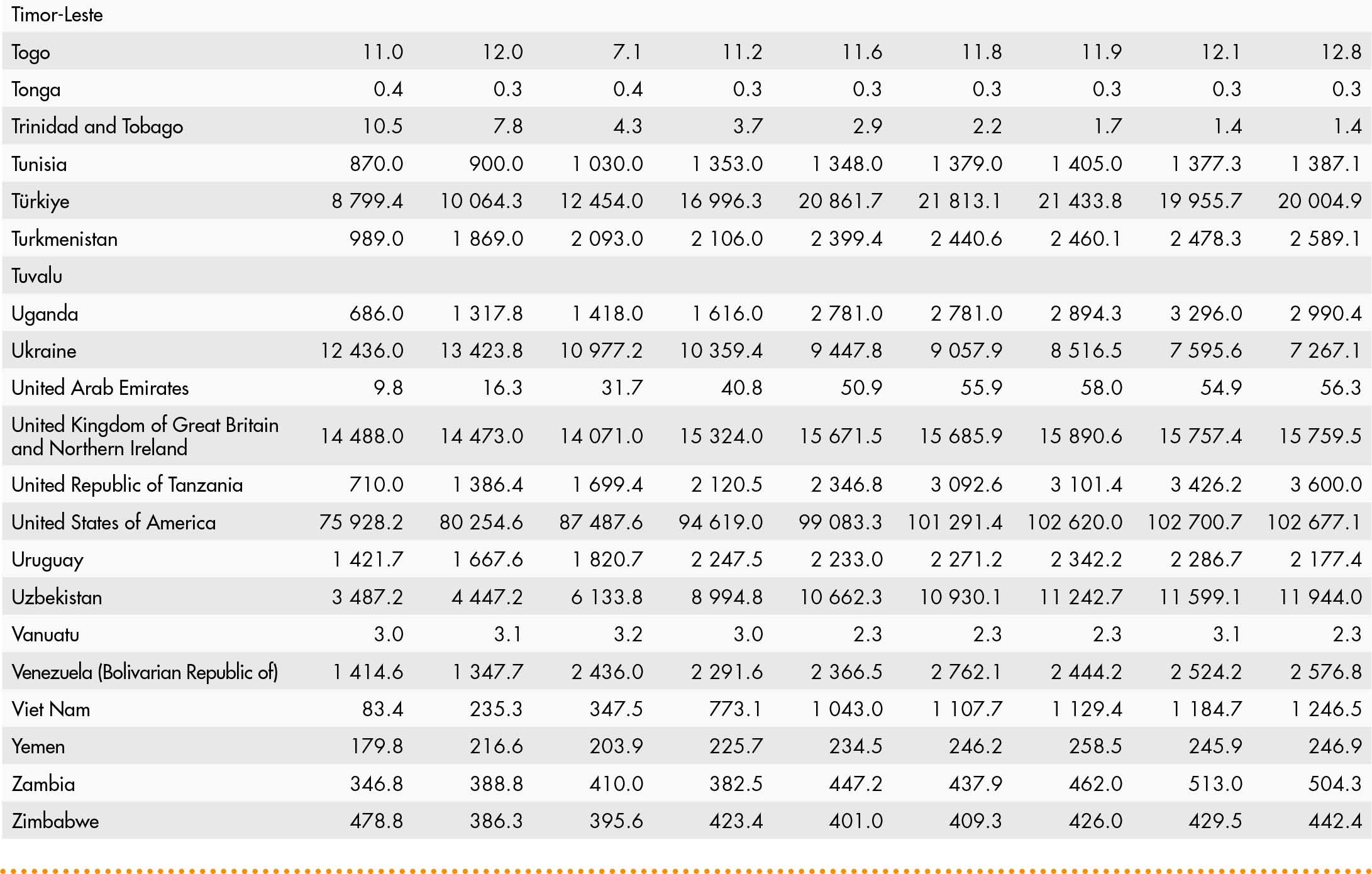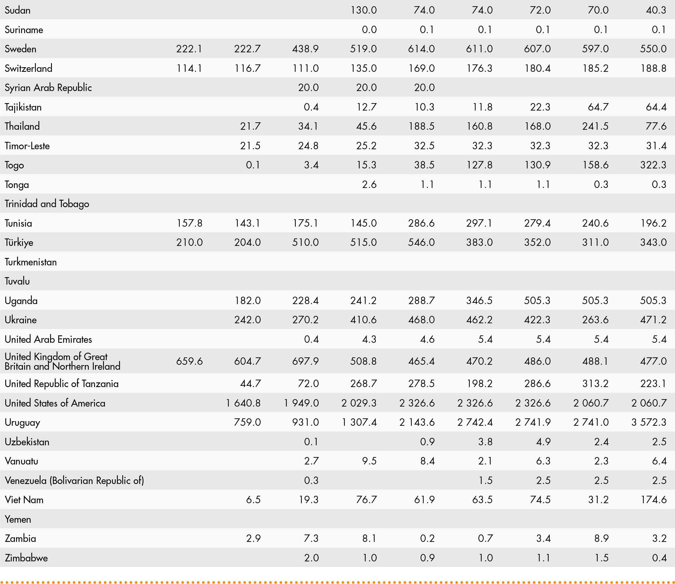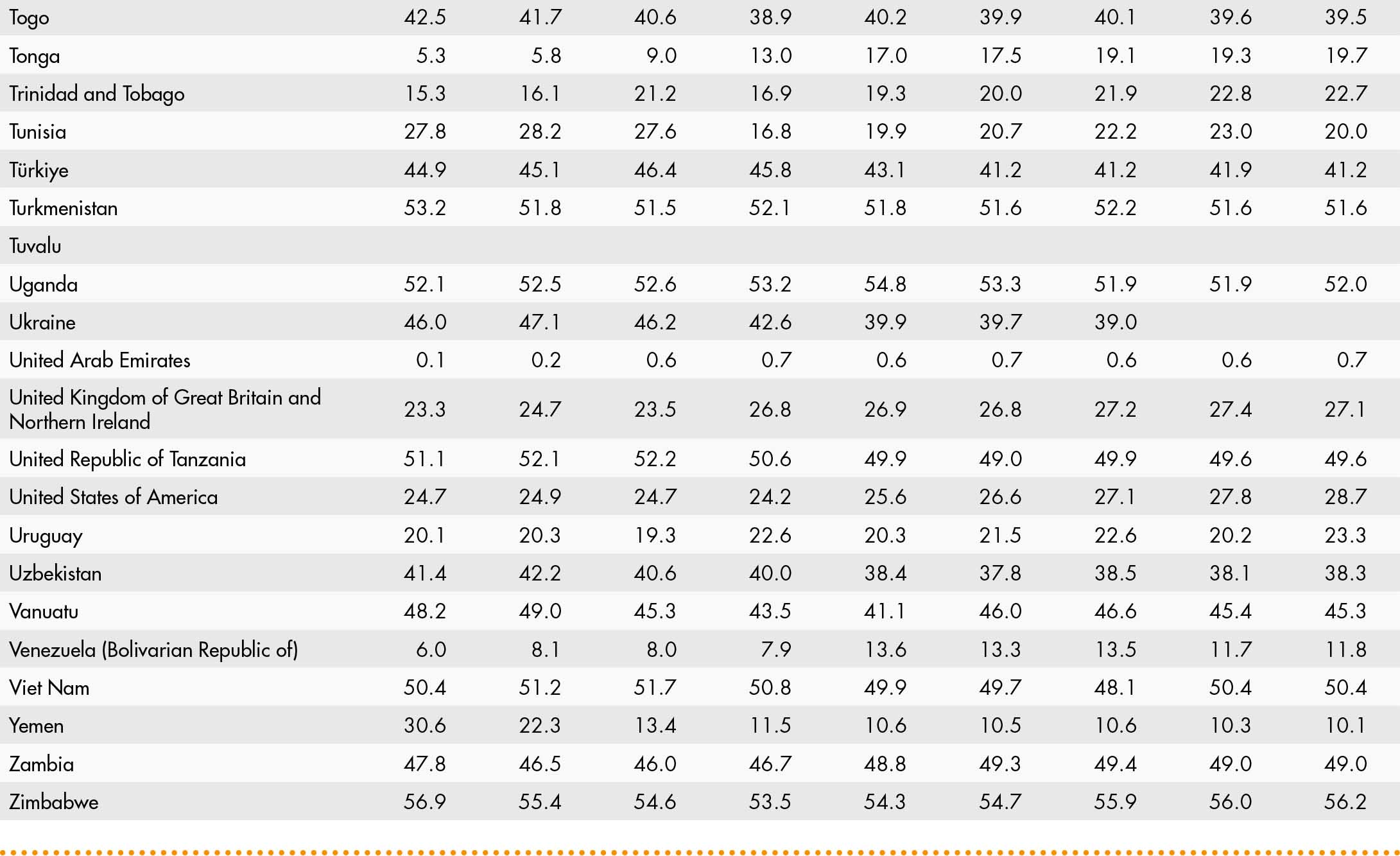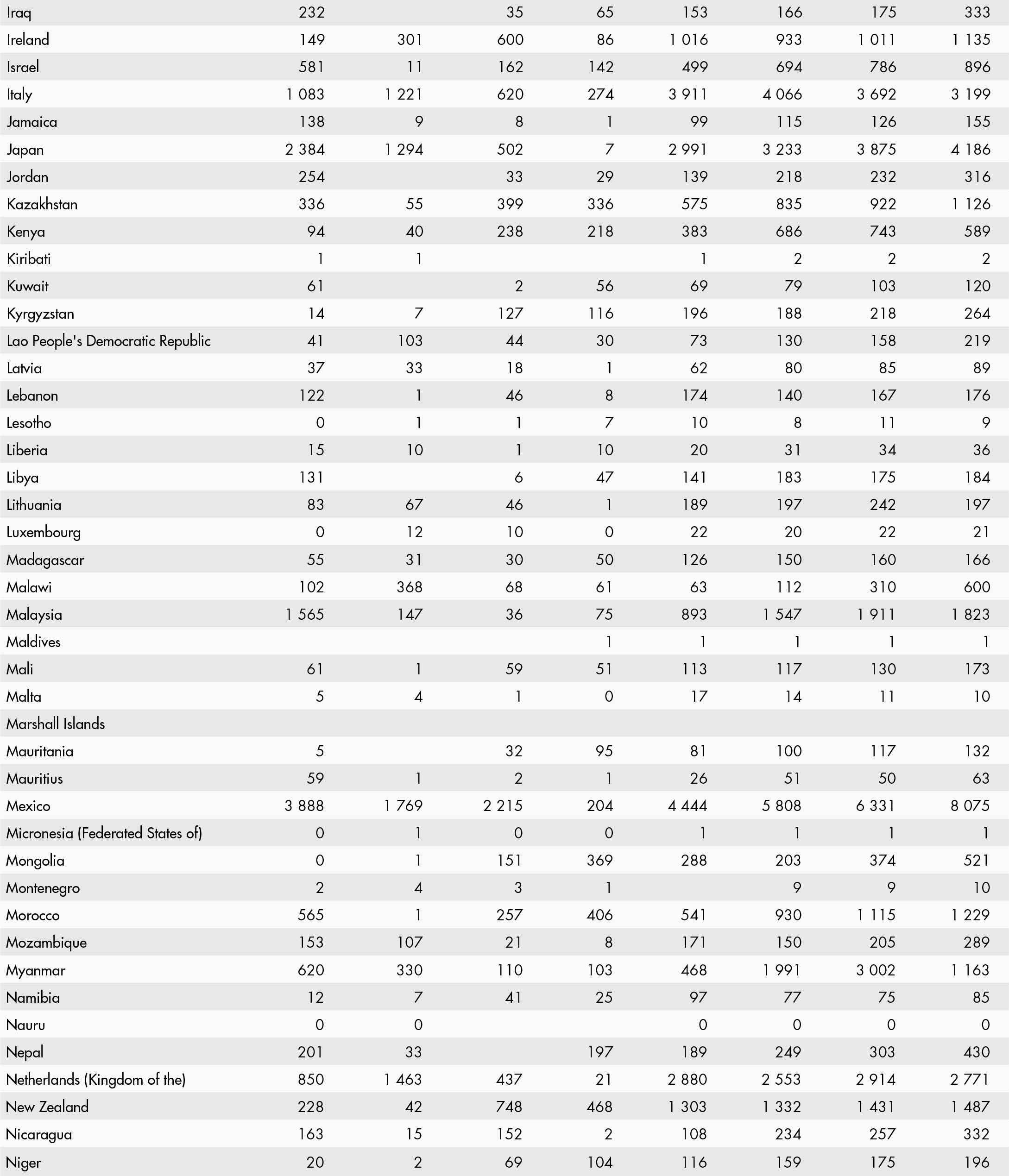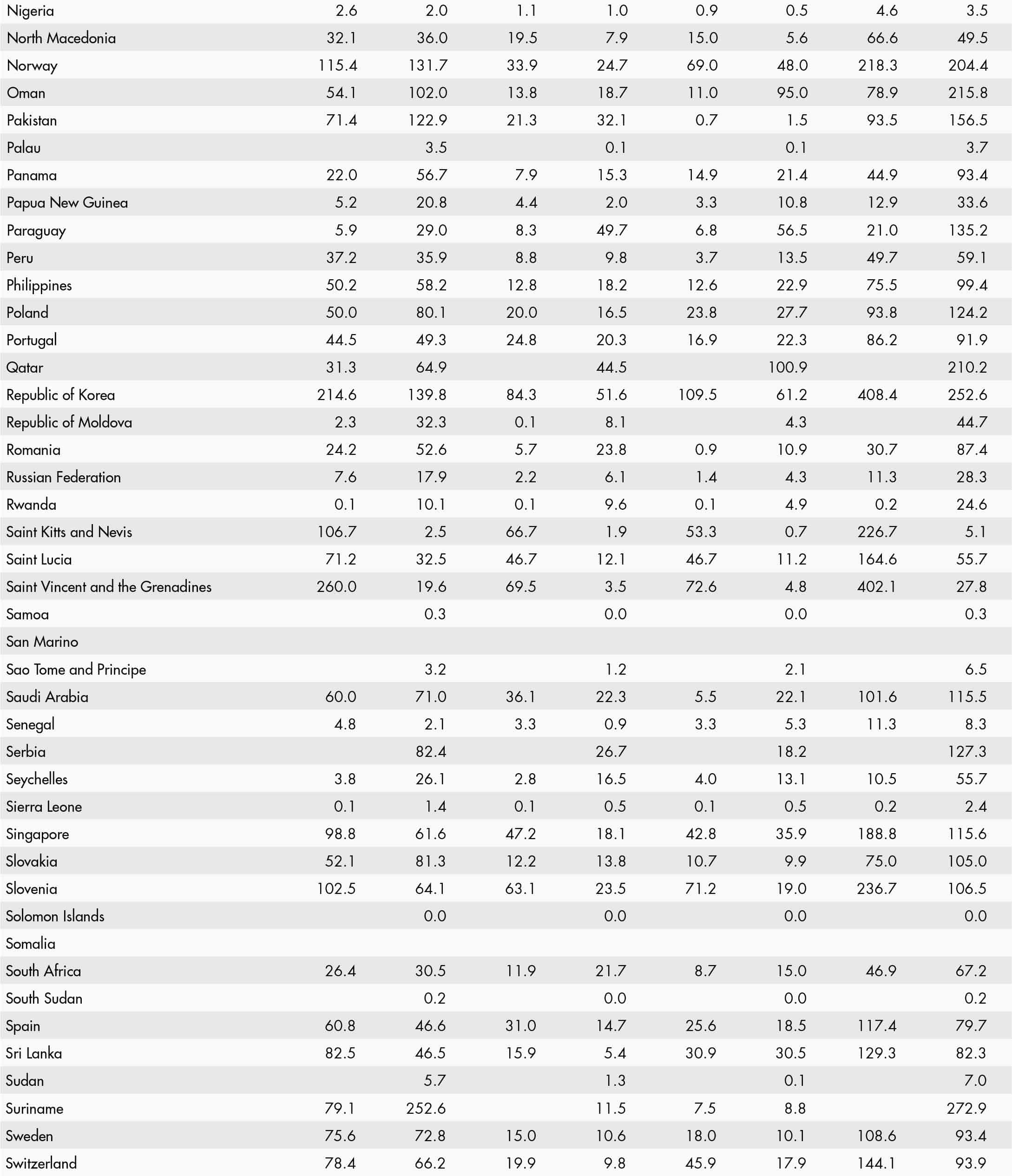 • a blank means that data are not available or that aggregates cannot be calculated because of missing data for the years shown;