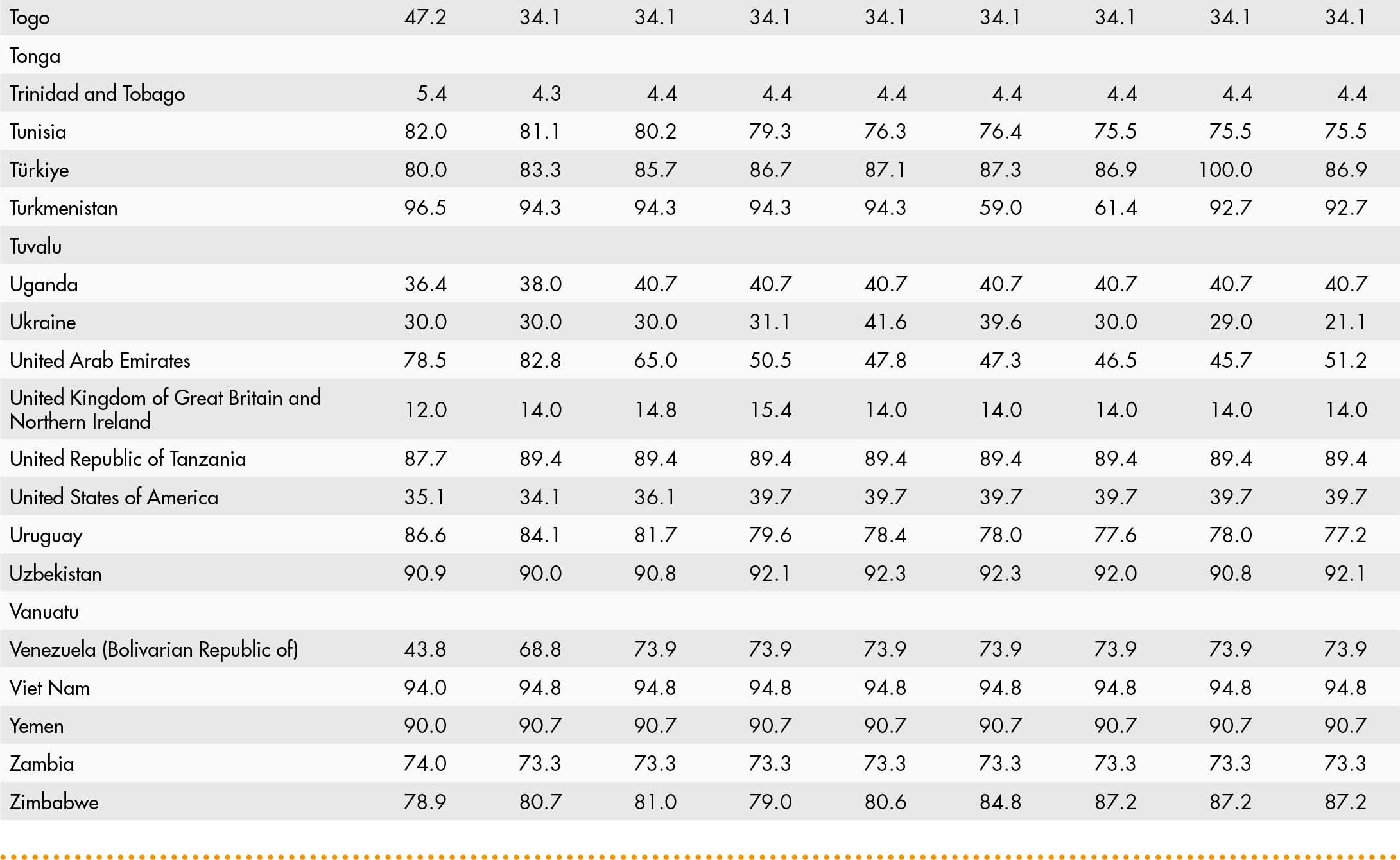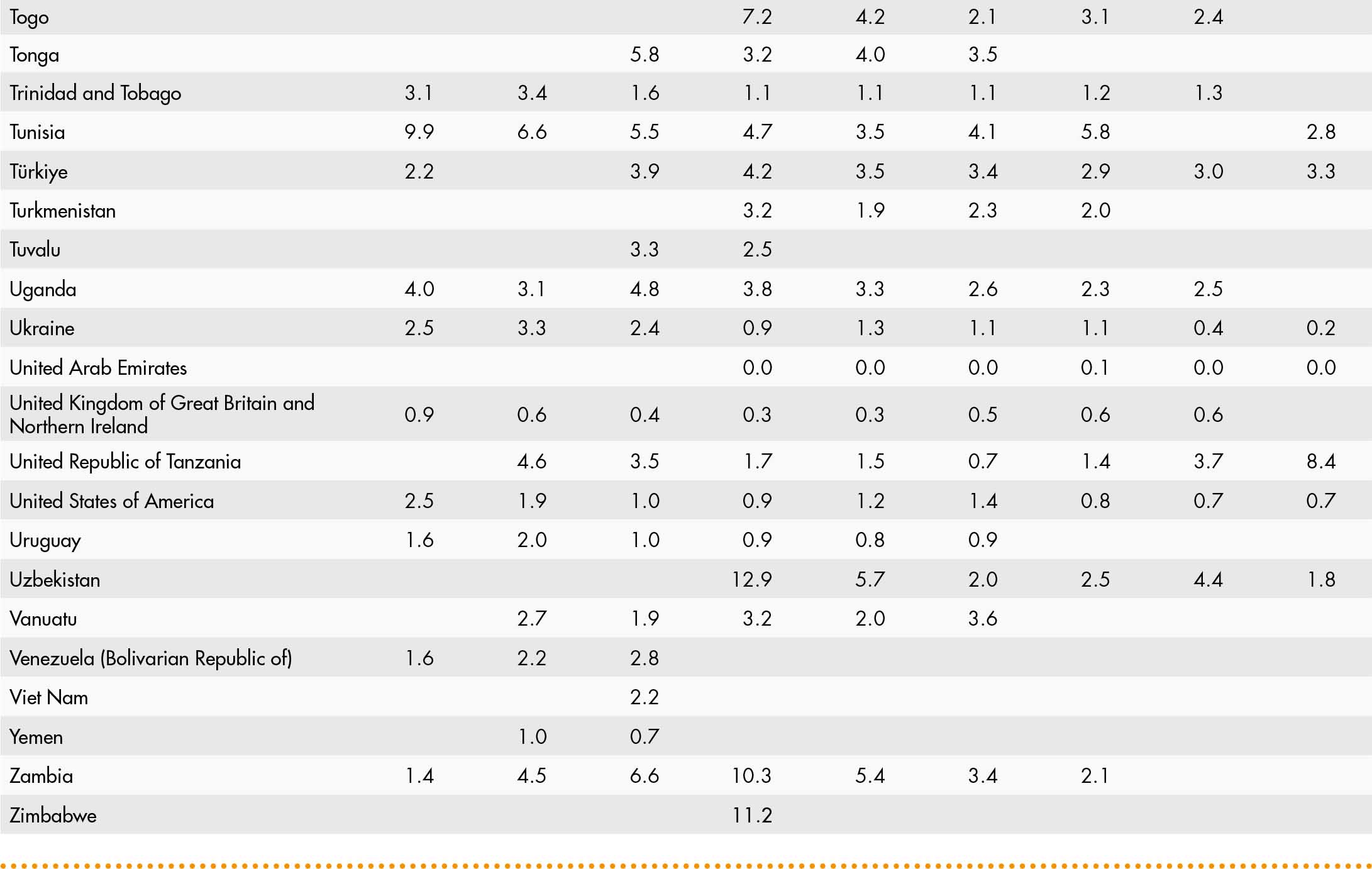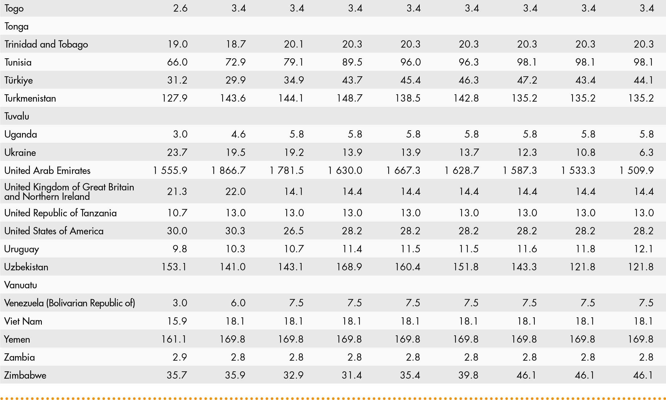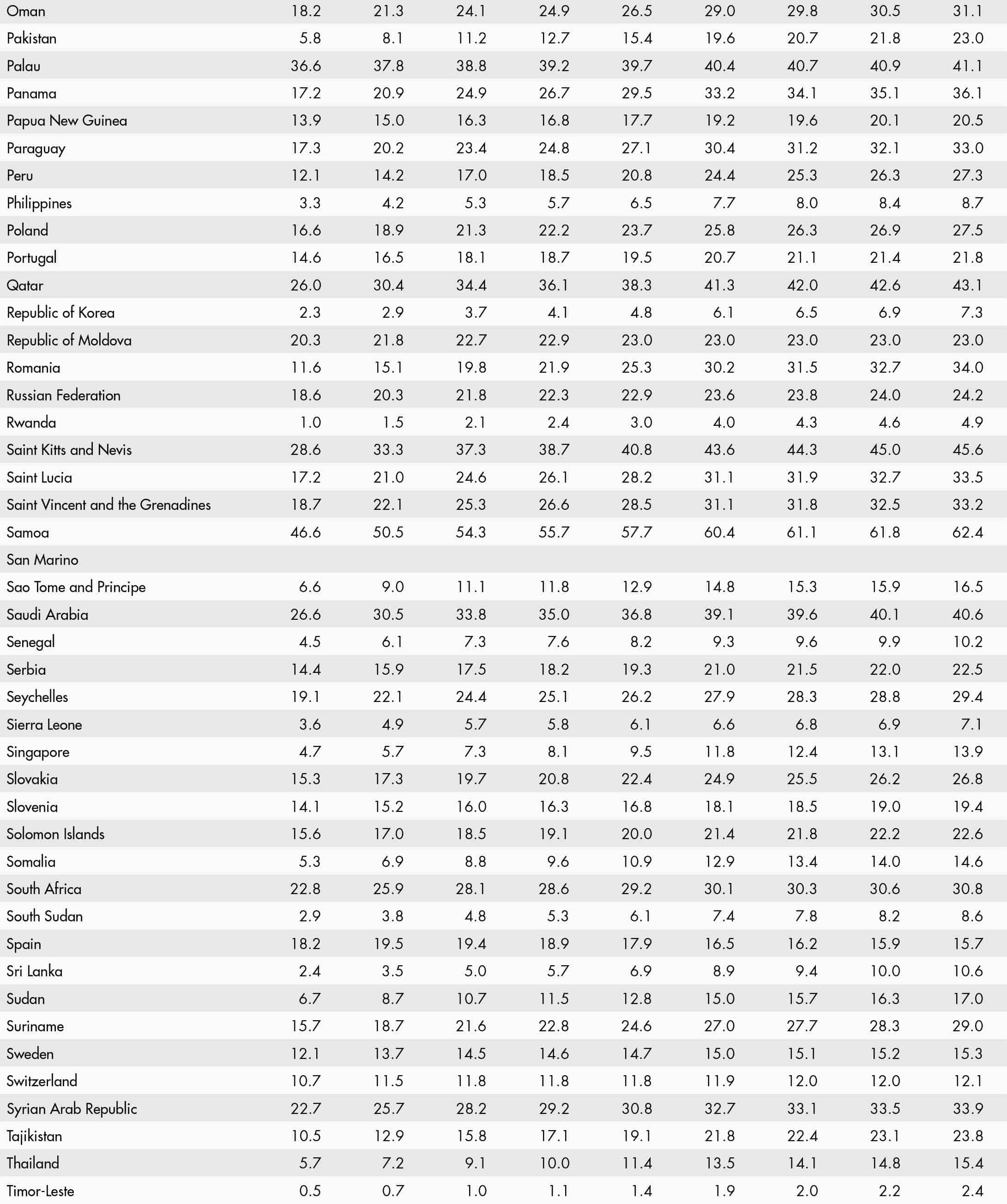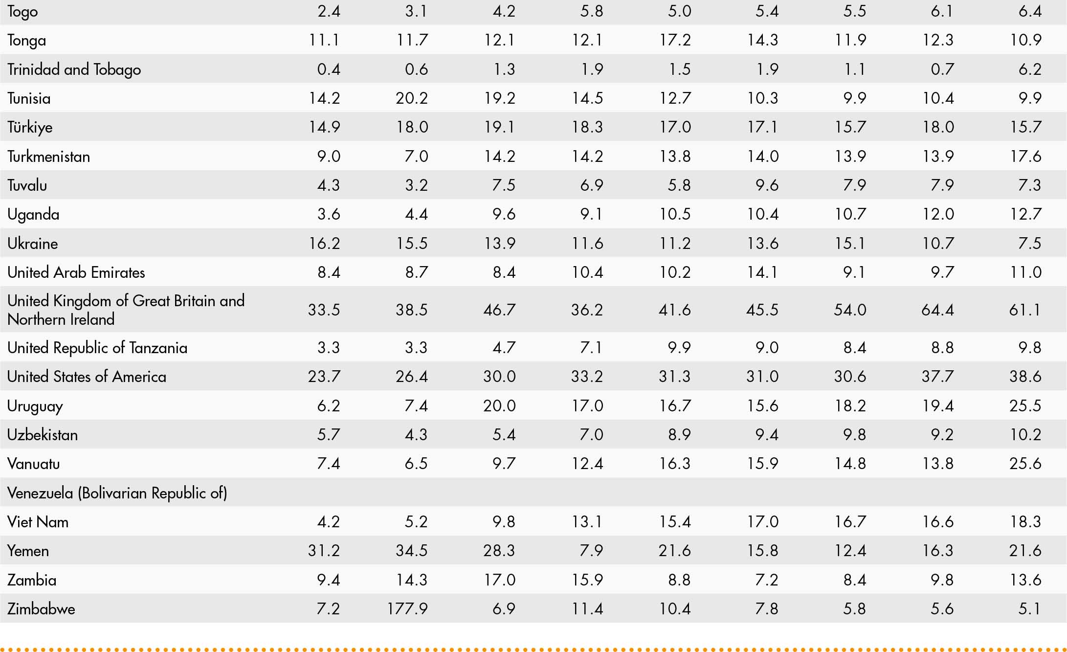 • a blank means that data are not available or that aggregates cannot be calculated because of missing data for the years shown;