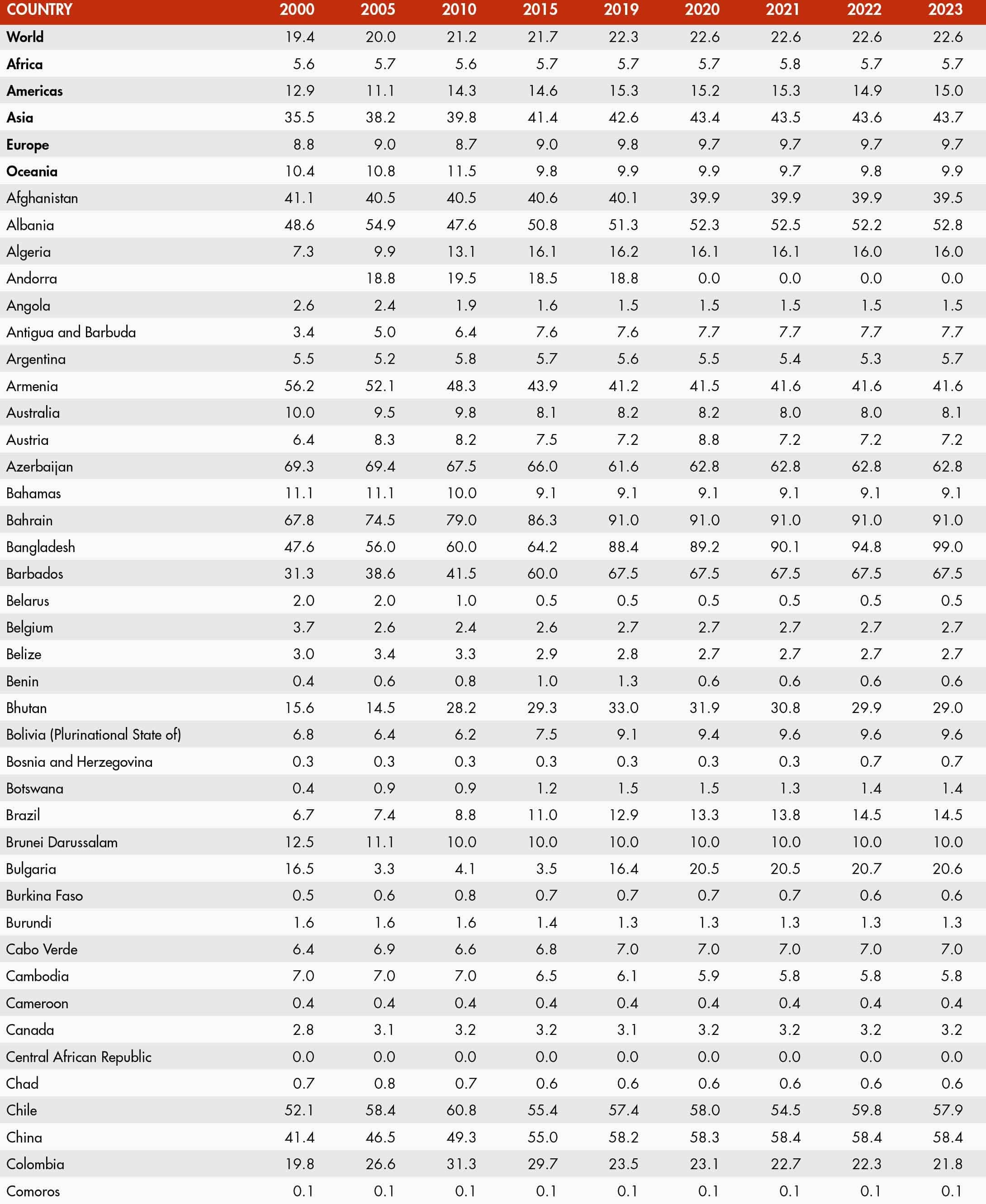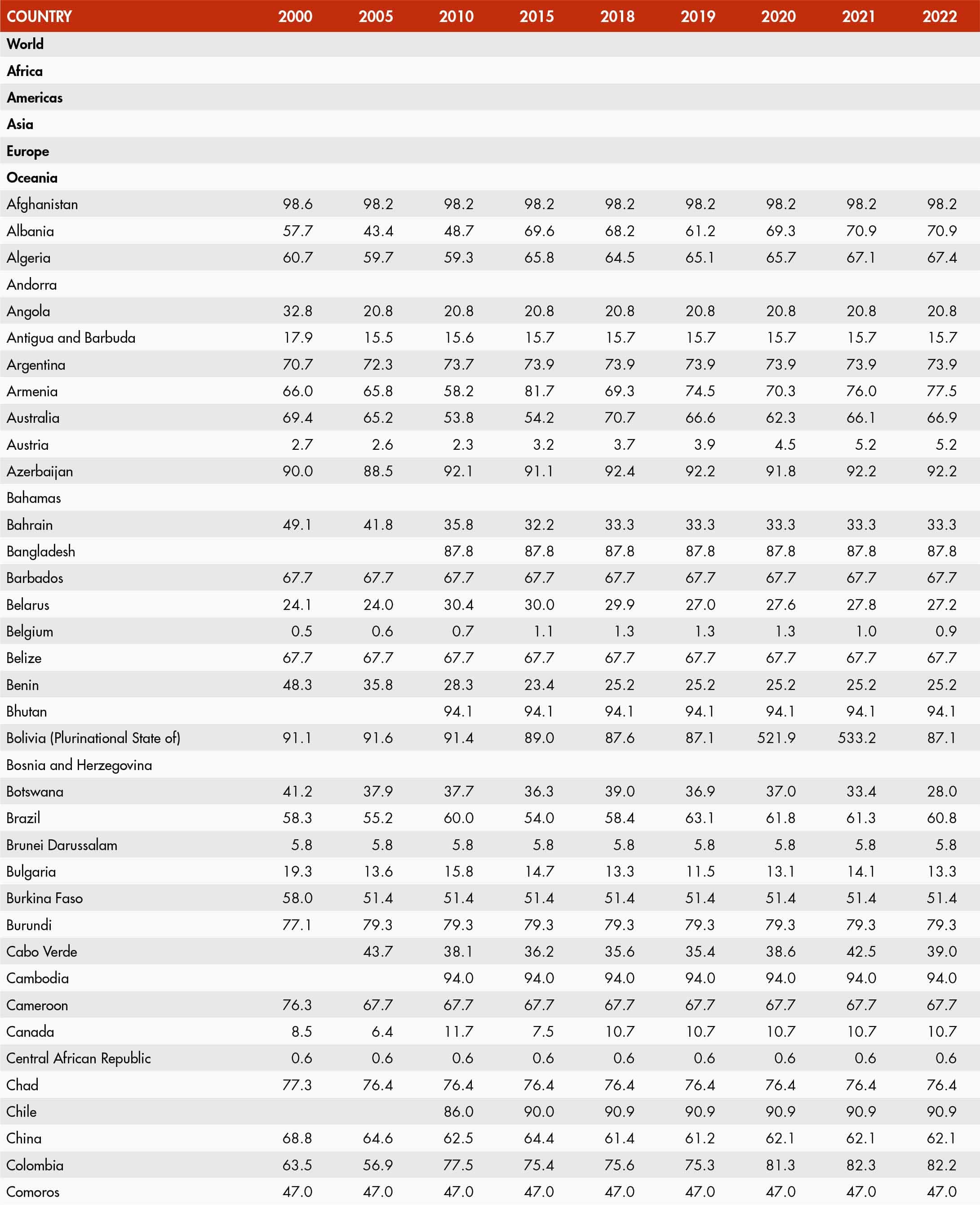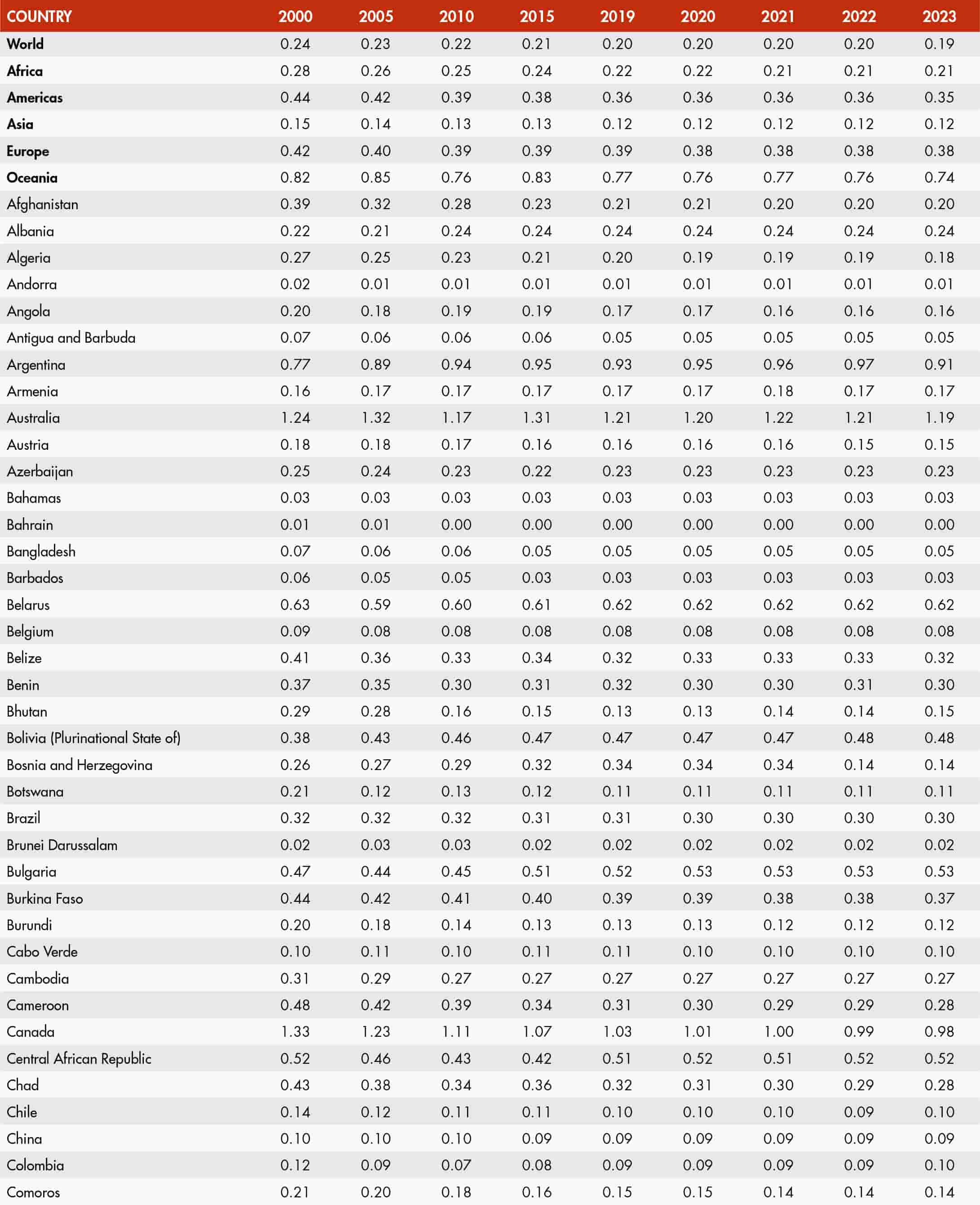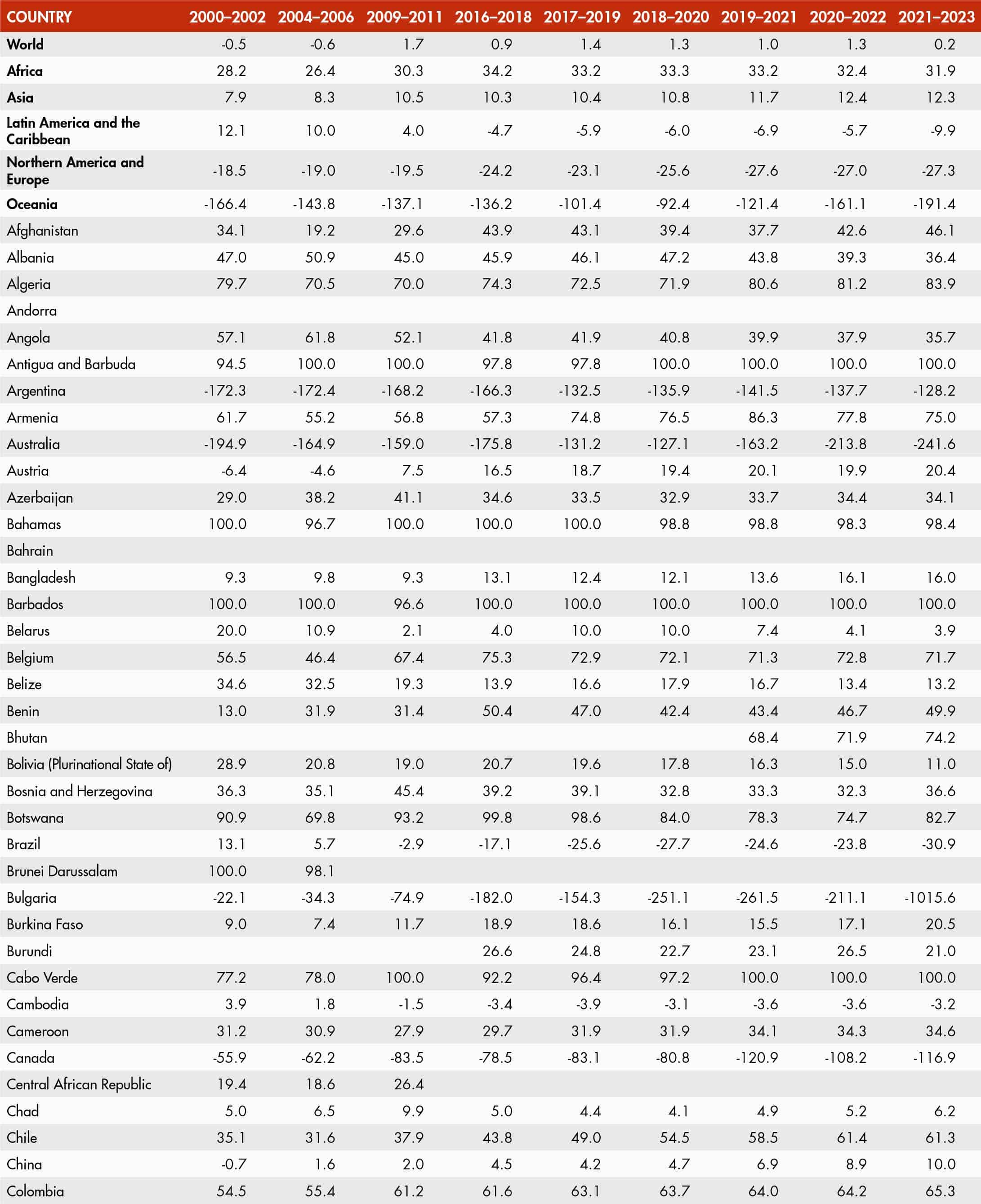 • When country data have not been reported for the reference year, an asterisk (*) on the year label indicates that the value for the most recent year available is shown. For example, 2021–2023* means that the most recent value for the period from 2021 to 2023 is shown.