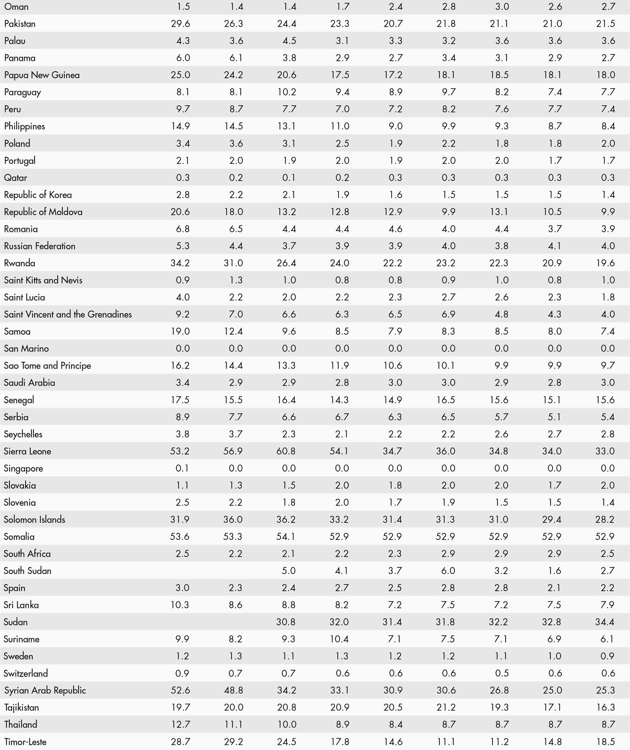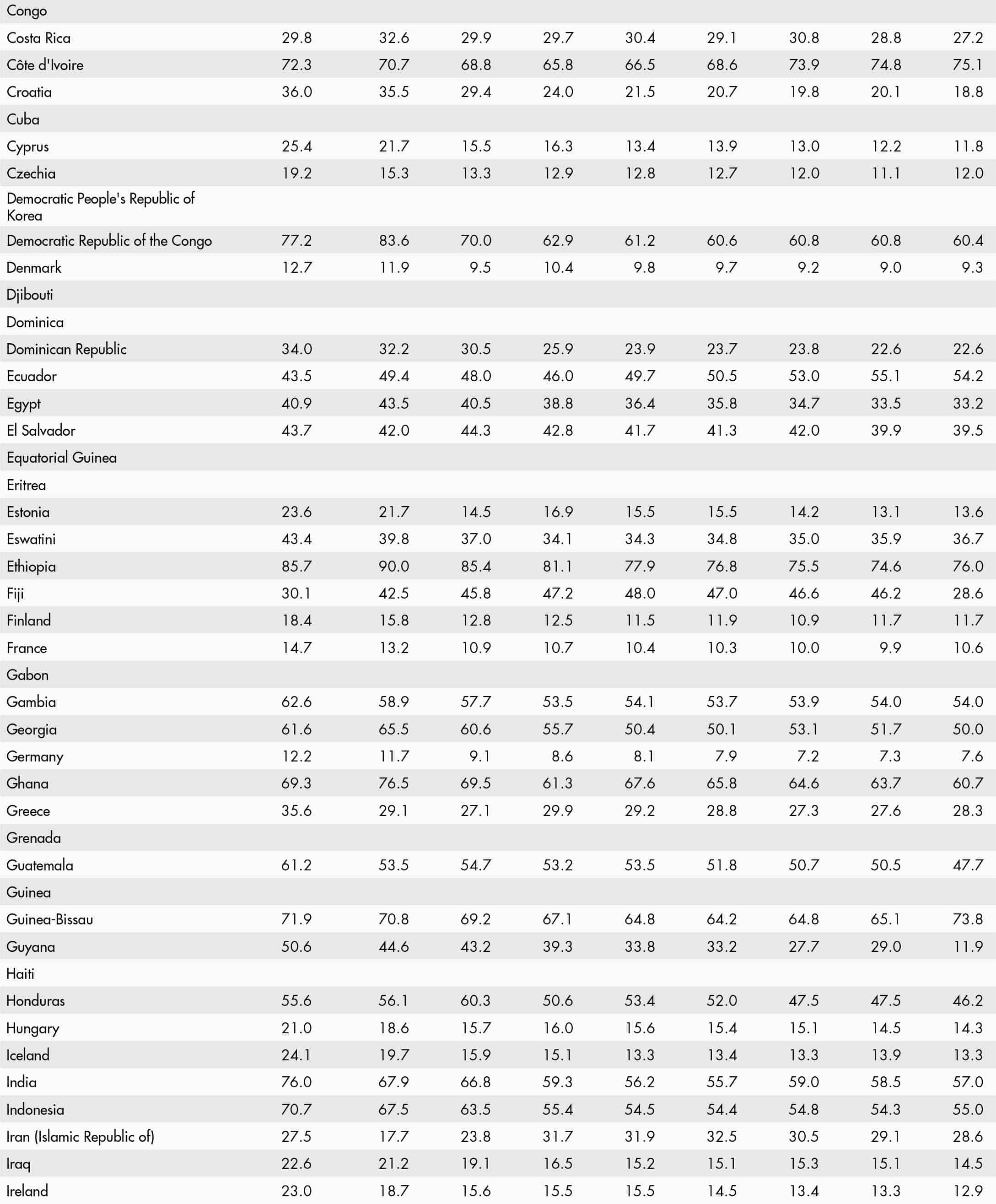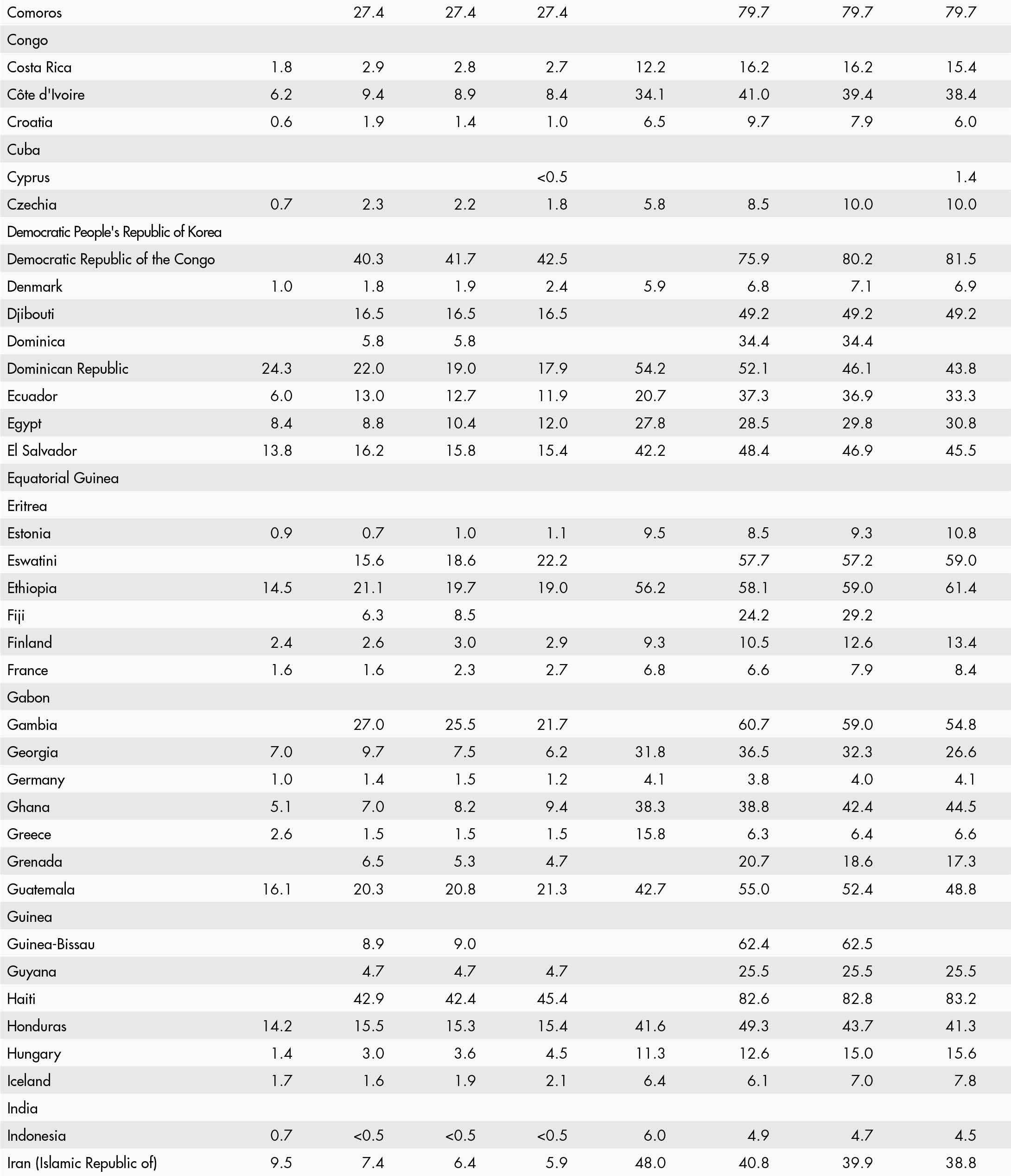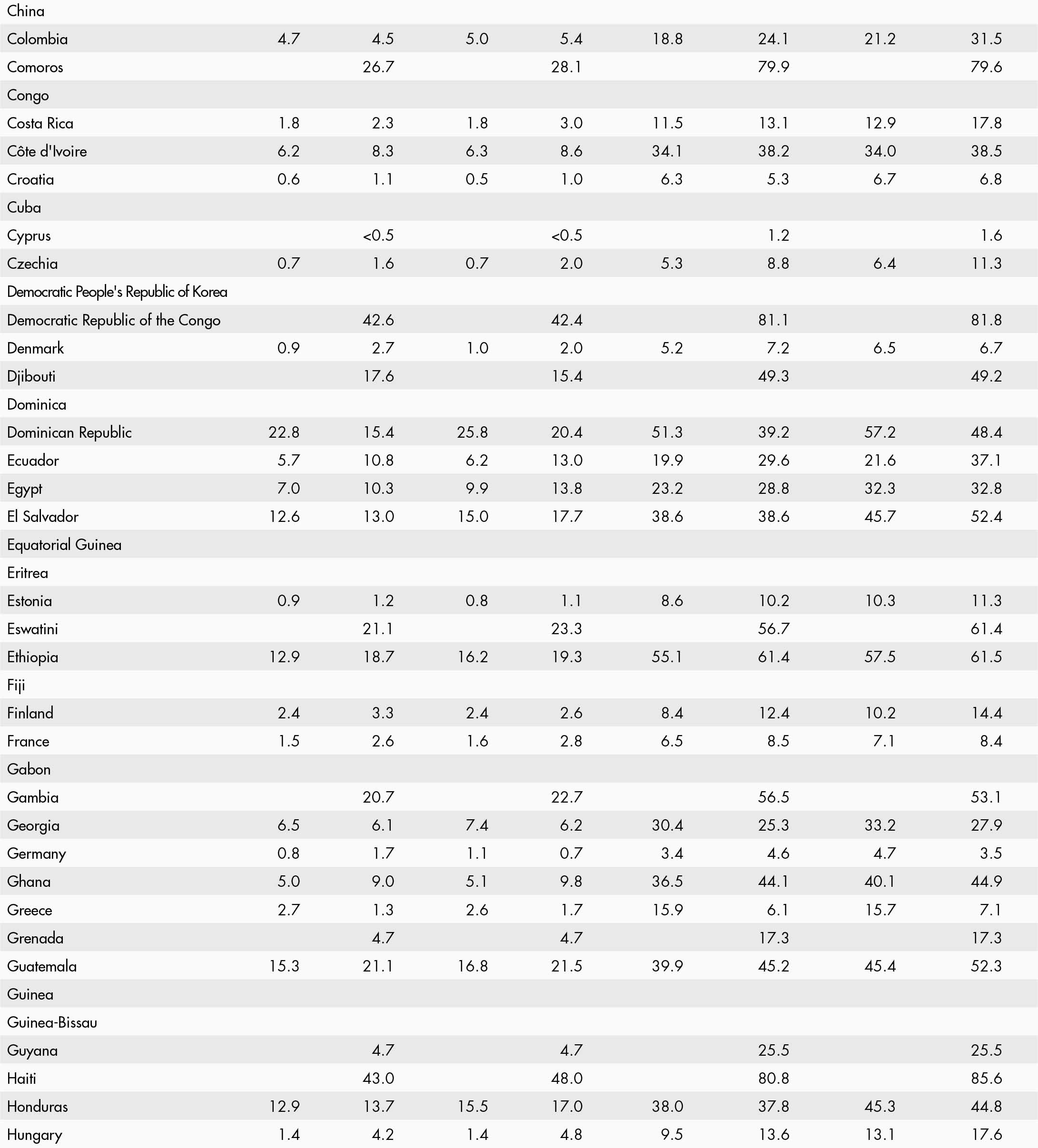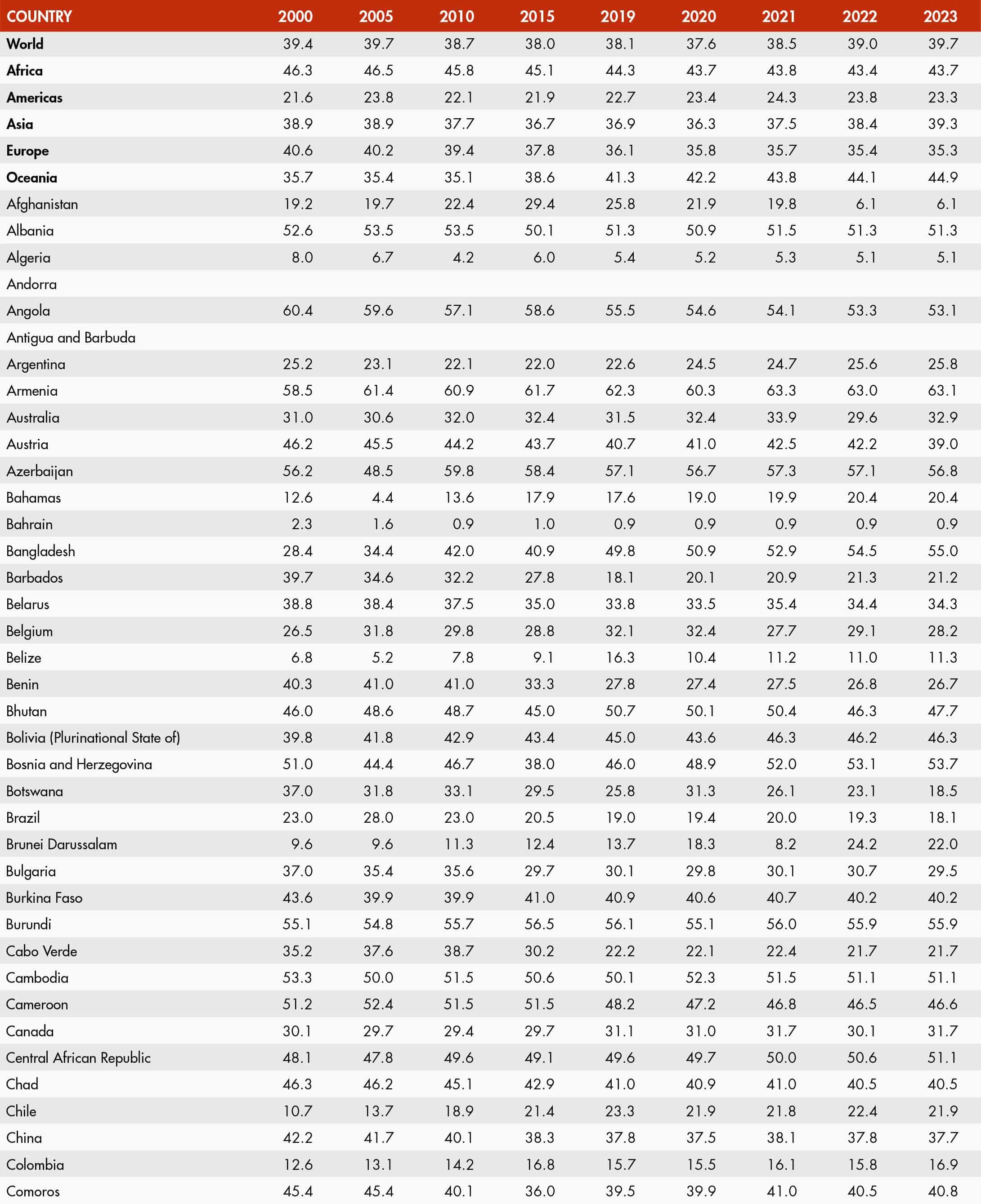 • When country data have not been reported for the reference year, an asterisk (*) on the year label indicates that the value for the most recent year available is shown. For example, 2021–2023* means that the most recent value for the period from 2021 to 2023 is shown.