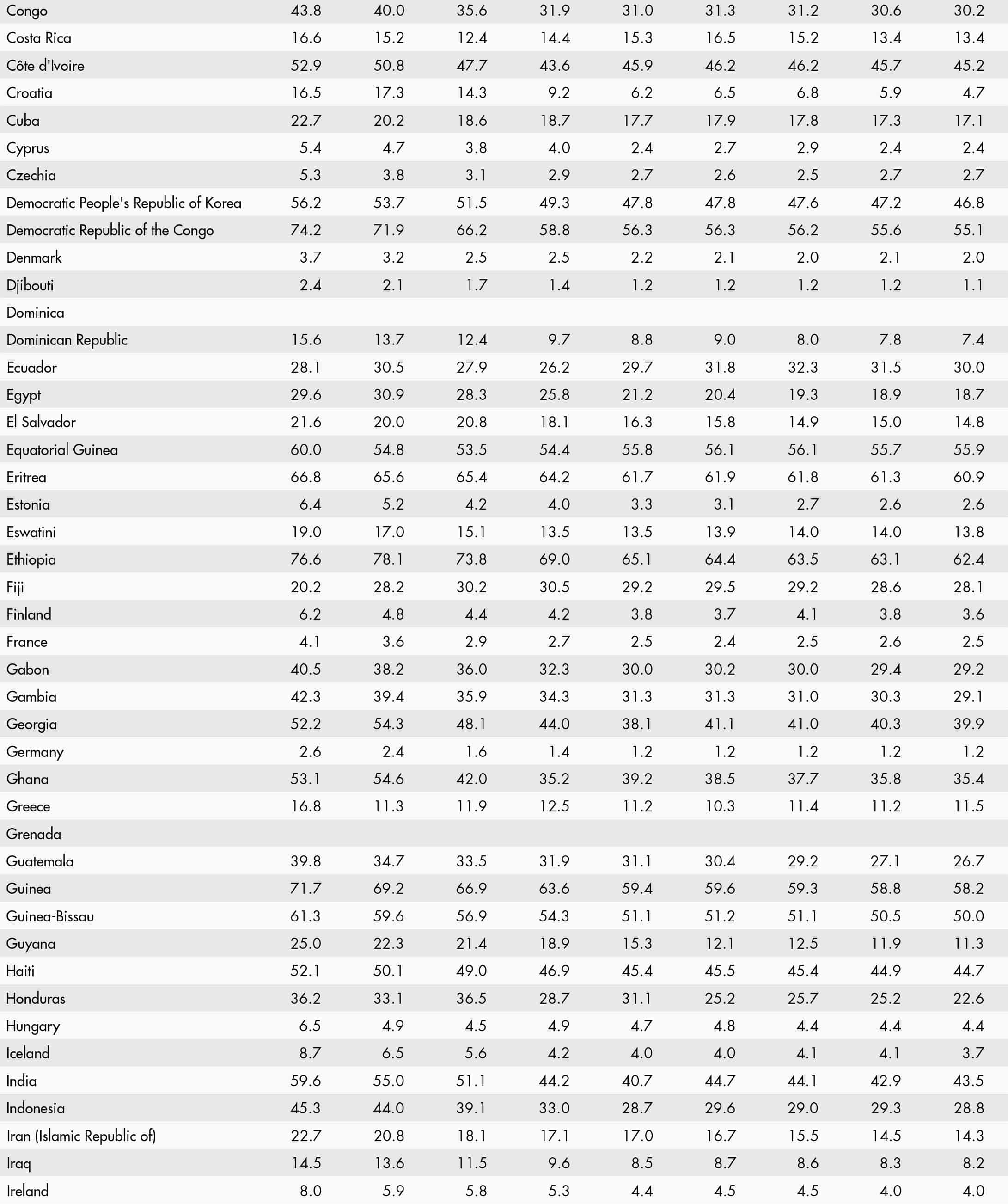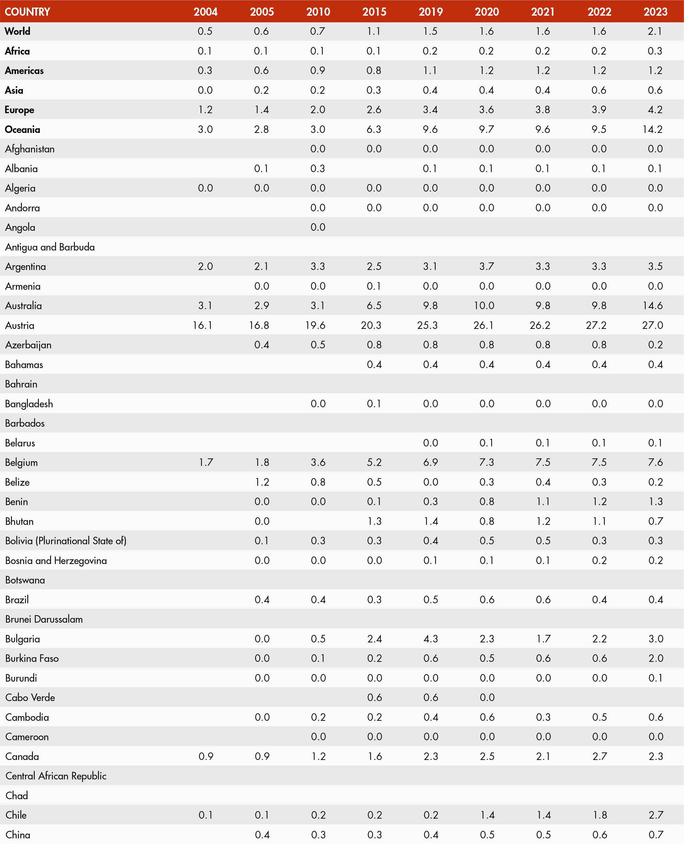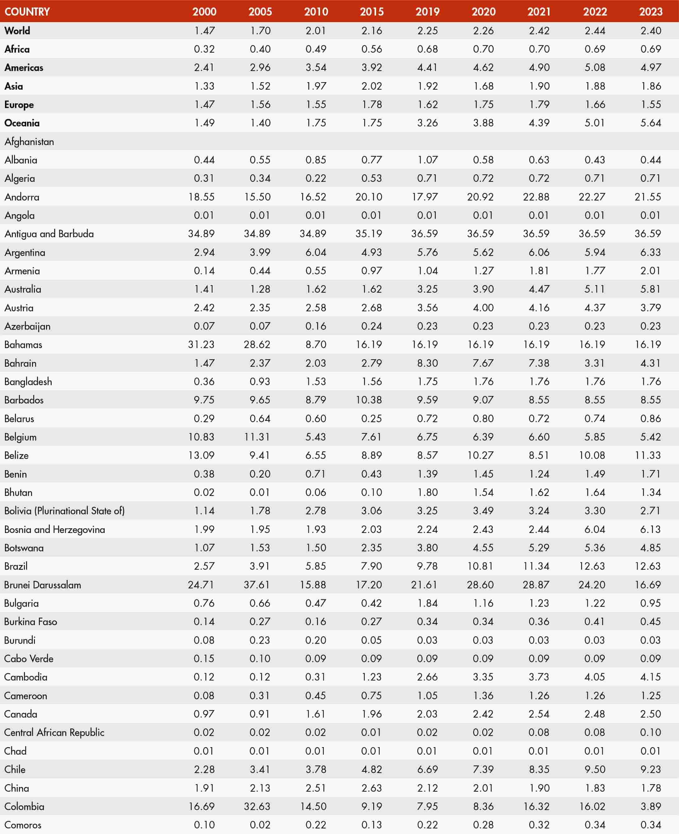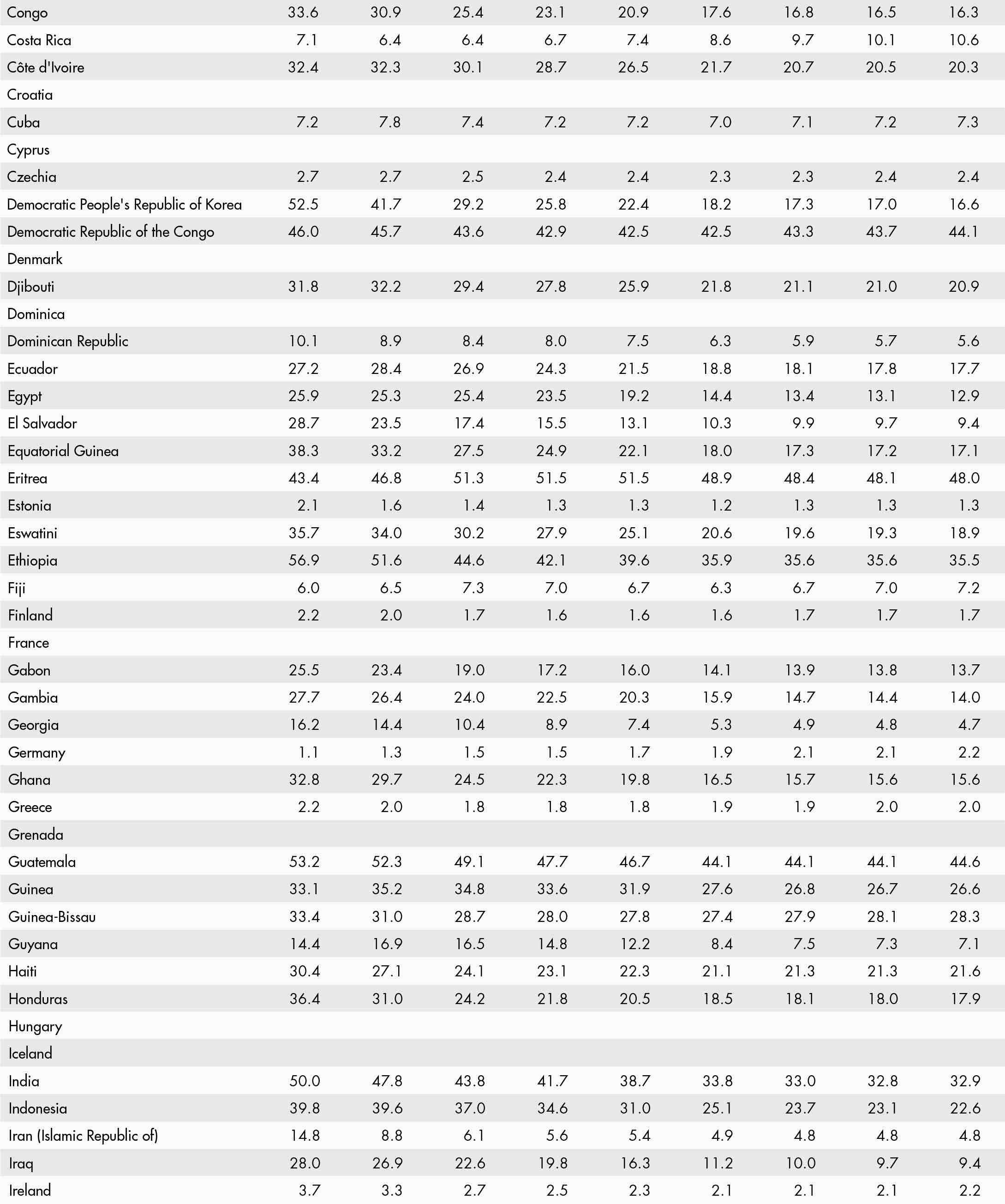 • When country data have not been reported for the reference year, an asterisk (*) on the year label indicates that the value for the most recent year available is shown. For example, 2021–2023* means that the most recent value for the period from 2021 to 2023 is shown.