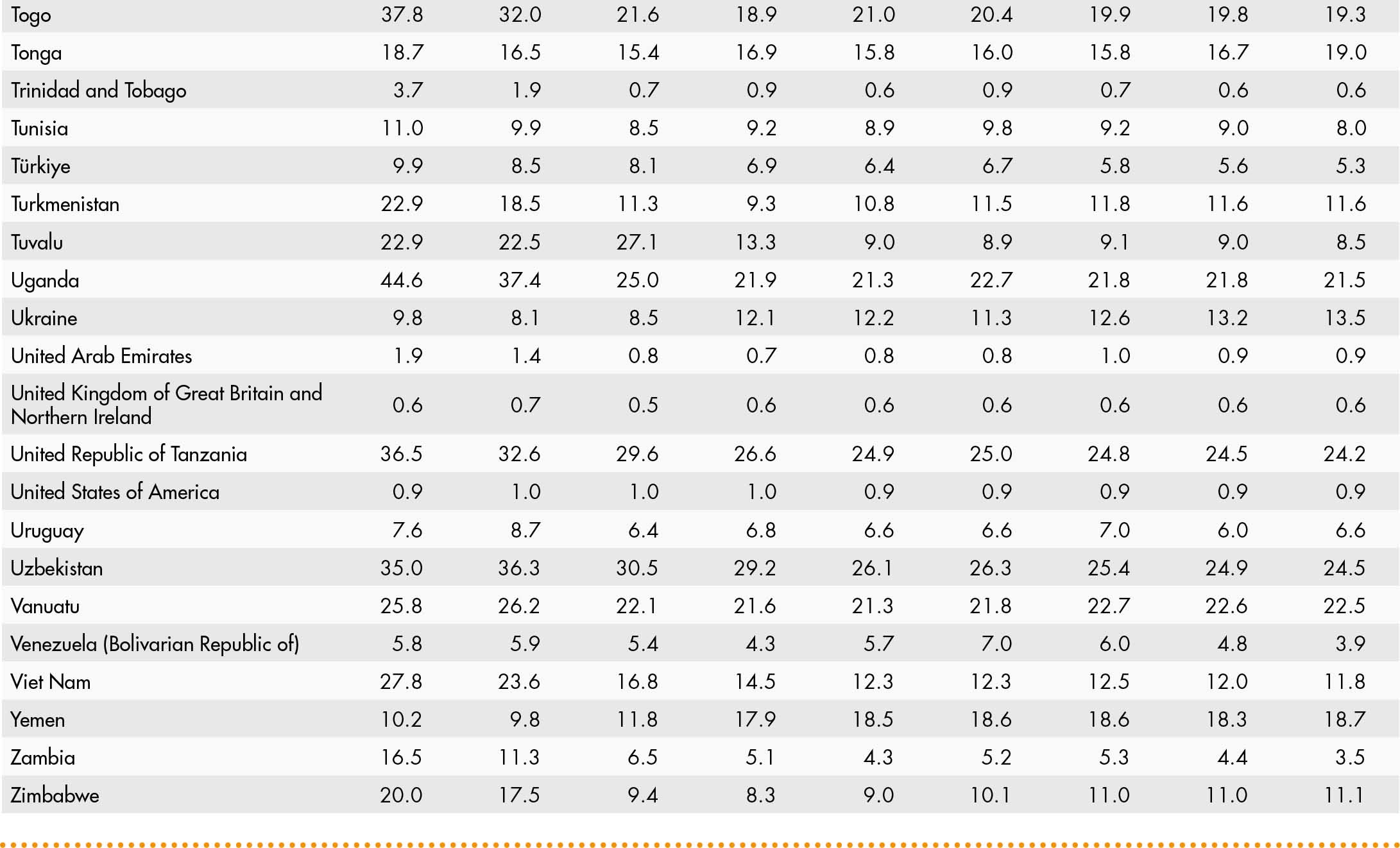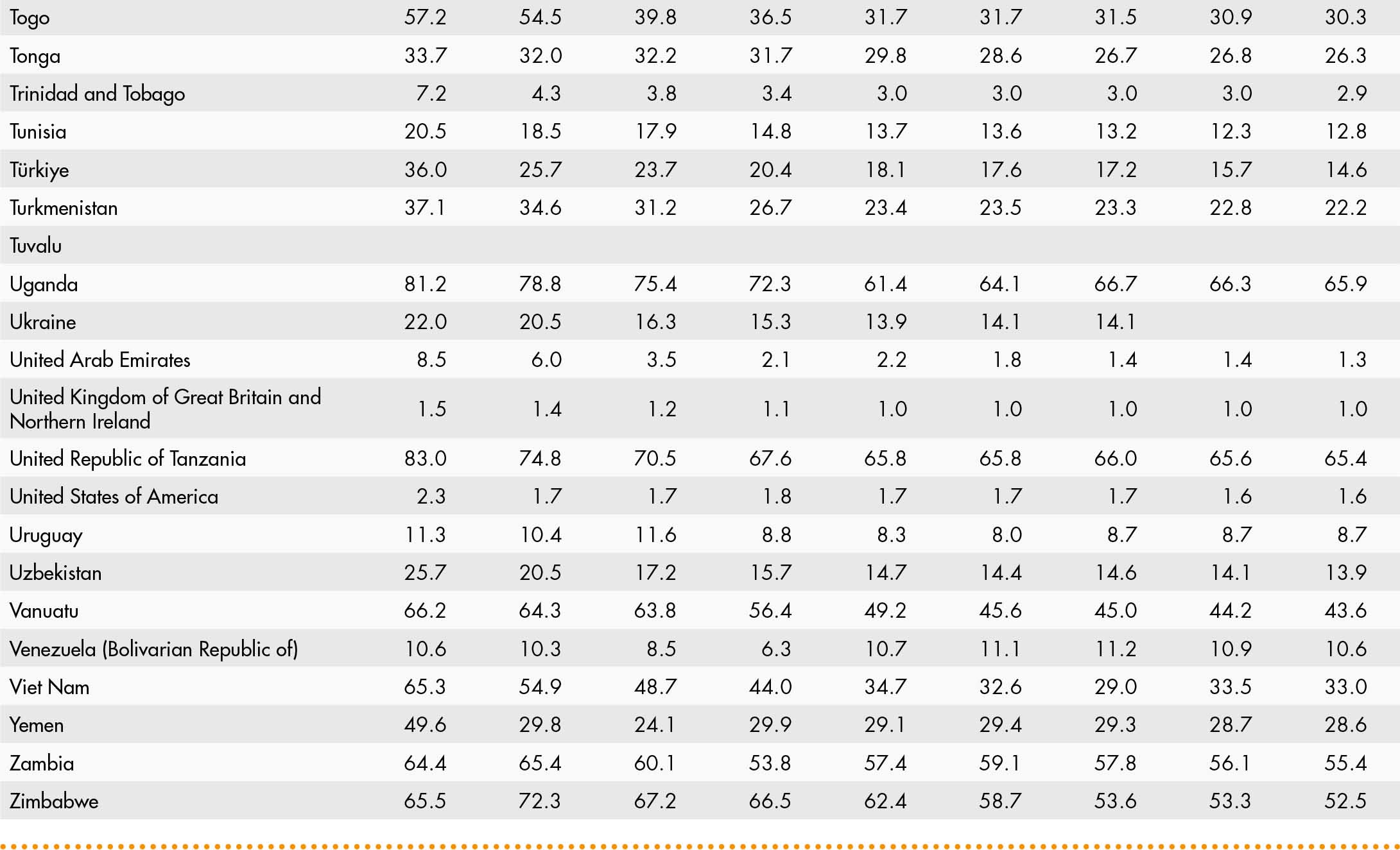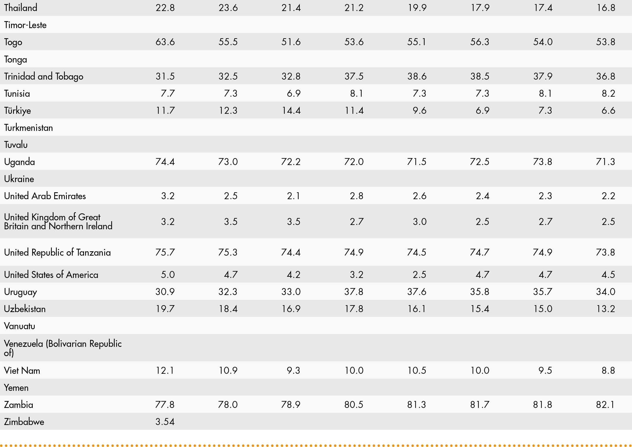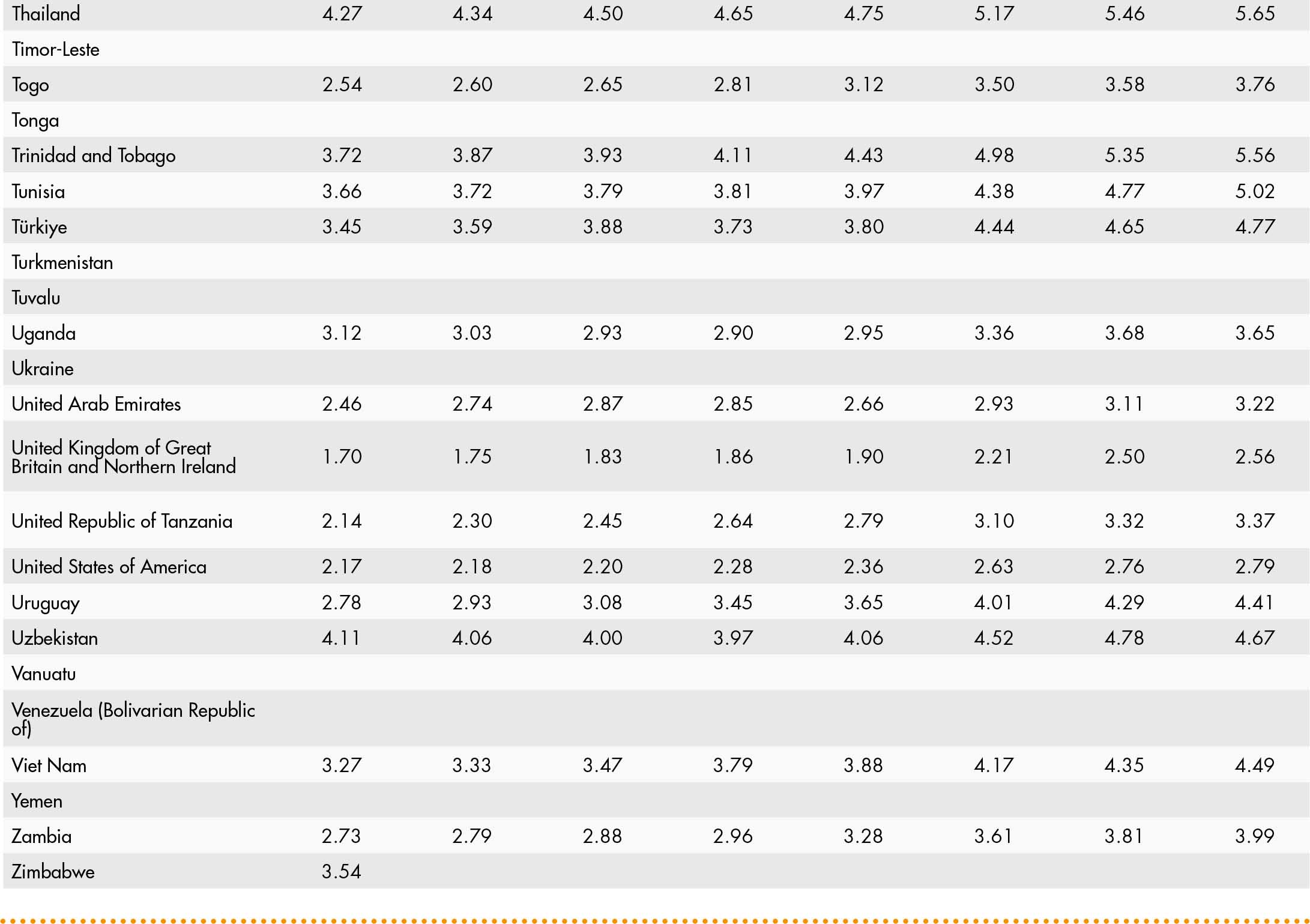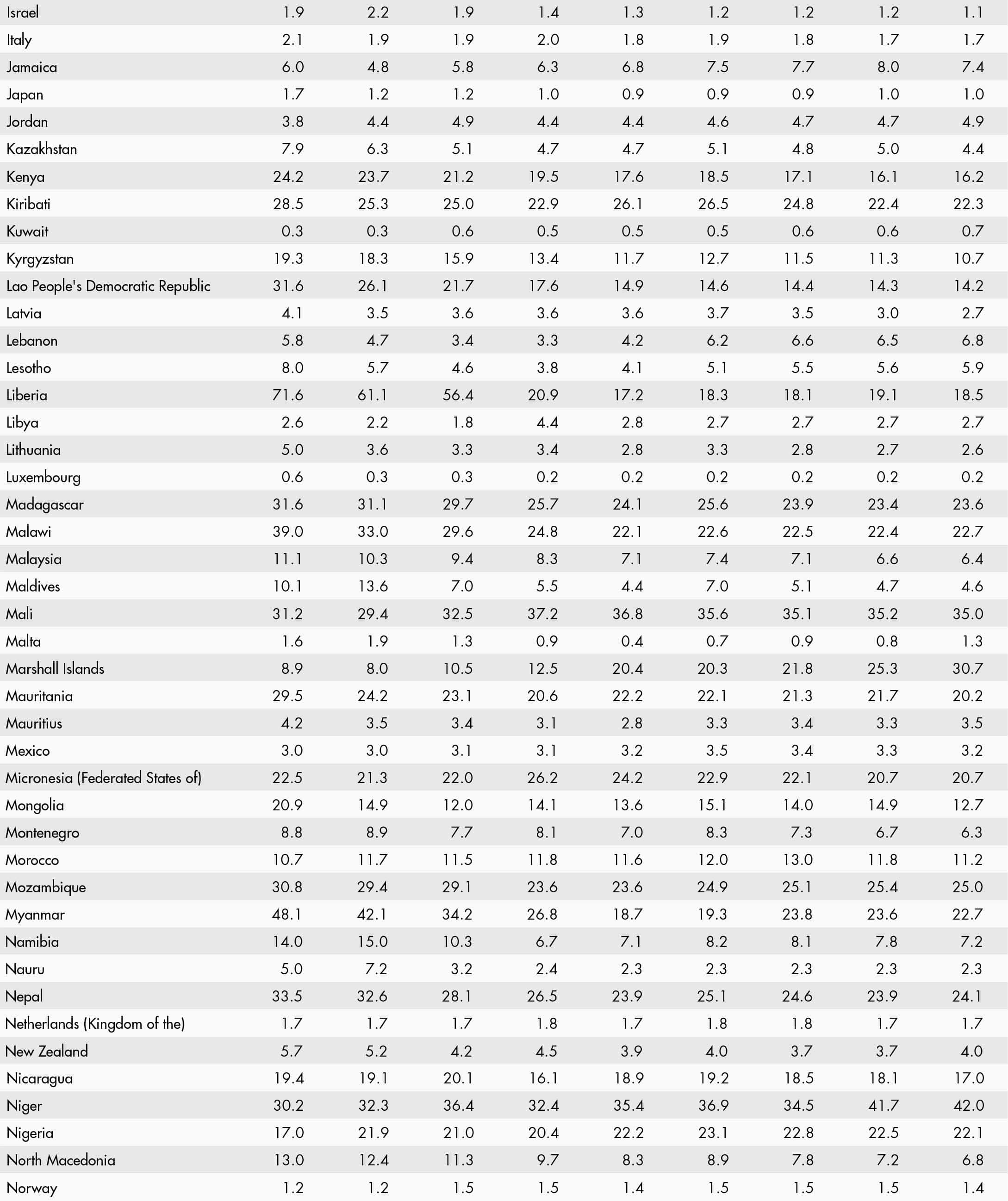 • When country data have not been reported for the reference year, an asterisk (*) on the year label indicates that the value for the most recent year available is shown. For example, 2021–2023* means that the most recent value for the period from 2021 to 2023 is shown.