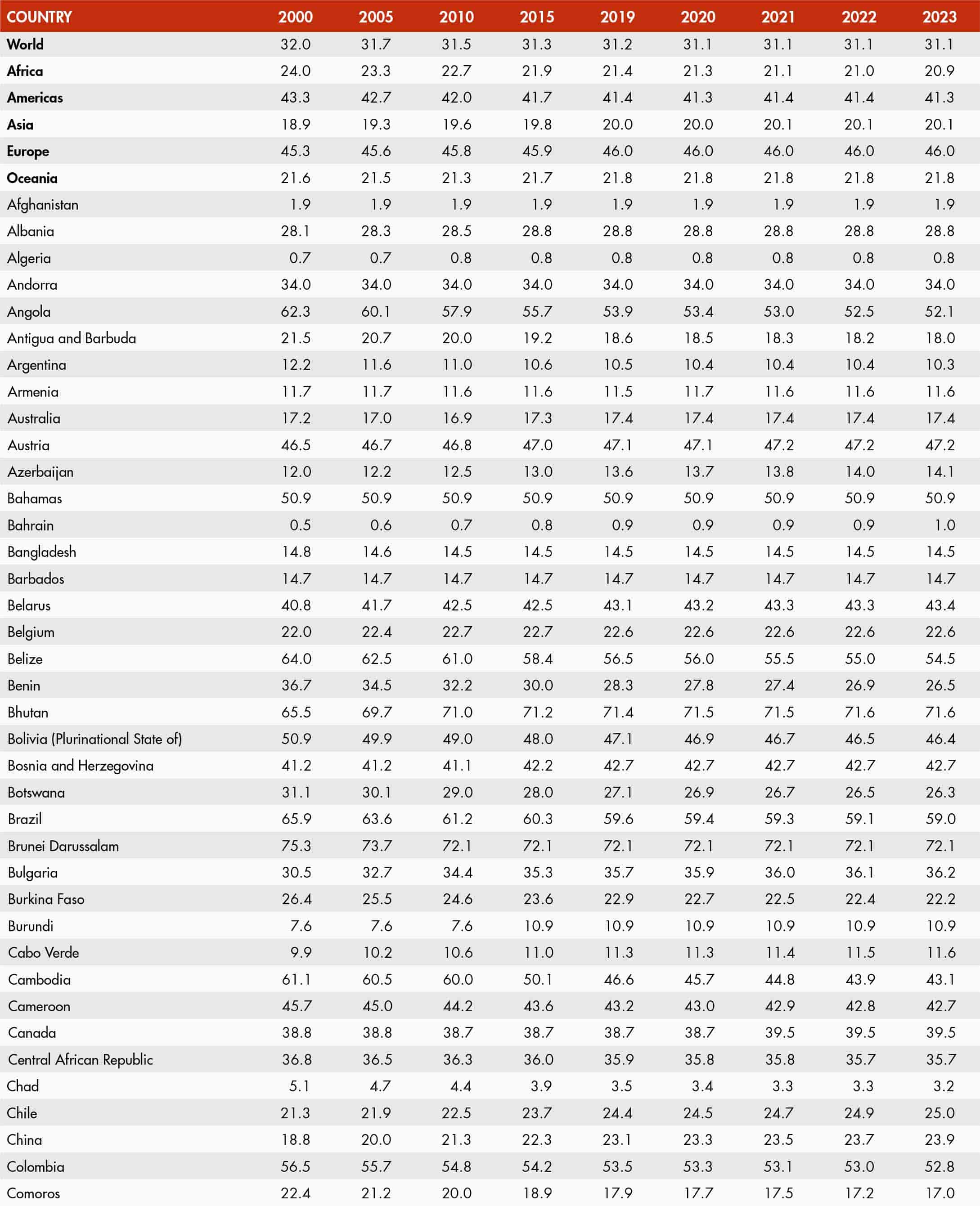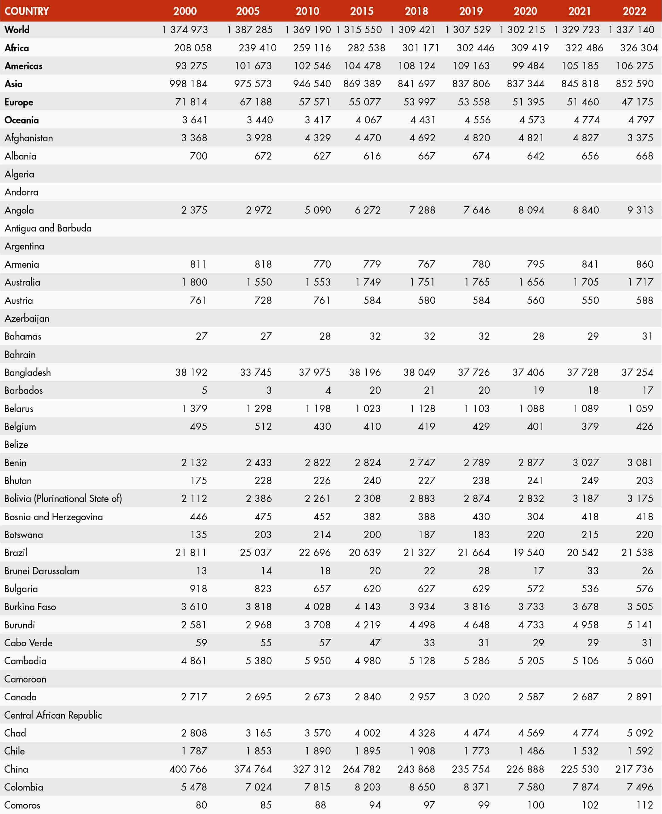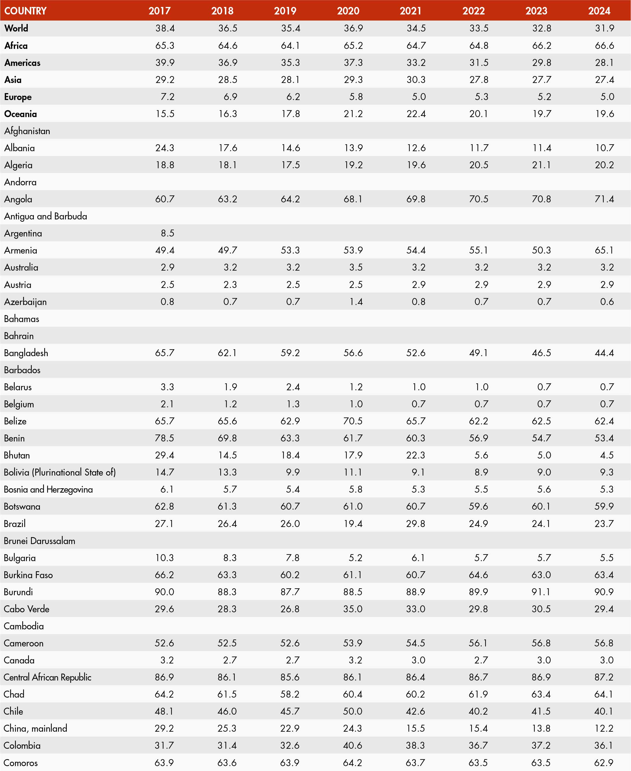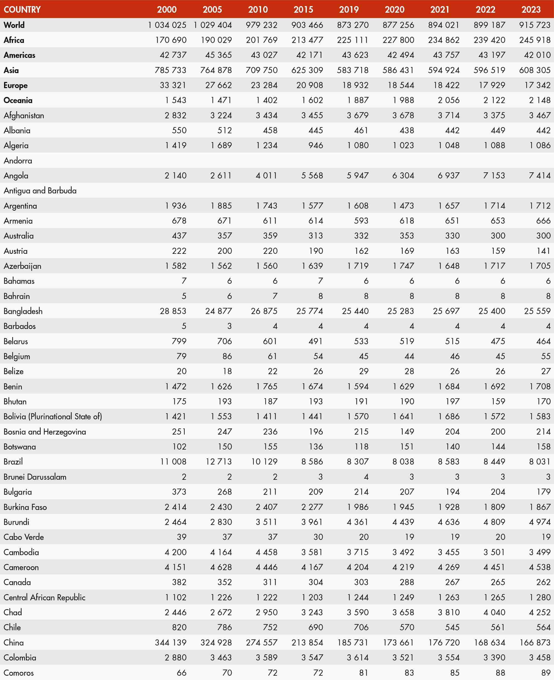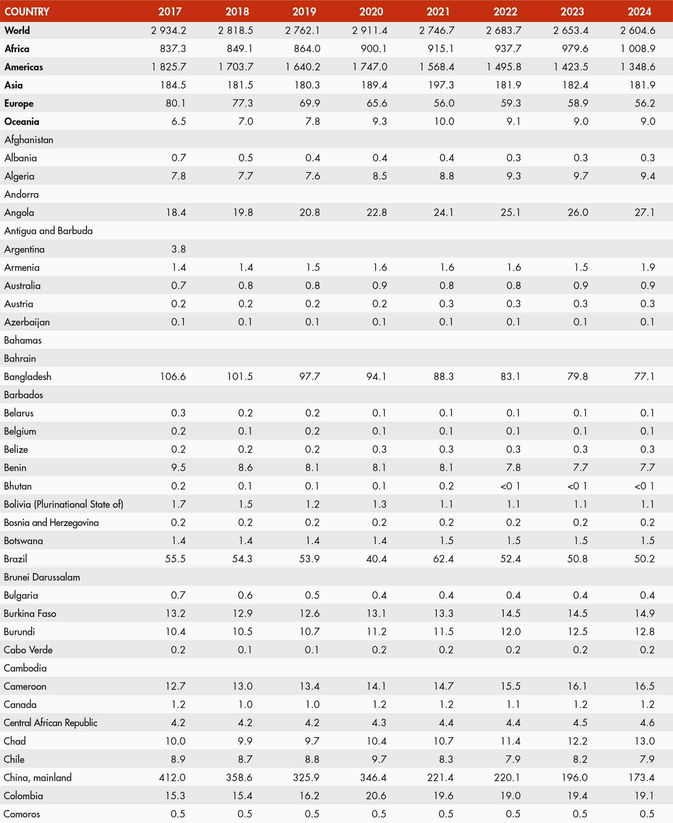 The country classification adopted in this publication is based on the United Nations M49 classification (https://unstats.un.org/unsd/methodology/m49/). The official Food and Agriculture Organization of the United Nations (FAO) names can be found at https://www.fao.org/nocs/en.