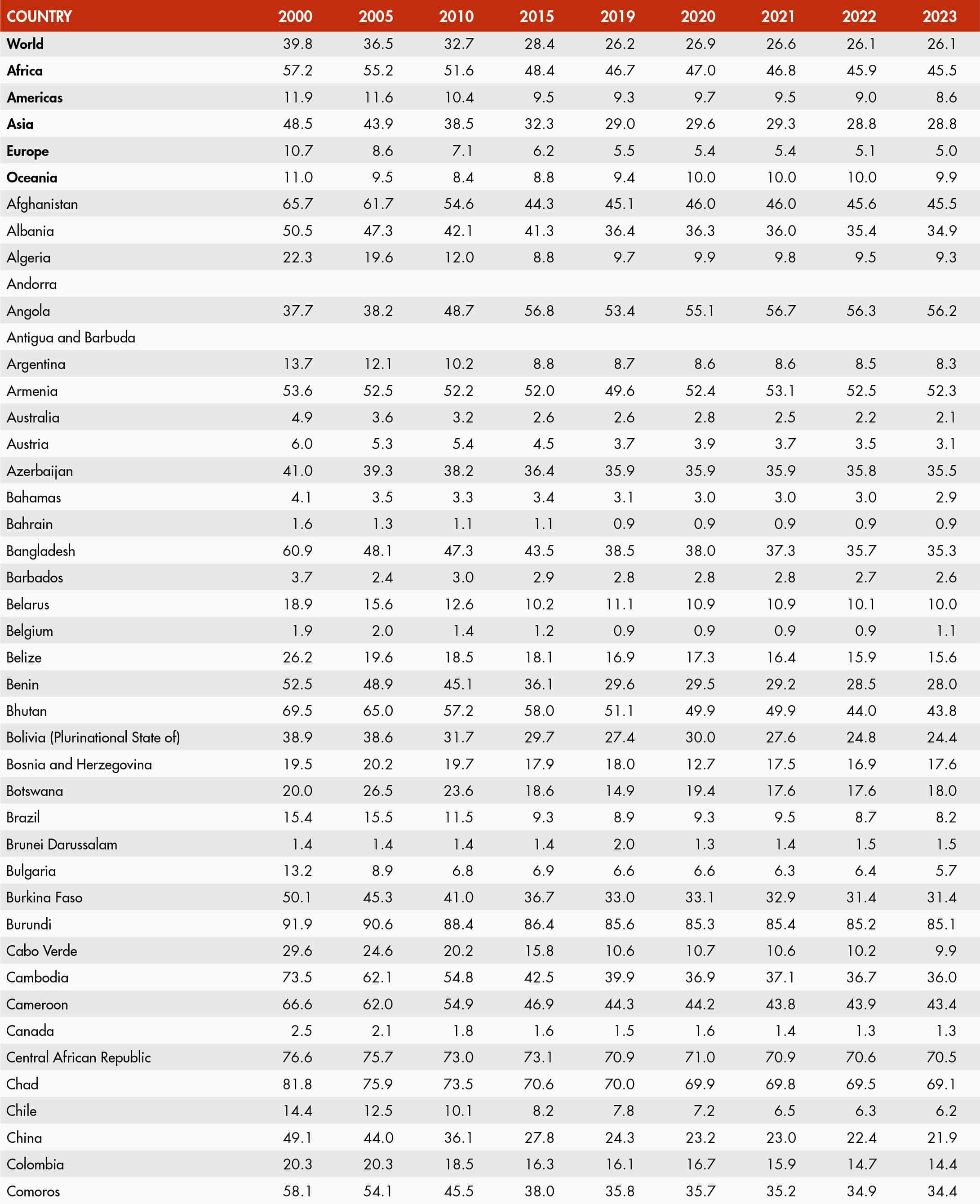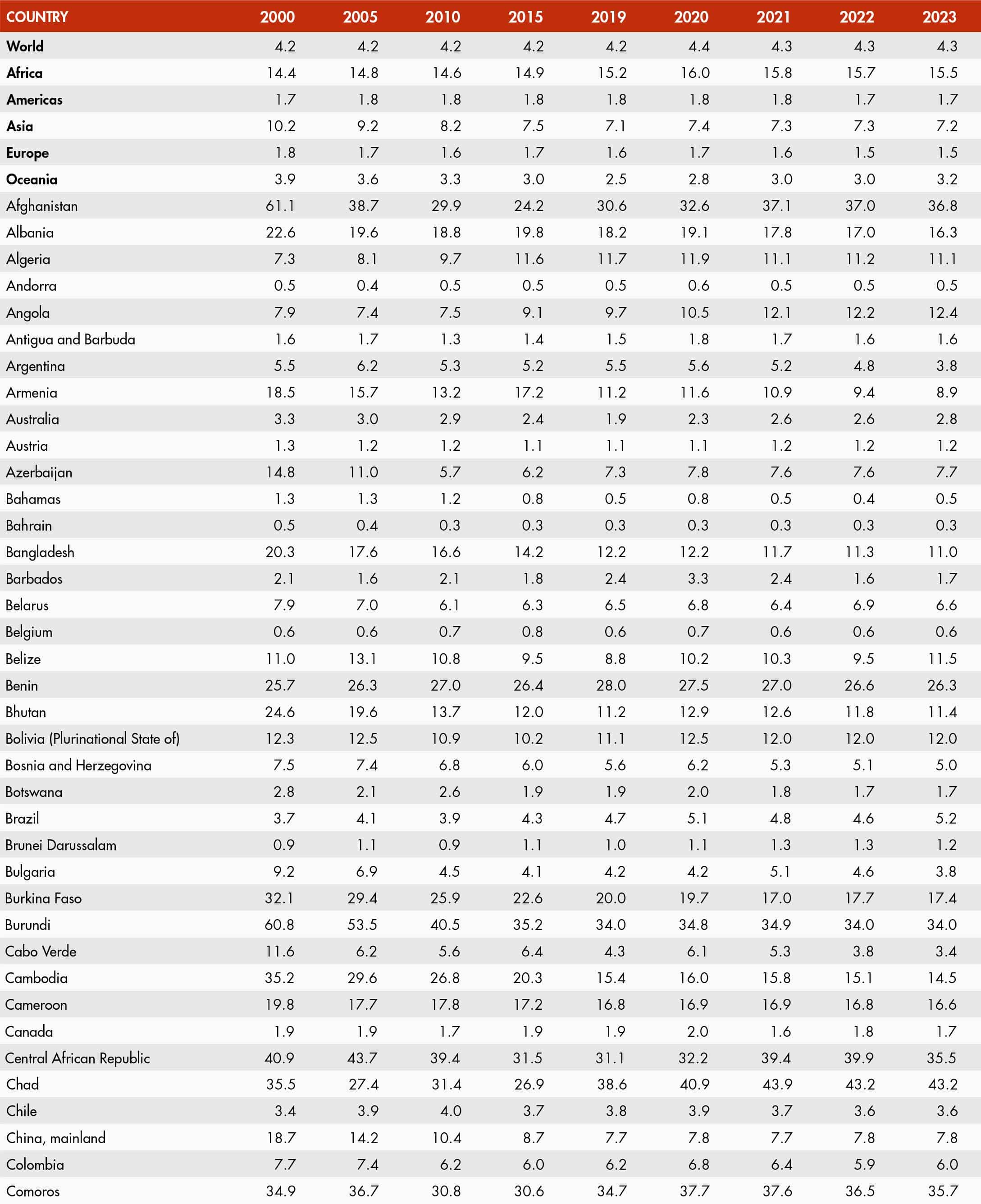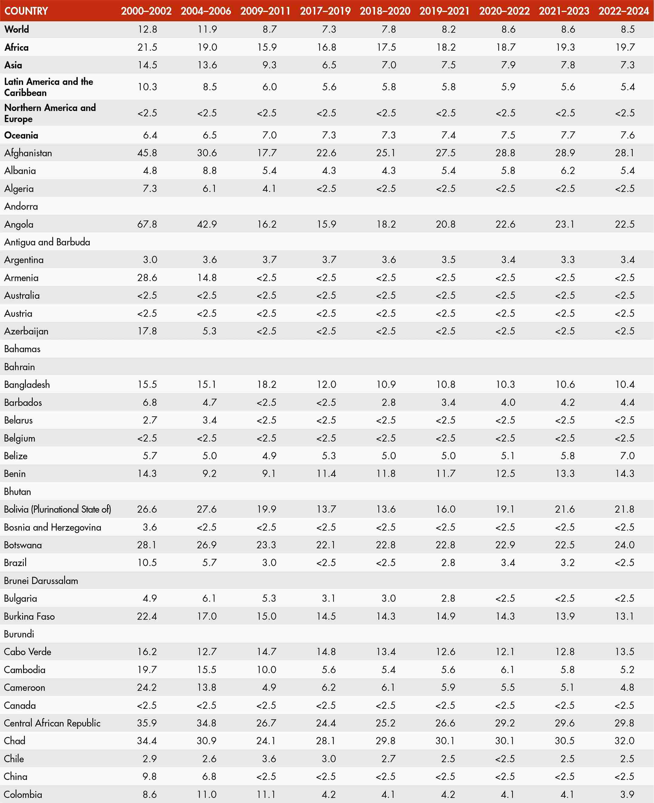 49. Prevalence of undernourishment by region