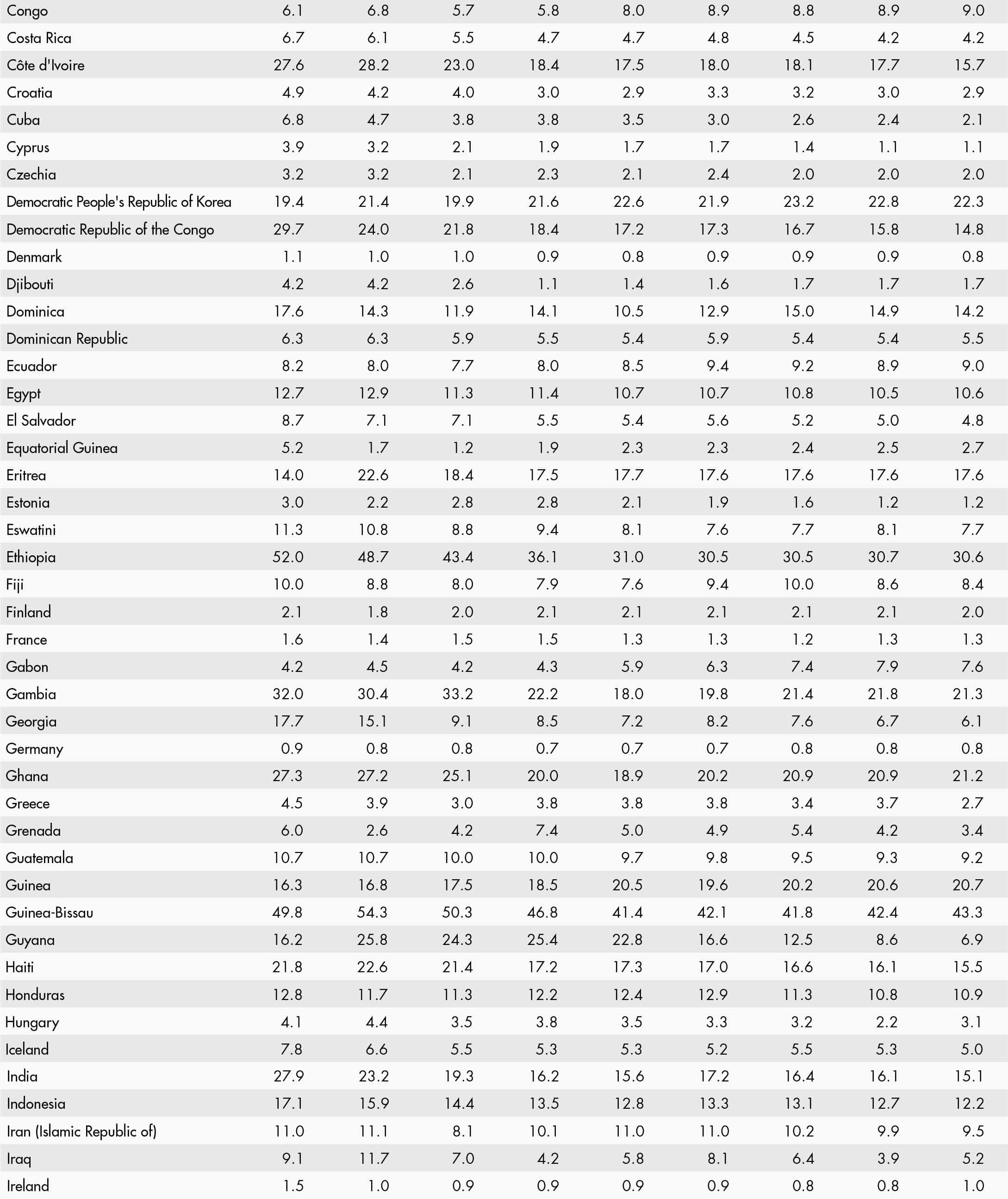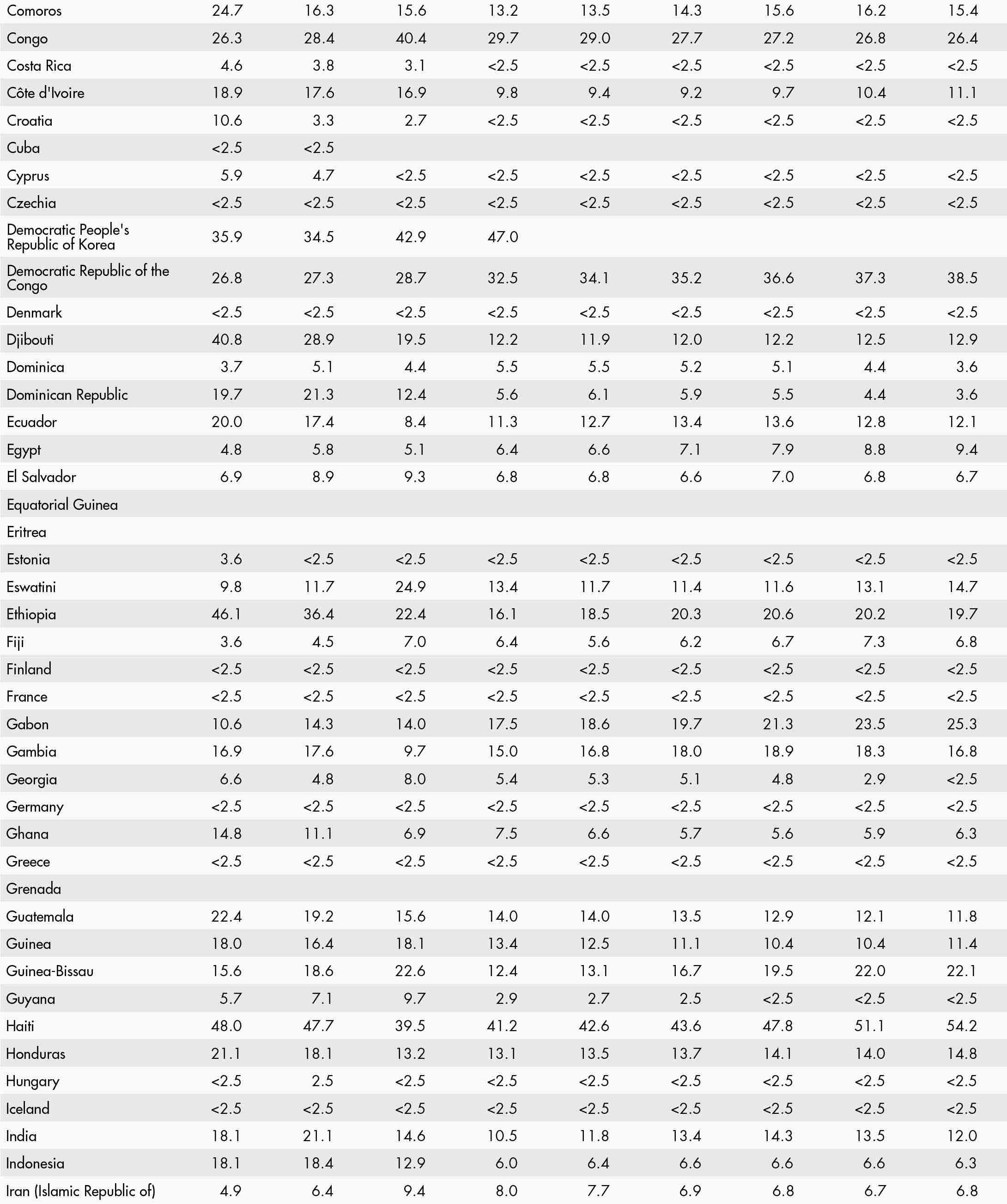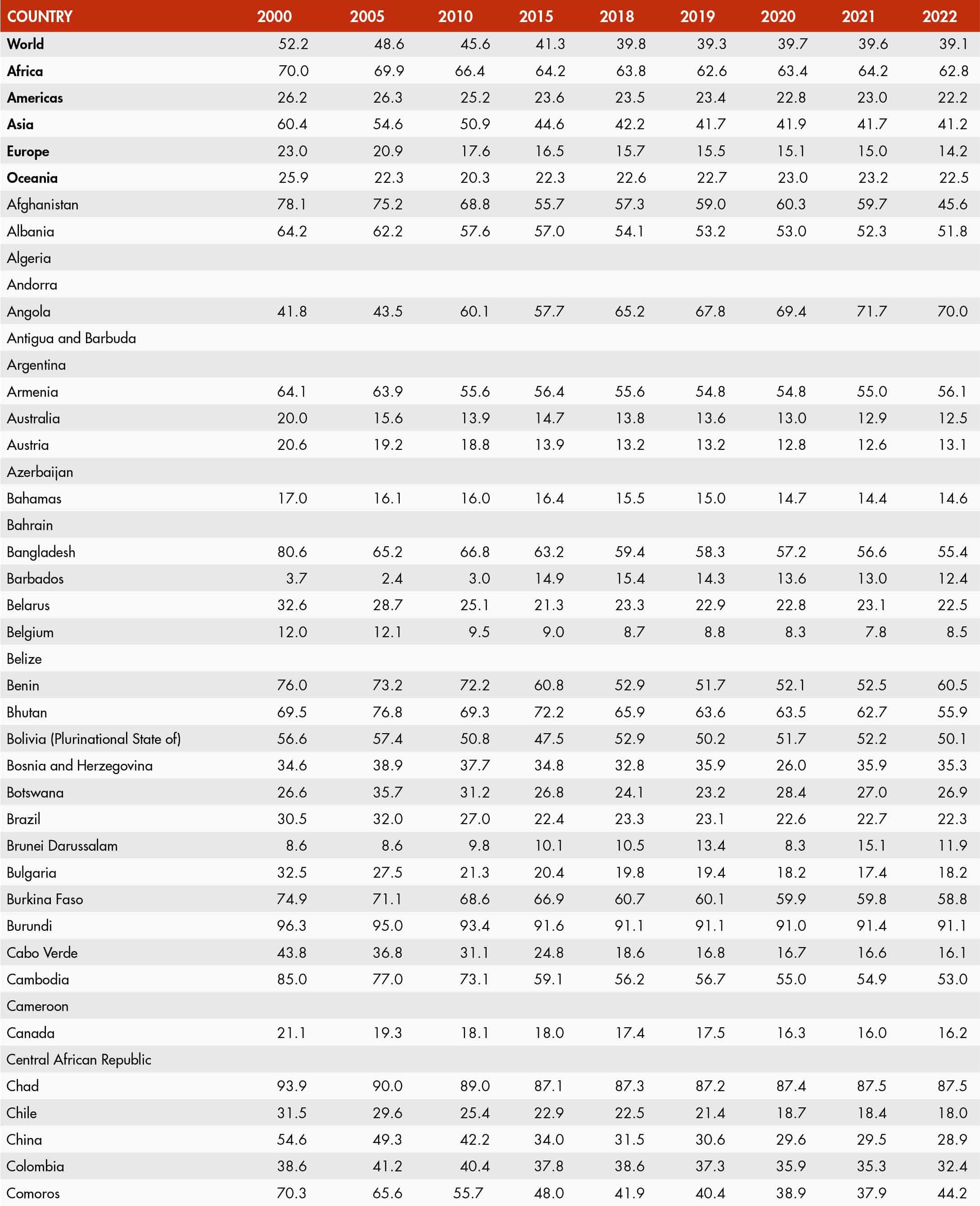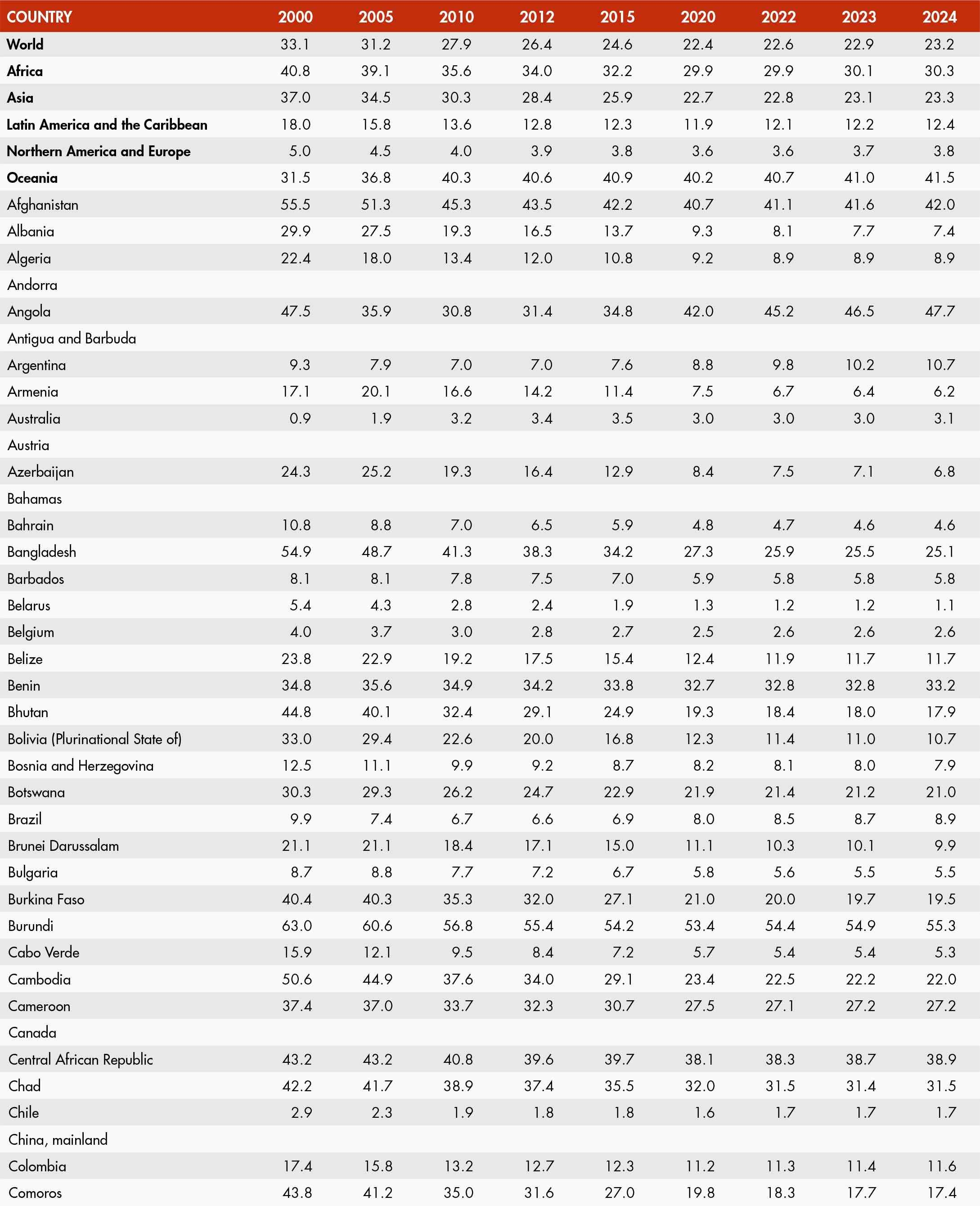 49. Prevalence of undernourishment by region