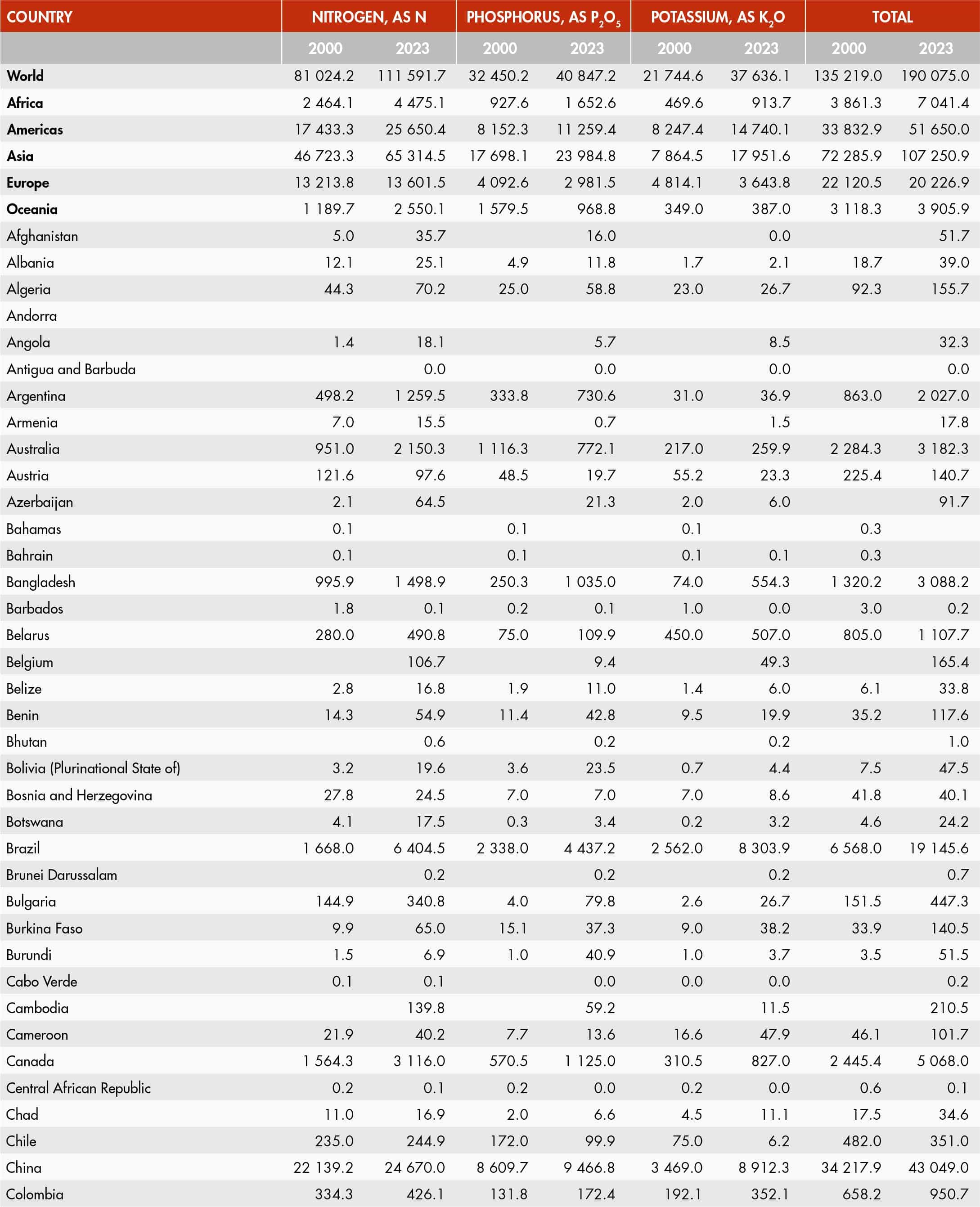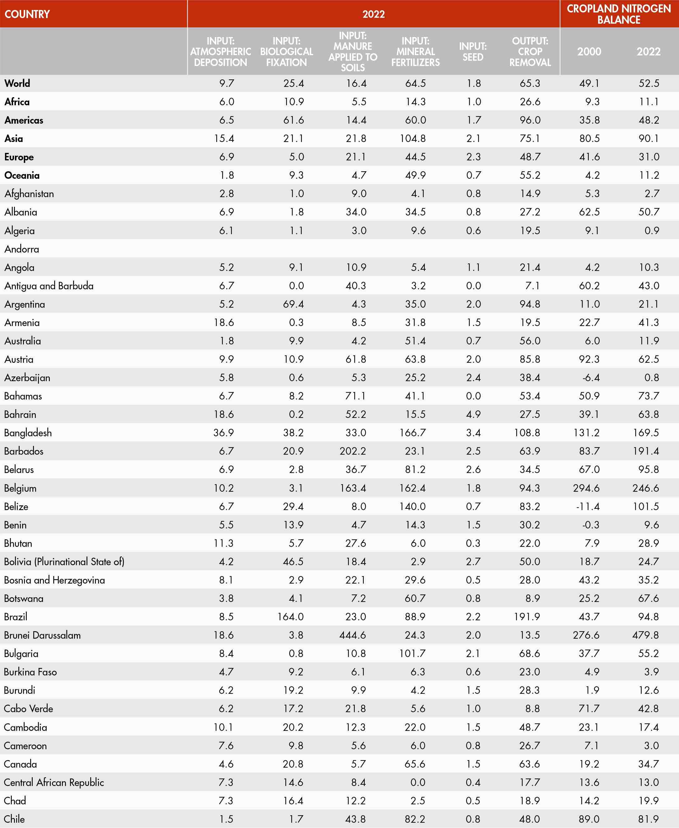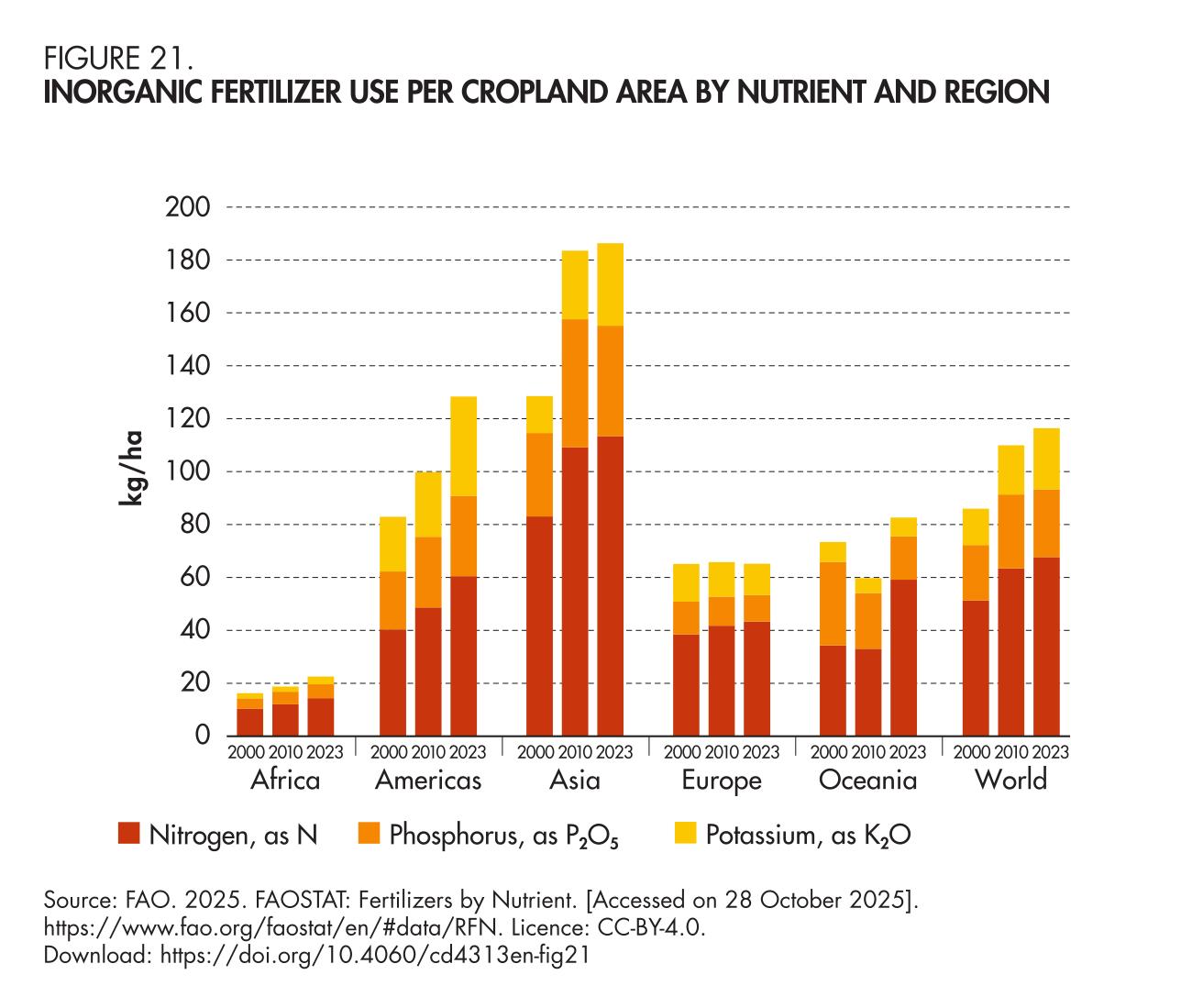 21. Inorganic fertilizer use per cropland area by nutrient and region