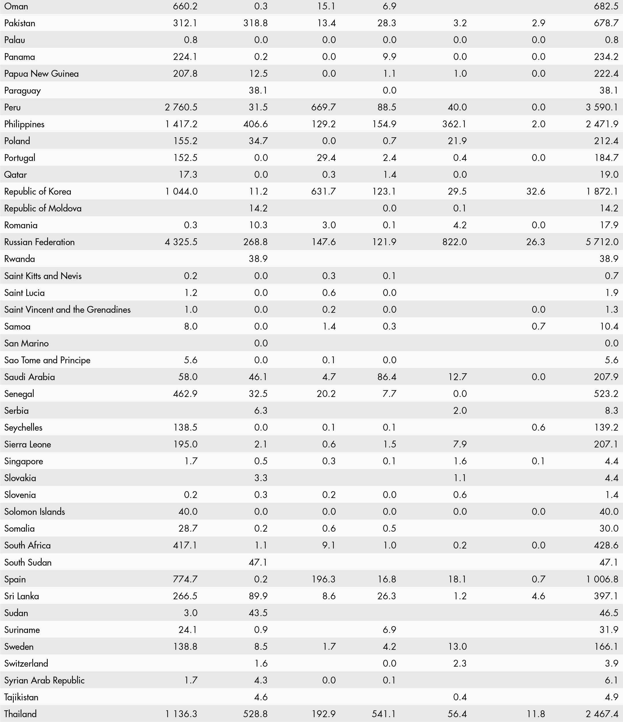 This Statistical Yearbook was prepared by the Statistics Division (ESS) of the Food and Agriculture Organization of the United Nations (FAO) in collaboration with the Communications (OCC), Fisheries and Aquaculture (NFI), Forestry (NFO), Land and Water (NSL) and Markets and Trade (EST) divisions. Olivier Lavagne d’Ortigue led the work under the direction of José Rosero Moncayo (FAO Chief Statistician and ESS Director). We would like to thank the following for their contributions and input: Valérie Bizier, Veronica Boero, Rachele Brivio, Carlo Cafiero, Jairo Castano, Nancy Chin, Piero Conforti, Valentina Conti, Sophie Ditlecadet, Birkan Durak, Adrienne Egger, Carola Fabi, Tomasz Filipczuk, Laura Galeotti, Neli Georgieva, Leman Yonca Gürbüzer, Adeeba Ishaq, Anne Kepple, Clara Aida Khalil, Amy Knauff, Irina Kovrova, Arvydas Lebedys, Eun Jeong Lee, Livia Lombardi, Patricia Mejias Moreno, Sara Montanaro, Griffiths Obli-Laryea, Michelle Piccoli, Nidal Ramadan, Vikas Rawal, Aydan Selek, Simona Sorrenti, Kimberly Sullivan, Francesco Tubiello, Monica Umena, Stefania Vannuccini, Sara Viviani, Michele Vollaro, Sven Walter and Nathan Wanner.