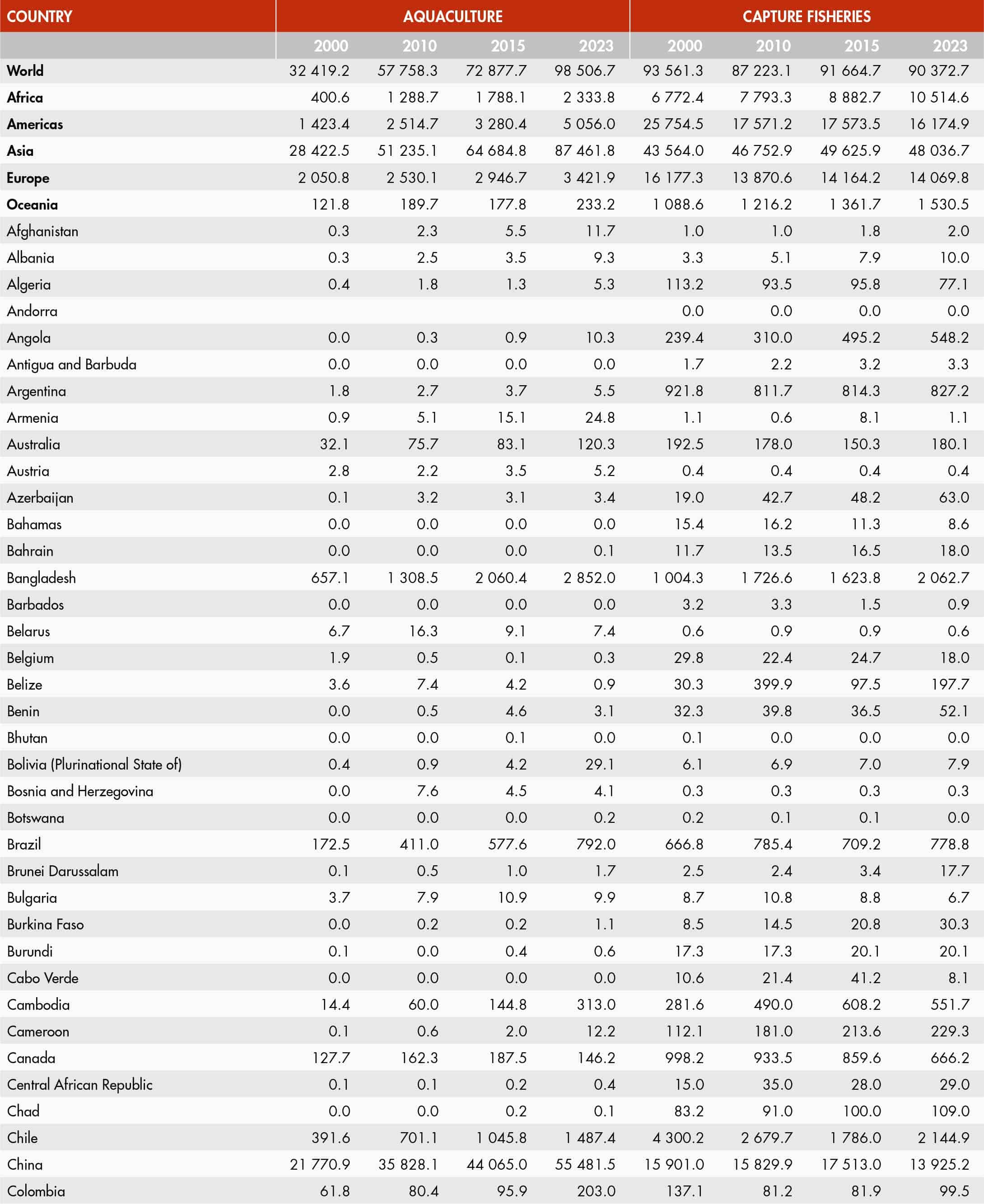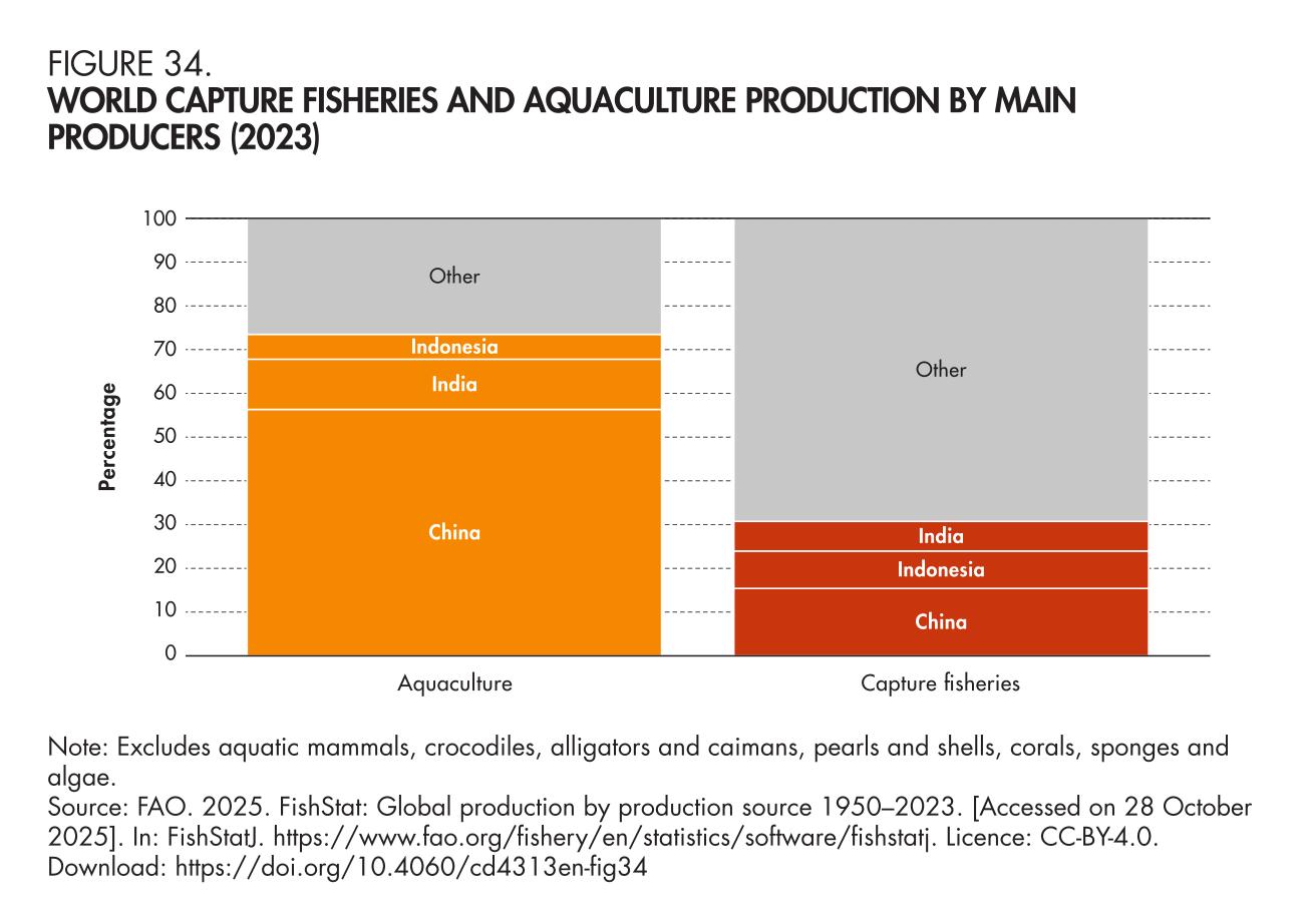 34. World capture fisheries and aquaculture production by main producers (2023)