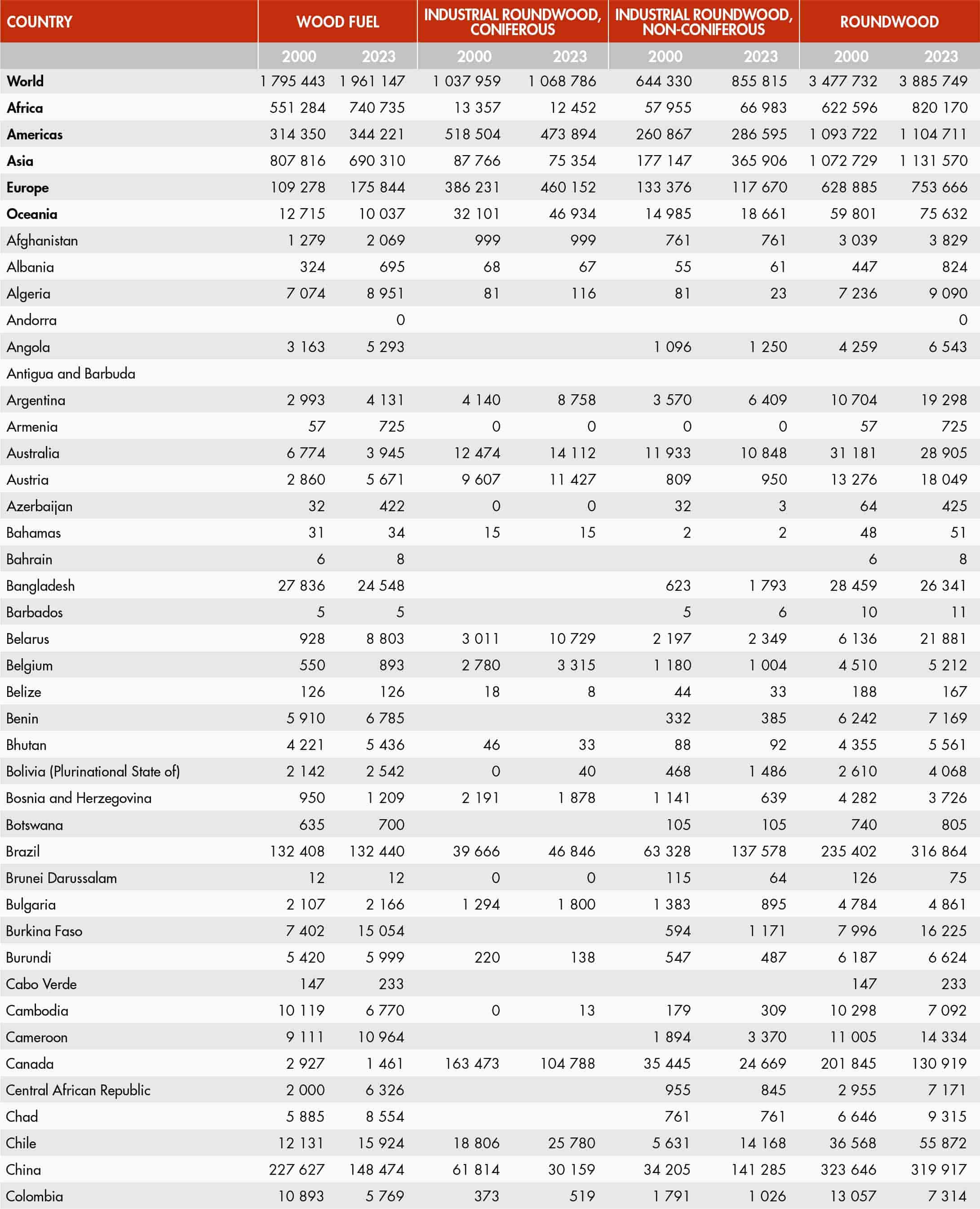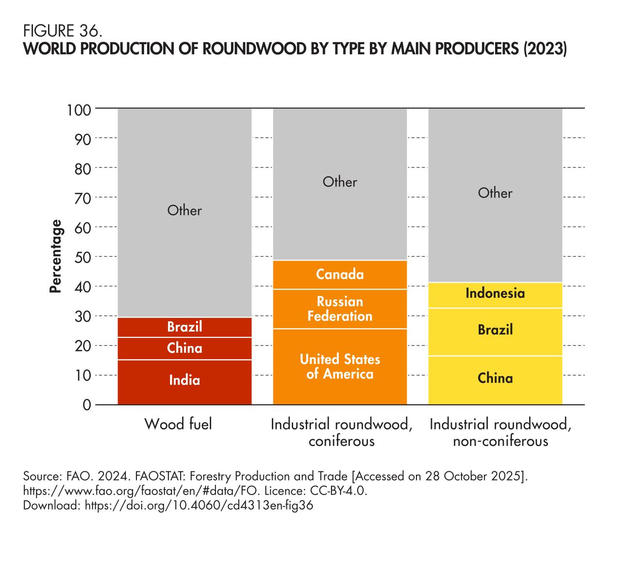 36. World production of roundwood by type, main producers (2023)
