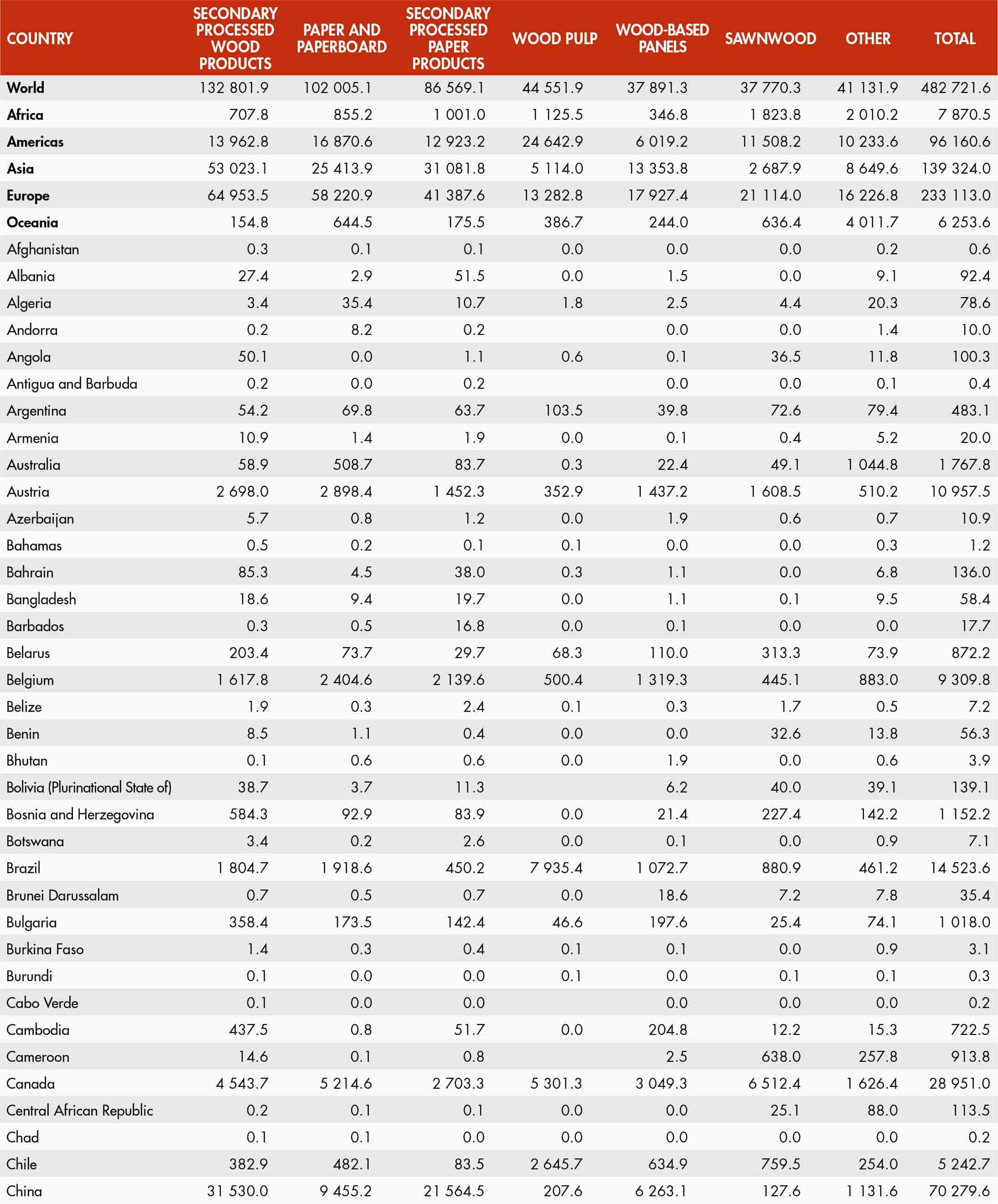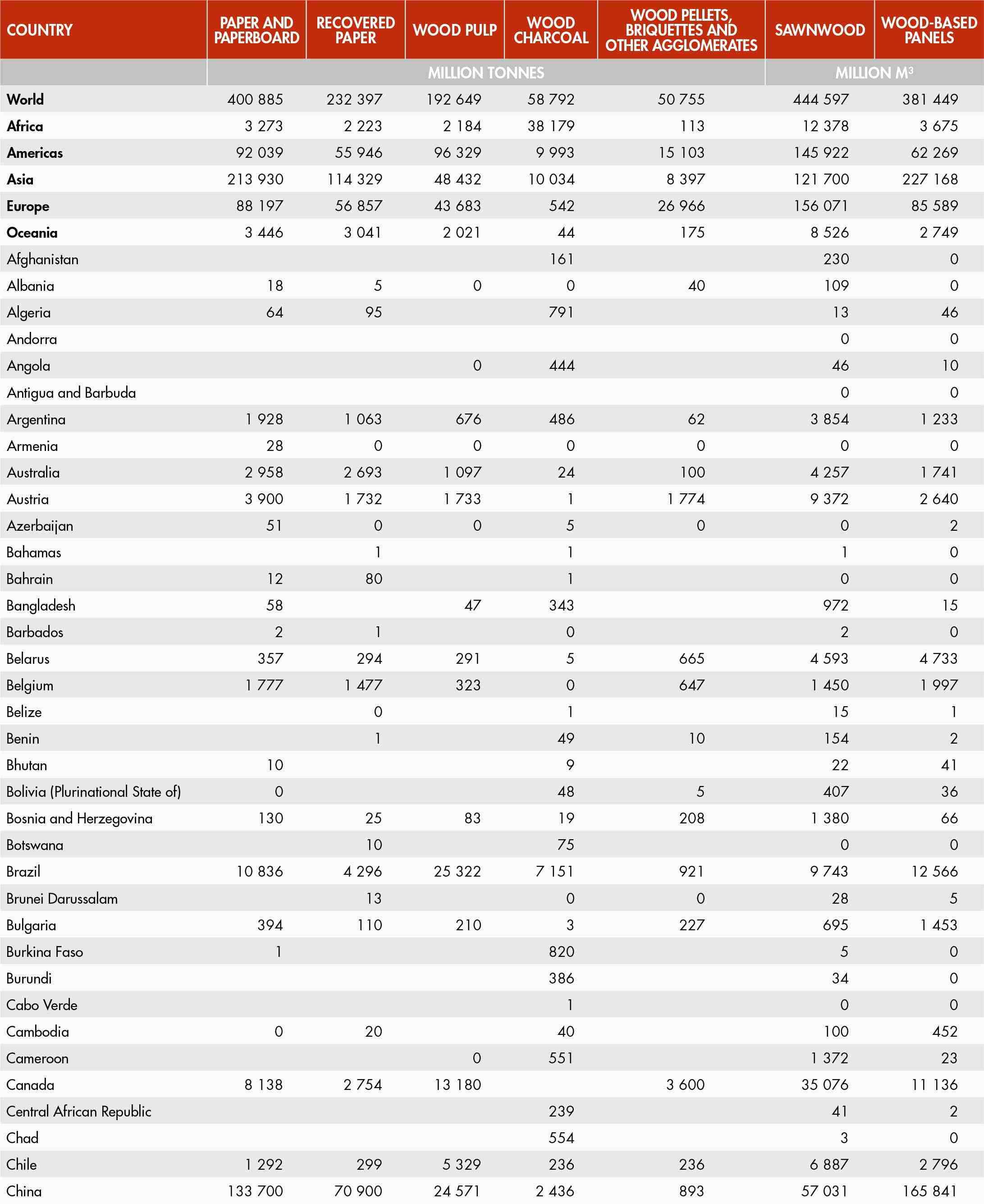 37. World production of selected forest products
