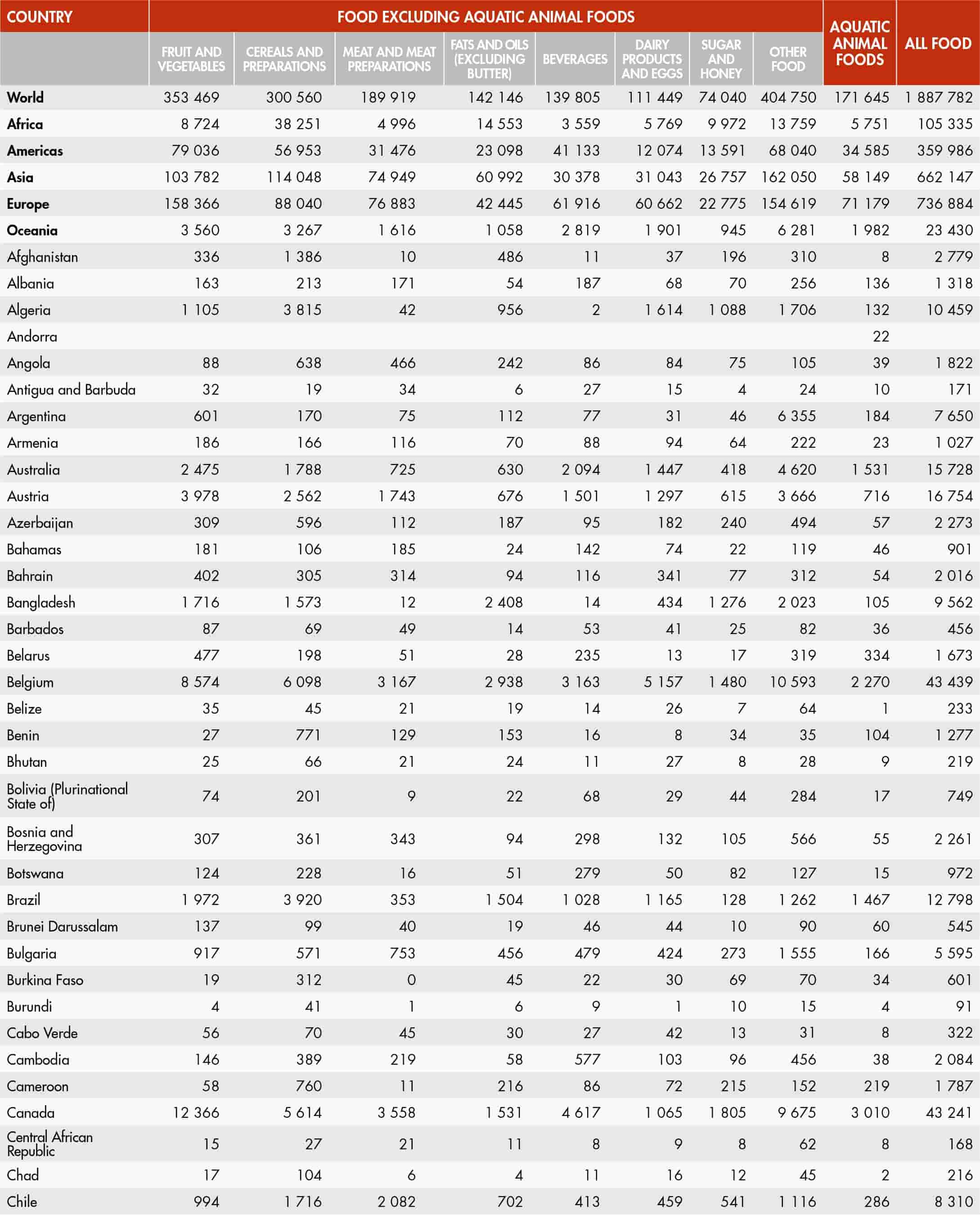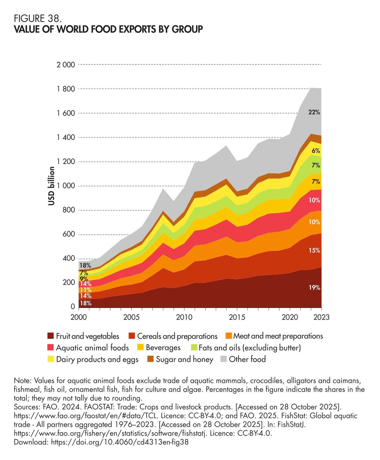 38. Value of world food exports by group