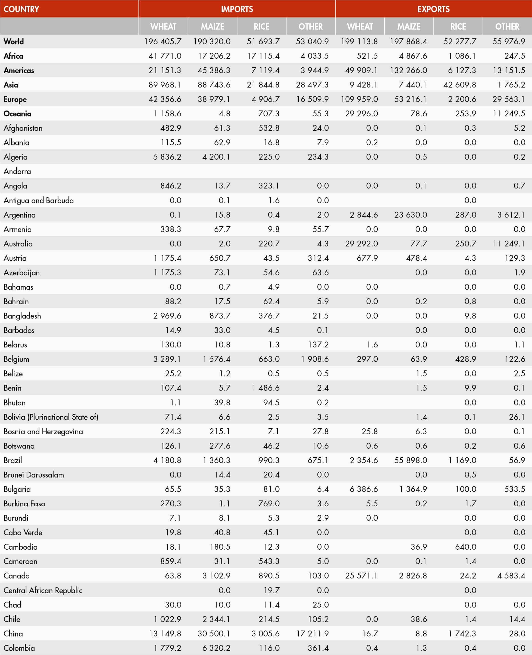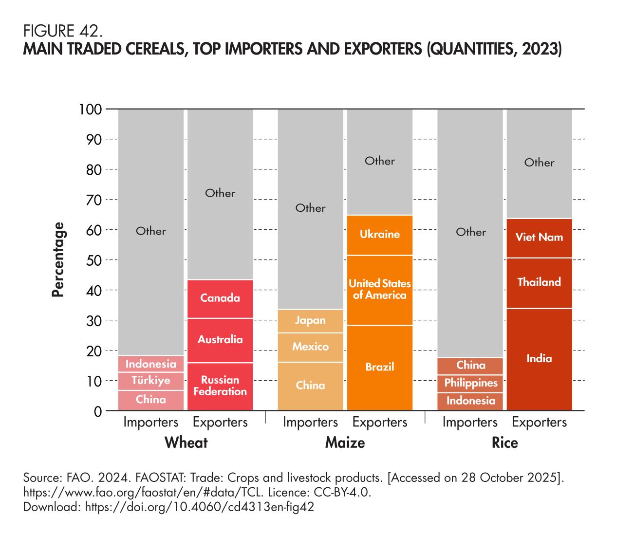 42. Main traded cereals, top importers and exporters (quantities, 2023)