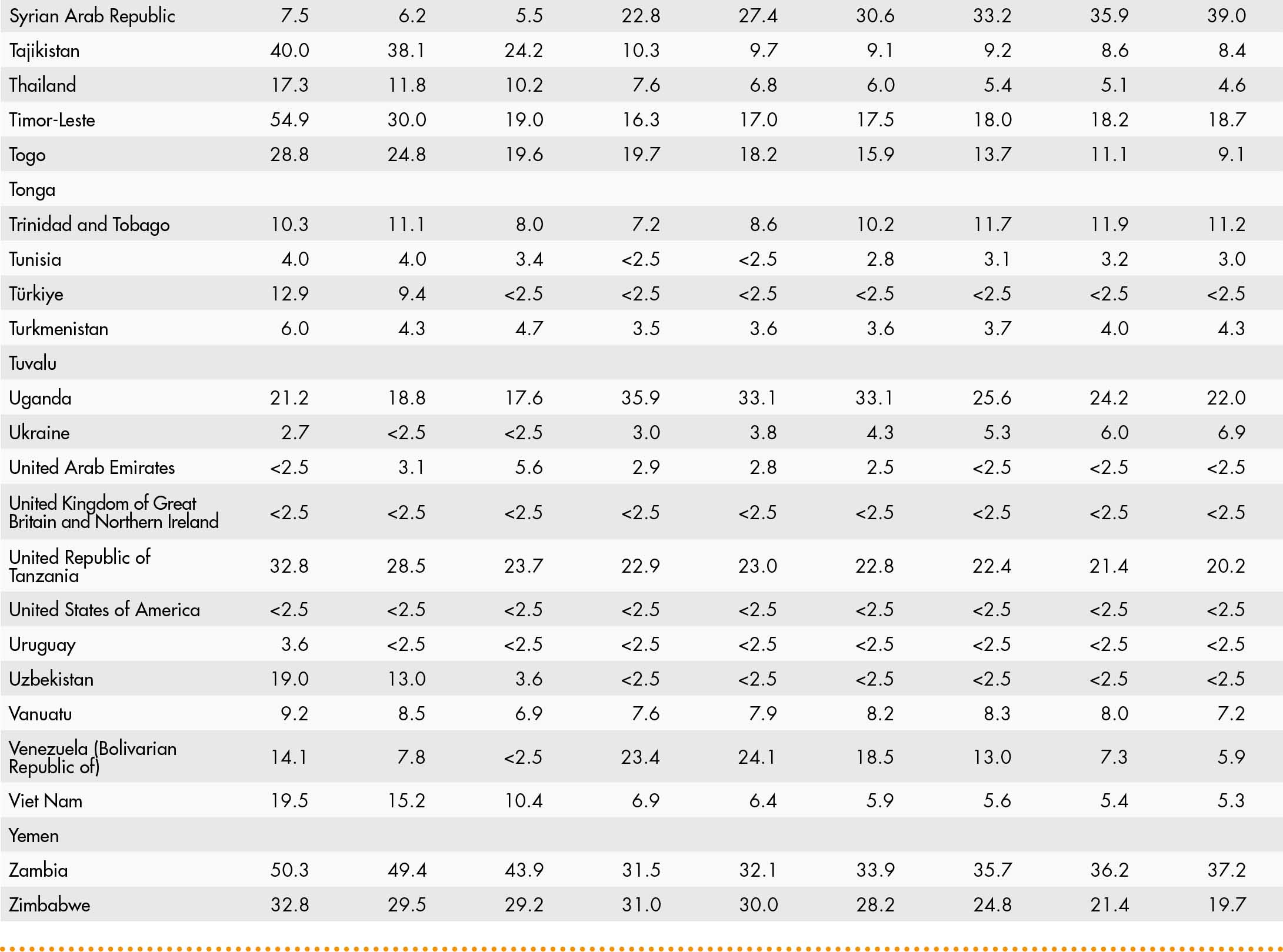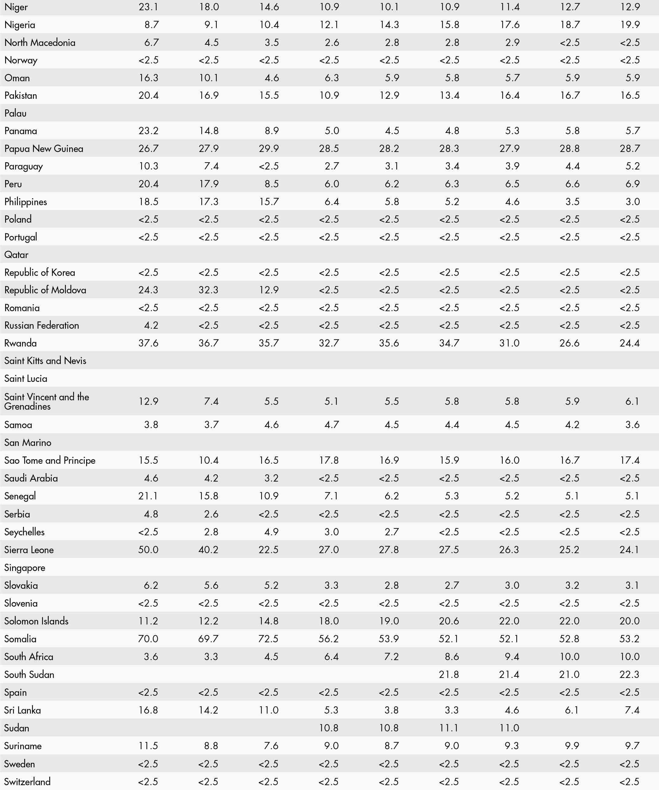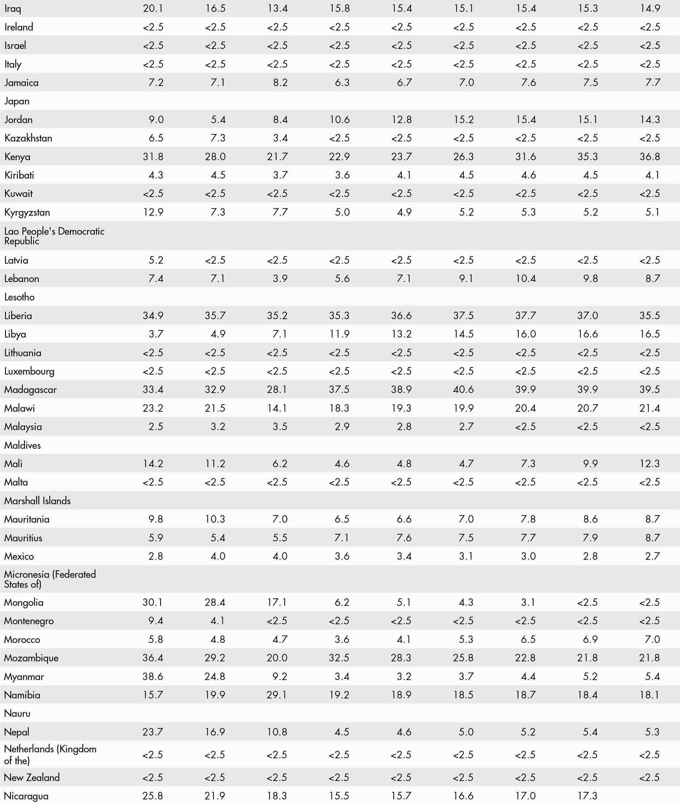 • <2.5 means a proportion less than 2.5 percent; and