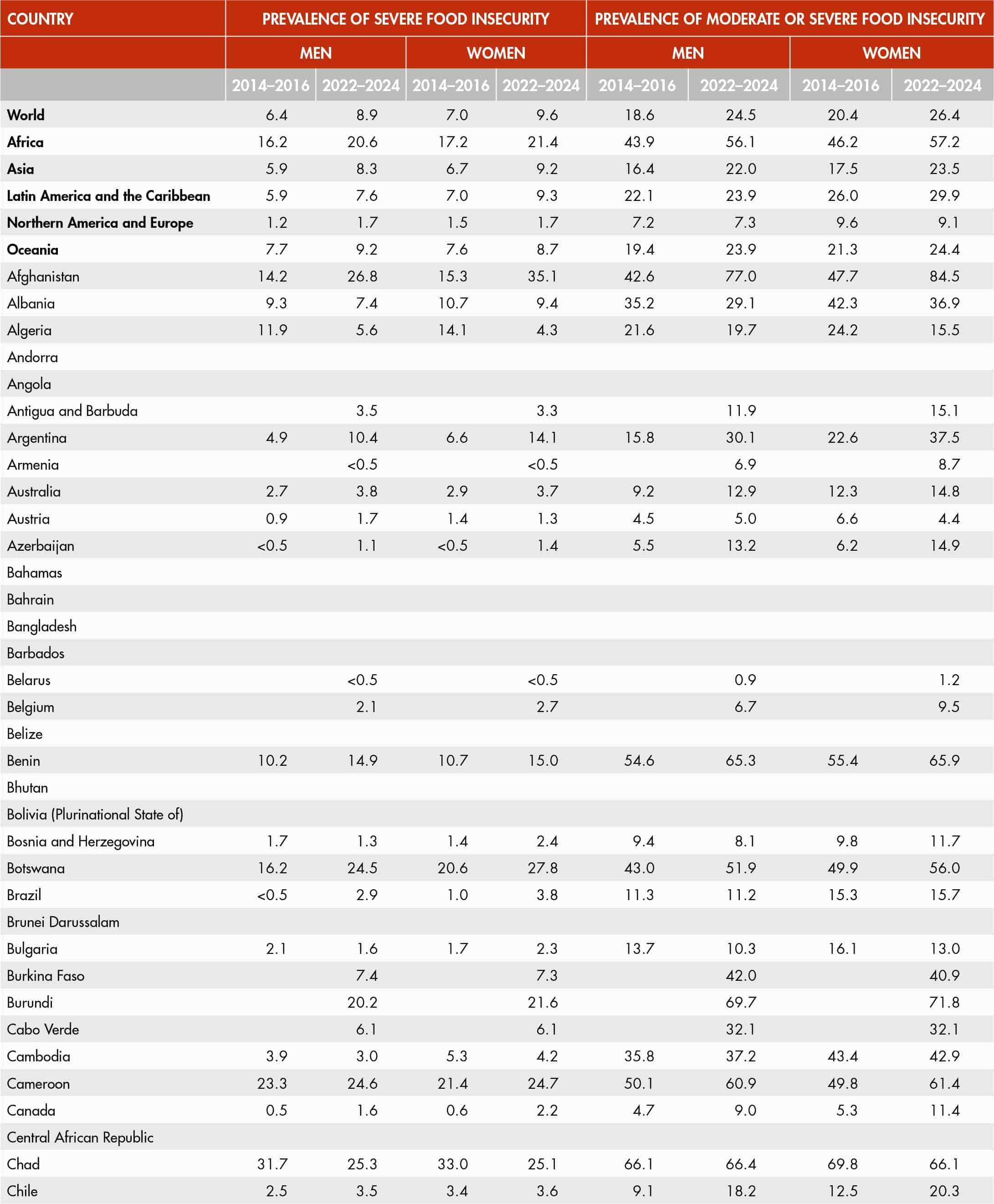 52. Food insecurity levels by region and sex (2024)