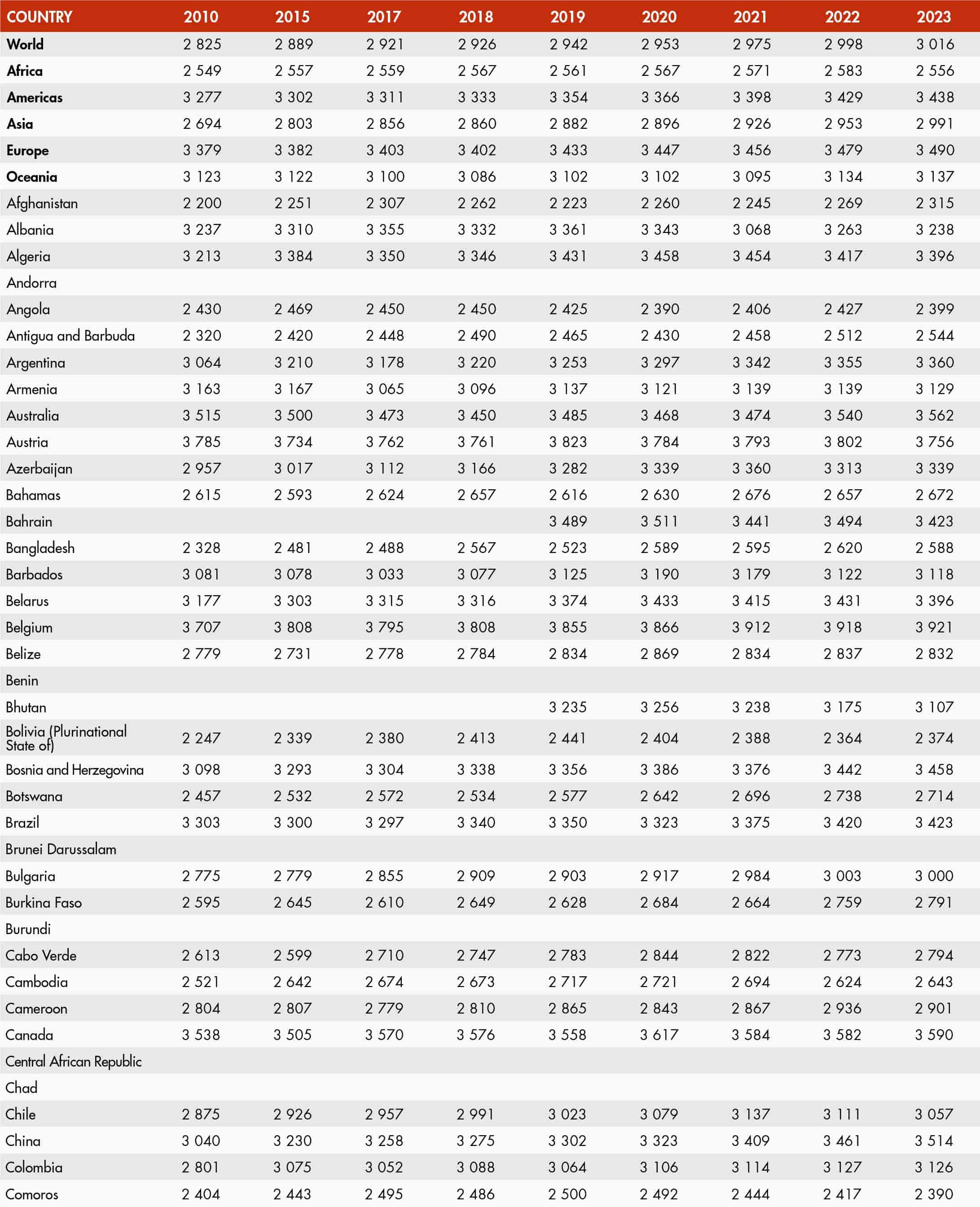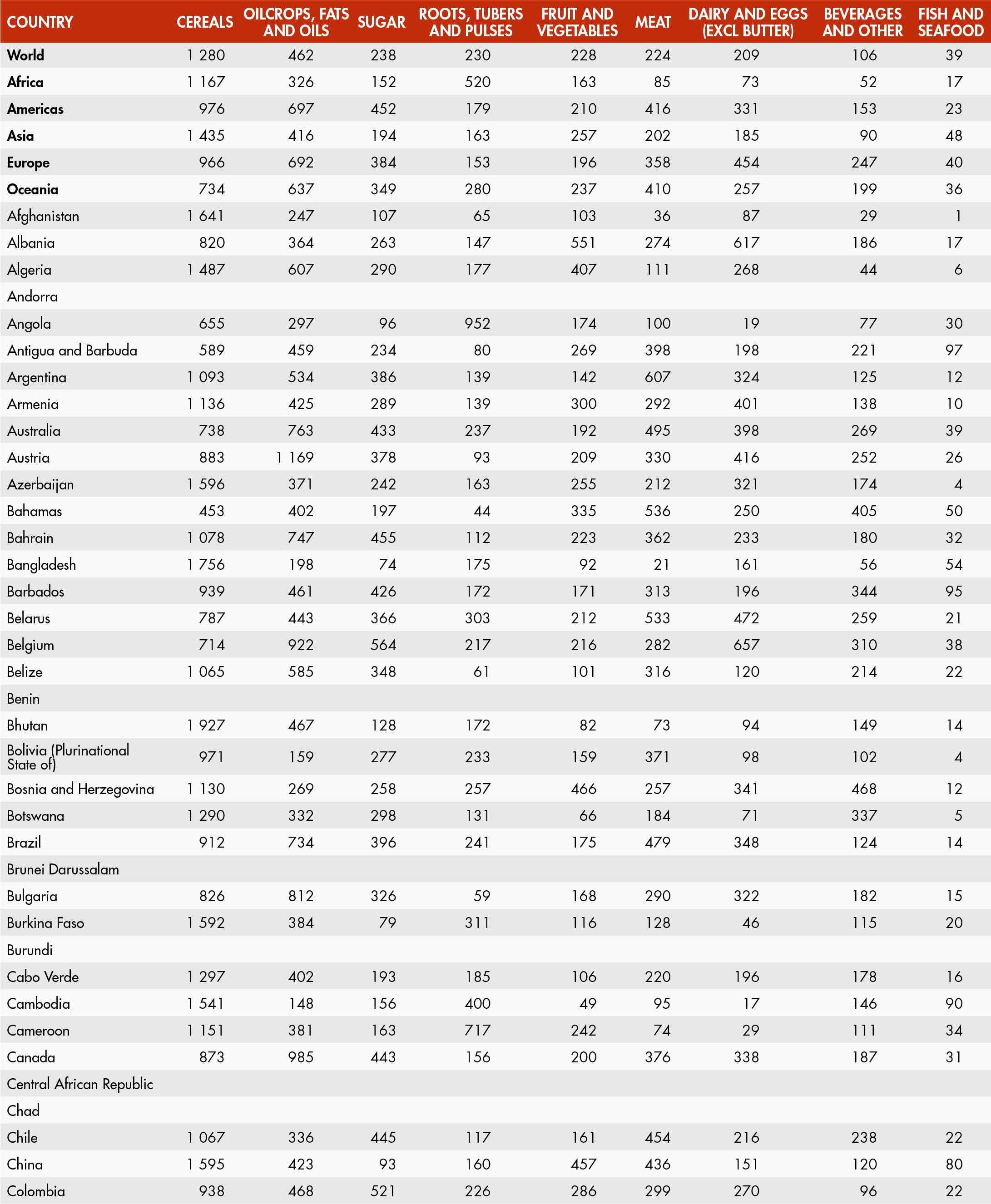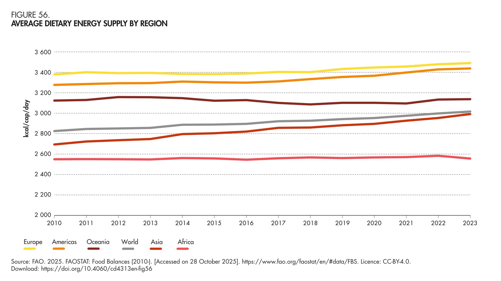 56. Average dietary energy supply by region